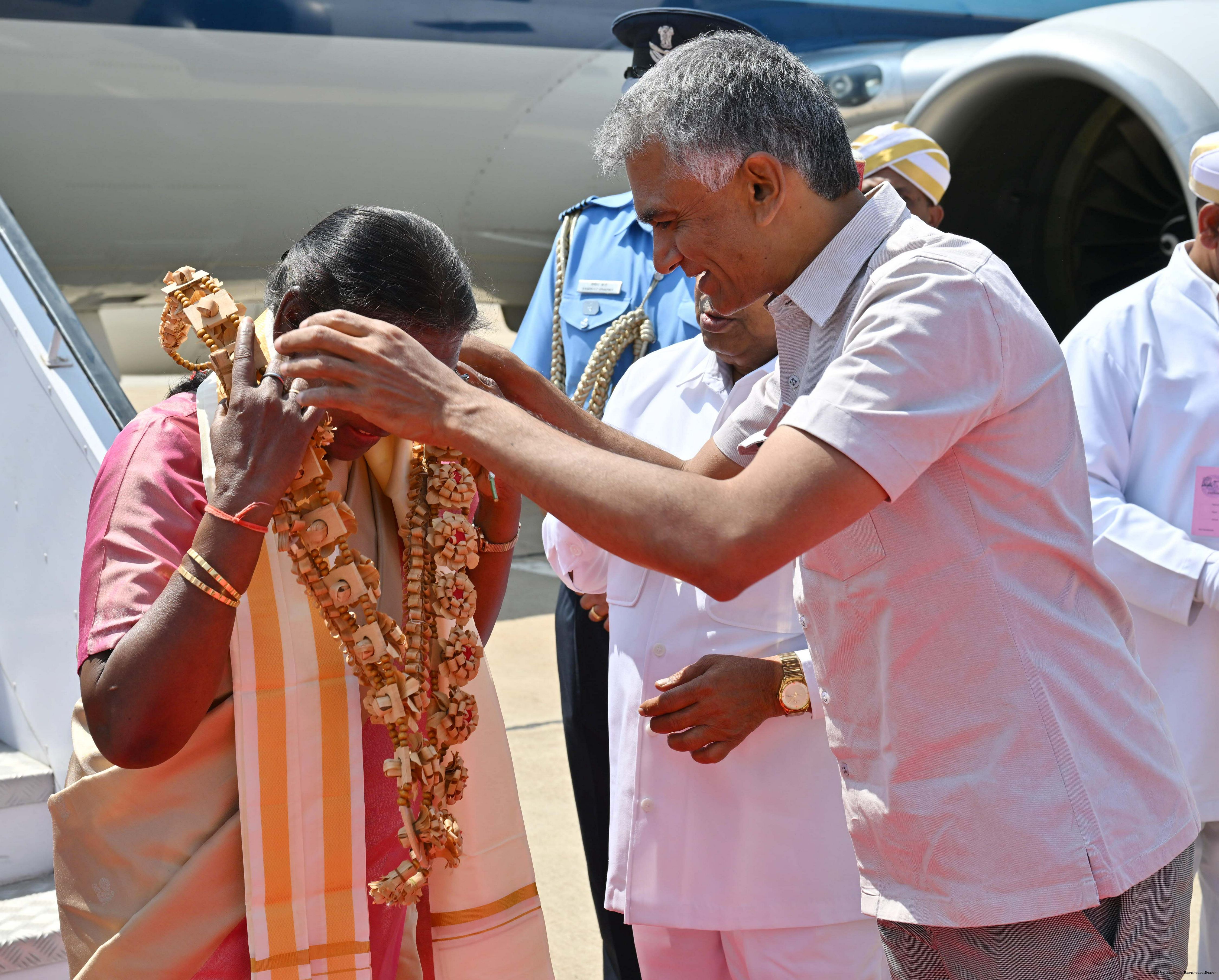 | Caption: | The Governor of Karnataka, Shri Thaawar Chand Gehlot received the President of India, Smt. Droupadi Murmu on her arrival at Bengaluru on February 14, 2025. |