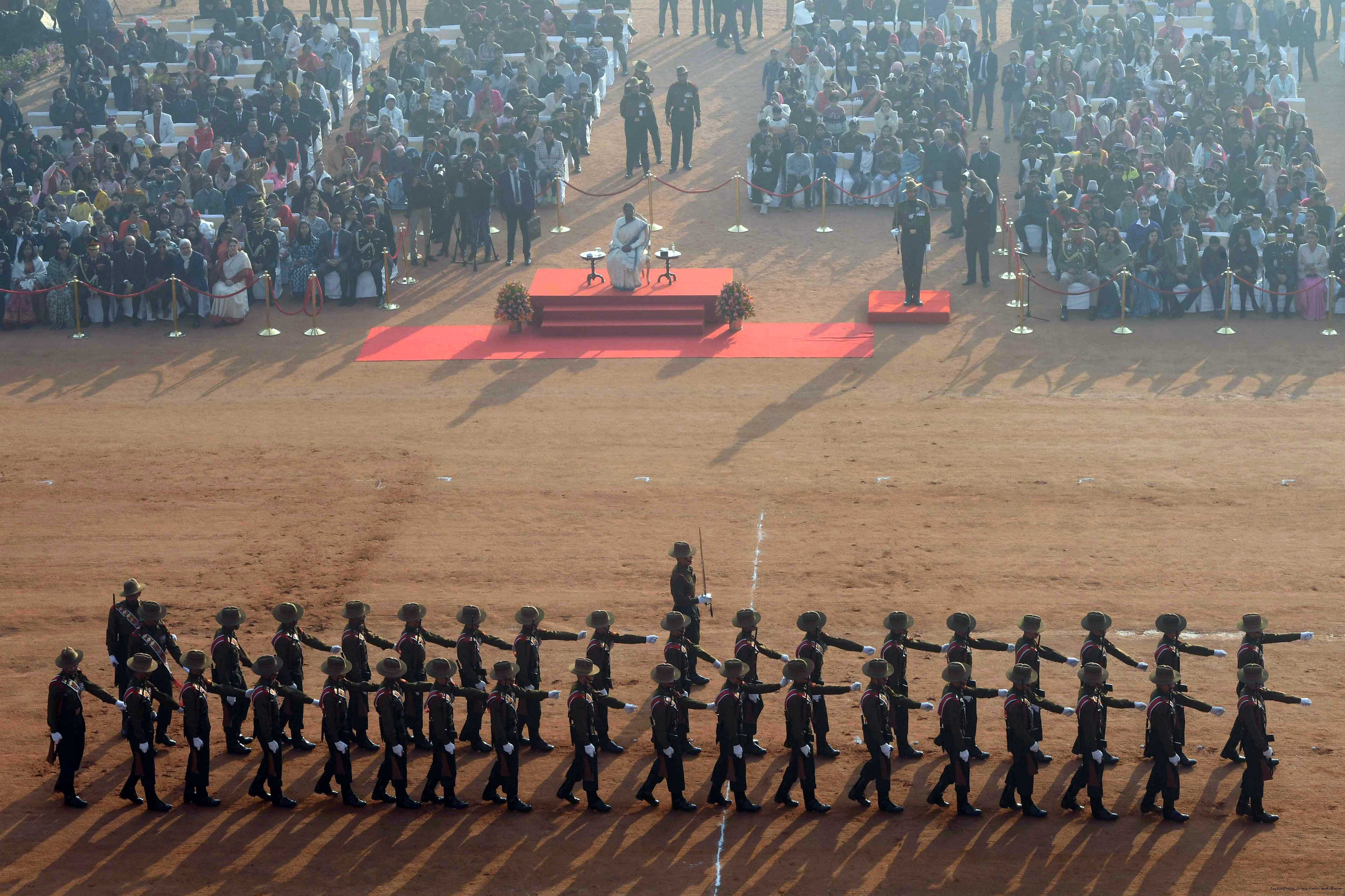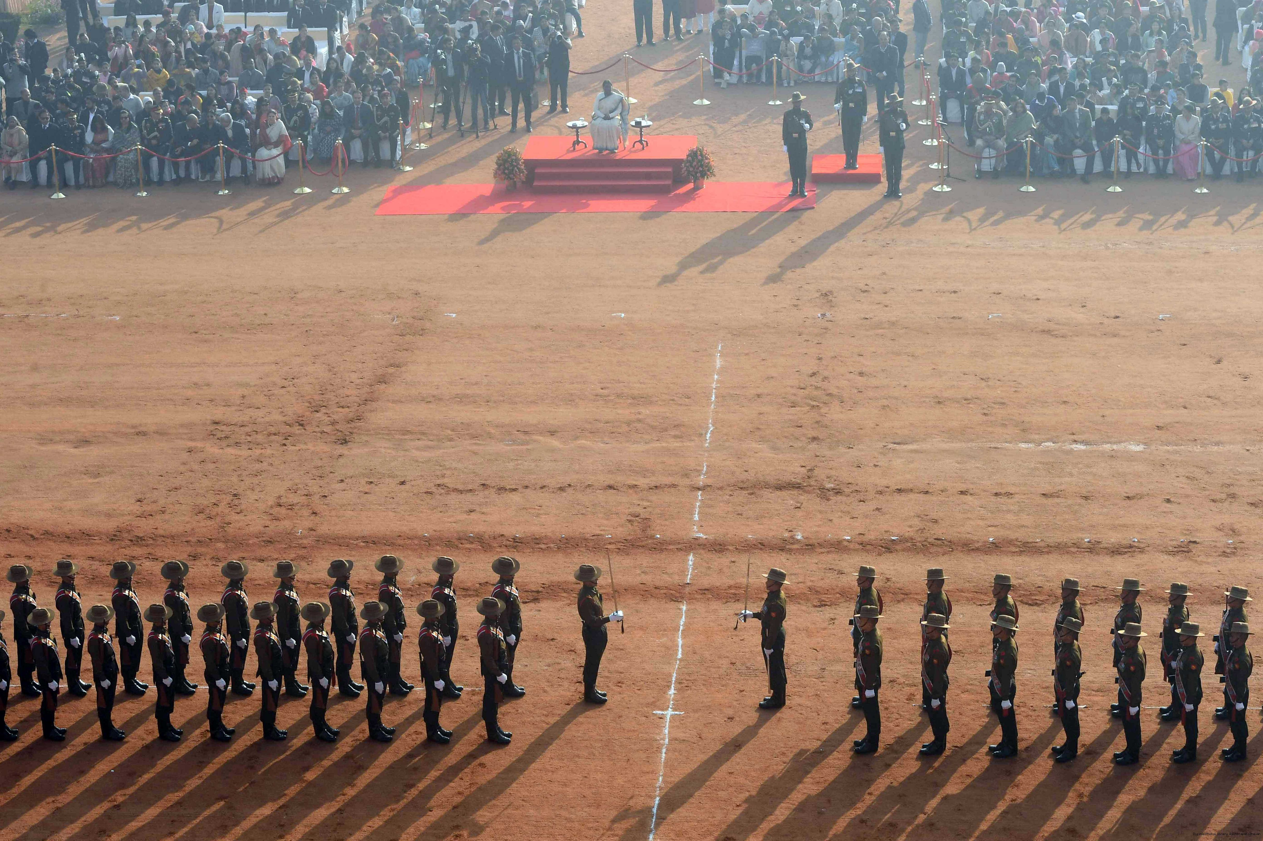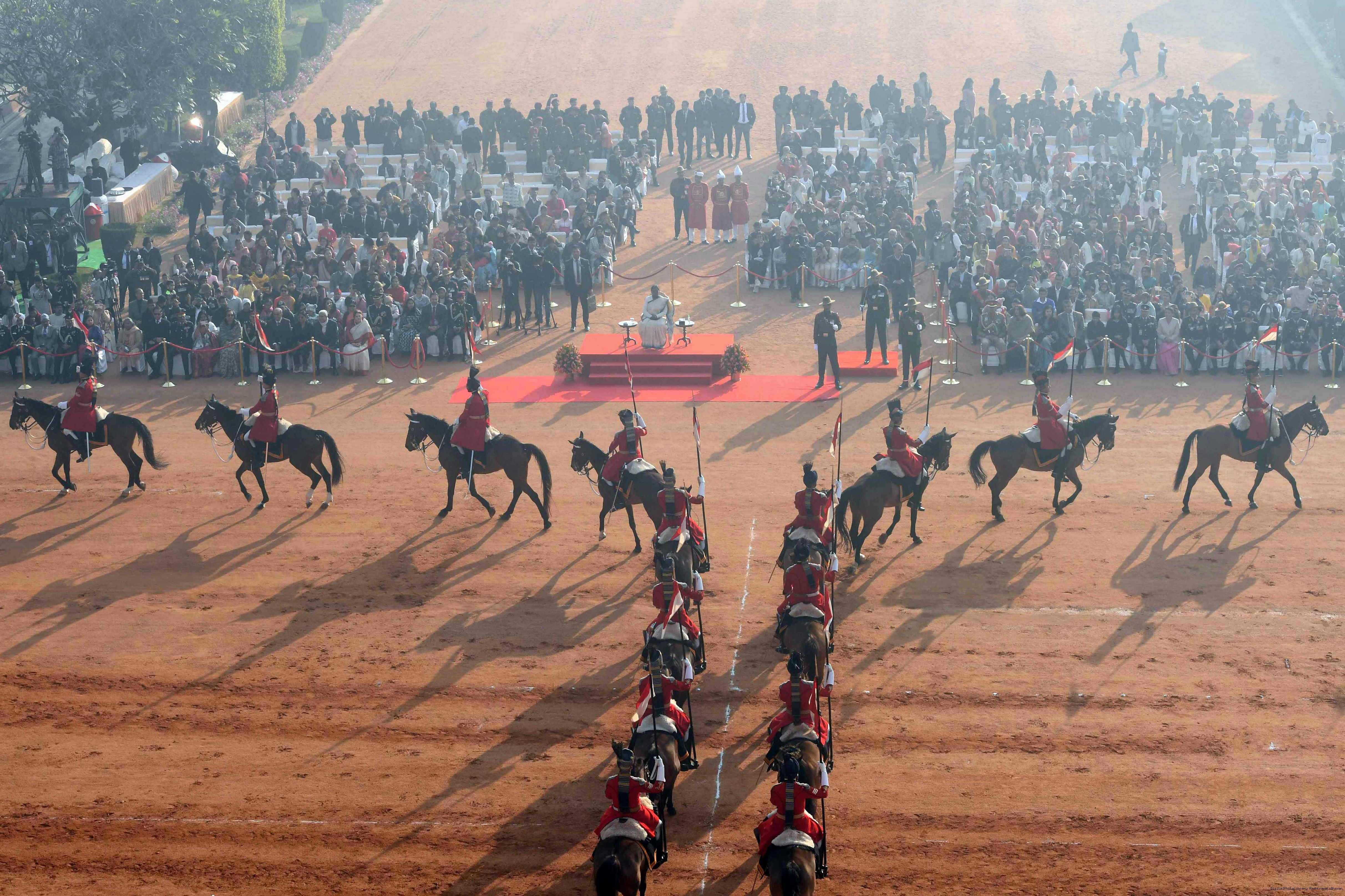 | Caption: | The President of India, Smt Droupadi Murmu witnessed the inaugural show of Change of Guard Ceremony in new format this morning at the Forecourt of Rashtrapati Bhavan on February 16, 2025. Vol-V |
