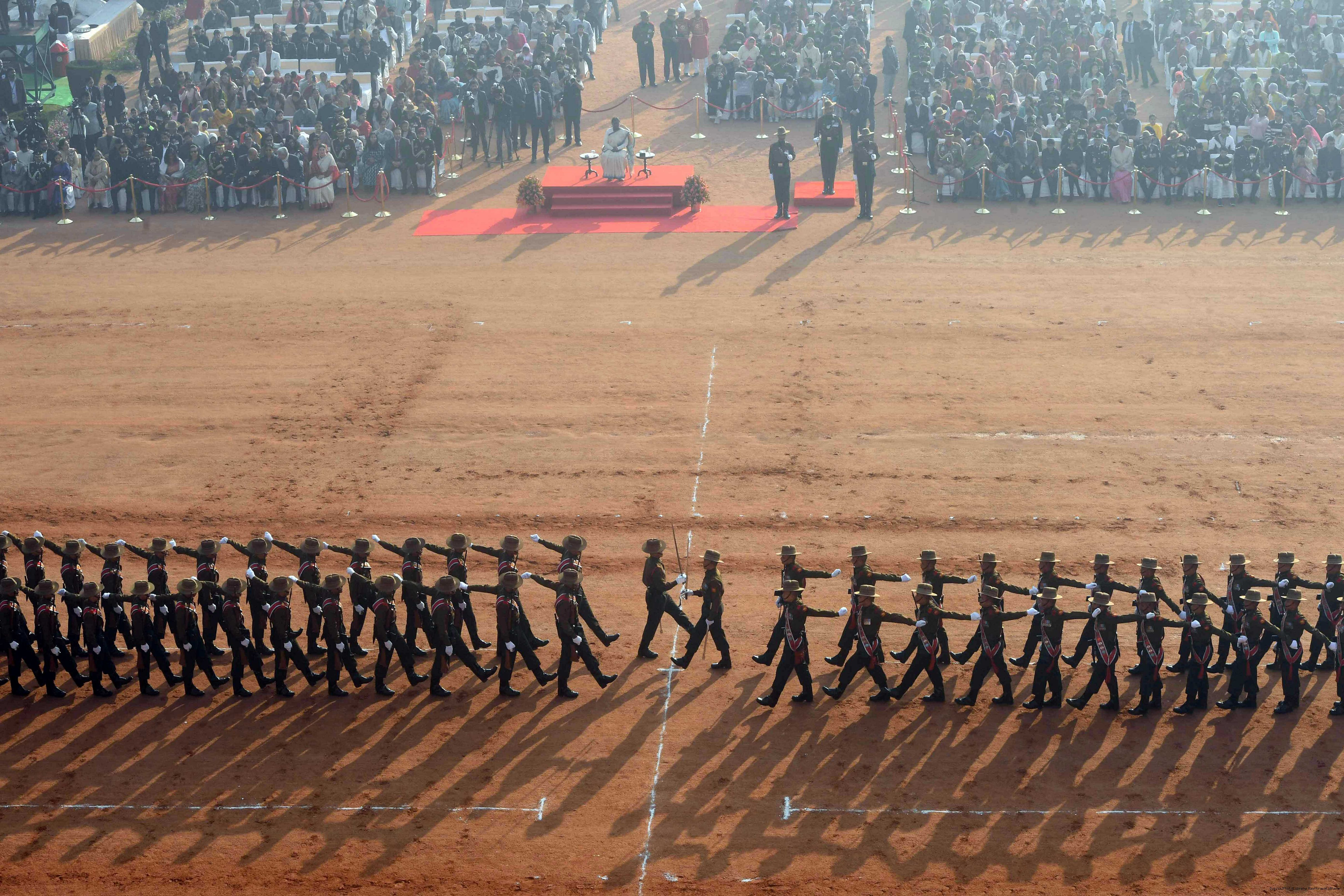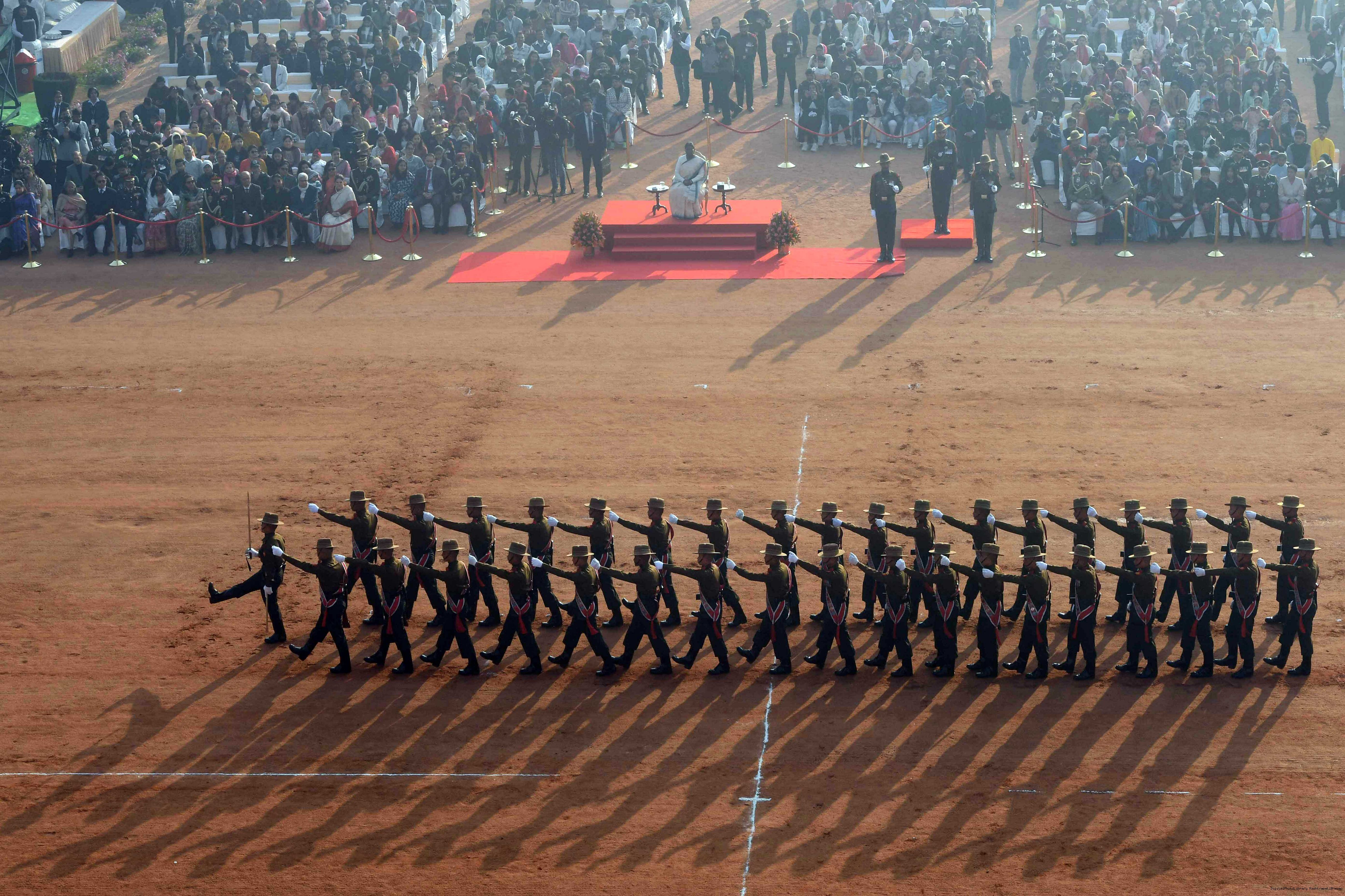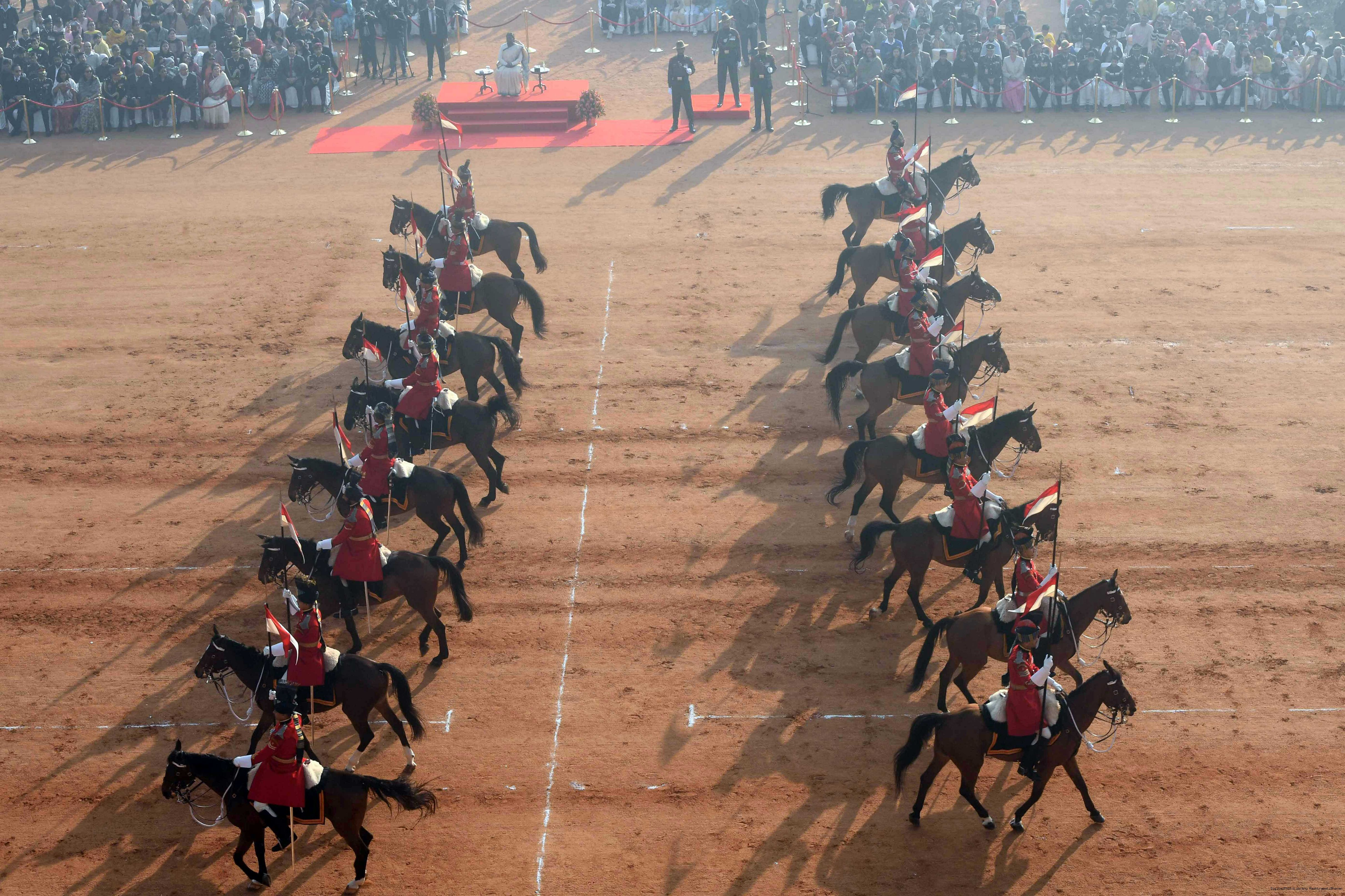 | Caption: | The President of India, Smt Droupadi Murmu witnessed the inaugural show of Change of Guard Ceremony in new format this morning at the Forecourt of Rashtrapati Bhavan on February 16, 2025. Vol-V |