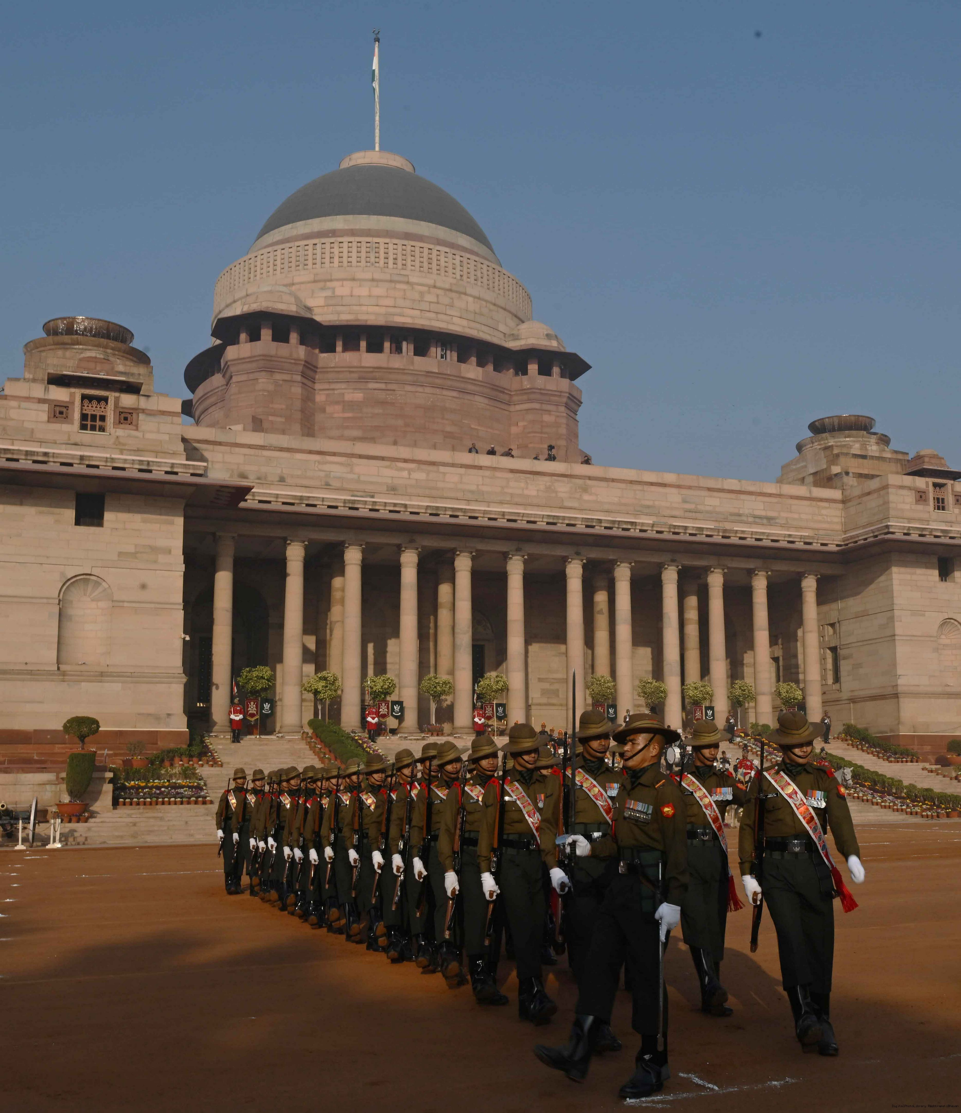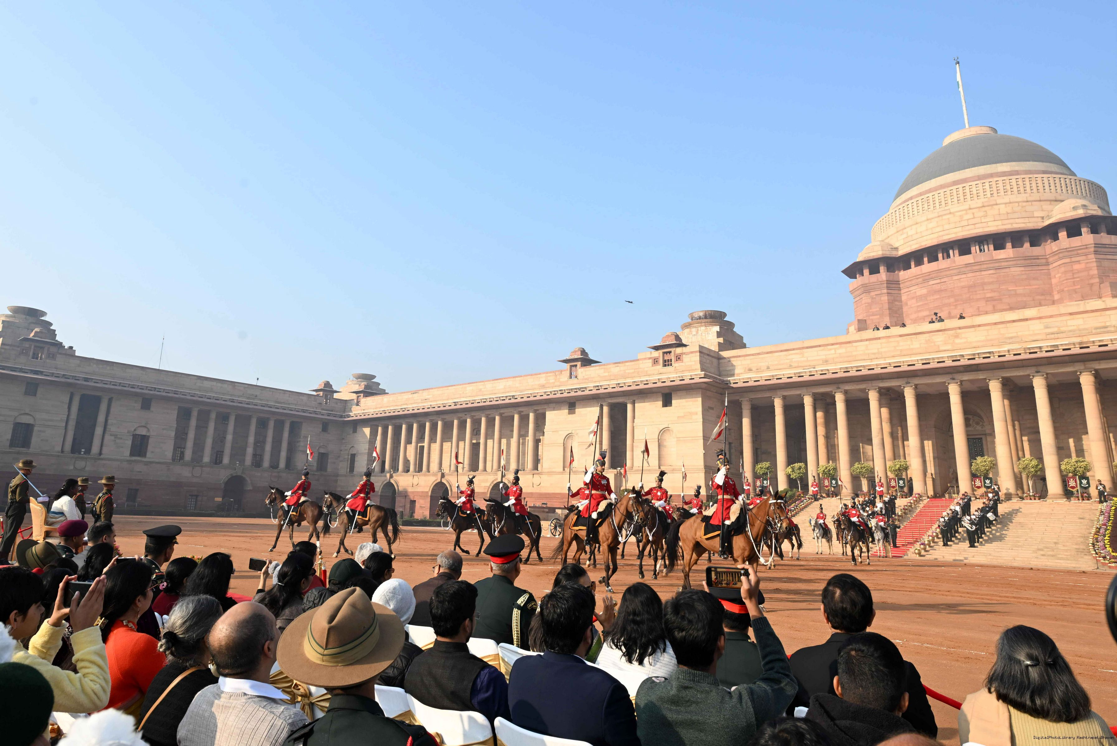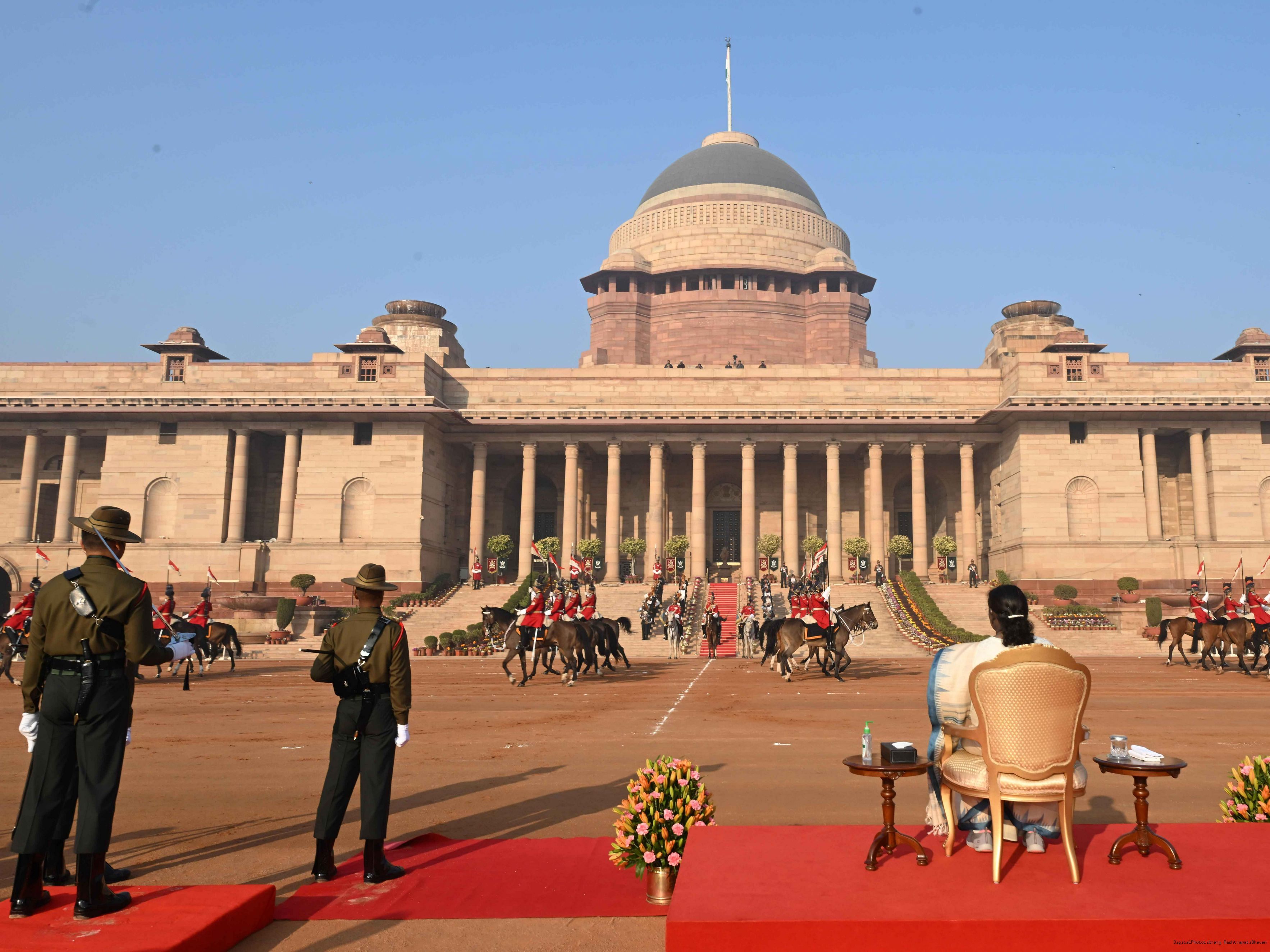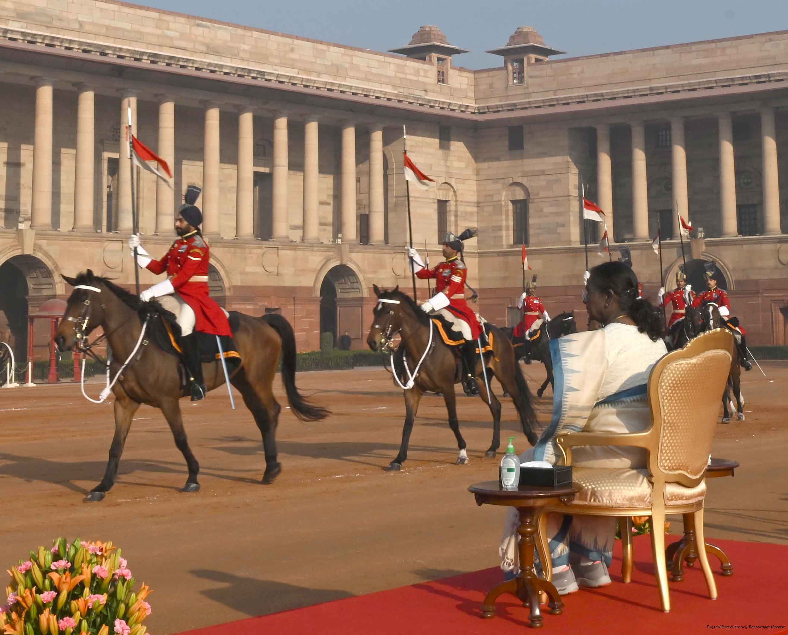 | Caption: | The President of India, Smt Droupadi Murmu witnessed the inaugural show of Change of Guard Ceremony in new format this morning at the Forecourt of Rashtrapati Bhavan on February 16, 2025. Vol-VII |
