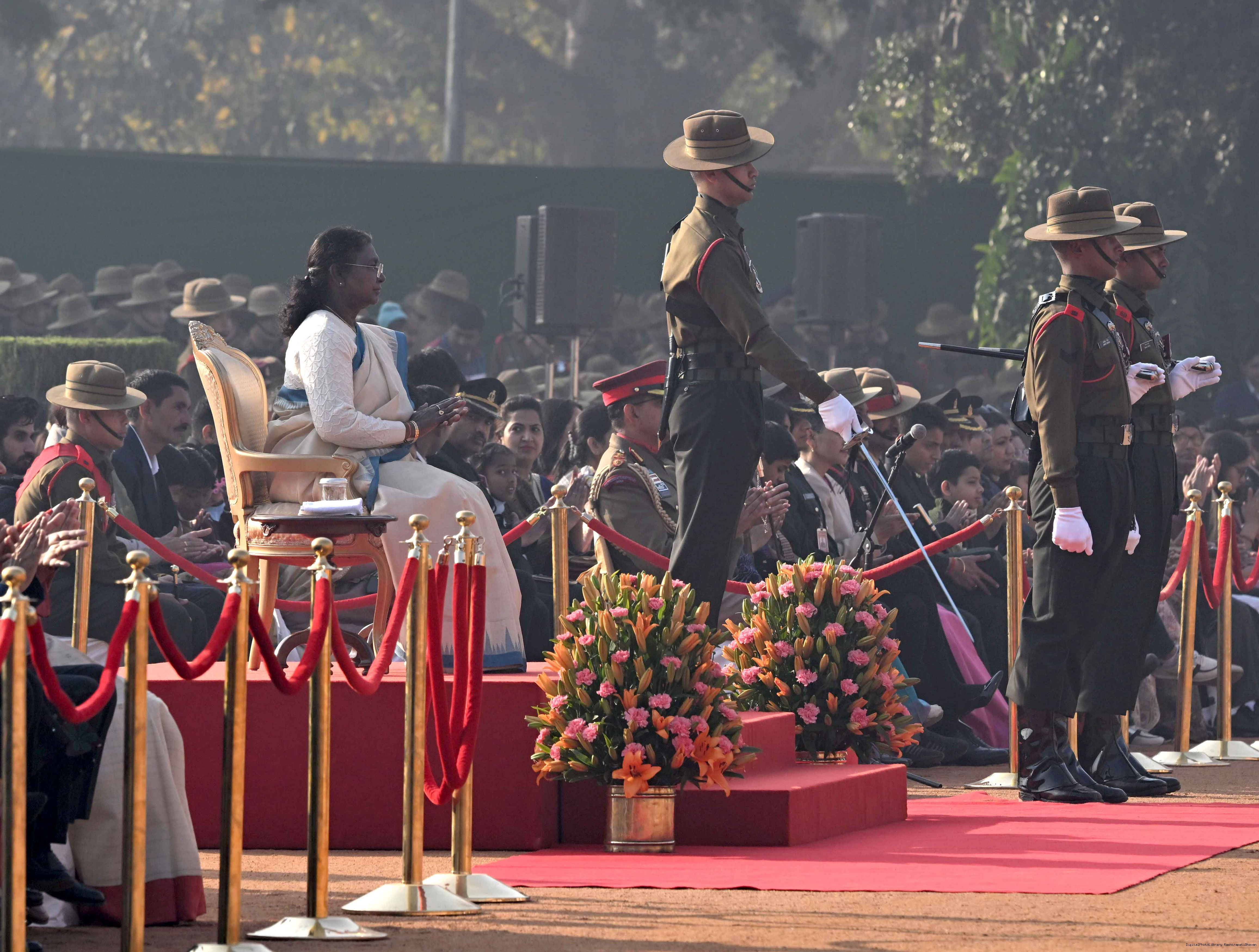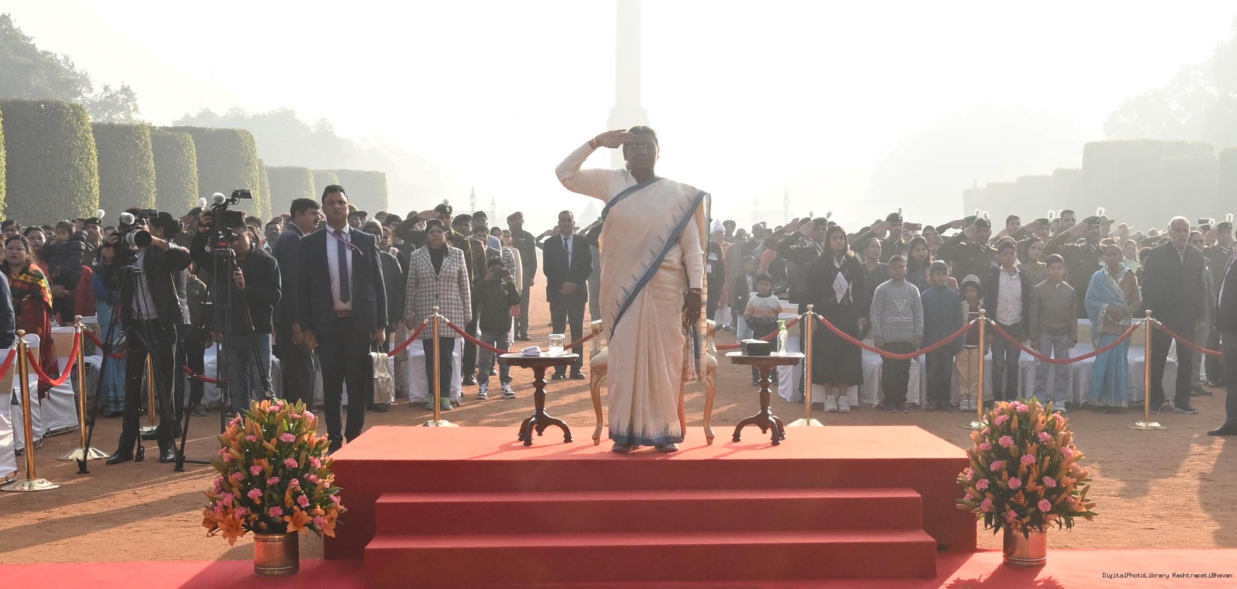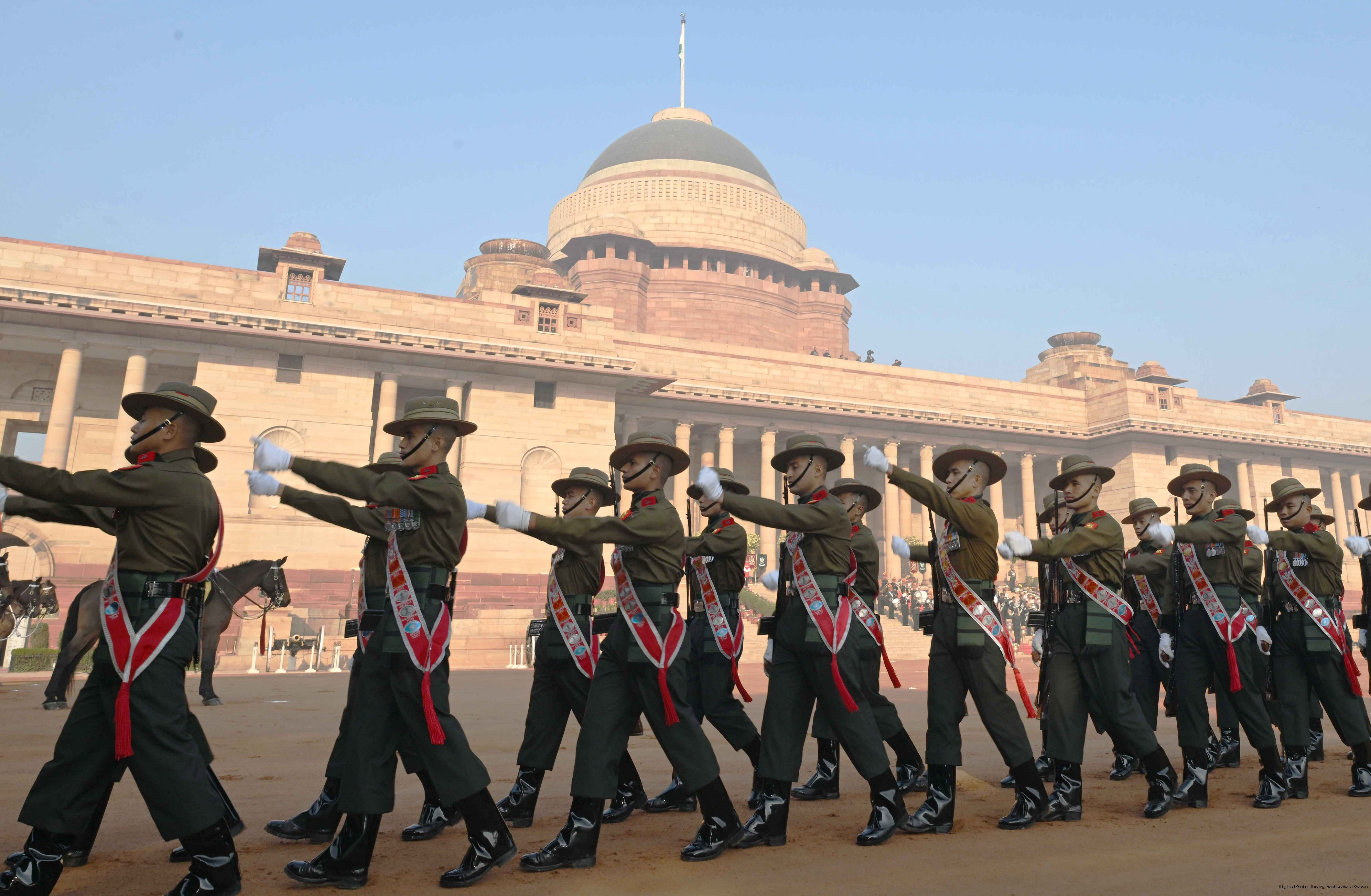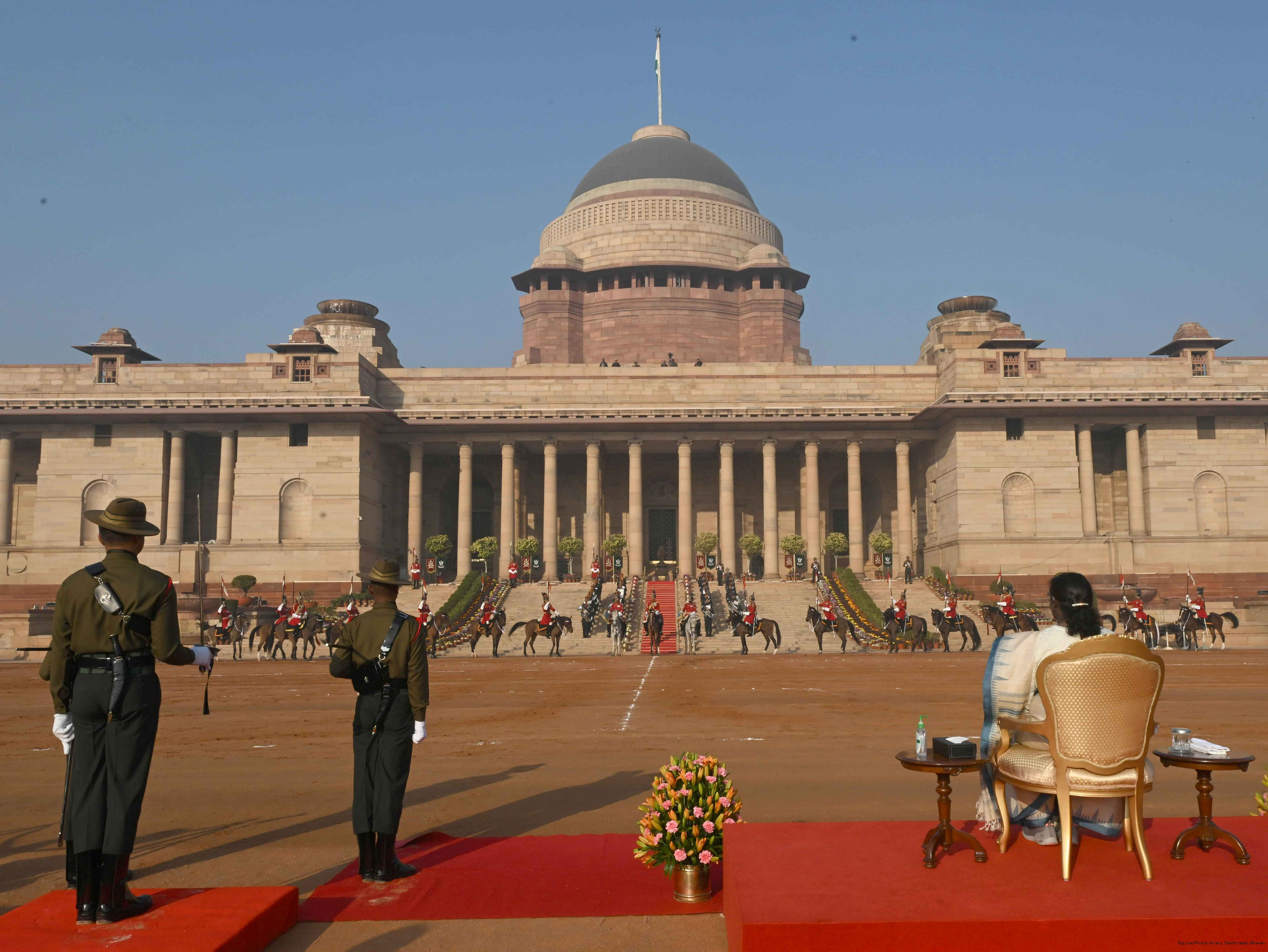 | Caption: | The President of India, Smt Droupadi Murmu witnessed the inaugural show of Change of Guard Ceremony in new format this morning at the Forecourt of Rashtrapati Bhavan on February 16, 2025. Vol-VII |