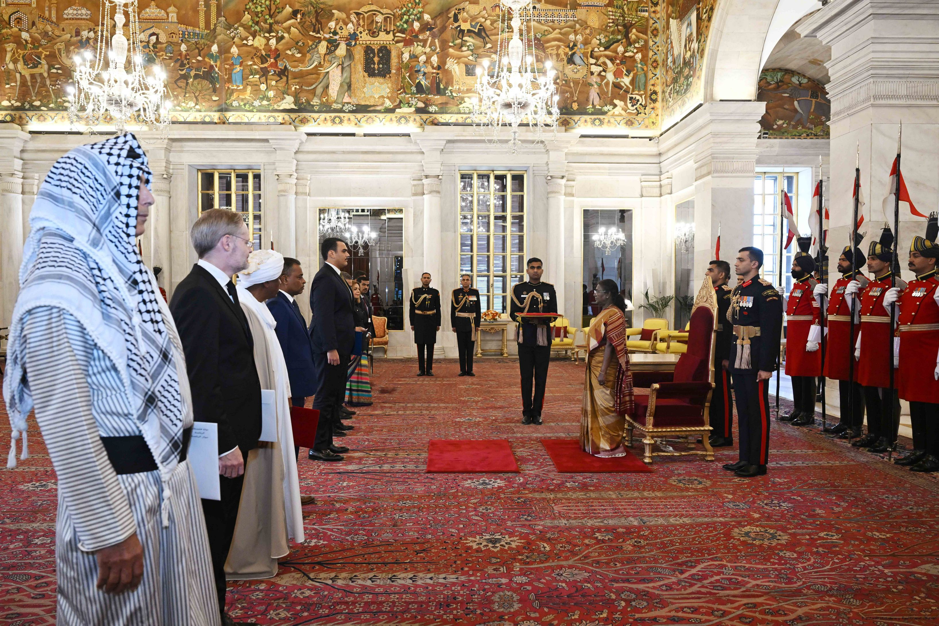 | Caption: | Miscellaneous photos during Presentation of Credentials (Panama, Guyana, Sudan, Denmark, Palestine) at Ashok Hall of Rashtrapati Bhavan in New Delhi on February 20, 2025. |