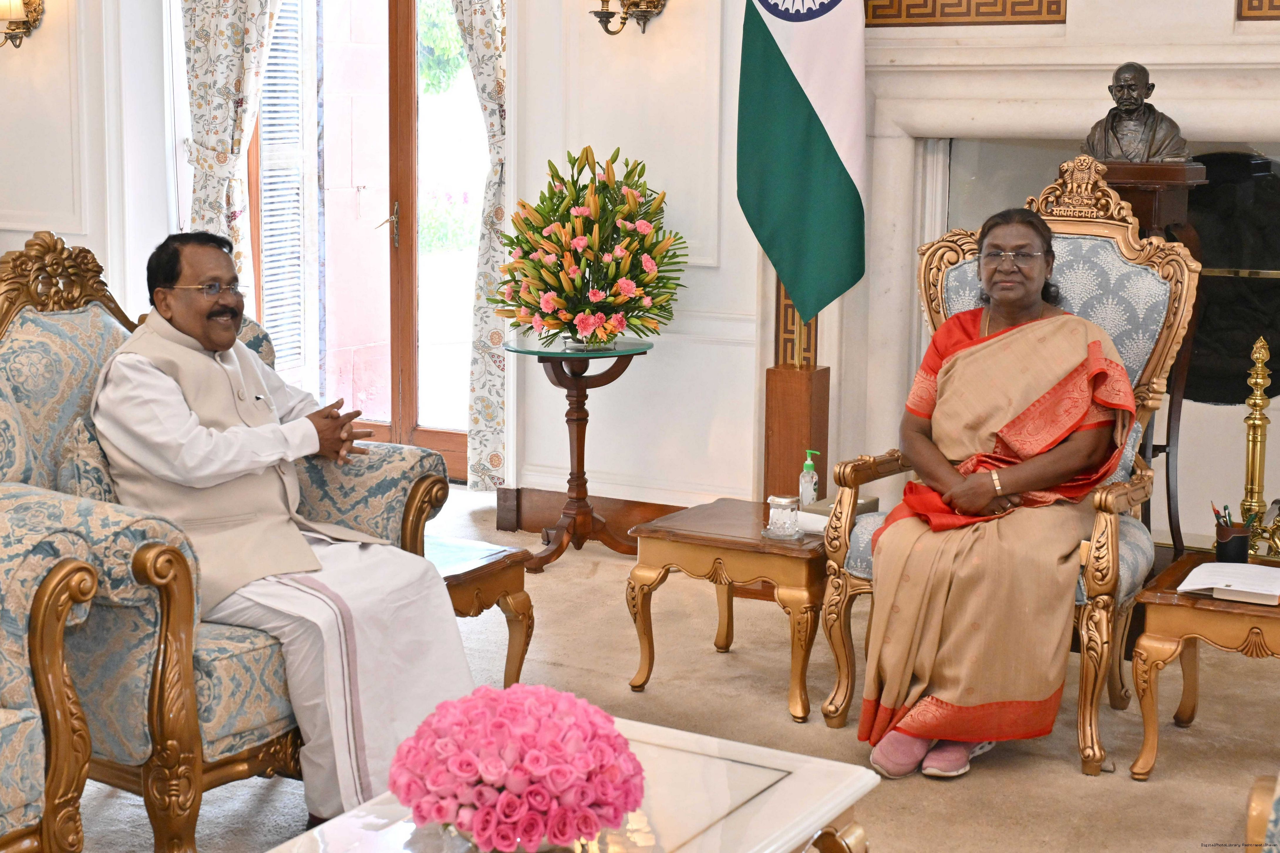 | Caption: | The Governor of Goa, Shri P.S. Sreedharan Pillai called on the President of India Smt. Droupadi Murmu at Rashtrapati Bhavan on February 21, 2025. |