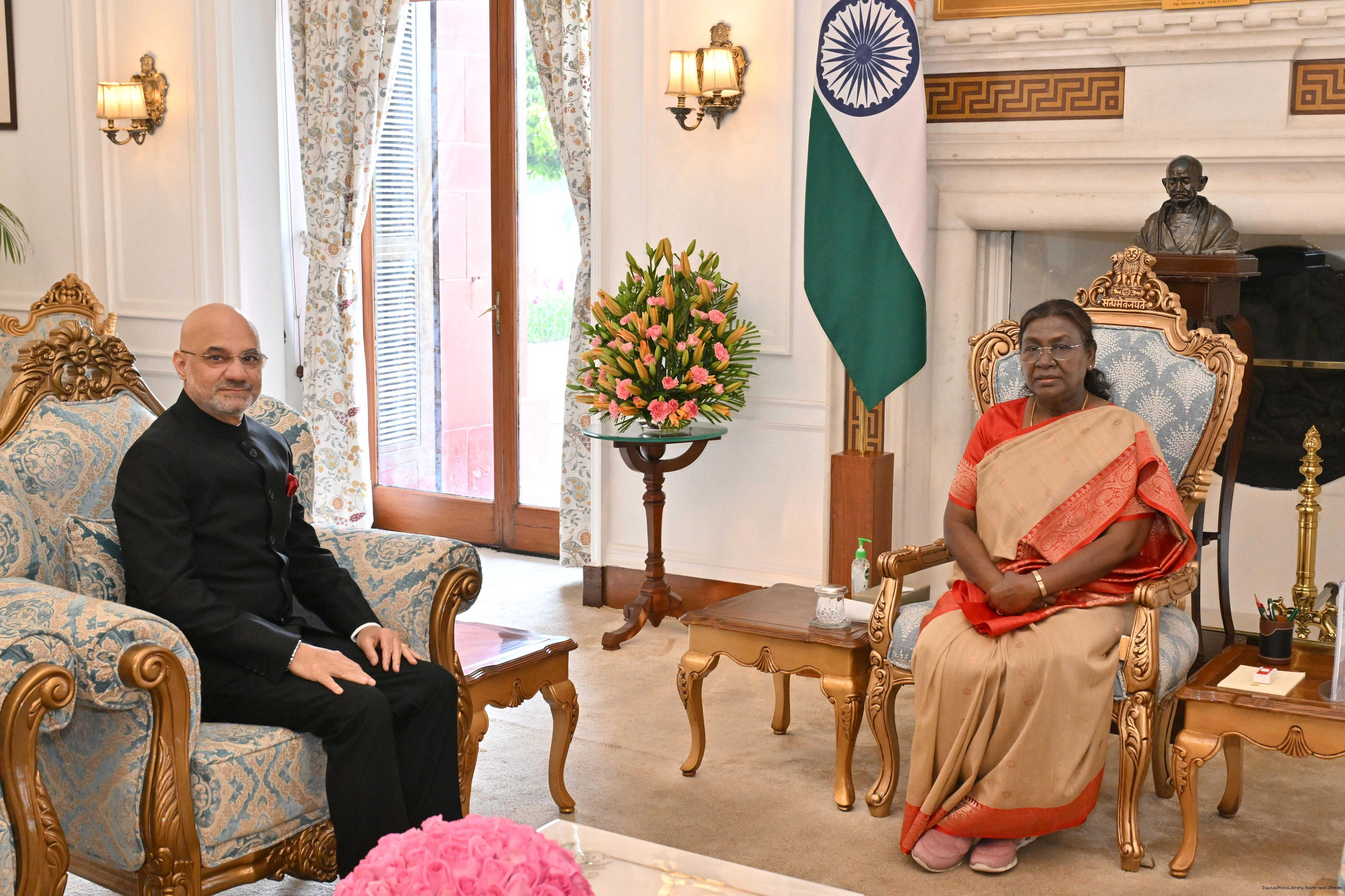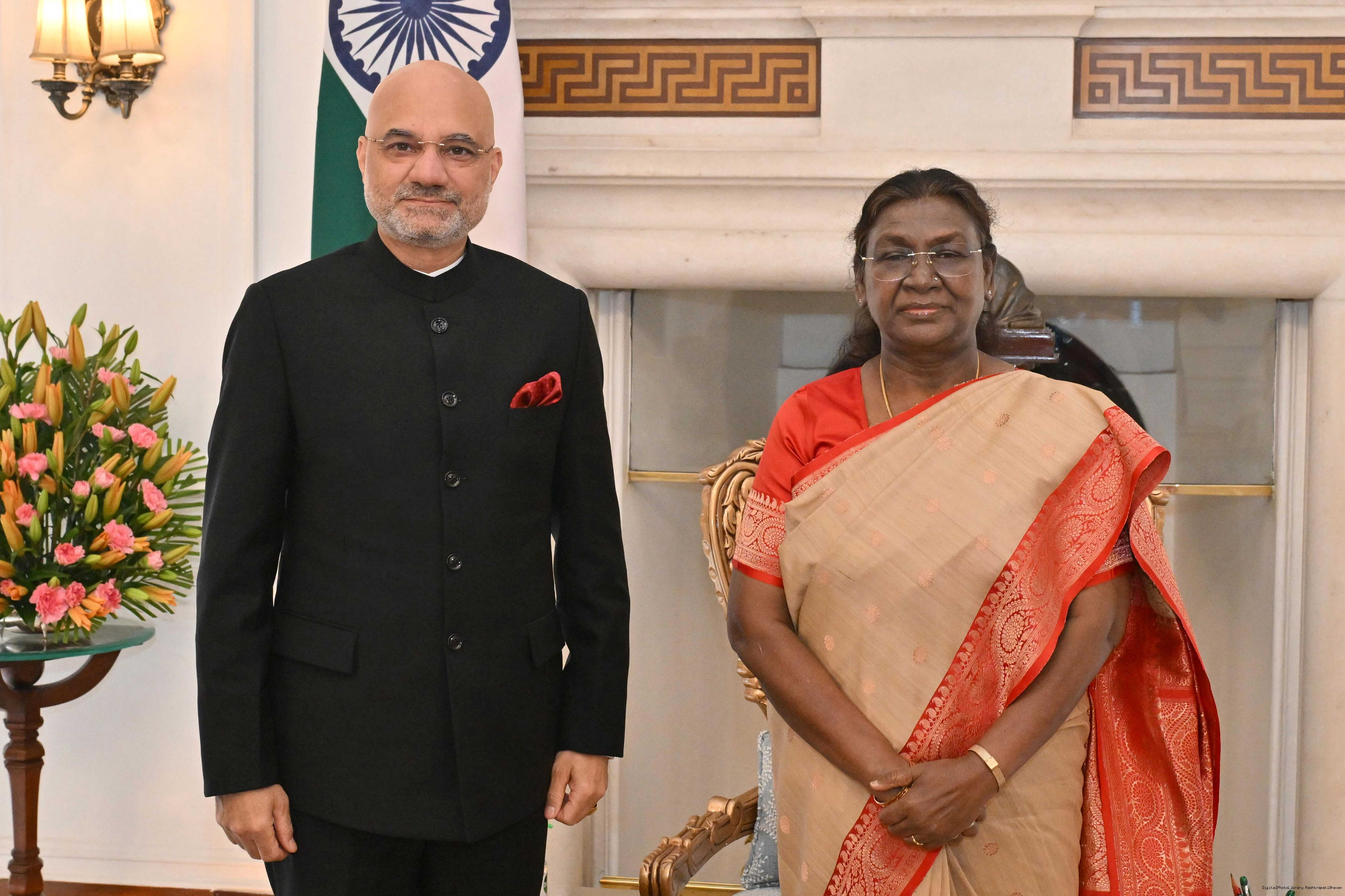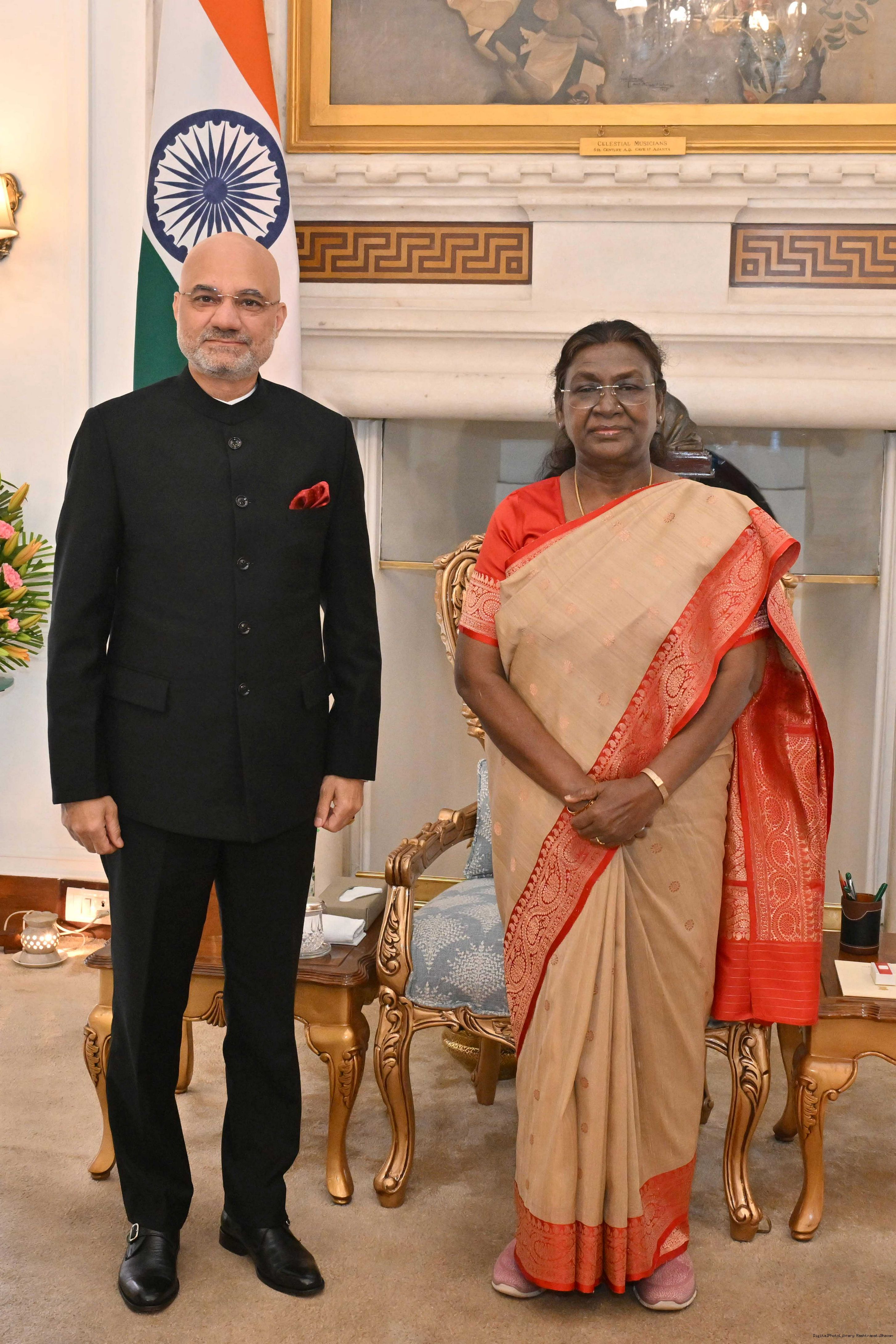 | Caption: | The Ambassador-designate of India to the Federative Republic of Brazil, Shri Dinesh Bhatia meeting with the President of India Smt. Droupadi Murmu at Rashtrapati Bhavan on February 21, 2025. |