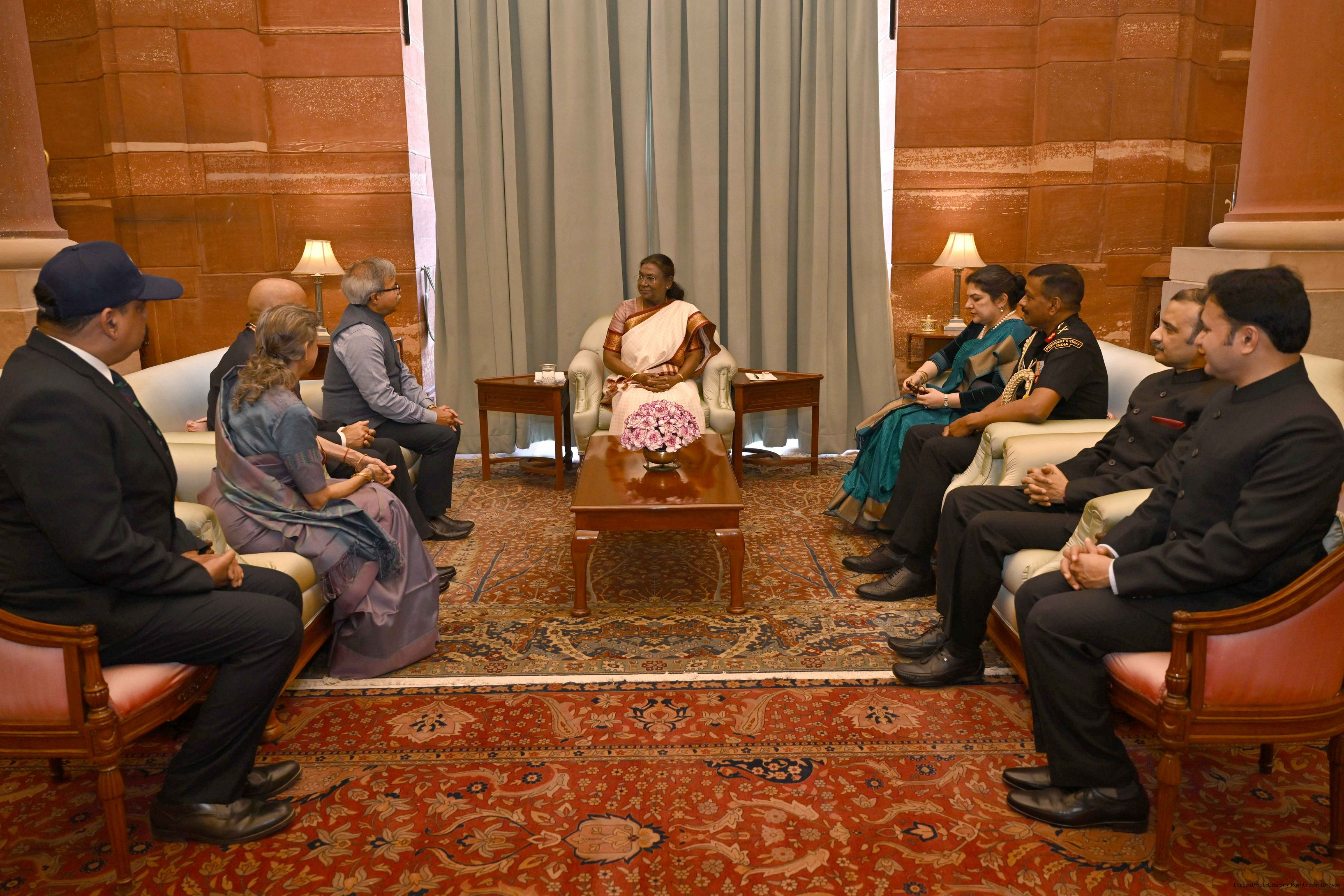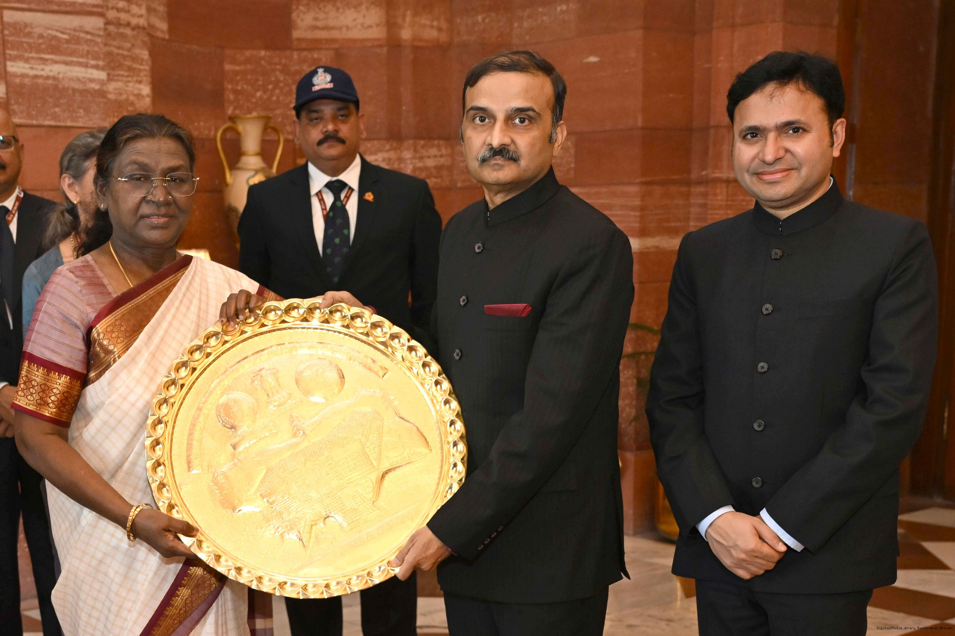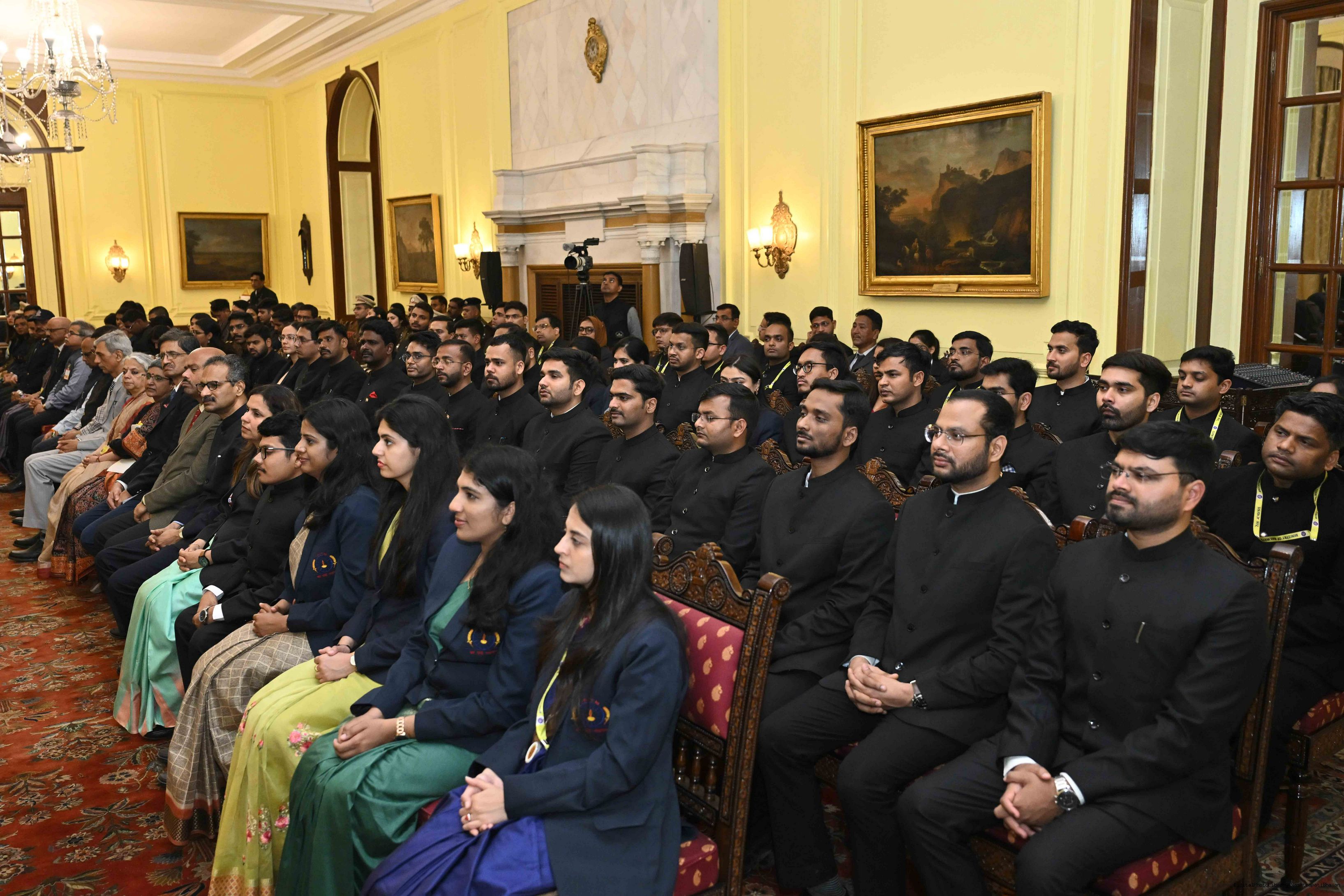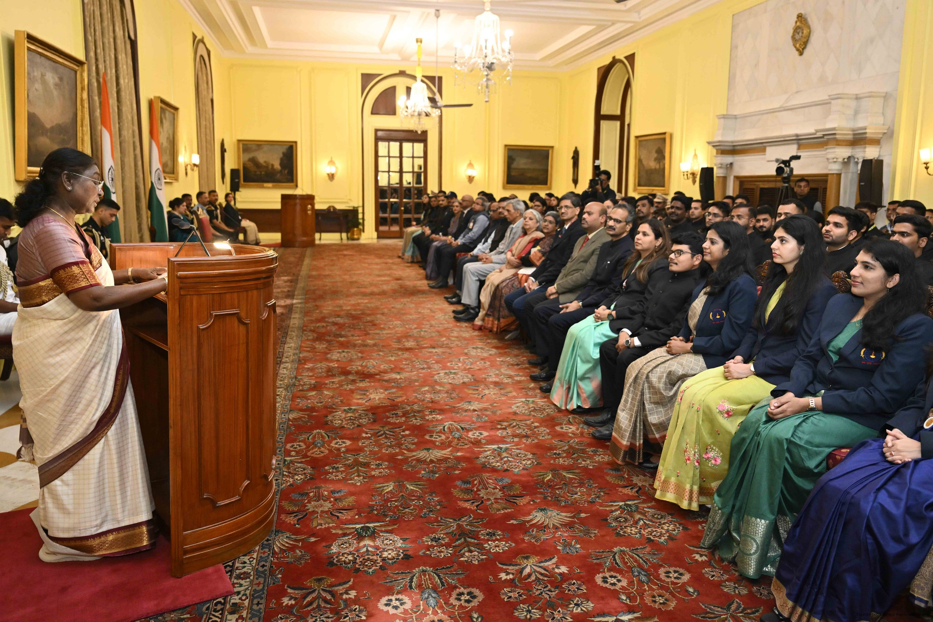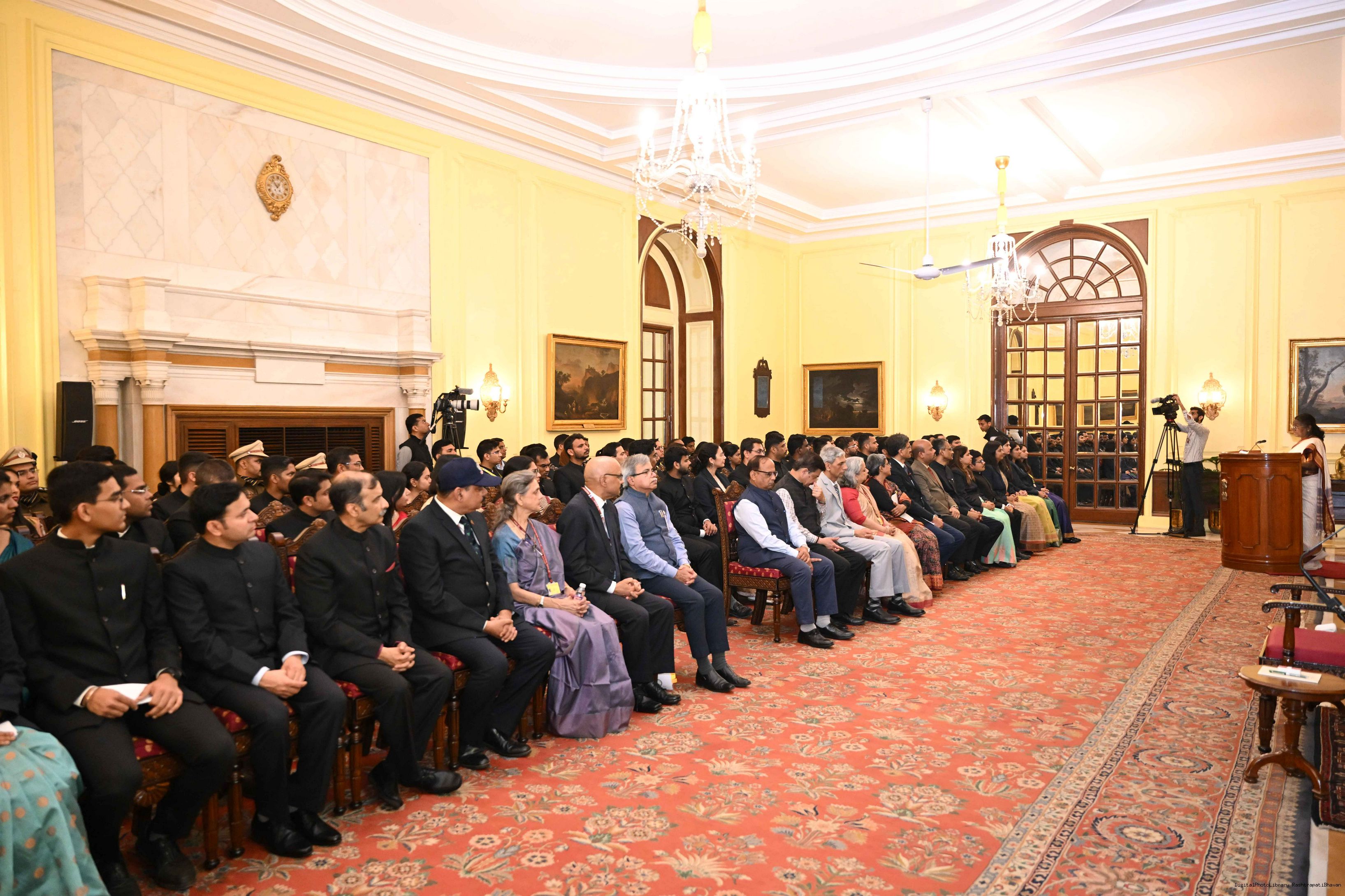 | Caption: | A group of officer trainees of Indian Audit and Accounts Service, Indian Railway Protection Force Service, Indian Railway Management Service (Accounts) and Indian Railway Management Service (Traffic) called on the President of India, Smt Droupadi Murmu at Rashtrapati Bhavan on February 24, 2025. |