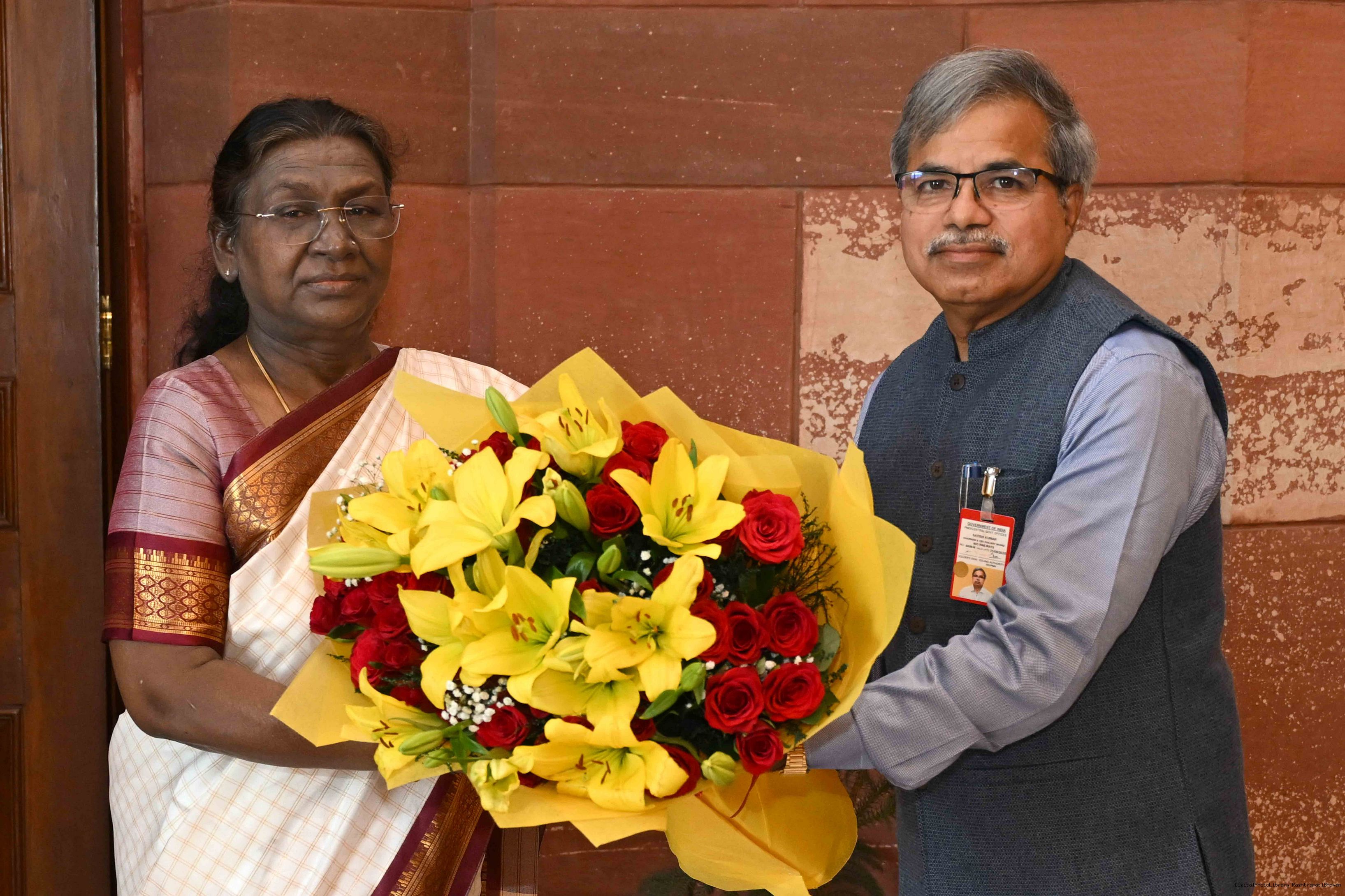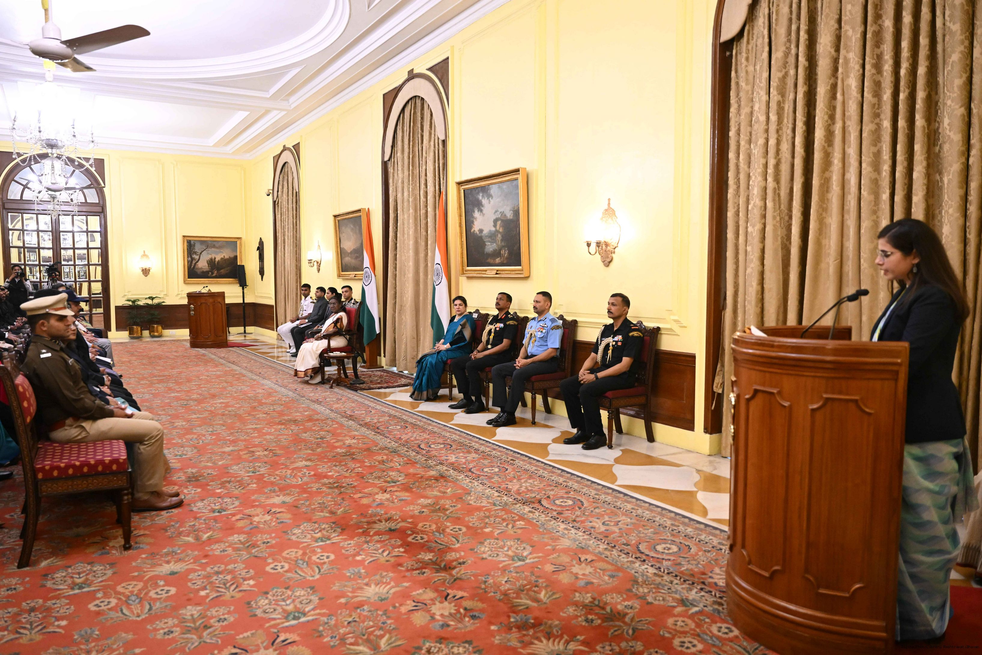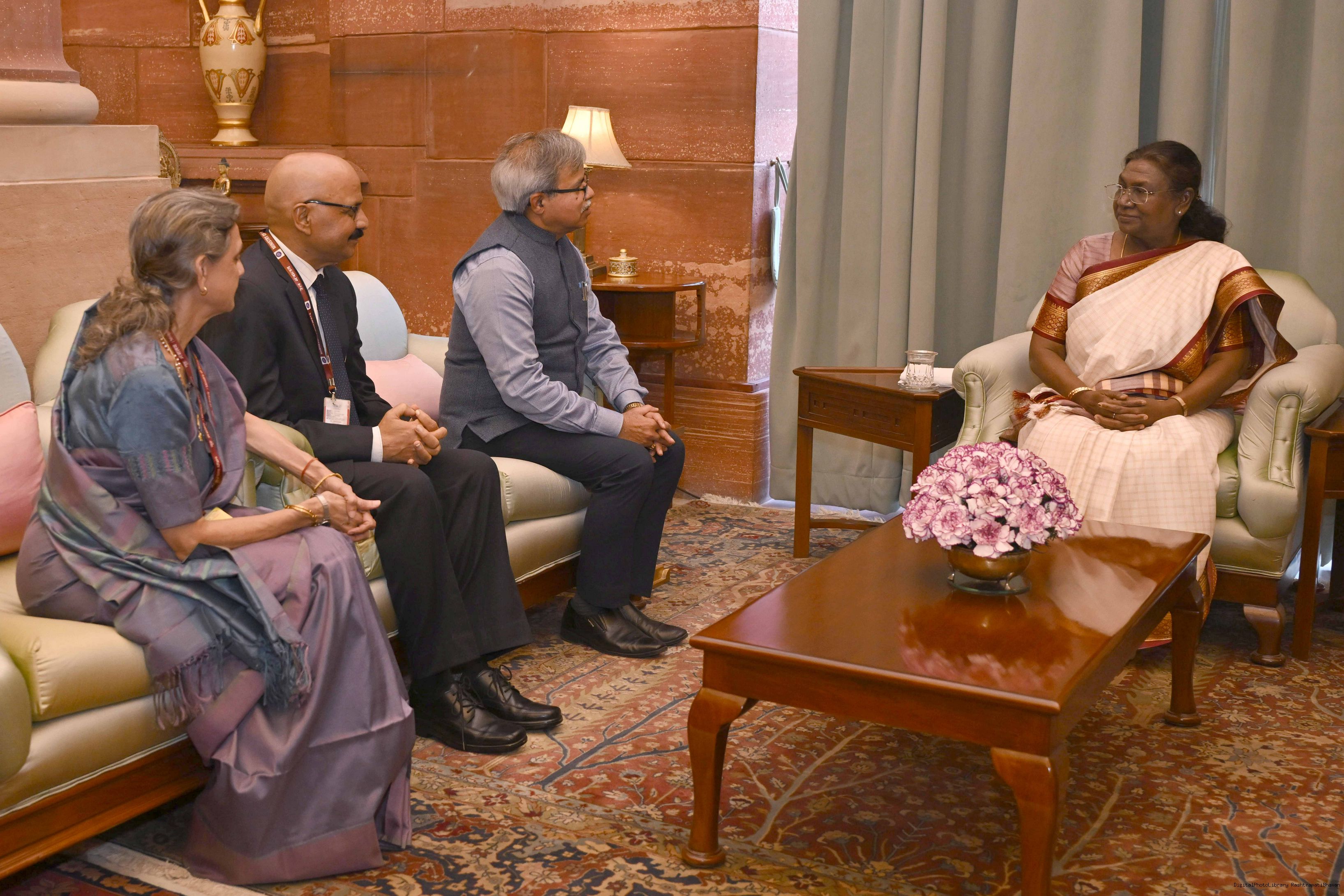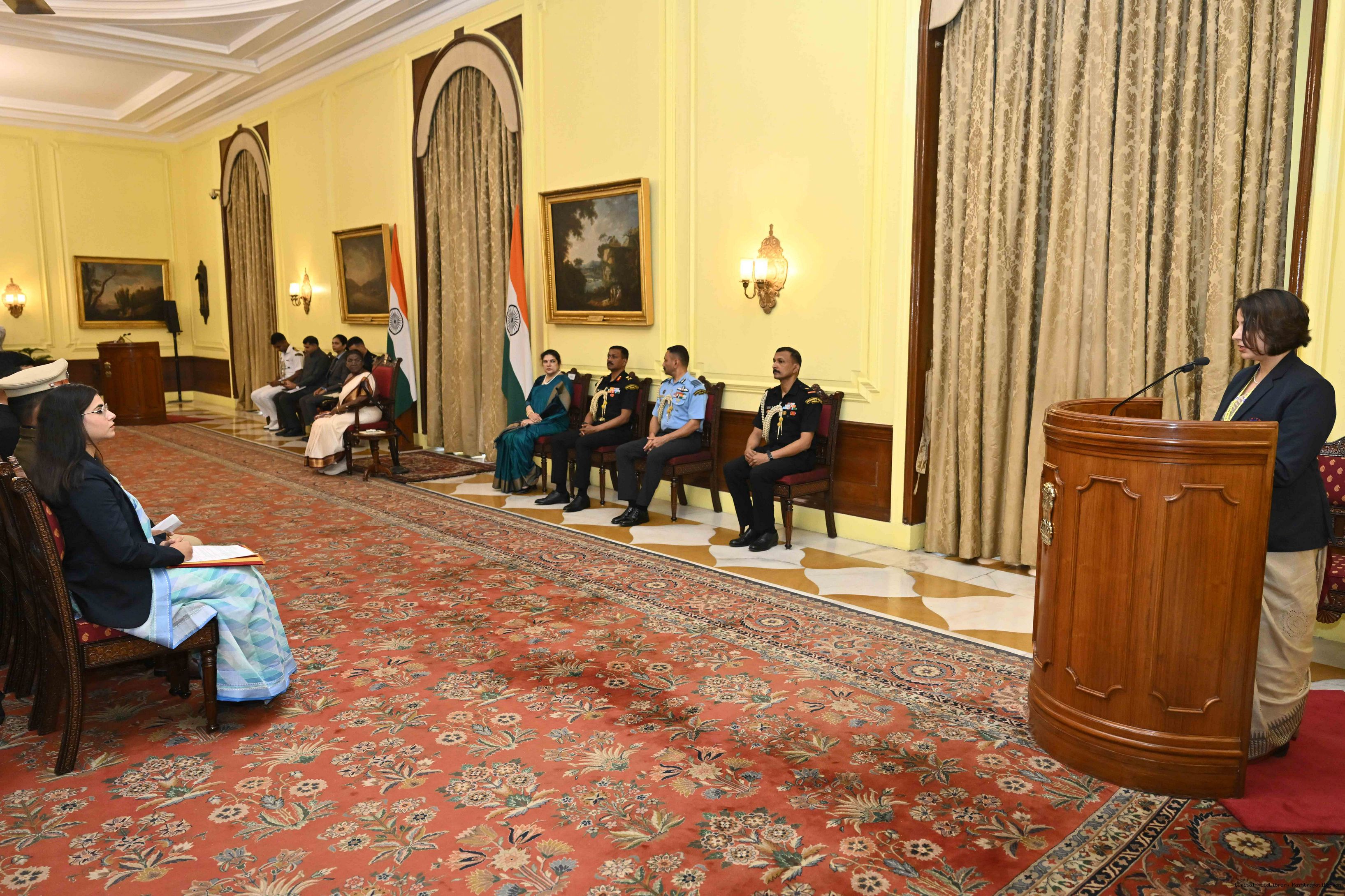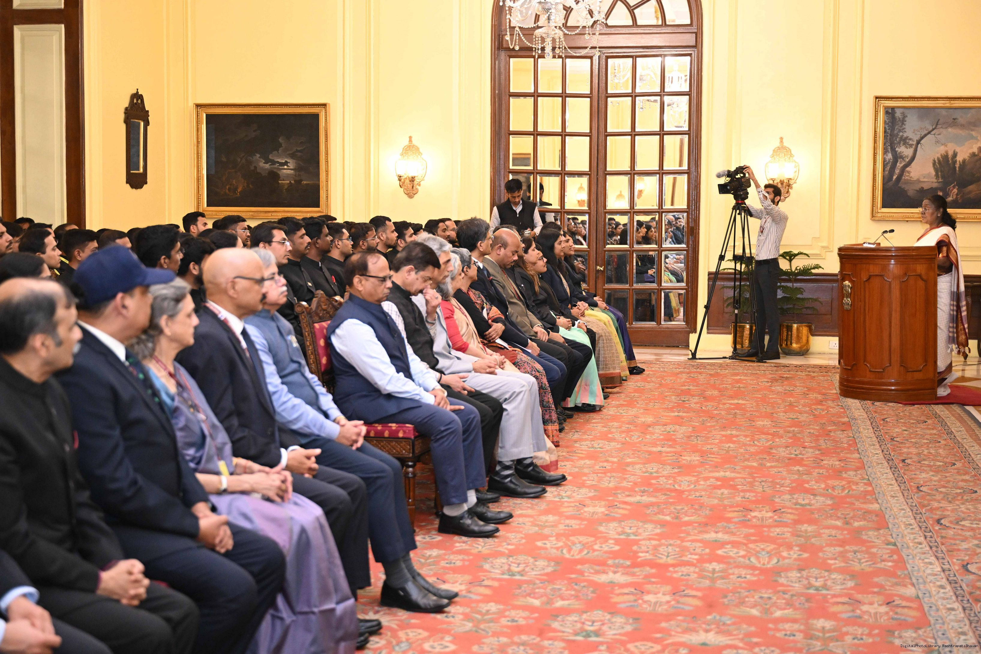 | Caption: | A group of officer trainees of Indian Audit and Accounts Service, Indian Railway Protection Force Service, Indian Railway Management Service (Accounts) and Indian Railway Management Service (Traffic) called on the President of India, Smt Droupadi Murmu at Rashtrapati Bhavan on February 24, 2025. |