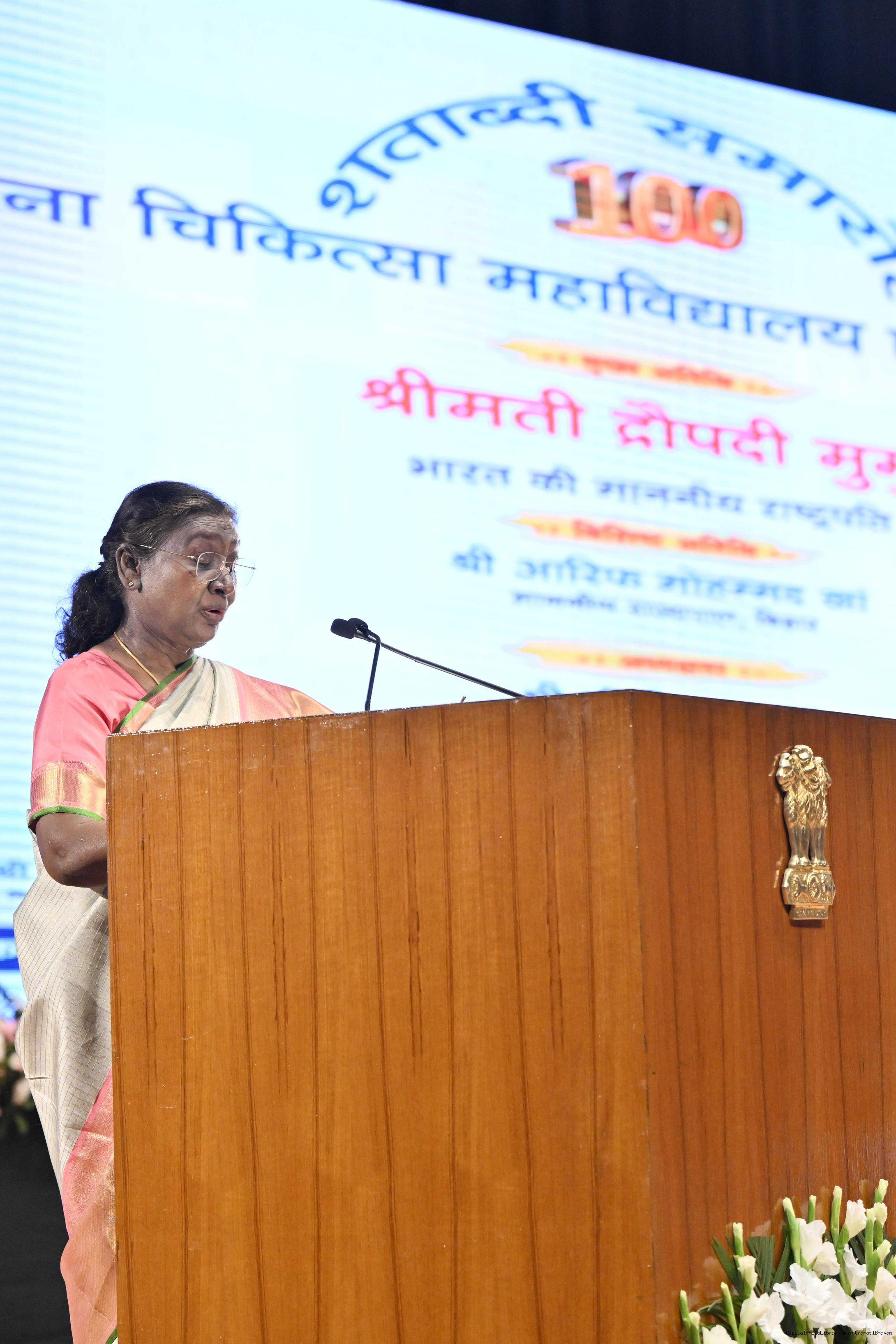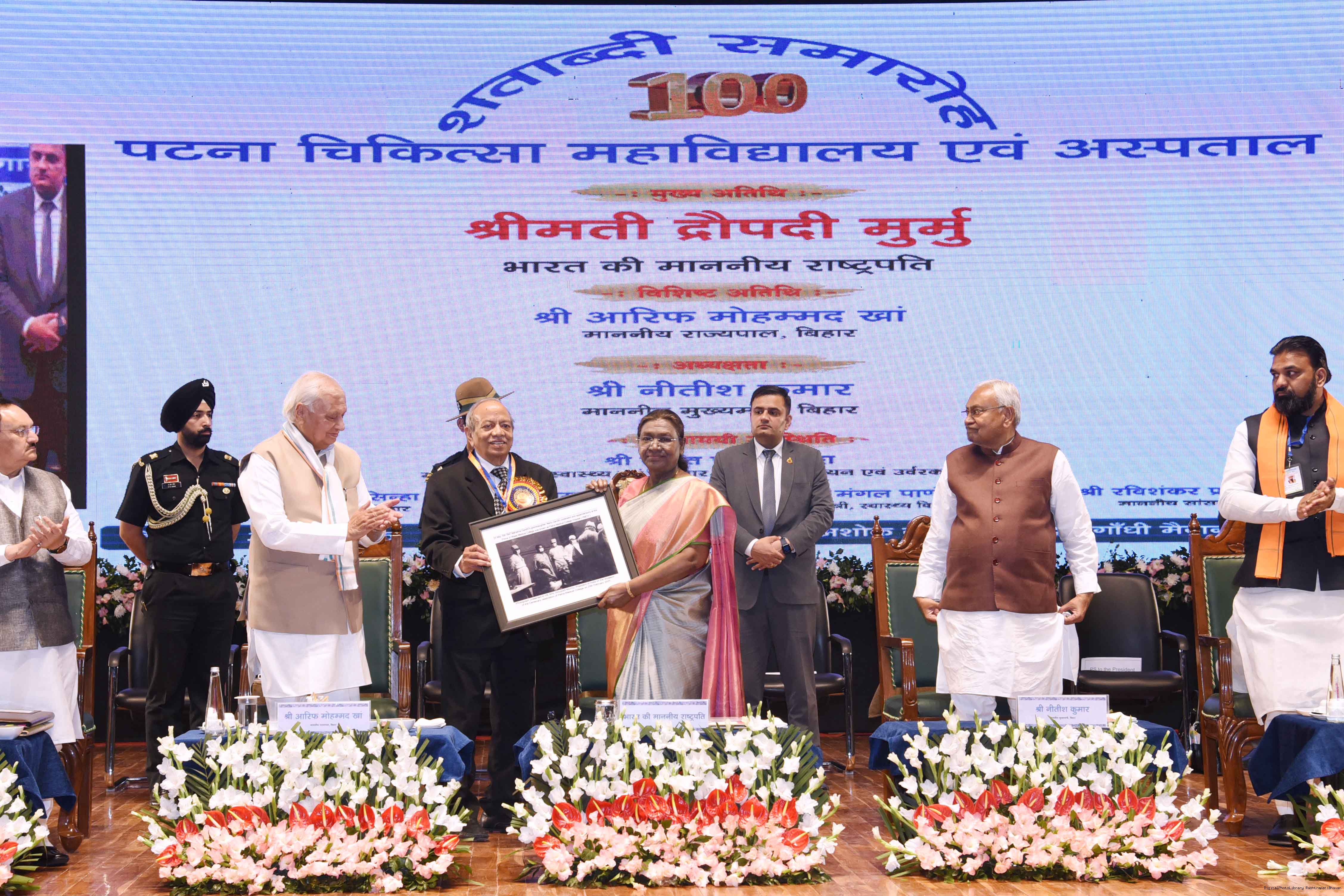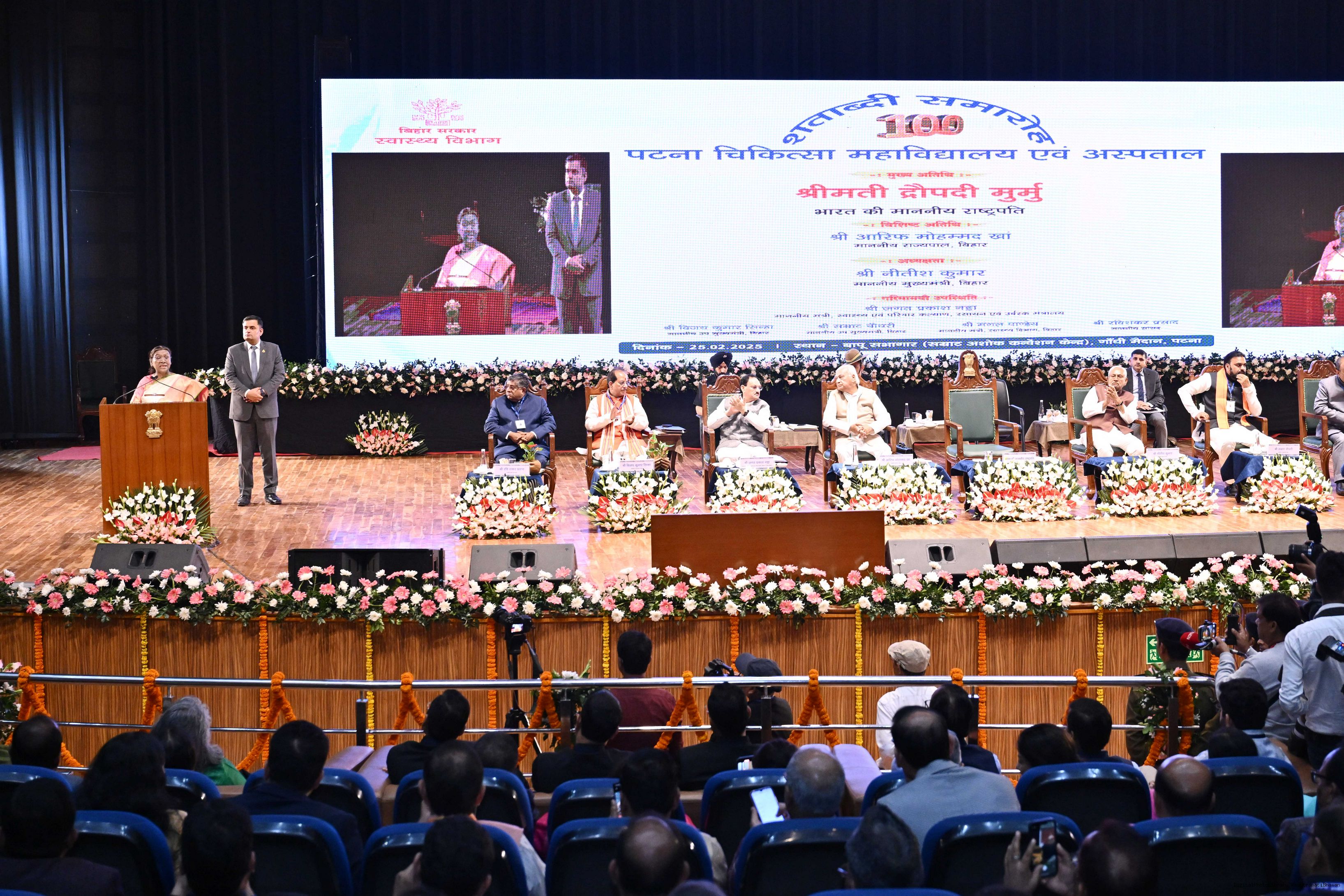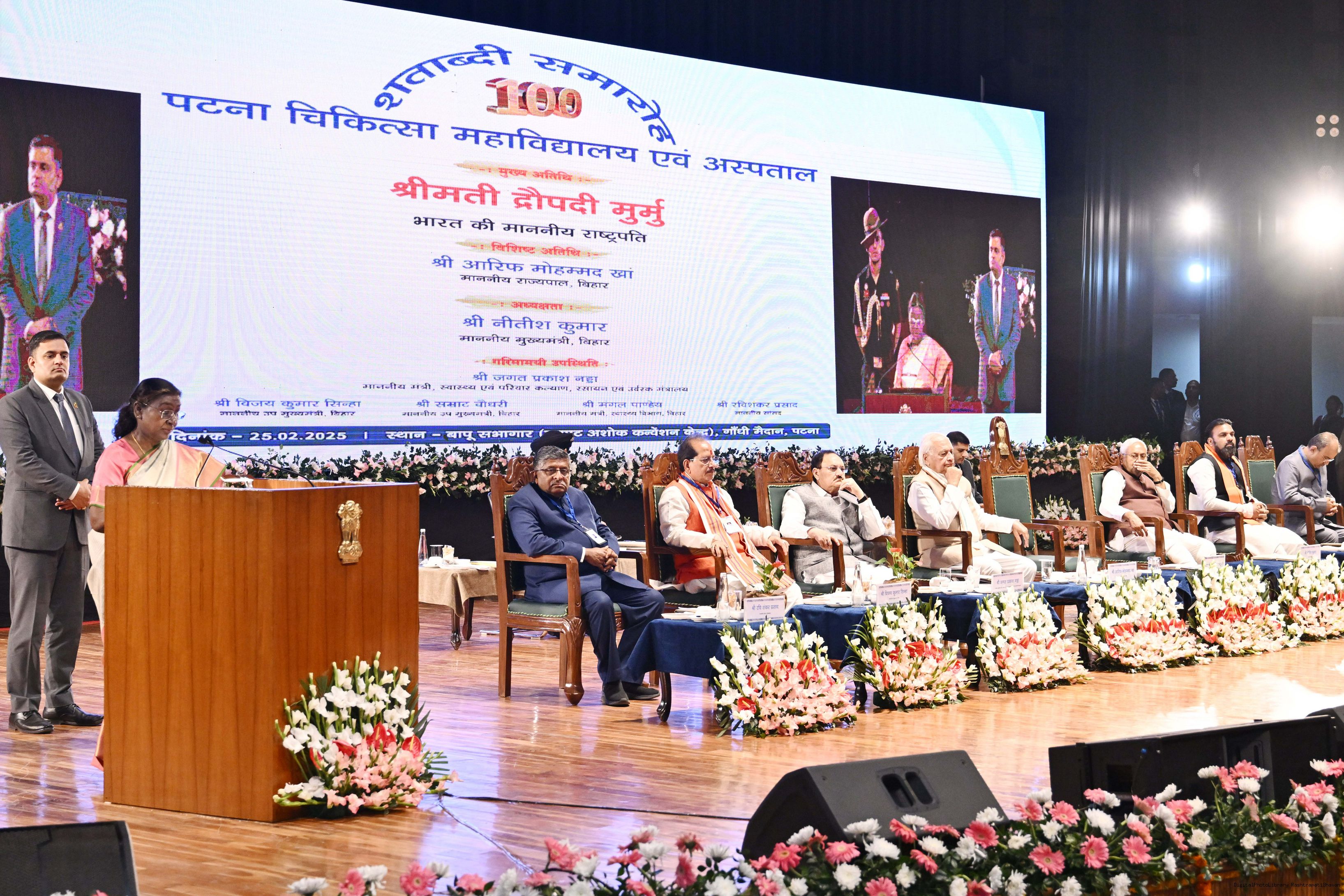 | Caption: | The President of India, Smt Droupadi Murmu, graced the centenary celebration of Patna Medical College in Patna, Bihar on February 25, 2025. |