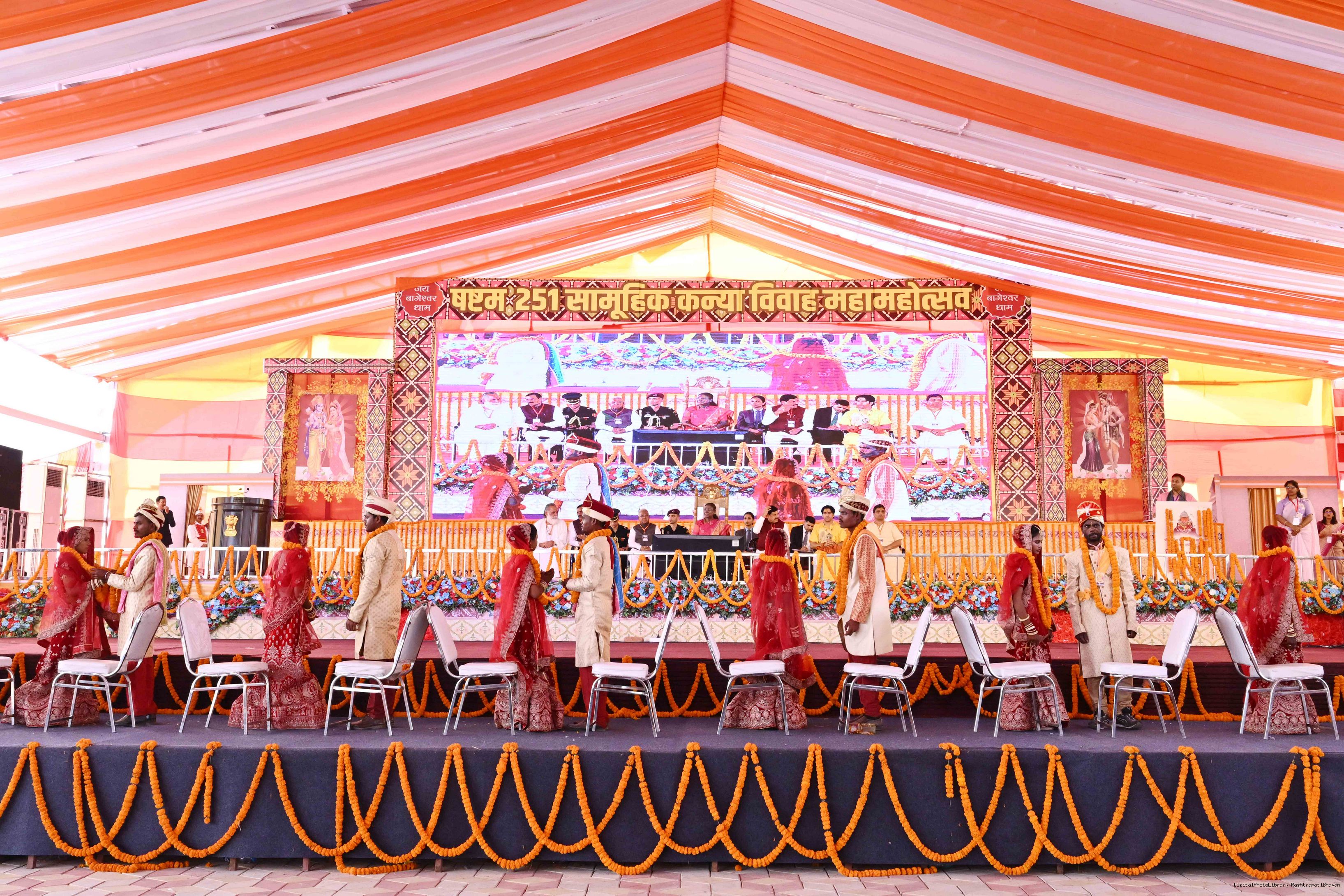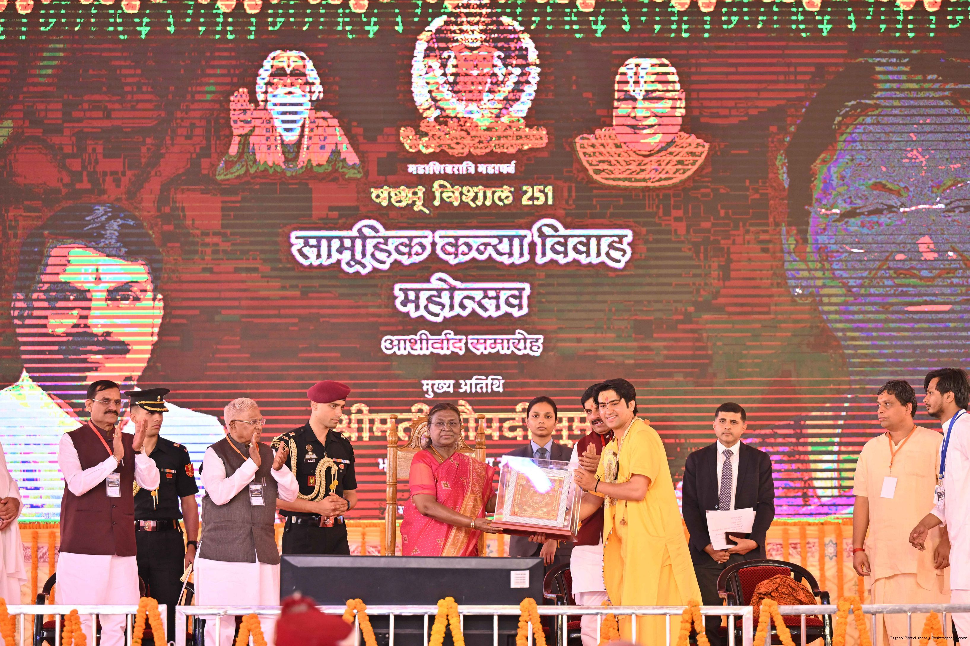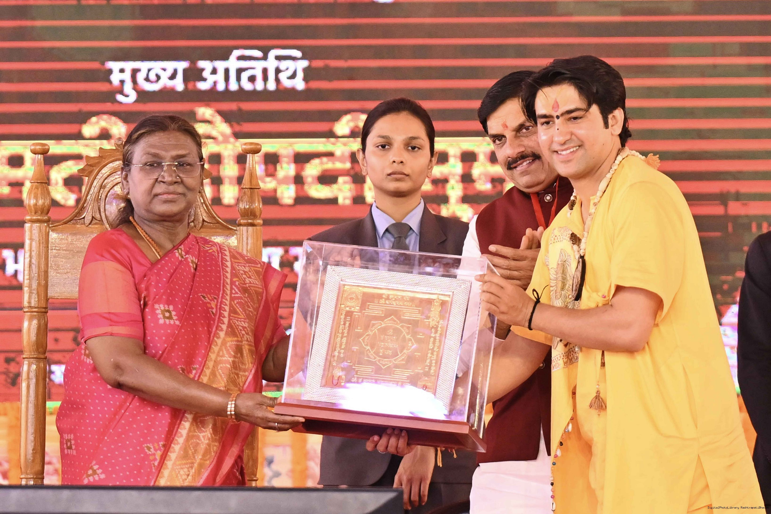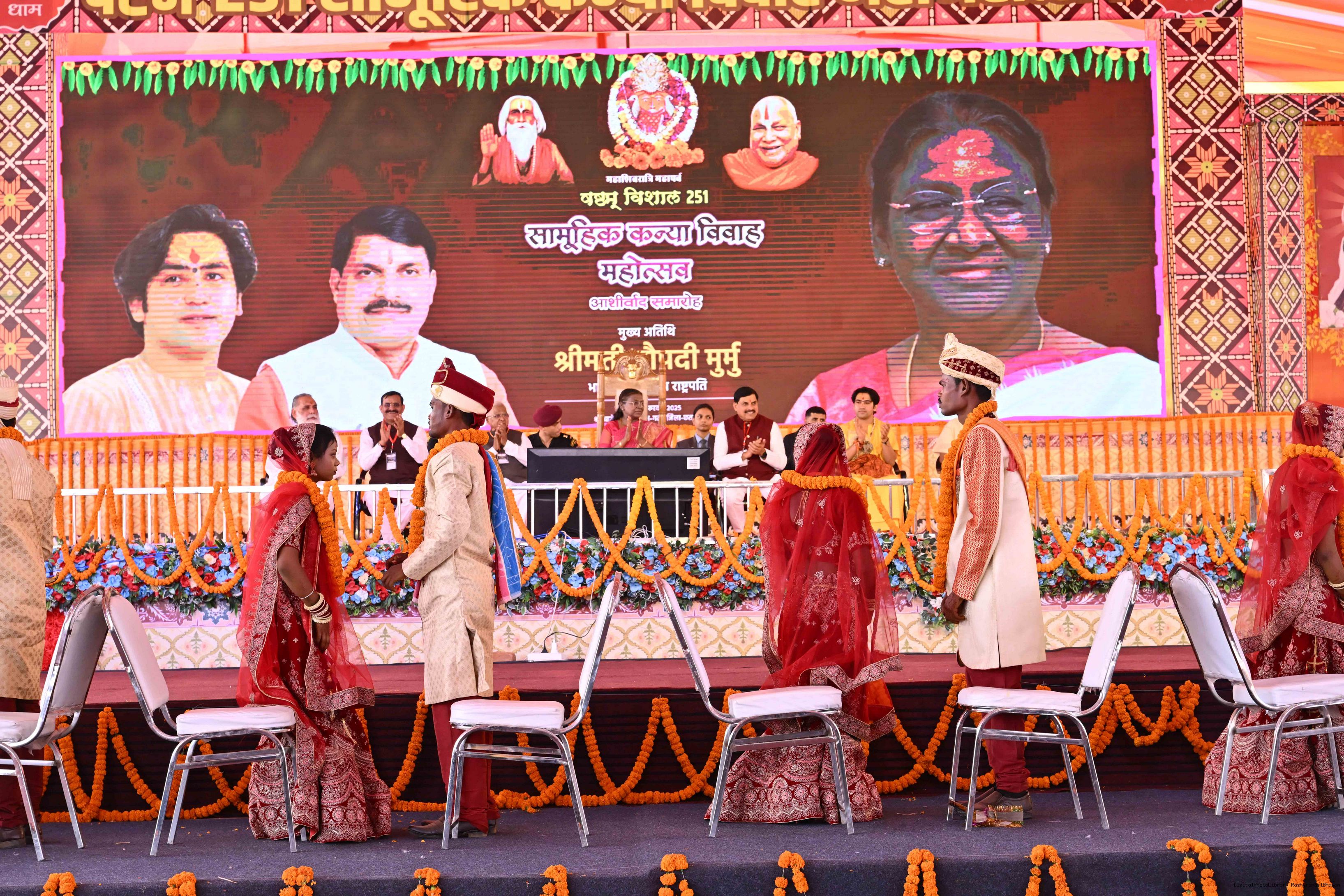 | Caption: | The President of India, Smt. Droupadi Murmu graced a Mass Wedding ceremony organised by Shri Bageshwar Jan Seva Samiti at Gadha, Chhatarpur, Madhya Pradesh on February 26, 2025. |