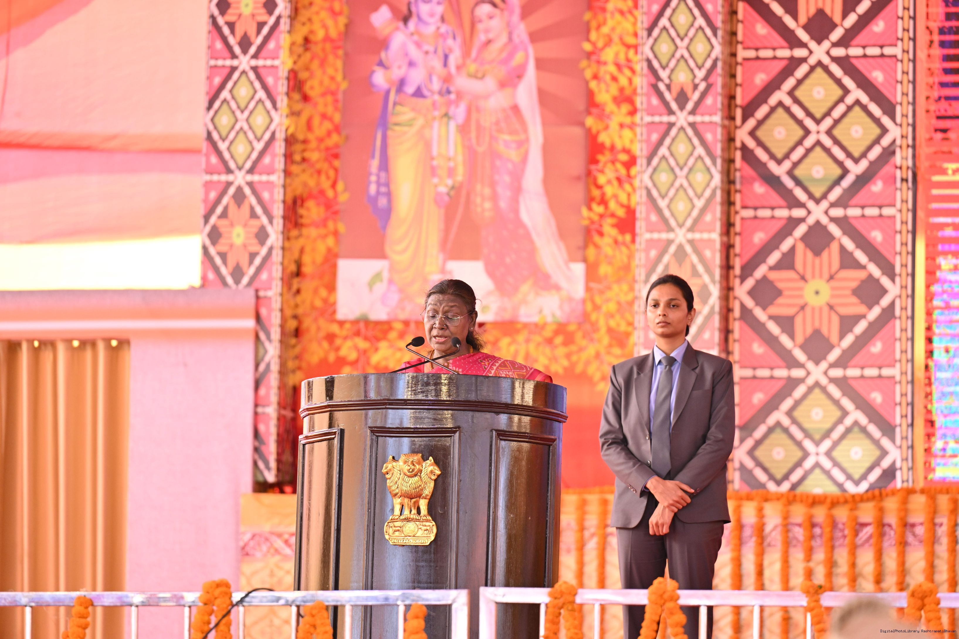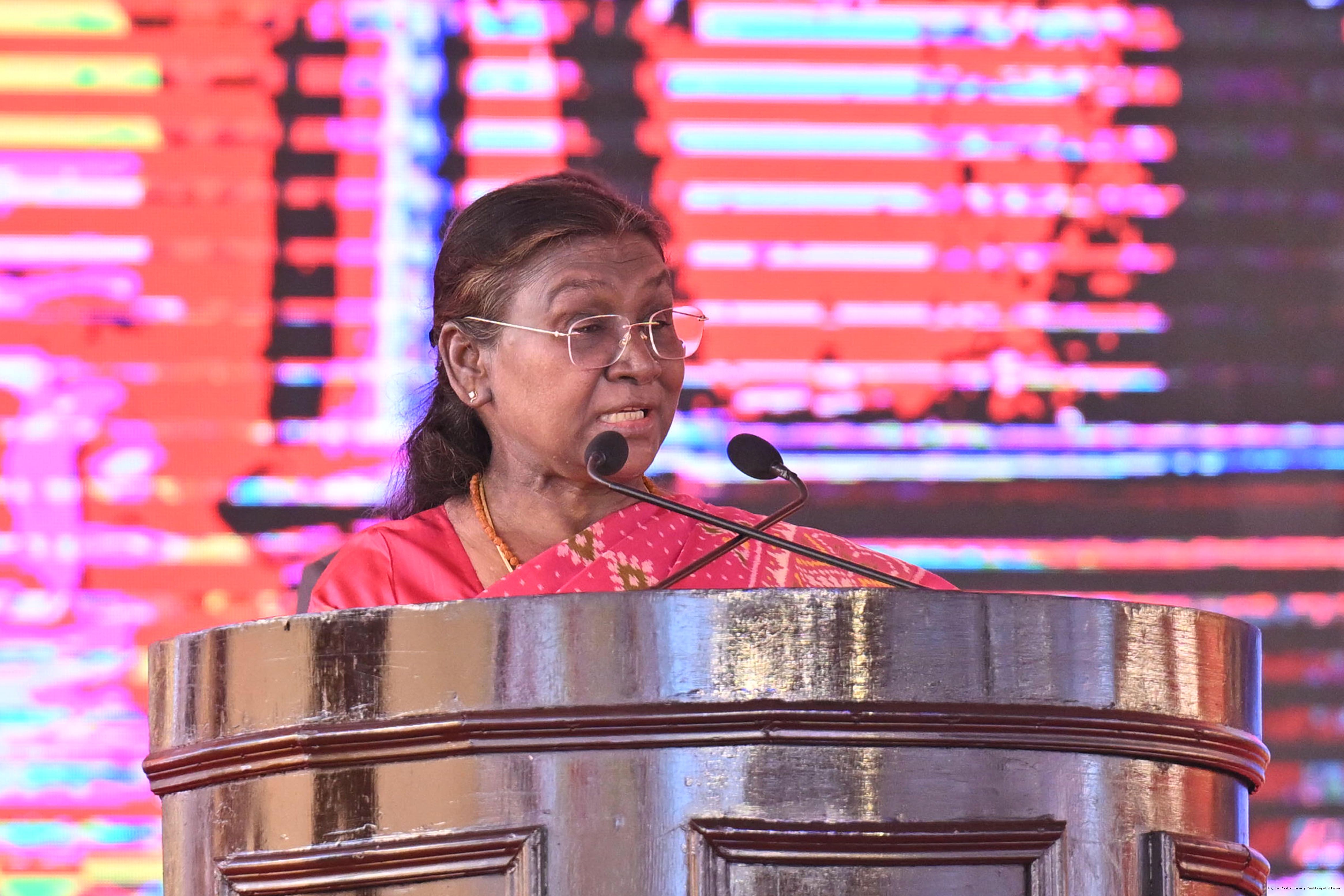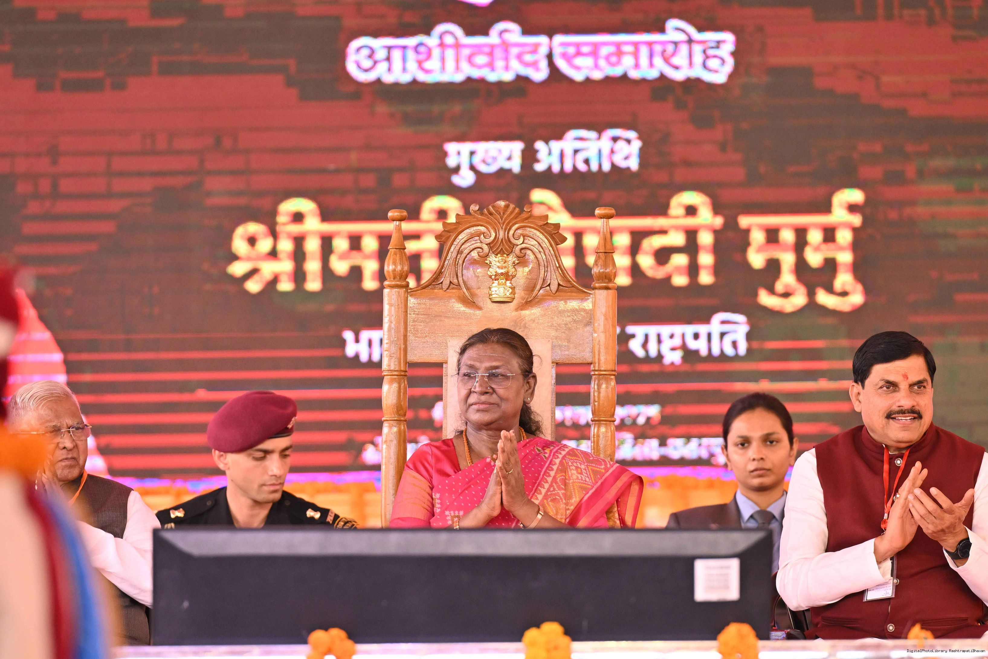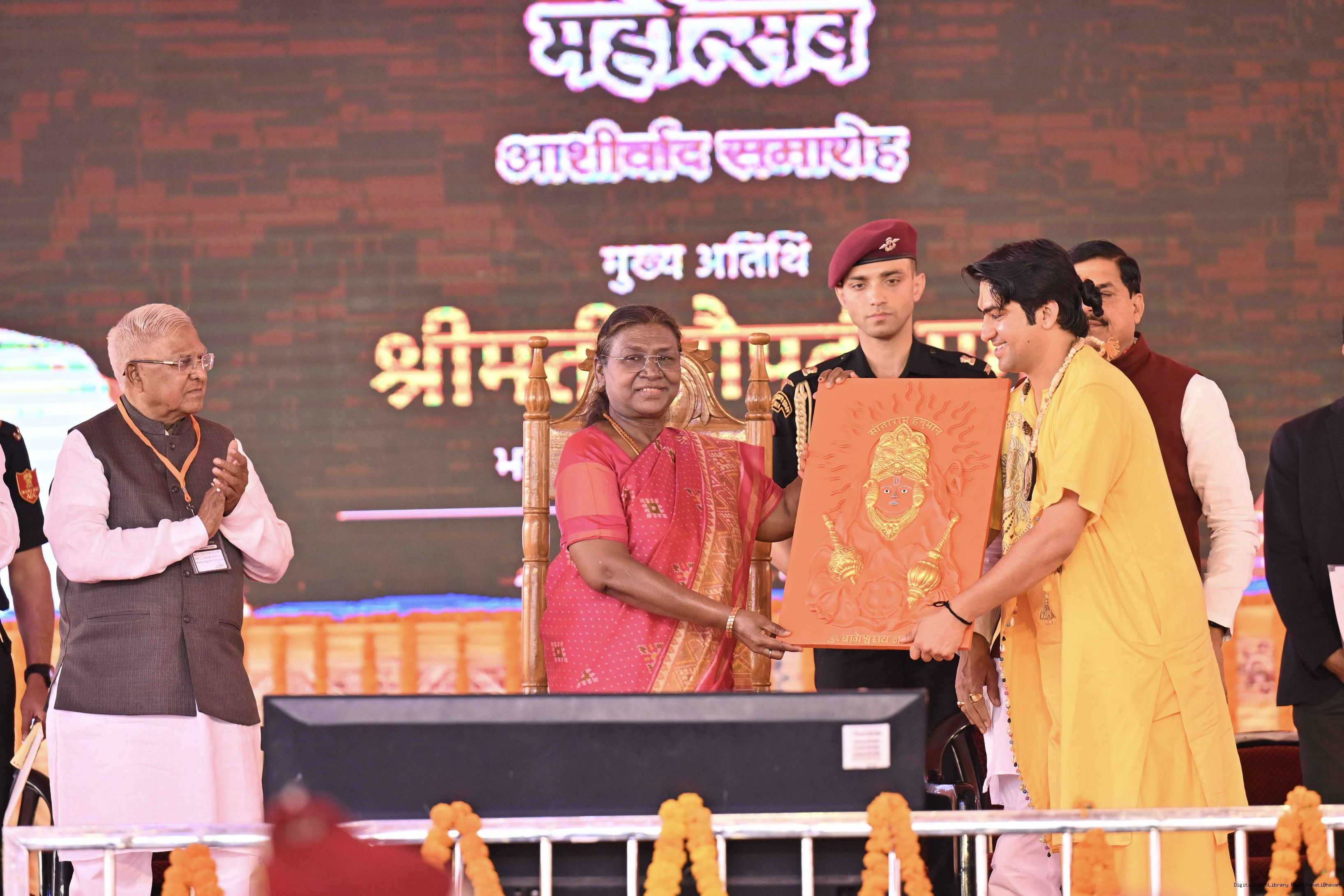| Caption: | The President of India, Smt. Droupadi Murmu graced a Mass Wedding ceremony organised by Shri Bageshwar Jan Seva Samiti at Gadha, Chhatarpur, Madhya Pradesh on February 26, 2025. |