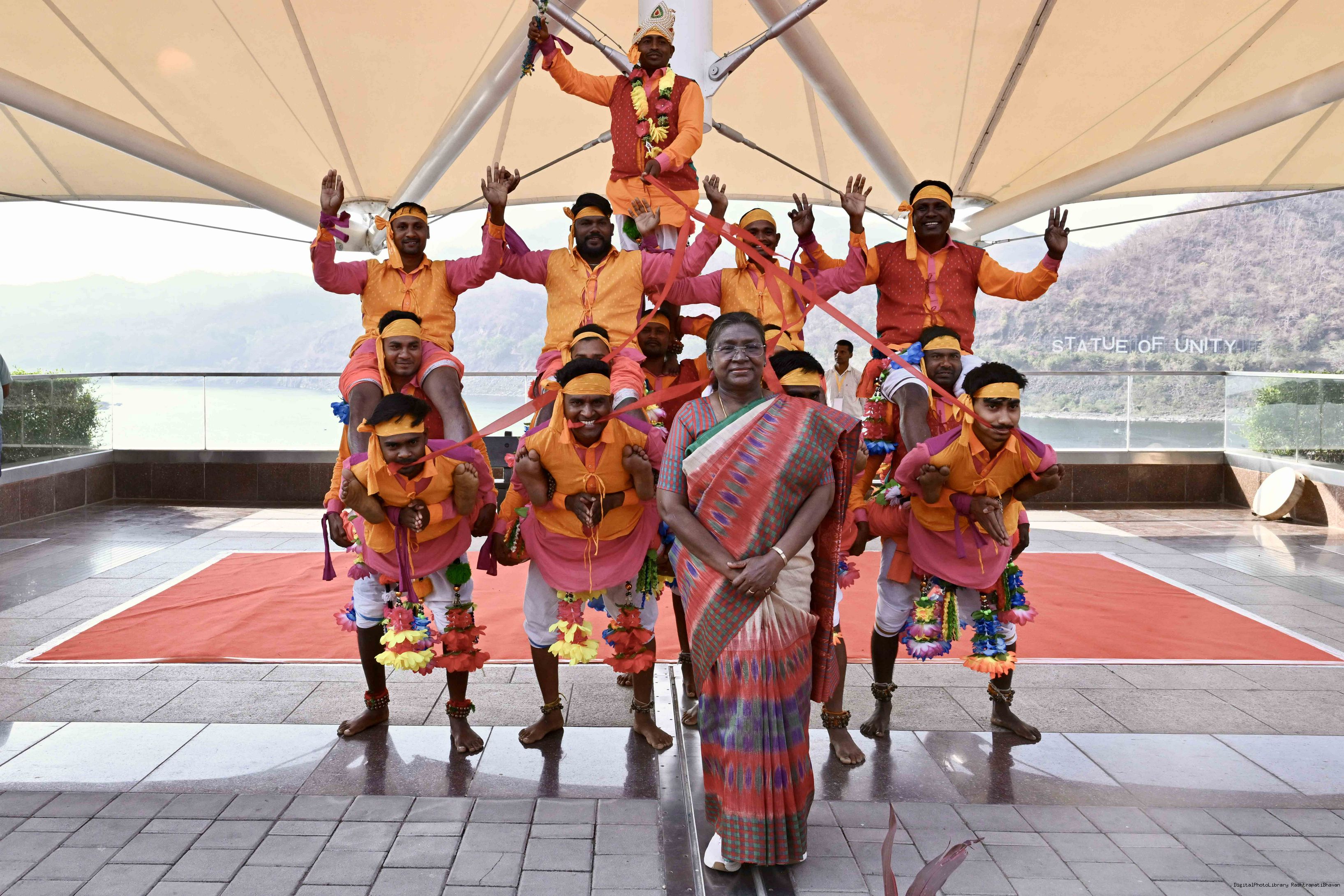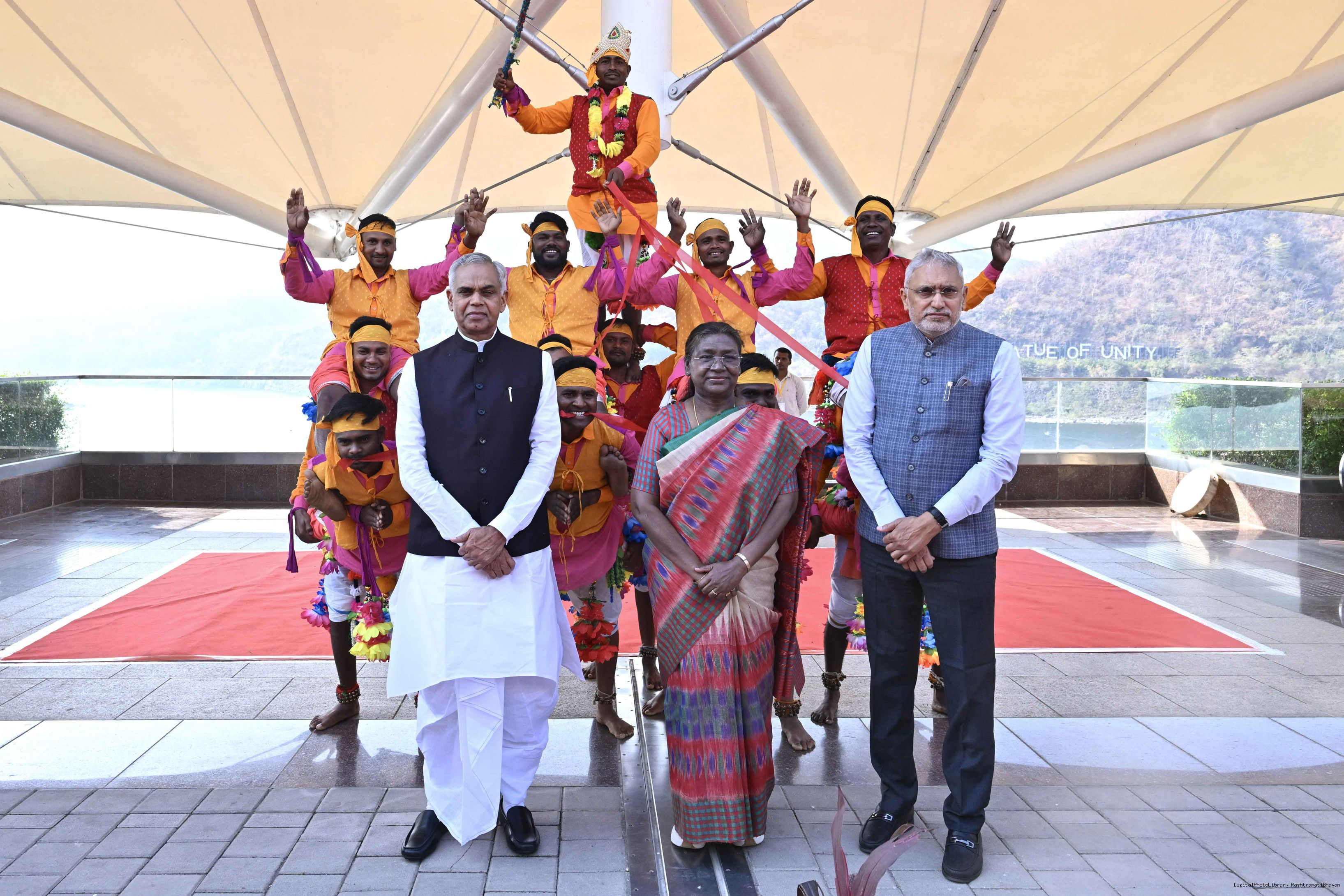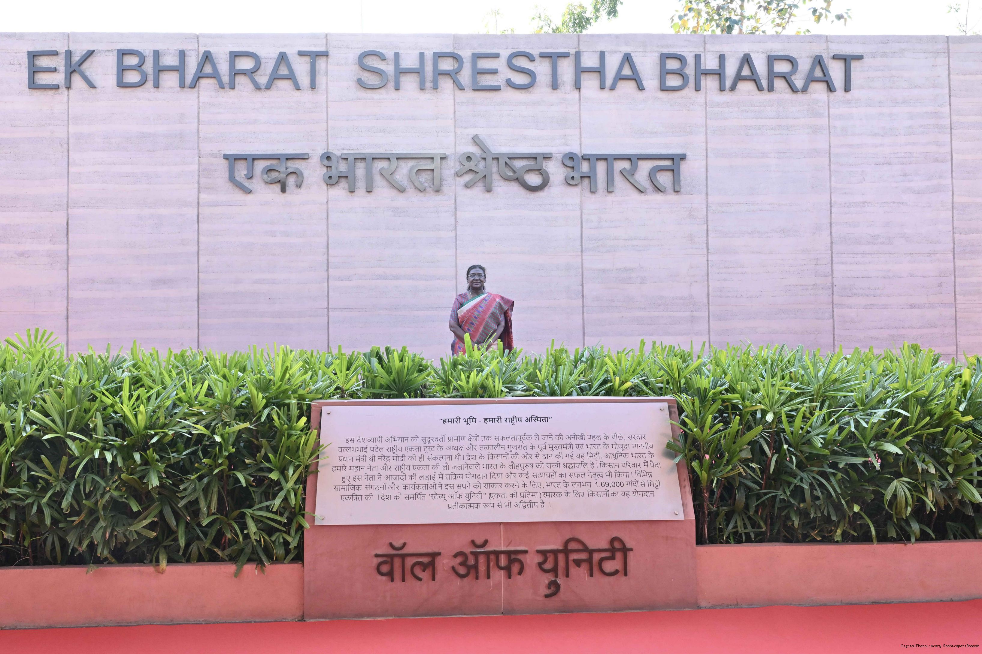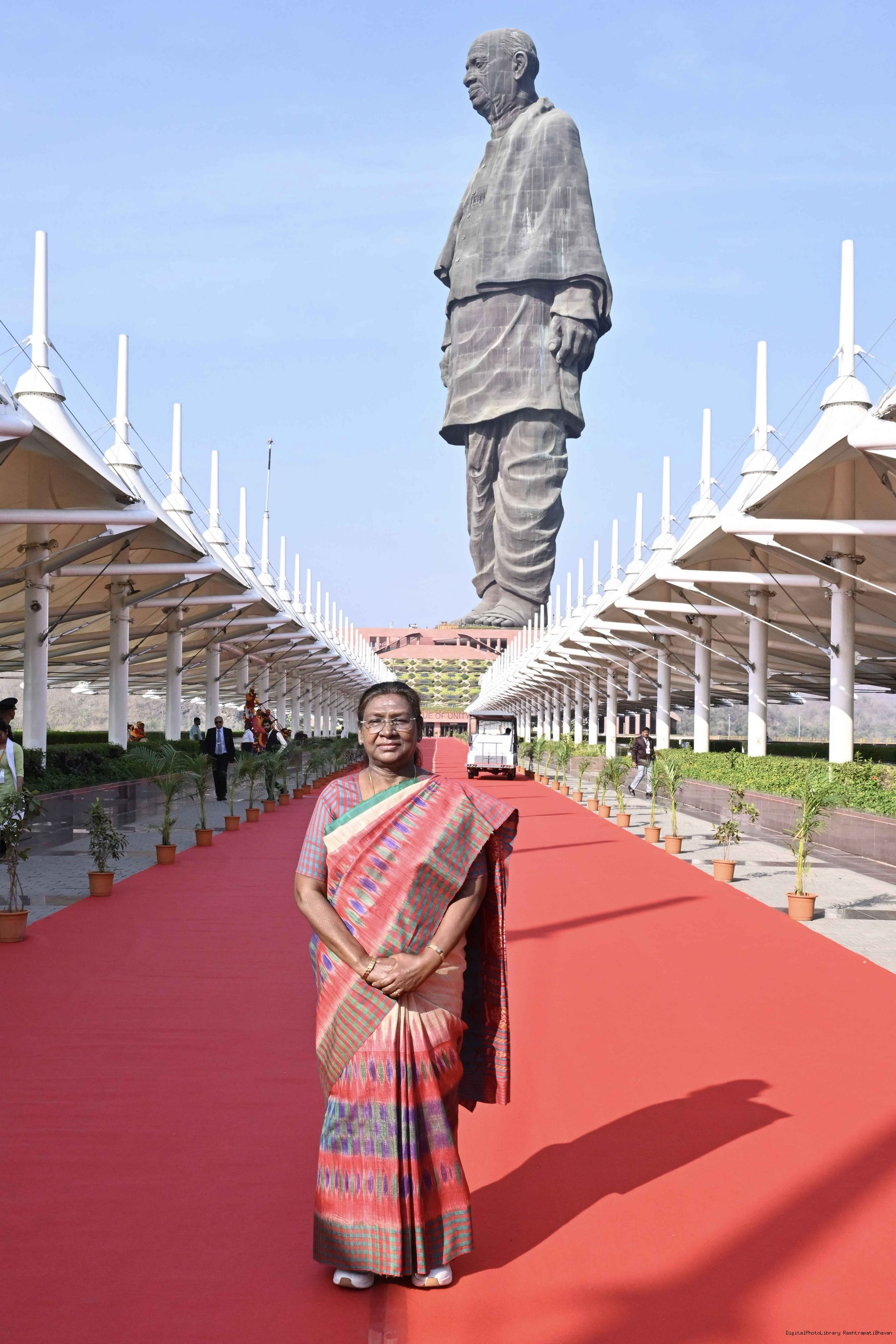 | Caption: | The President of India, Smt. Droupadi Murmu visited the Statue of Unity at Kevadia and paid her tributes to the Iron Man of India, Sardar Vallabhbhai Patel in Gujarat on February 27, 2025. |