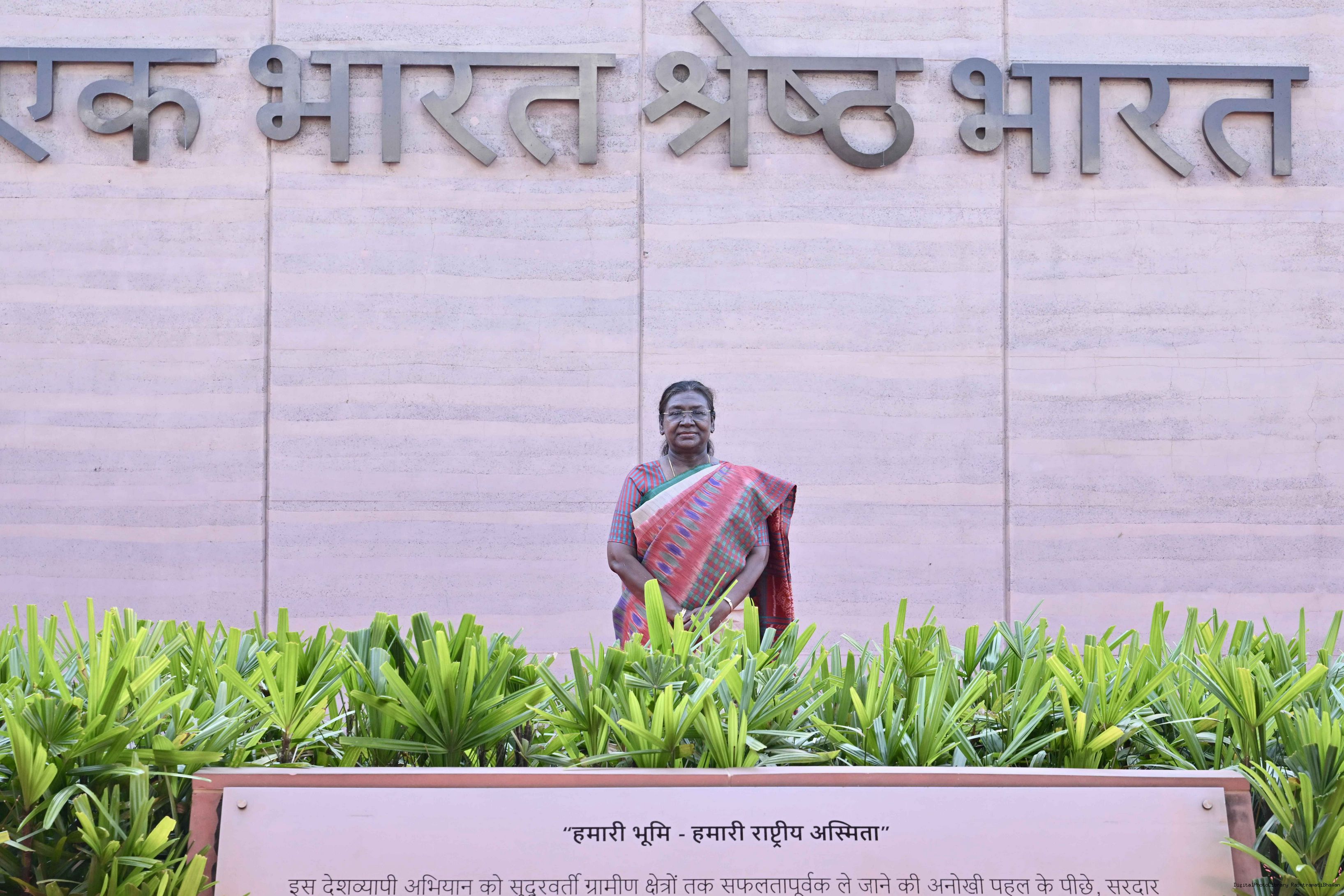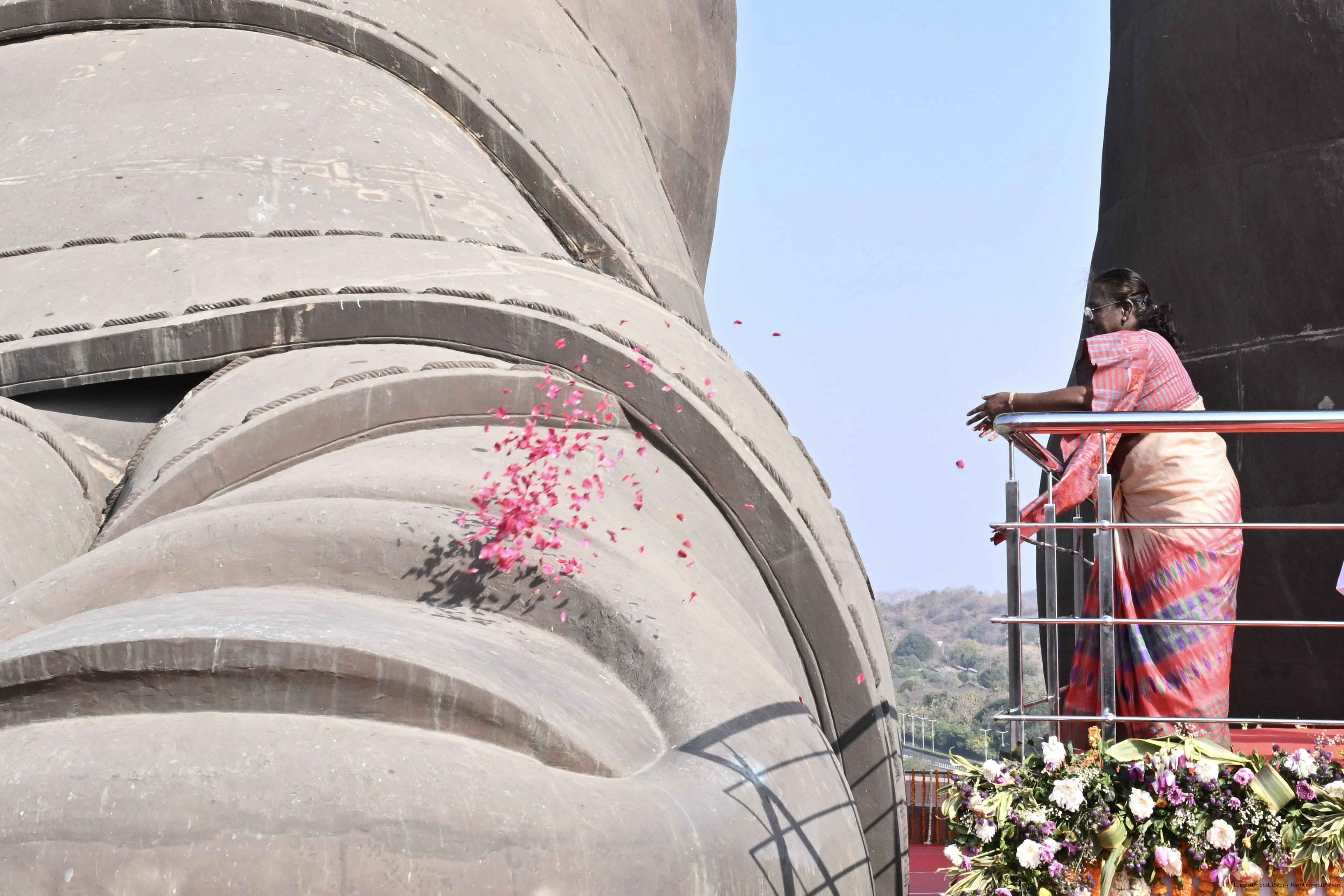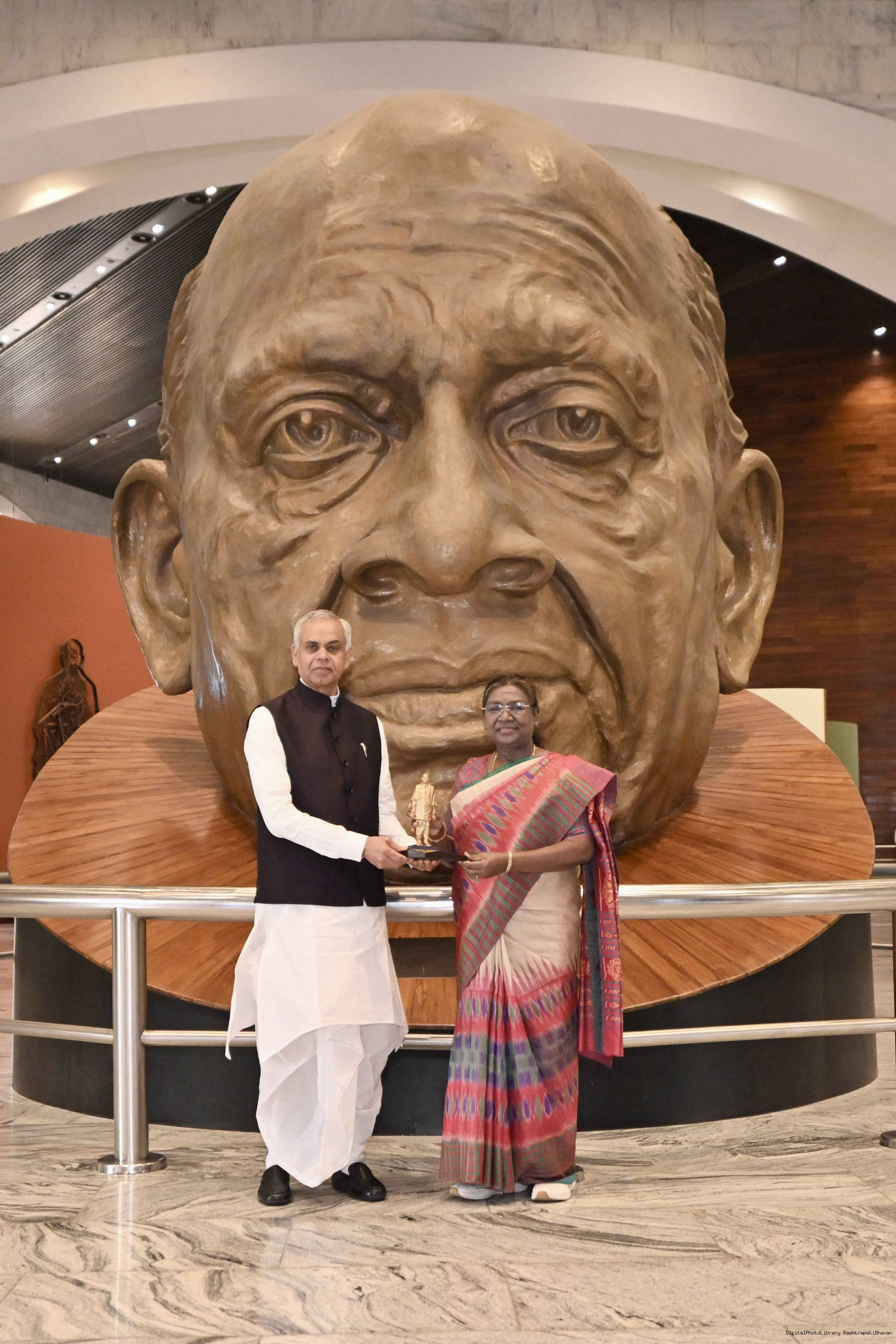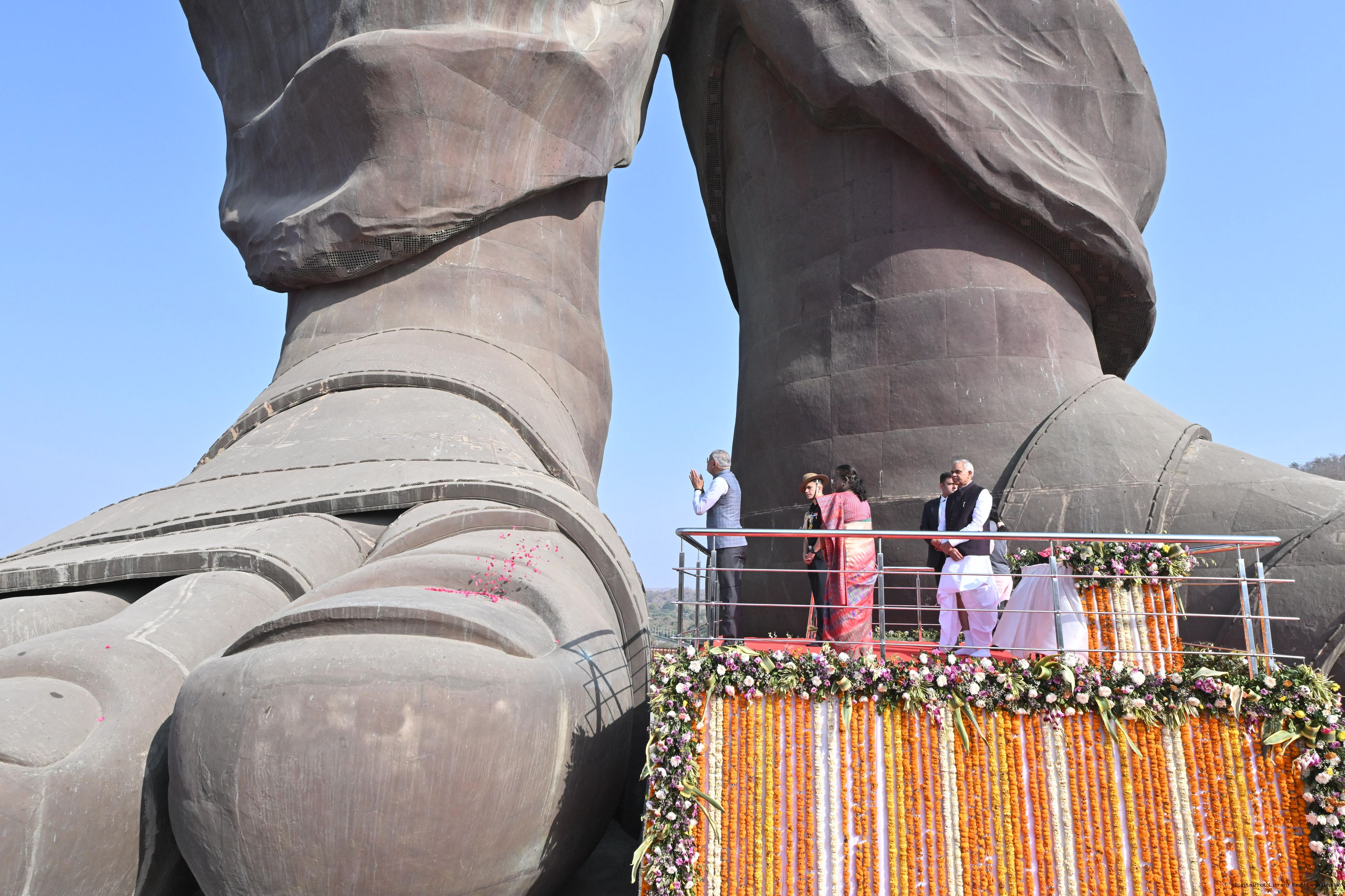 | Caption: | The President of India, Smt. Droupadi Murmu visited the Statue of Unity at Kevadia and paid her tributes to the Iron Man of India, Sardar Vallabhbhai Patel in Gujarat on February 27, 2025. |
