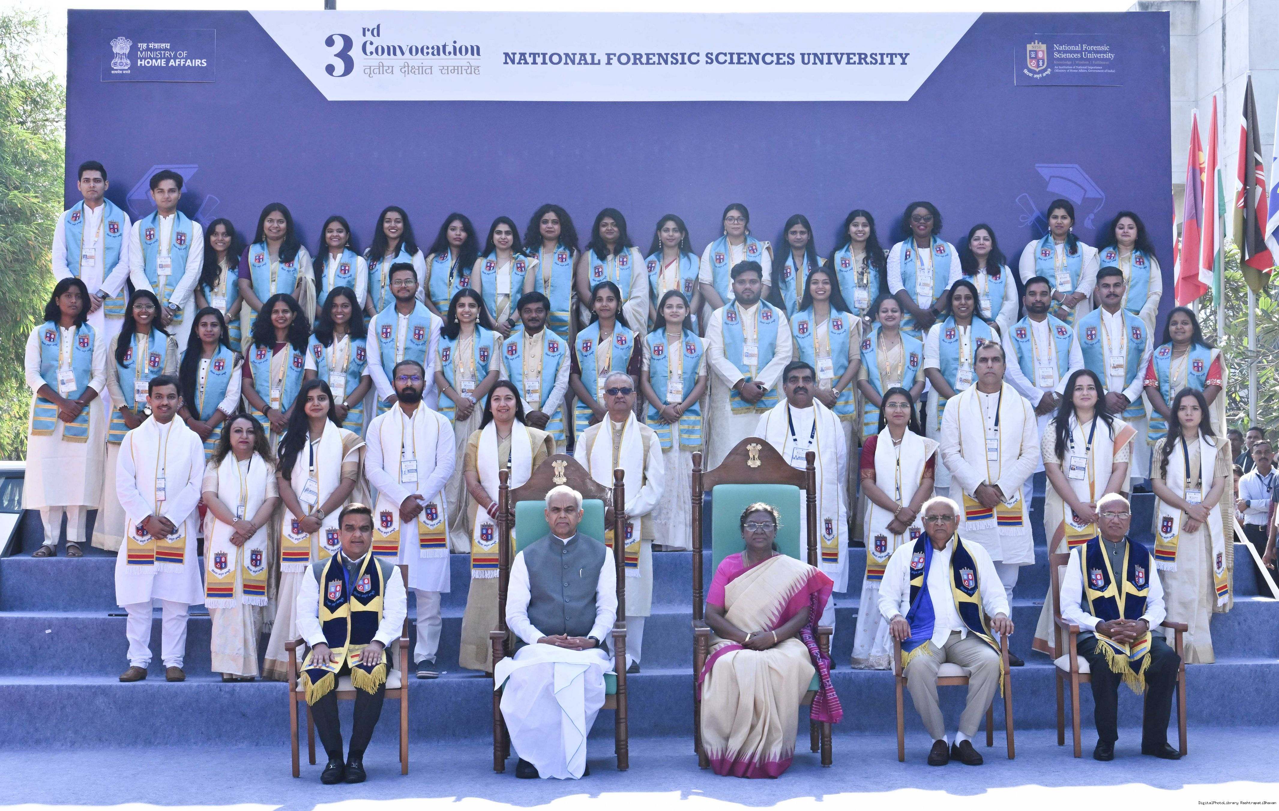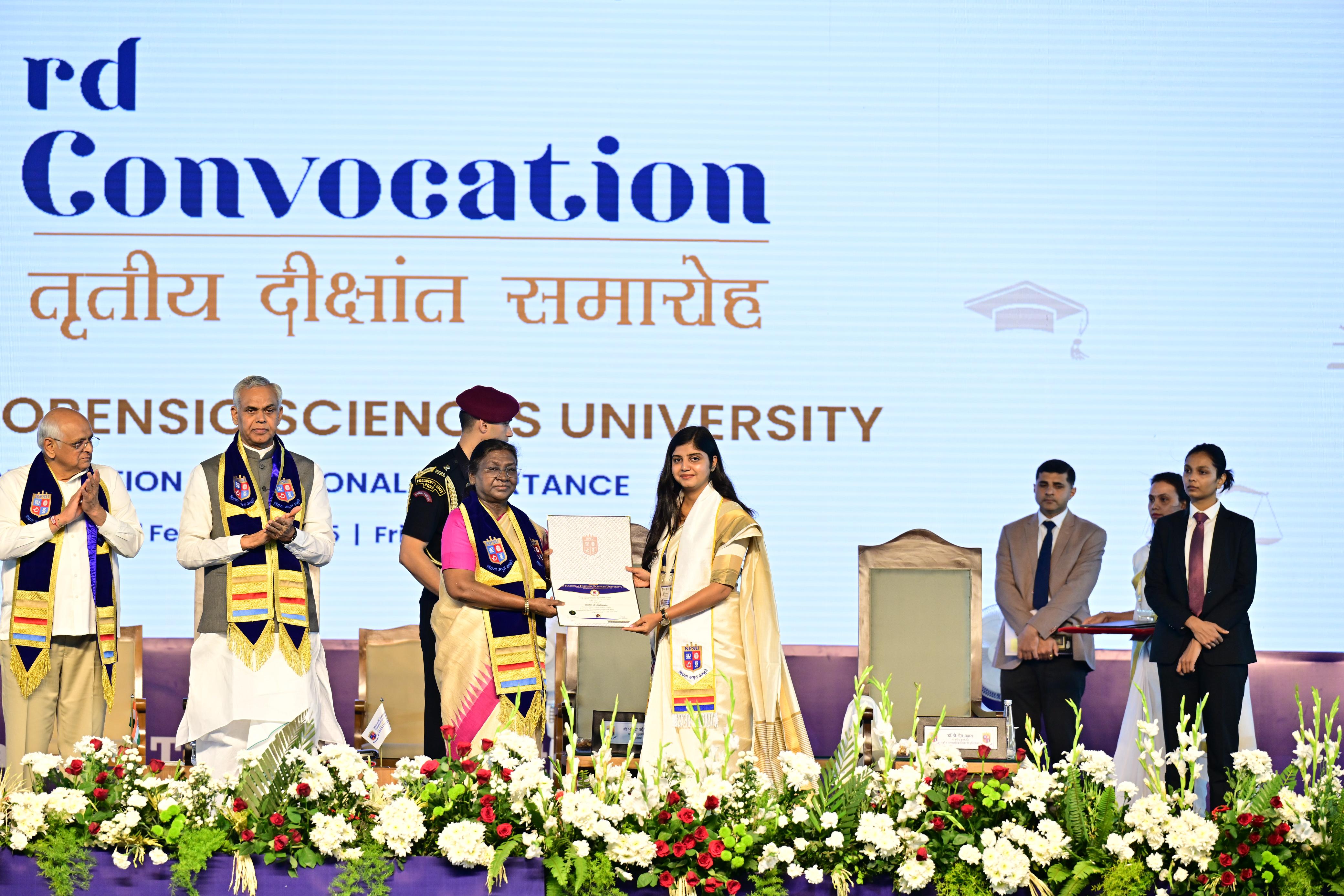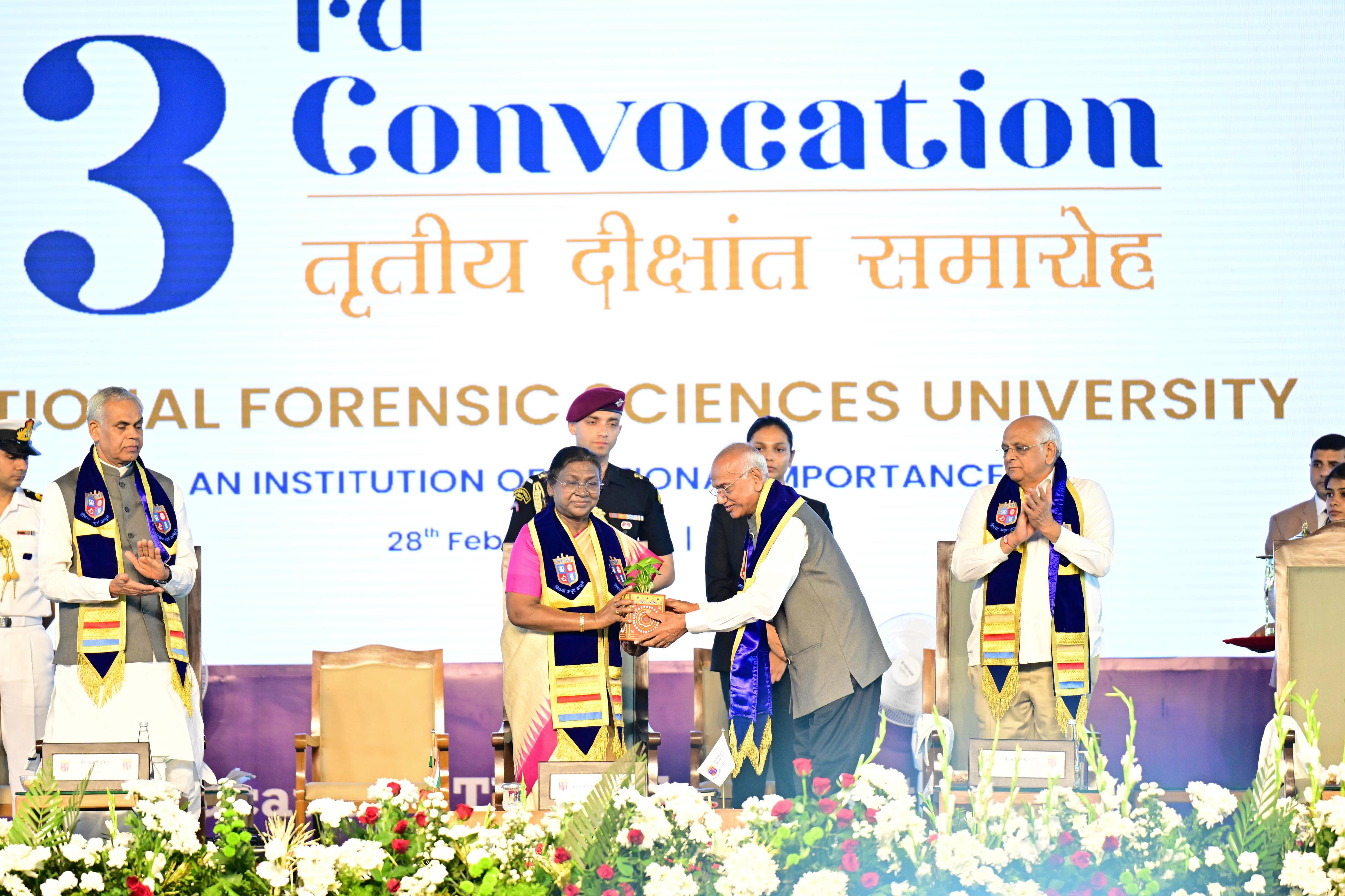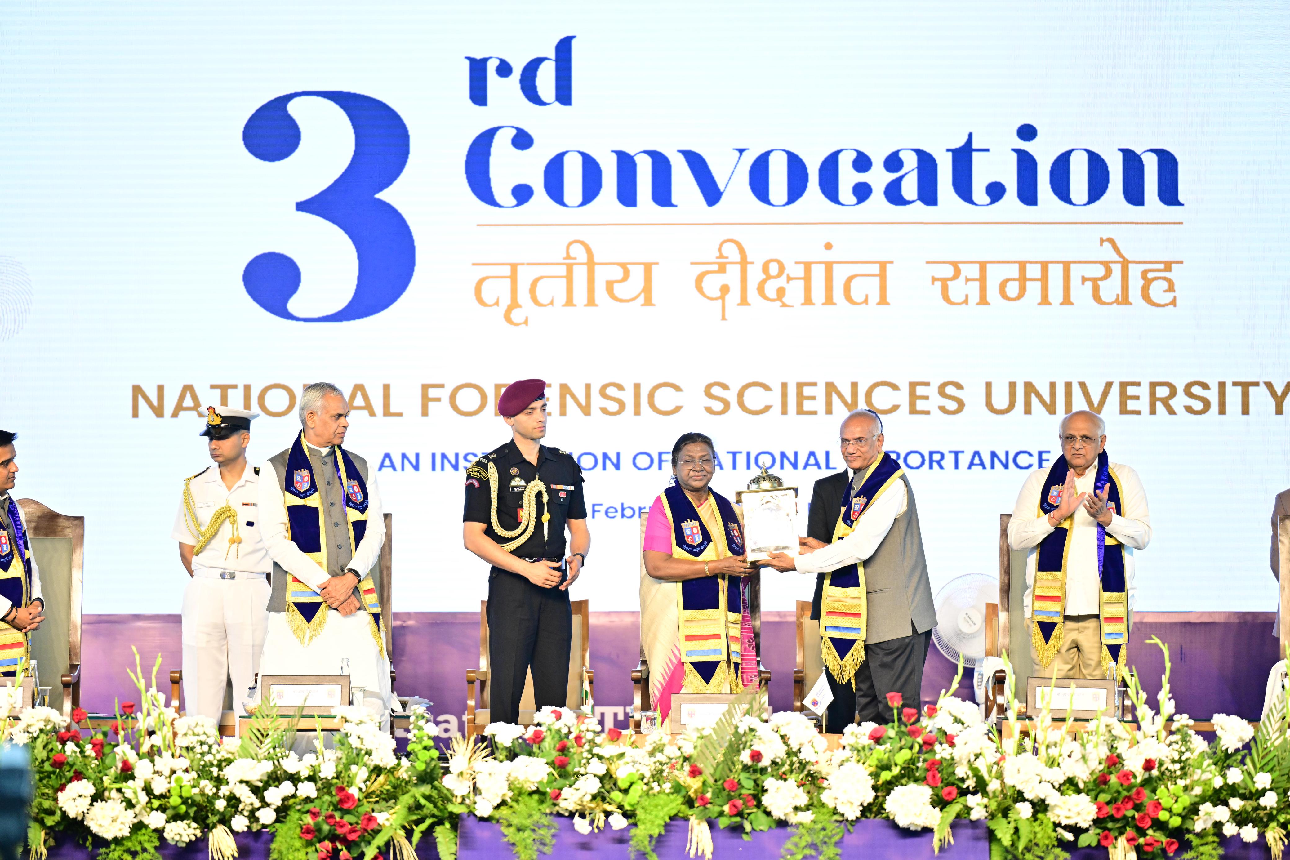 | Caption: | The President of India, Smt Droupadi Murmu, graced the convocation ceremony of the National Forensic Sciences University at Gandhinagar, Gujarat on February 28, 2025. |