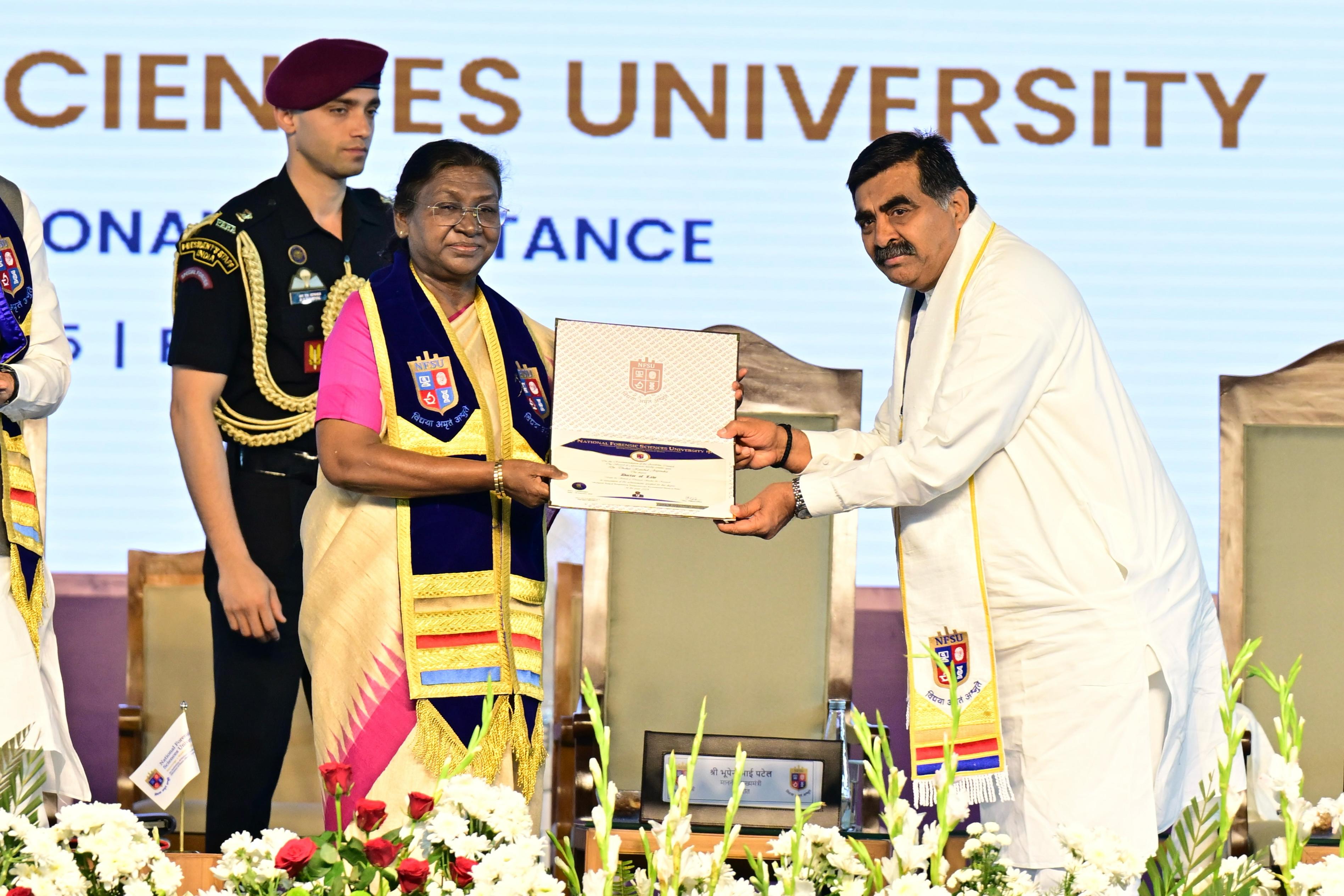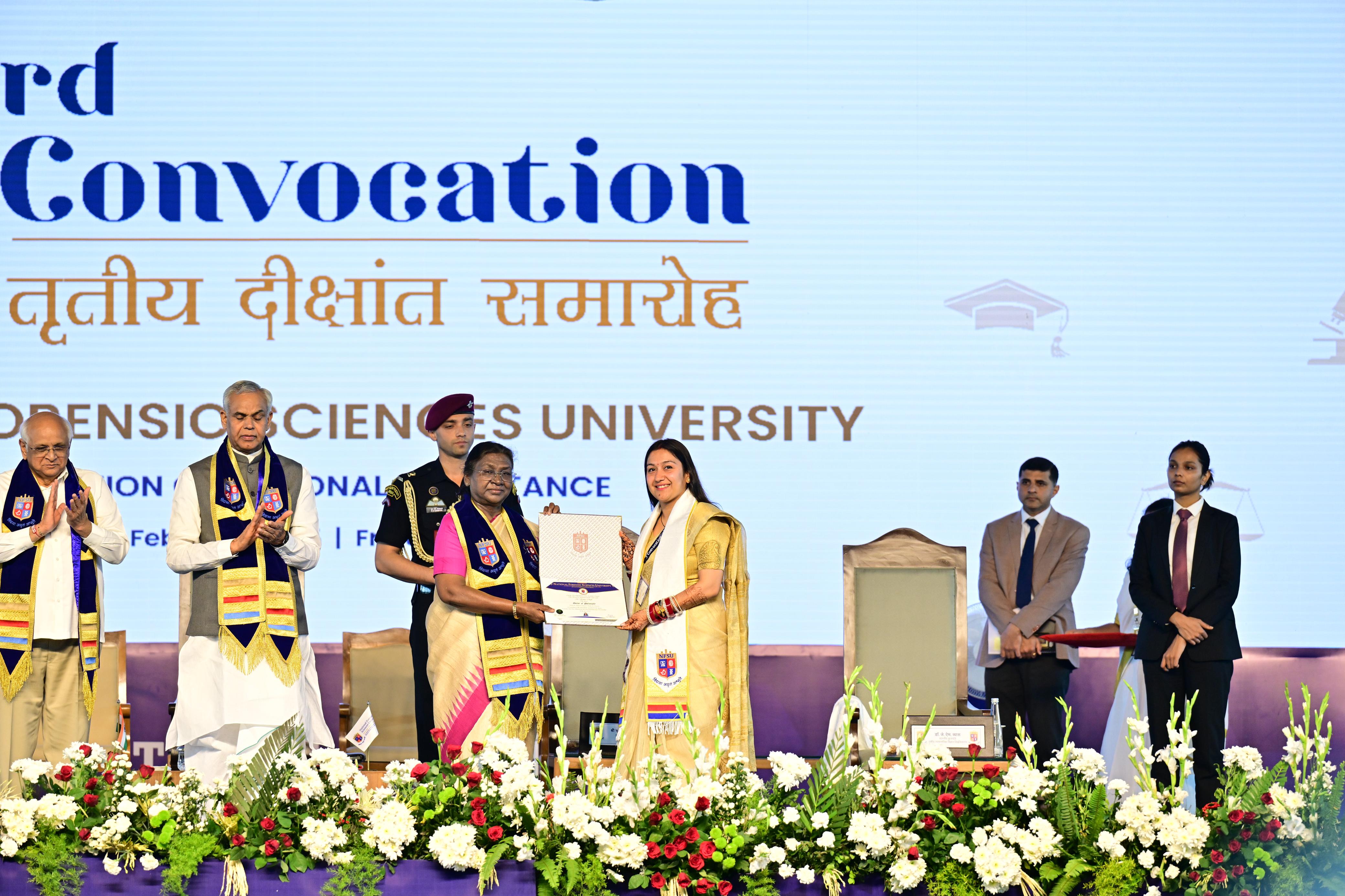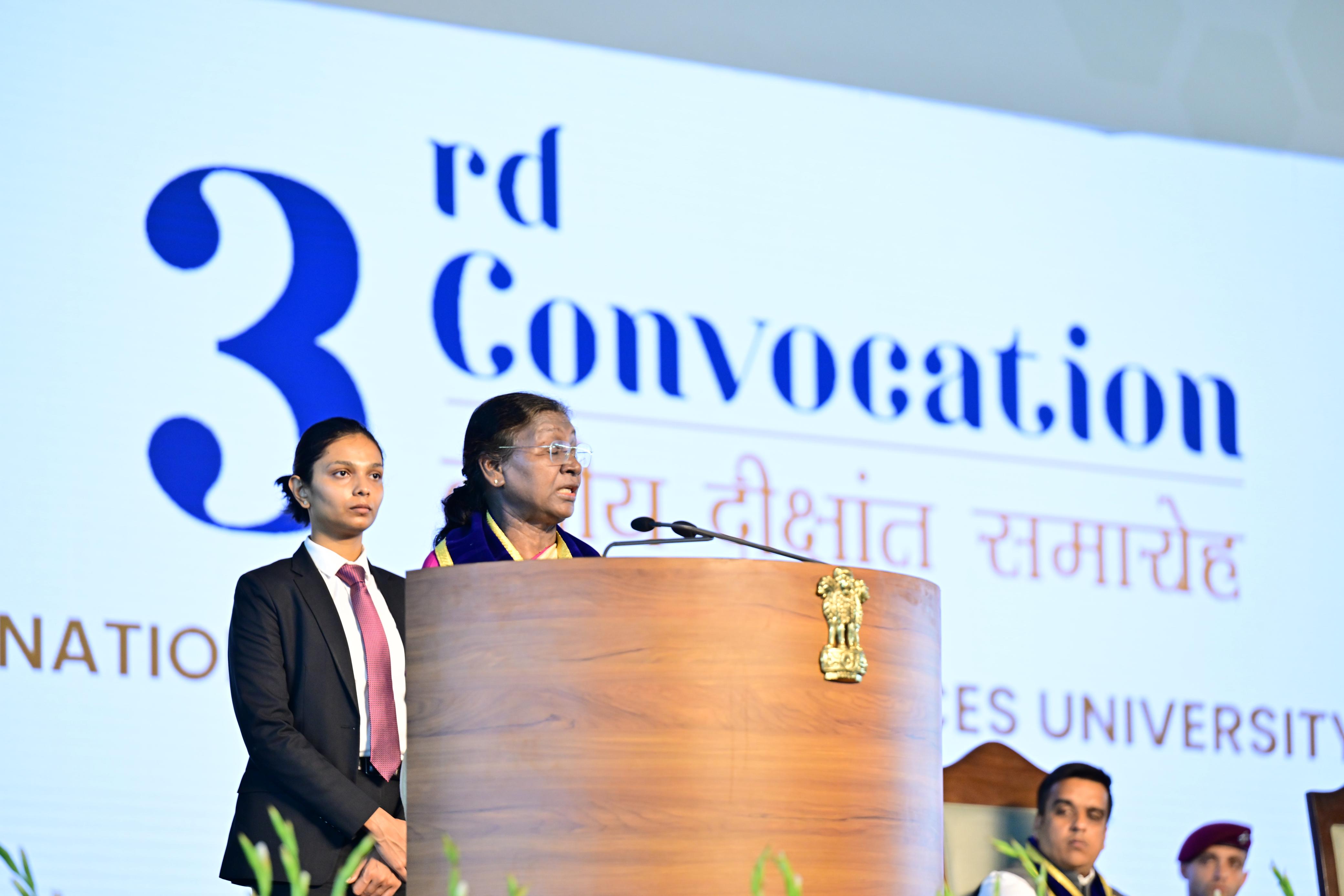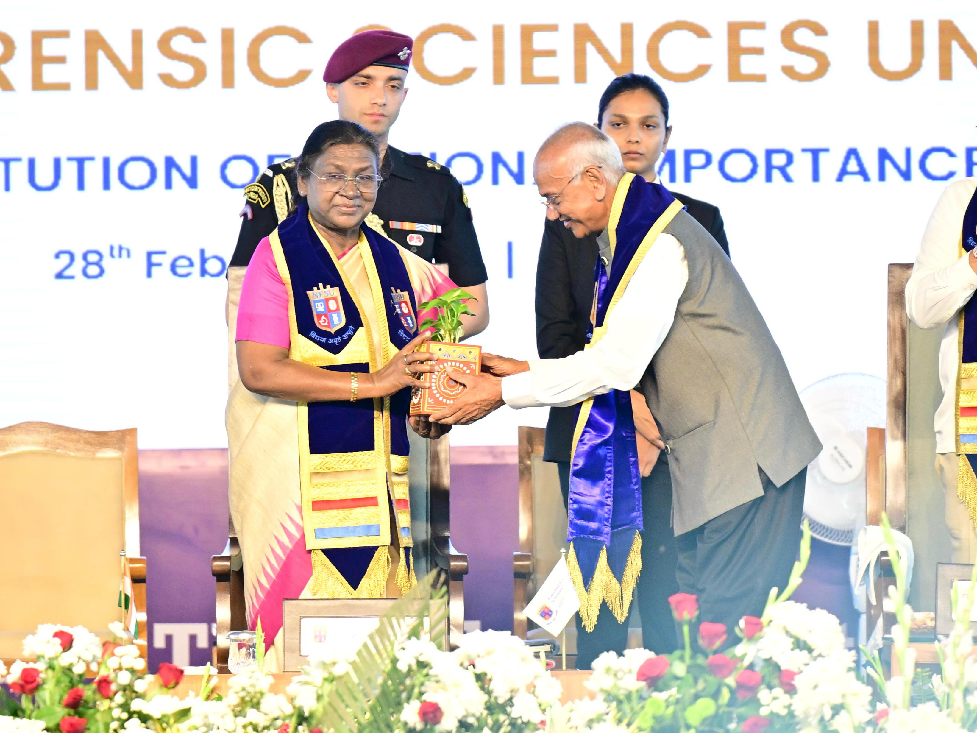 | Caption: | The President of India, Smt Droupadi Murmu, graced the convocation ceremony of the National Forensic Sciences University at Gandhinagar, Gujarat on February 28, 2025. |