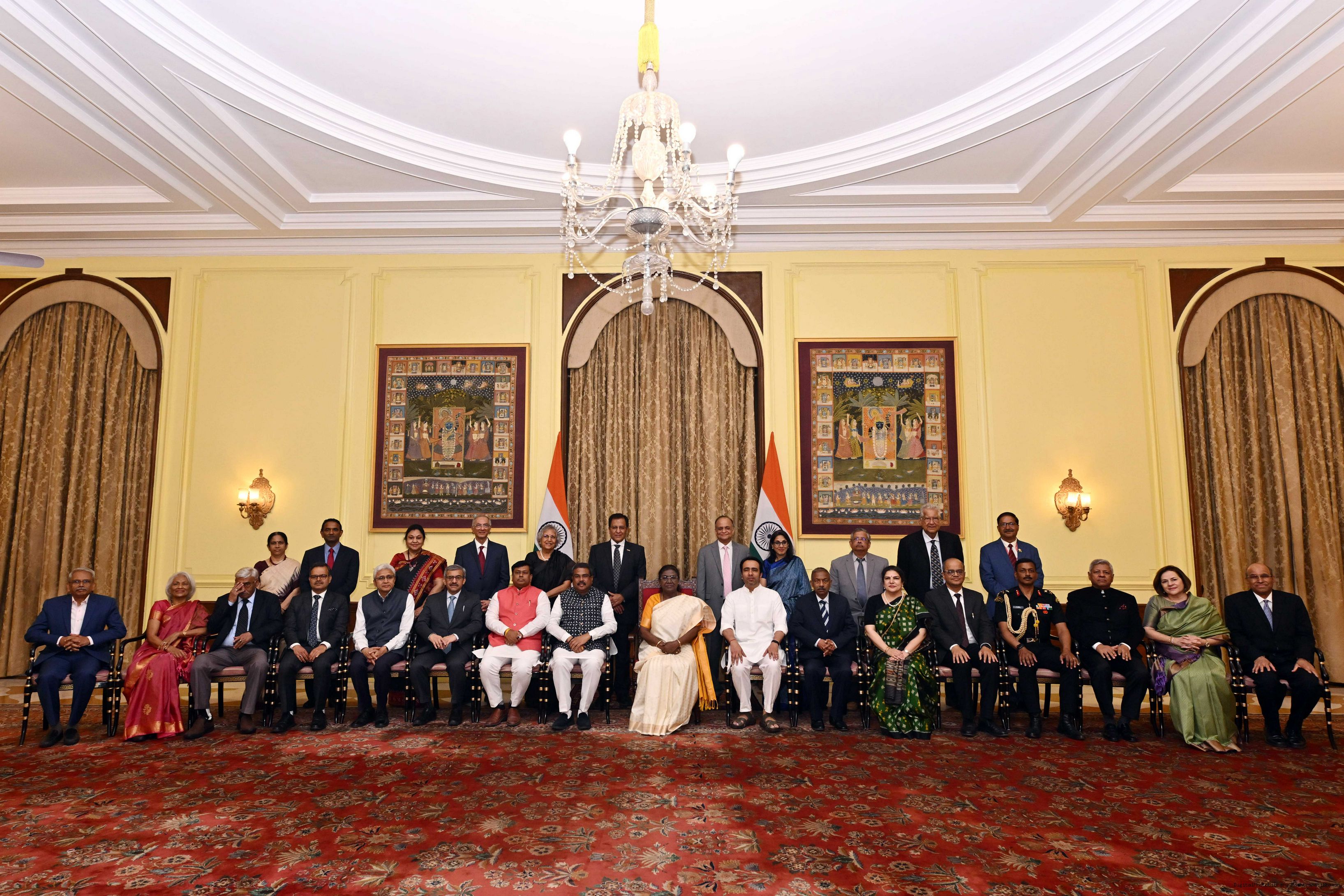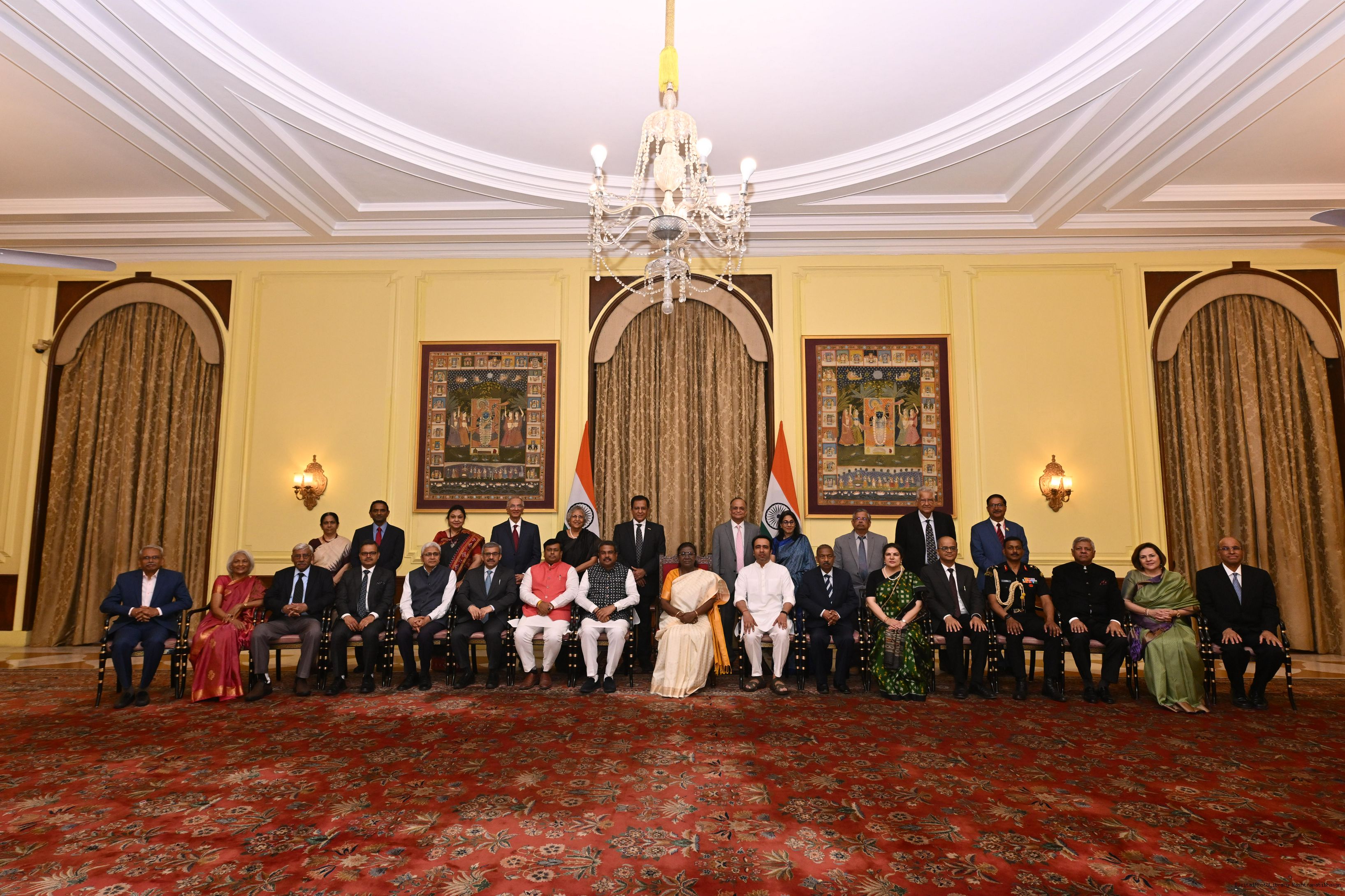 | Caption: | A group of alumni, eminent personalities and contributors towards CSR called on the President of India, Smt Droupadi Murmu at Rashtrapati Bhavan on March 3, 2025 on the sidelines of the Visitor’s Conference. |