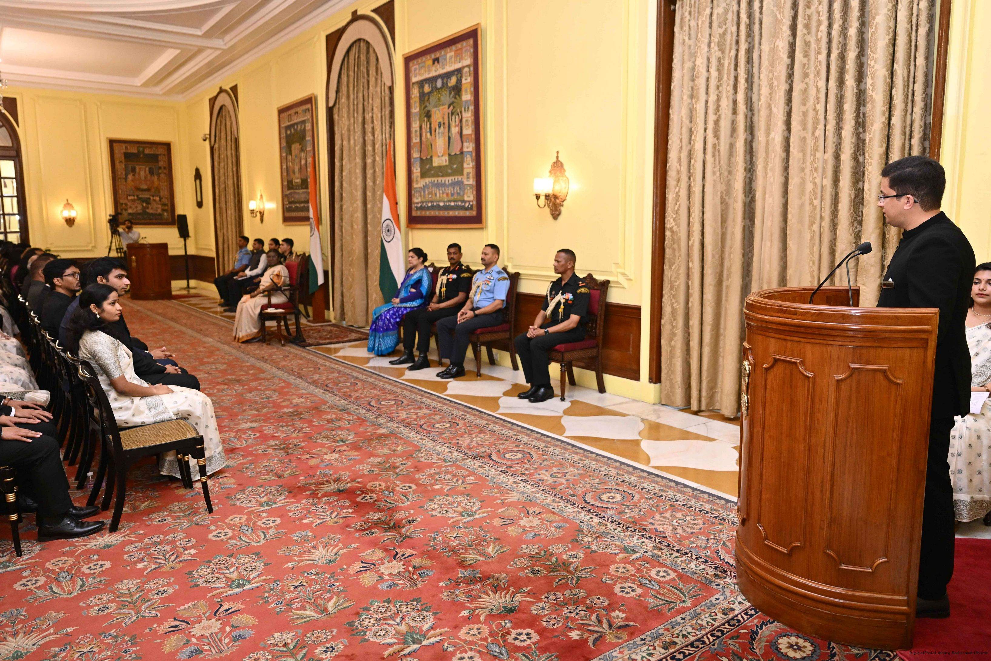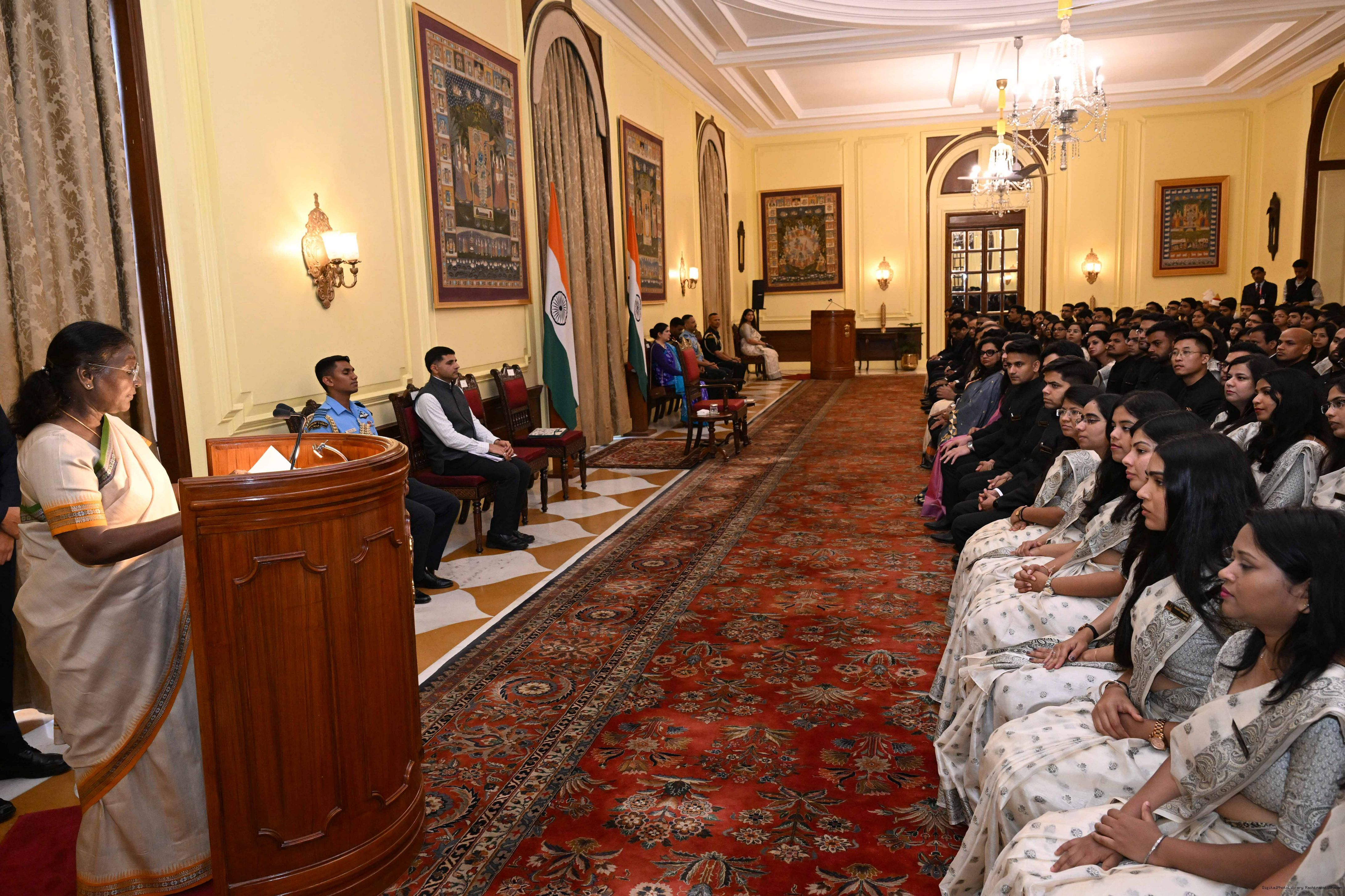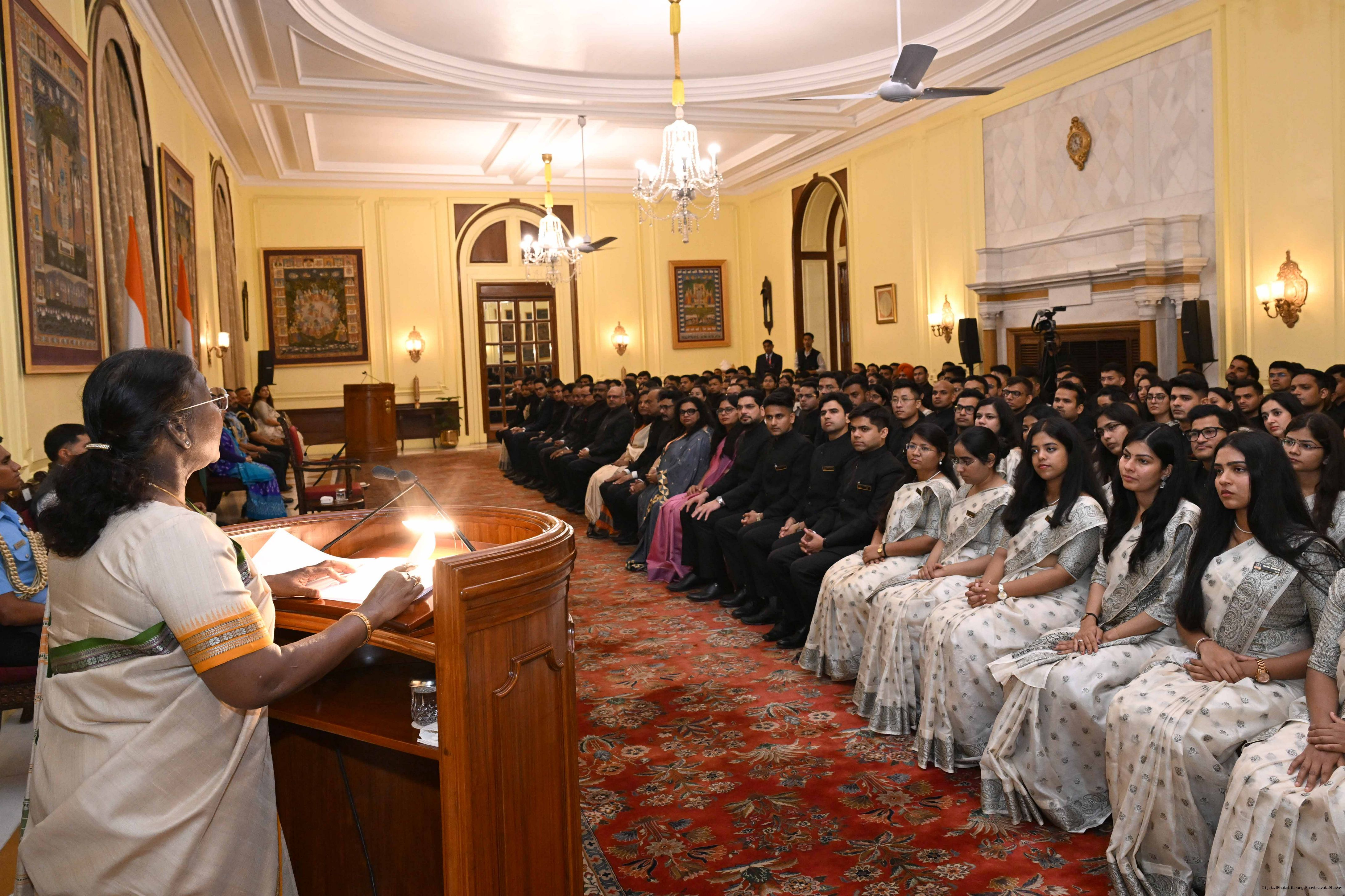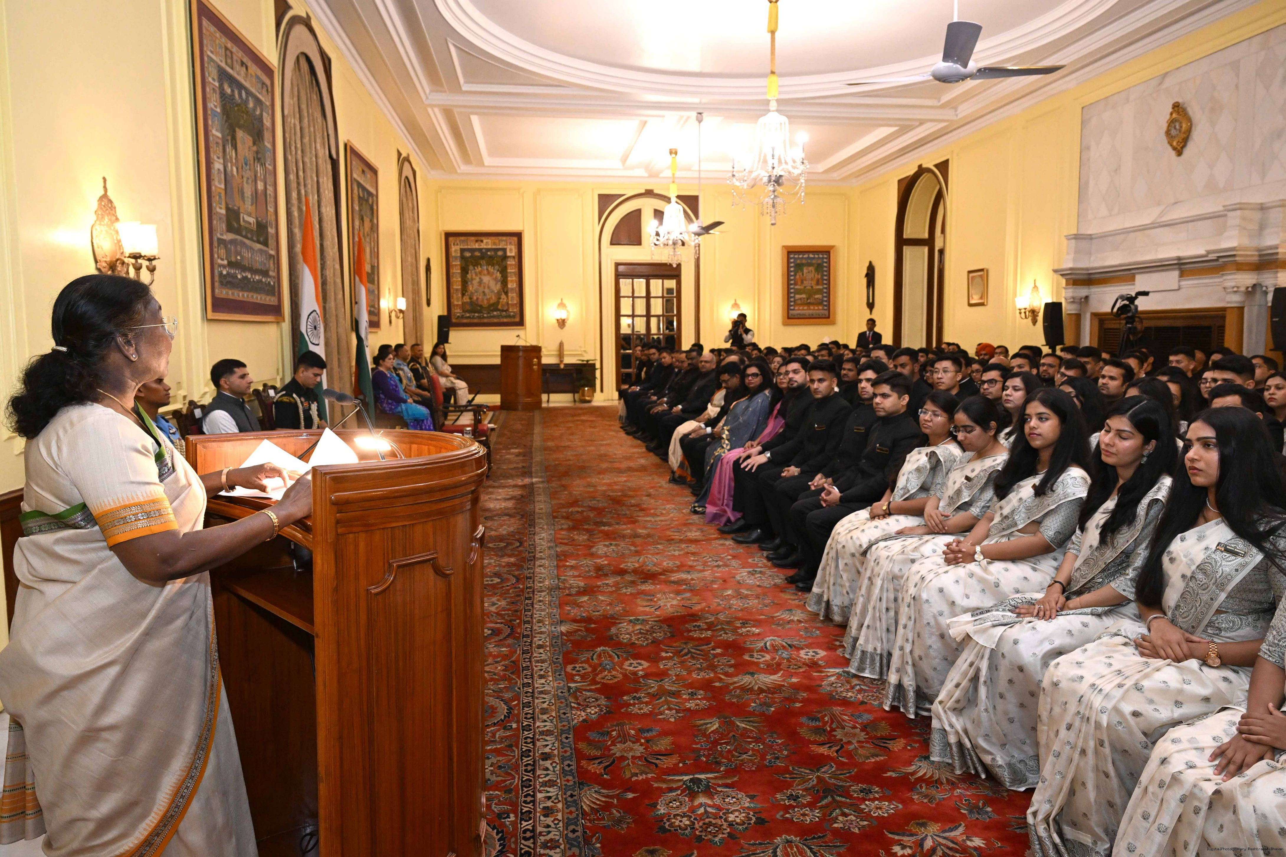 | Caption: | The officer trainees of Indian Revenue Service (78th batch) called on the President of India, Smt Droupadi Murmu at Rashtrapati Bhavan on March 4, 2025. |