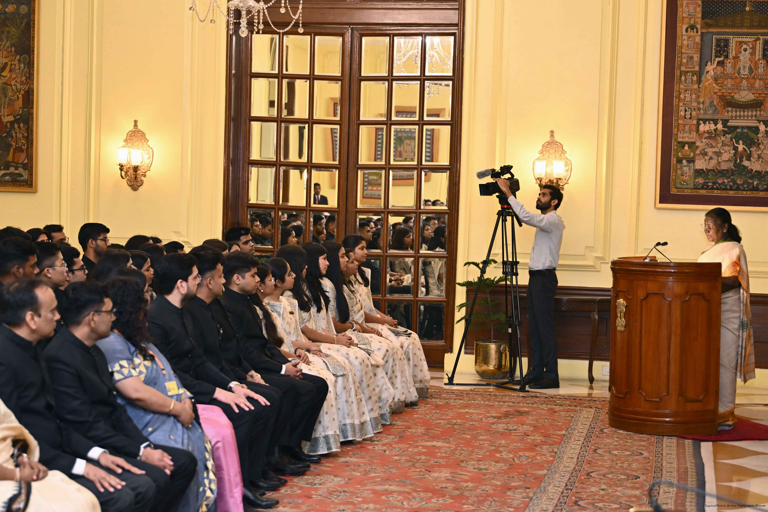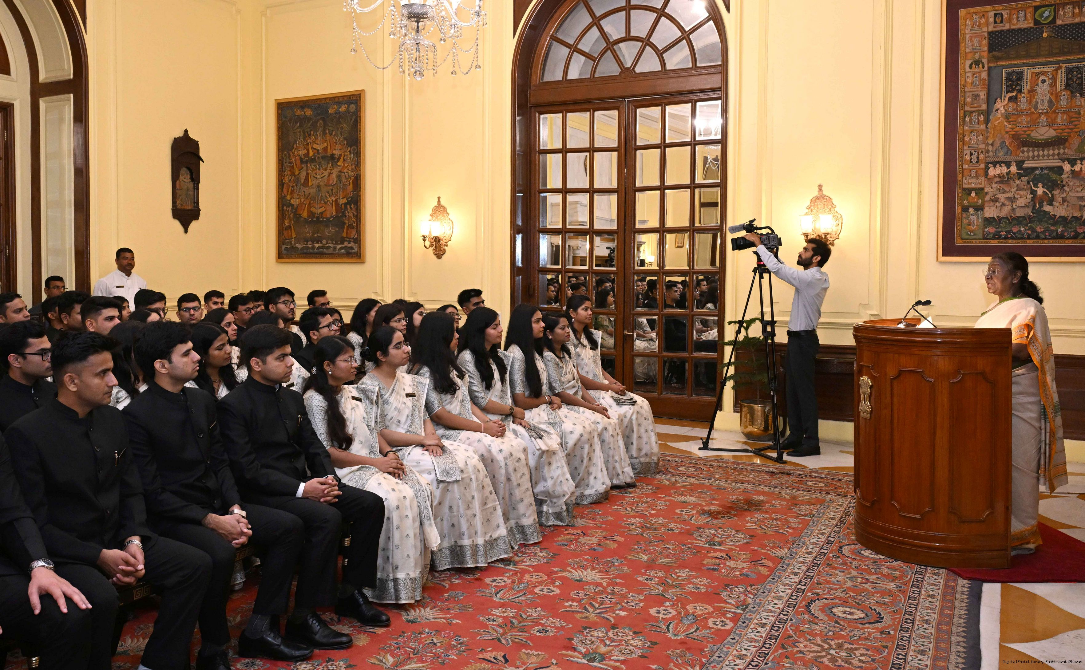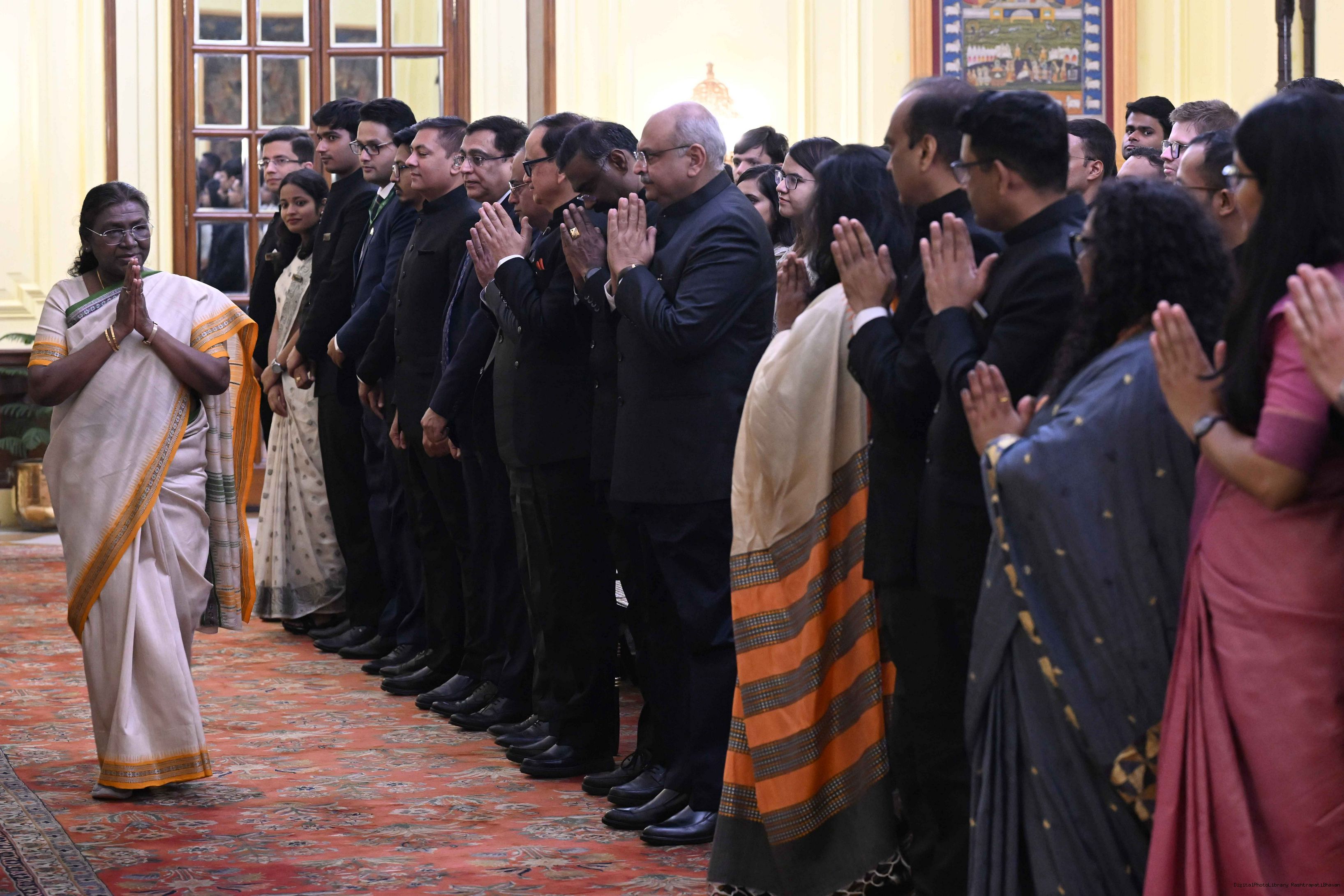 | Caption: | The officer trainees of Indian Revenue Service (78th batch) called on the President of India, Smt Droupadi Murmu at Rashtrapati Bhavan on March 4, 2025. |