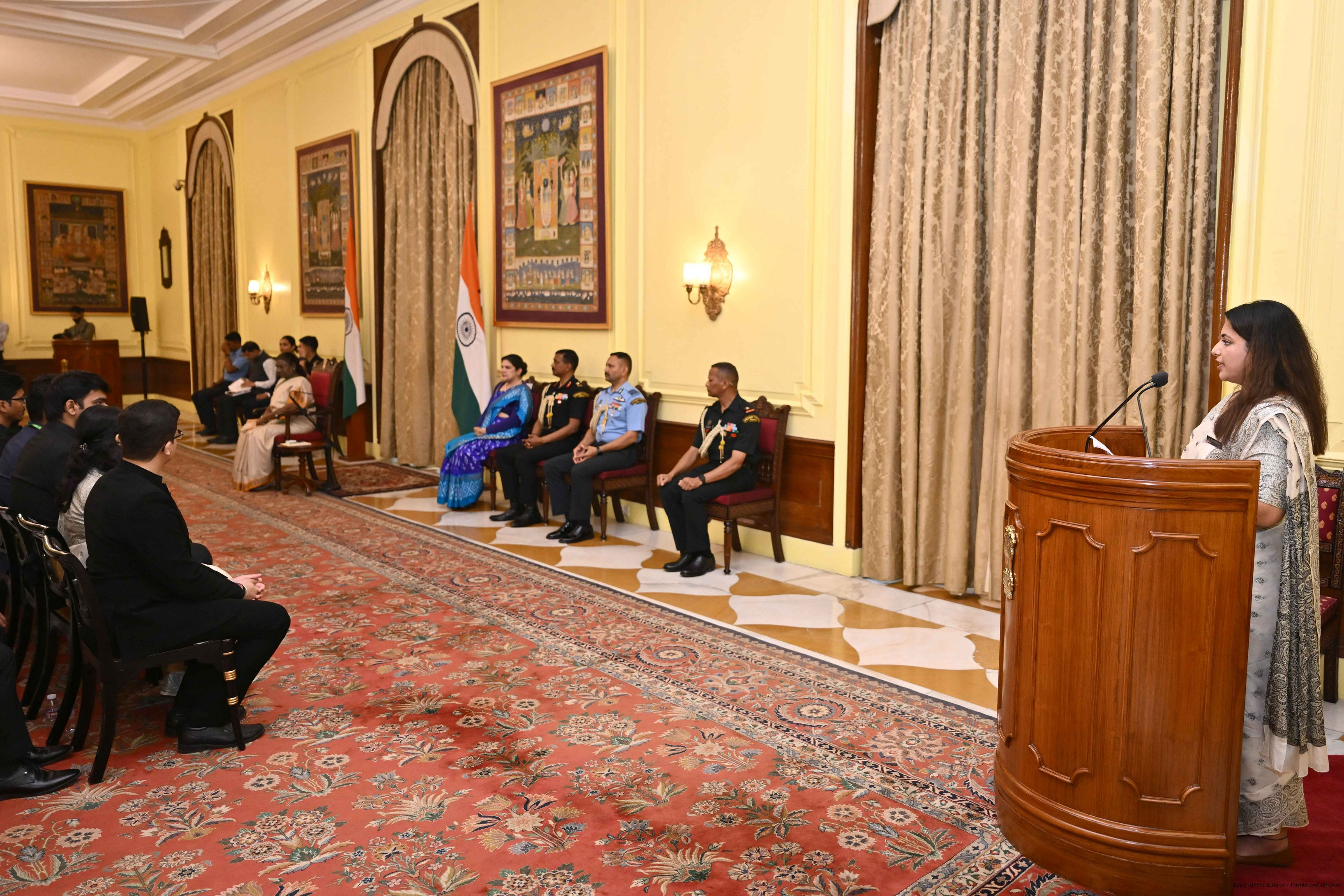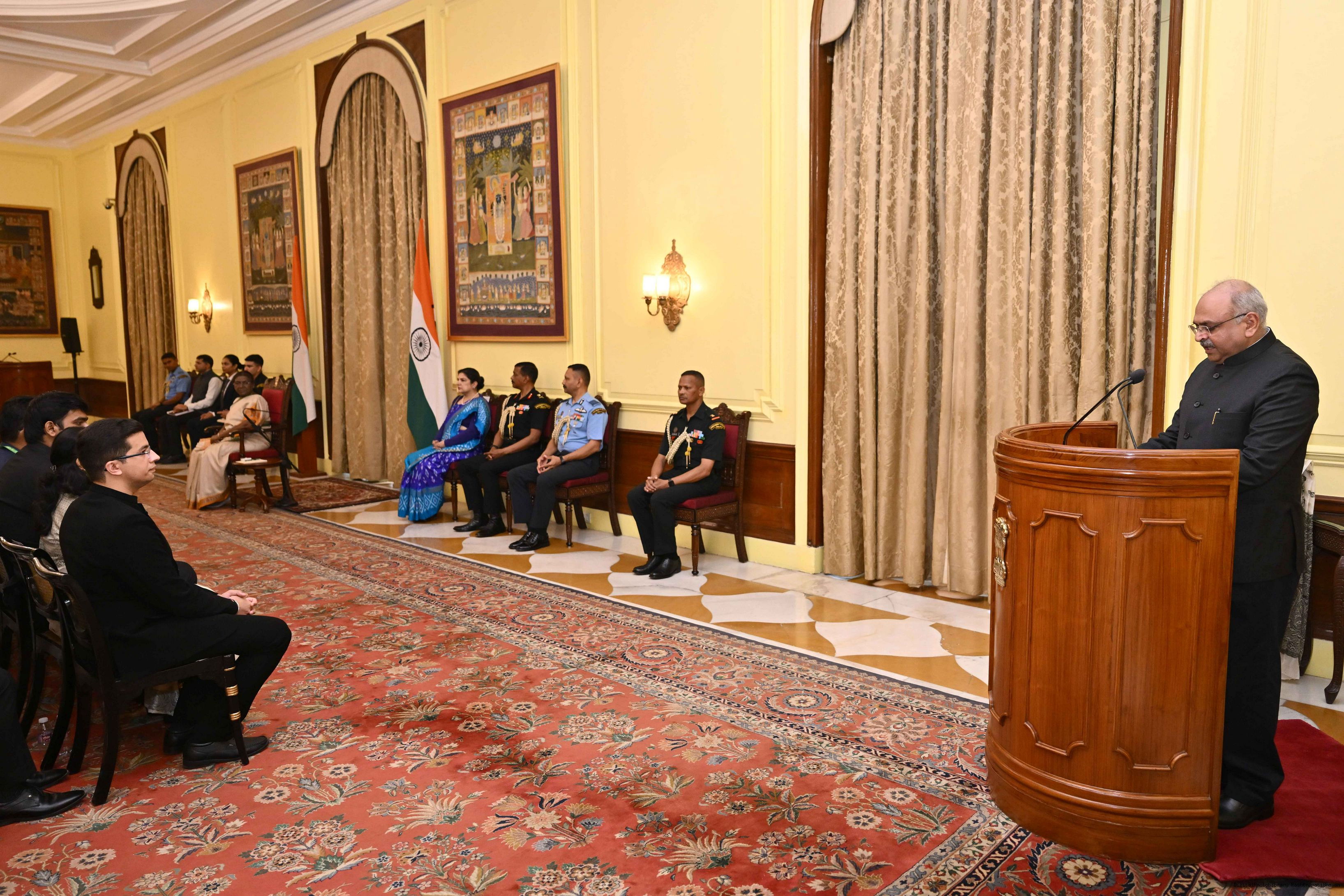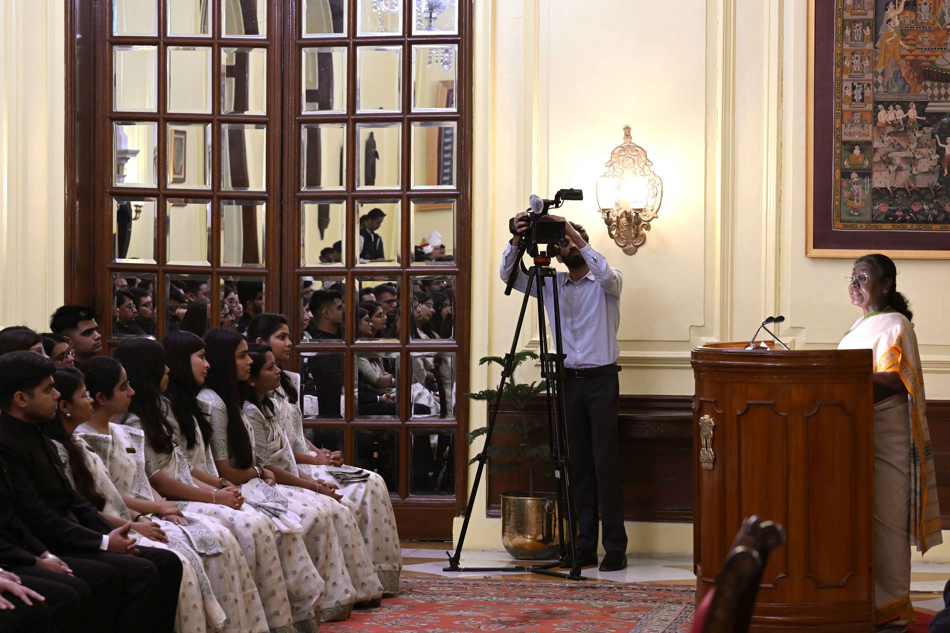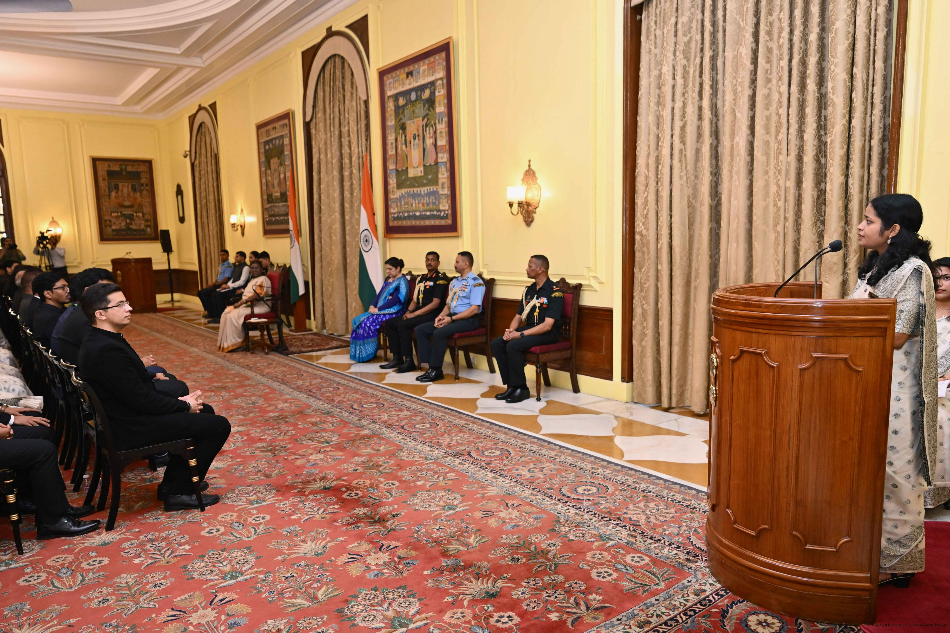 | Caption: | The officer trainees of Indian Revenue Service (78th batch) called on the President of India, Smt Droupadi Murmu at Rashtrapati Bhavan on March 4, 2025. |