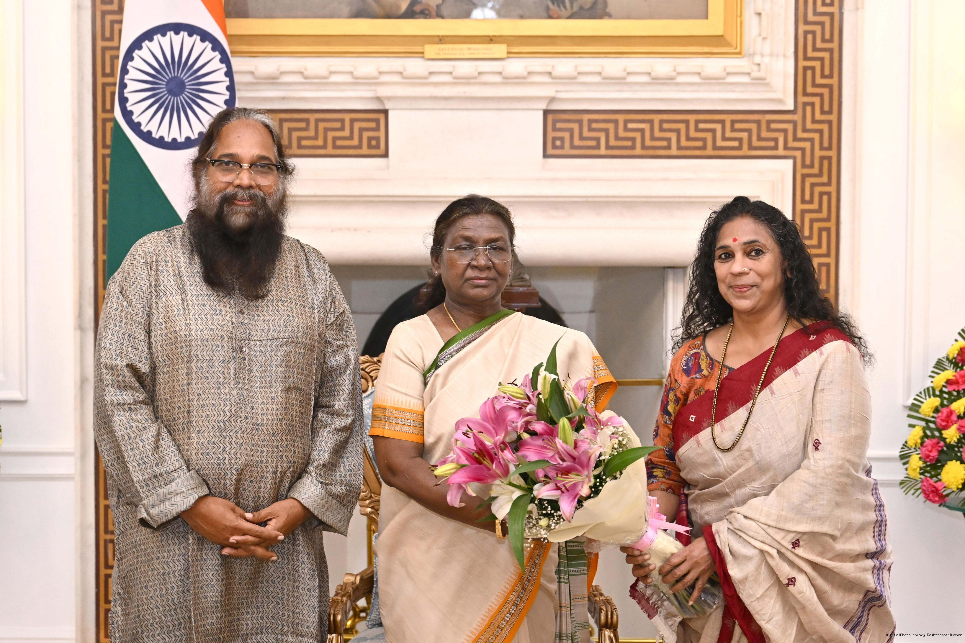 | Caption: | Shri Adwaita Gadanayak, Nominee for Padma Shri Award-2025 along with wife Smt. Nivedita Mishra meeting with the President of India Smt. Droupadi Murmu at Rashtrapati Bhavan on March 4, 2025. |