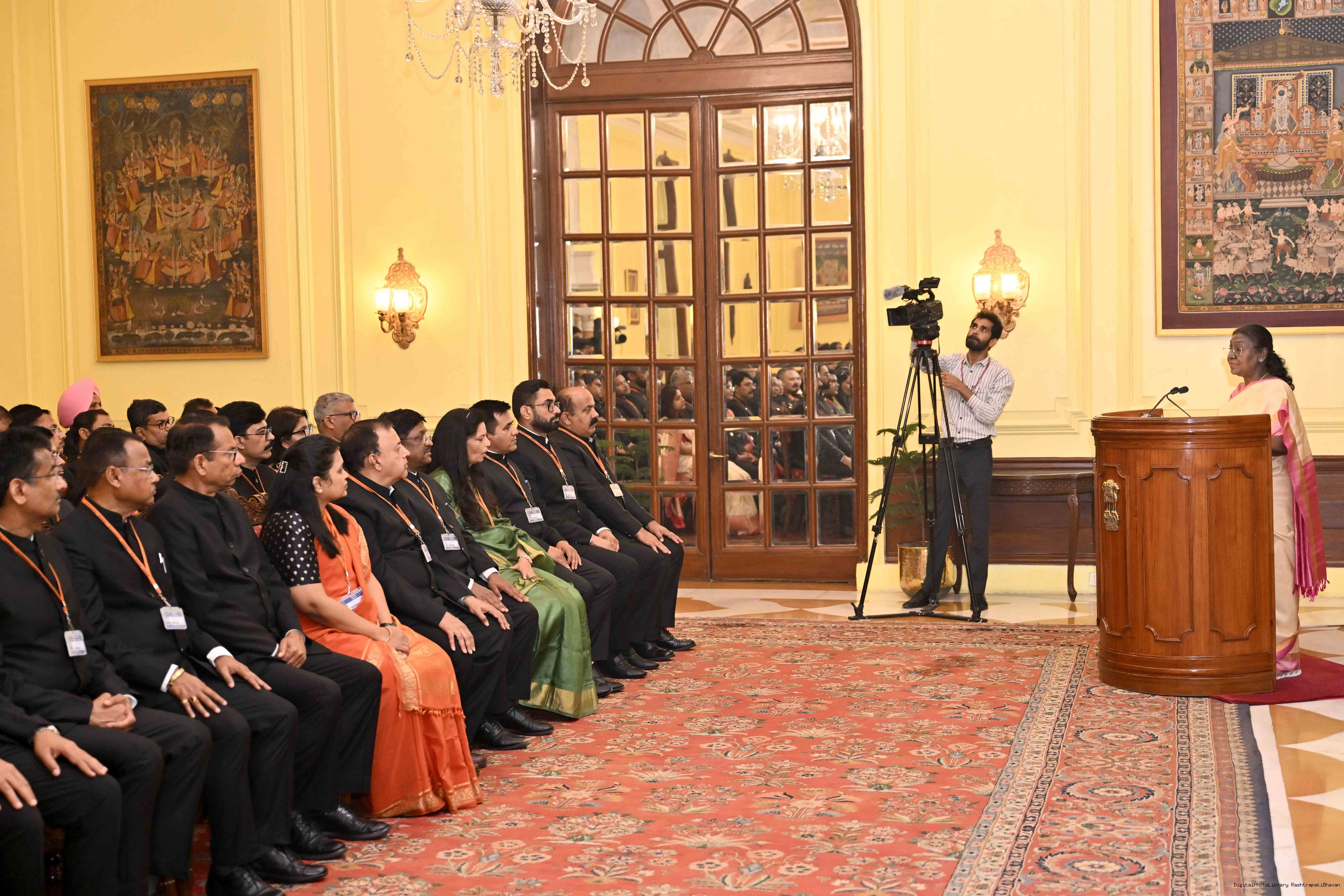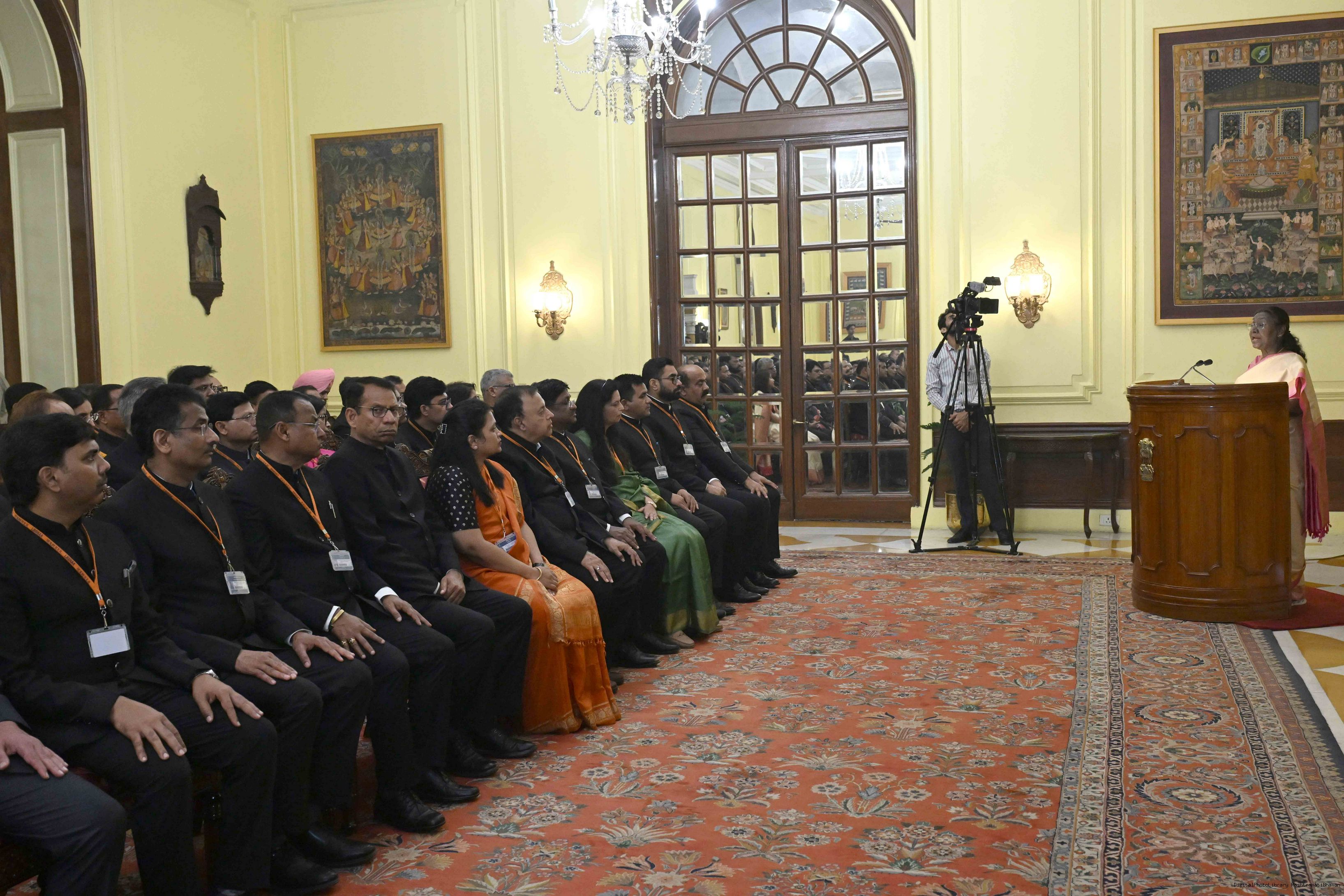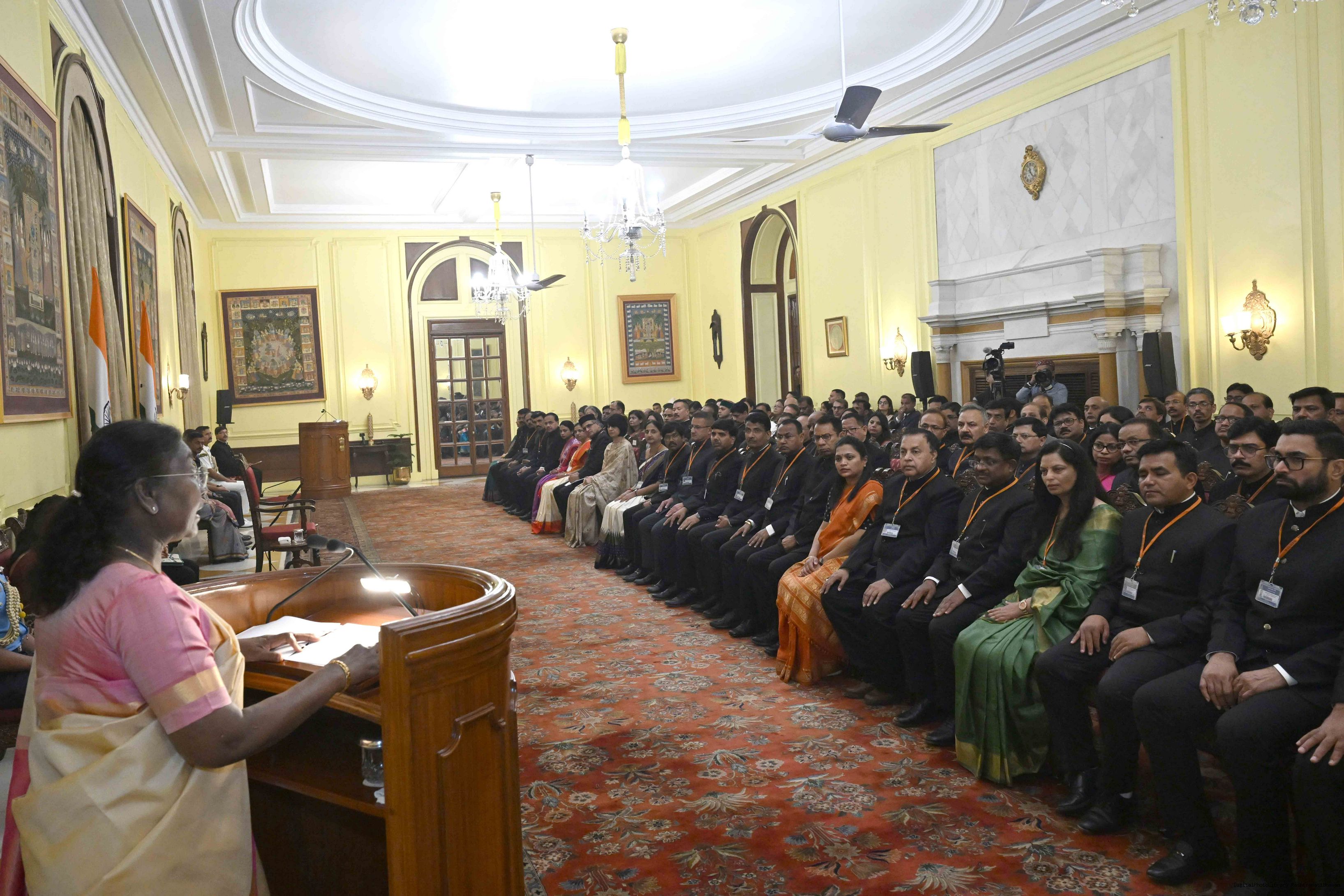 | Caption: | State civil services officers attending the 126th Induction Training Programme at LBSNAA called on the President of India, Smt Droupadi Murmu at Rashtrapati Bhavan on March 07, 2025. |