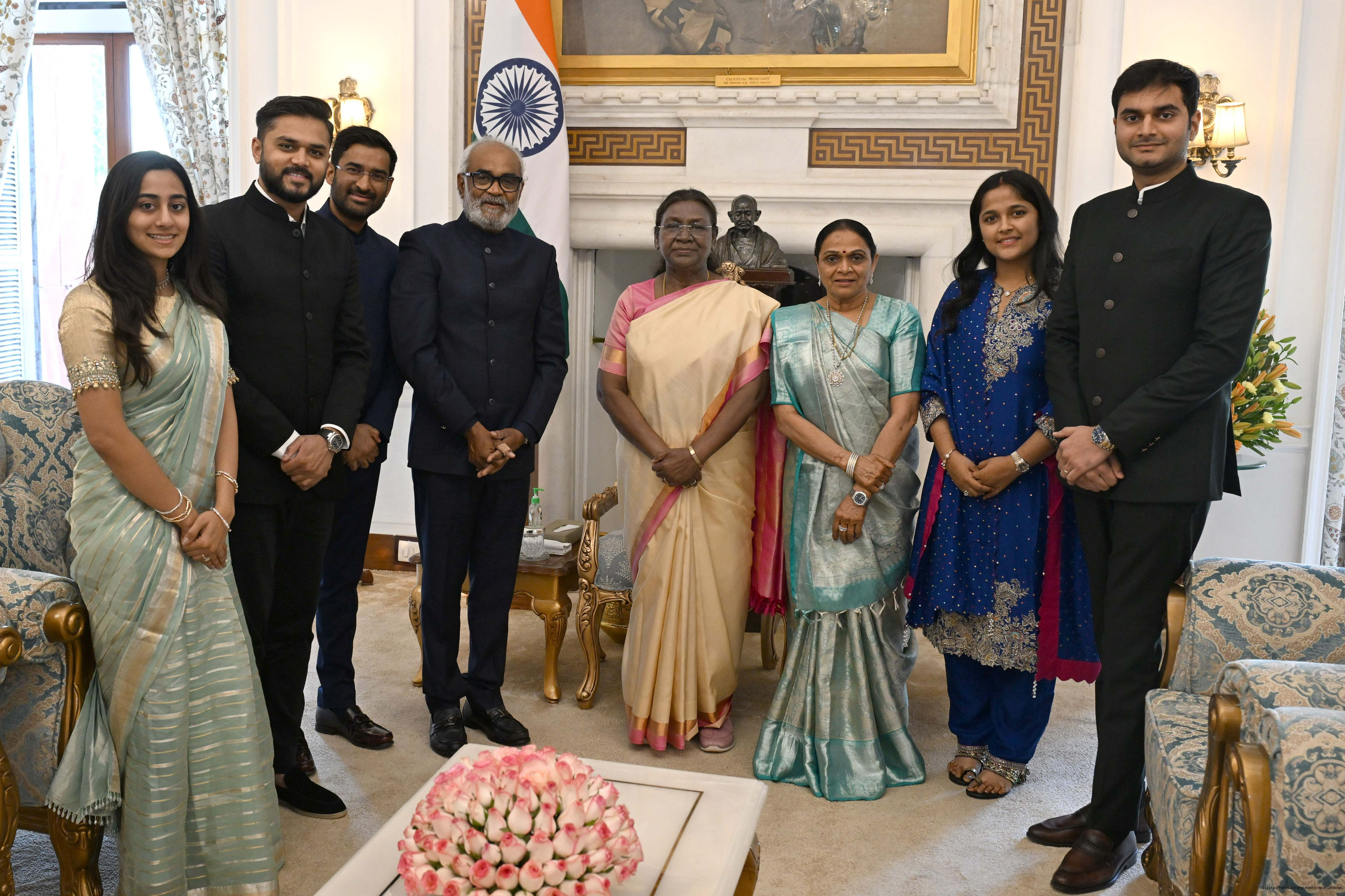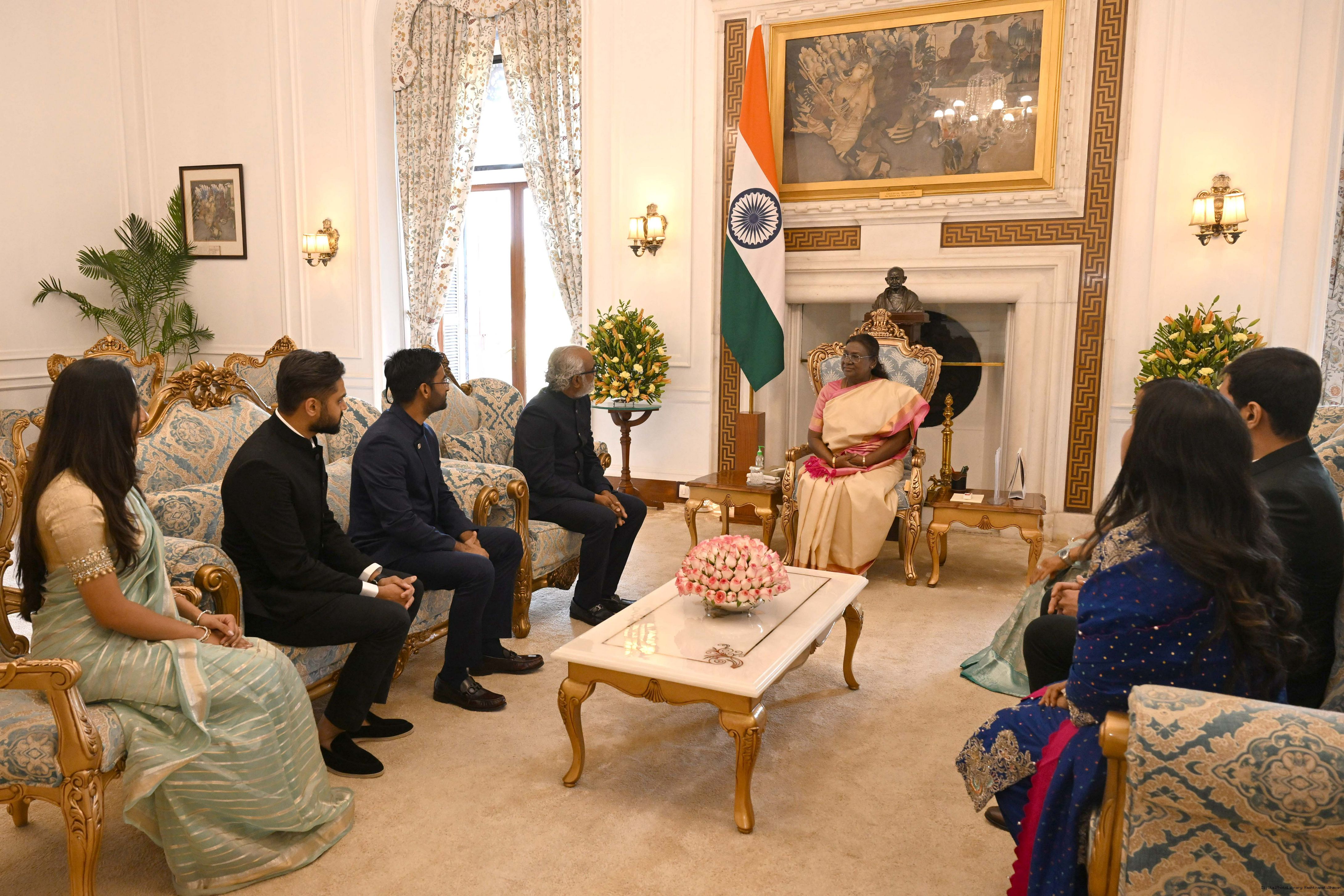 | Caption: | Shri Savjibhai Dholakia, Padma Shri awardee and Founder Chairman, Hari Krishna Exports Pvt Ltd along with others meeting with the President of India, Smt. Droupadi Murmu at Rashtrapati Bhavan on March 7, 2025. |