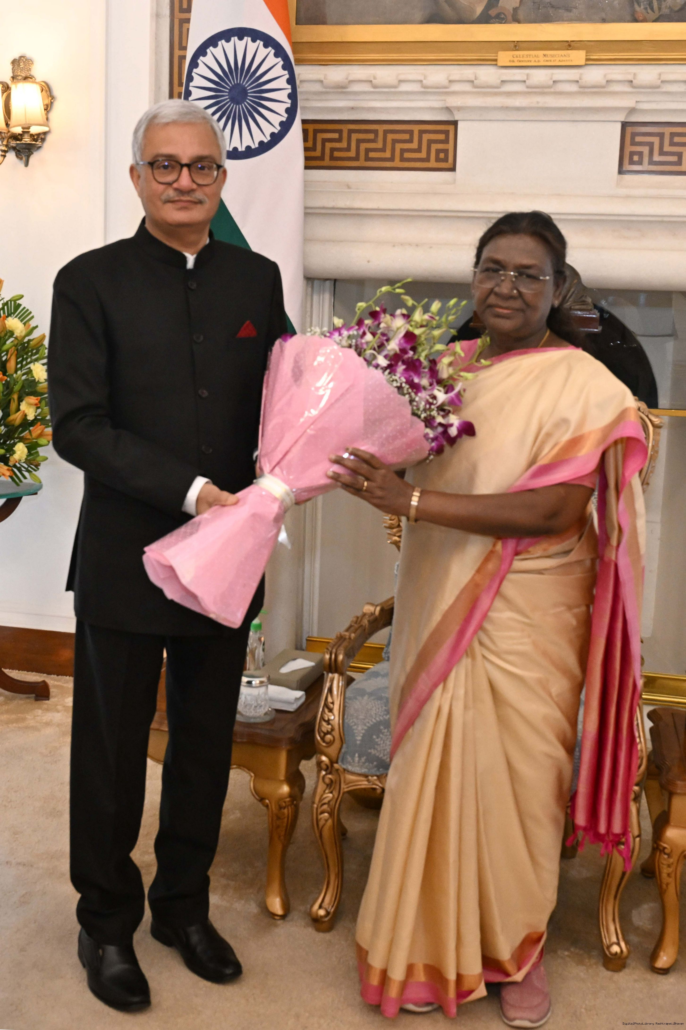 | Caption: | Dr. Vivek Joshi, Election Commissioner of India meeting with the President of India, Smt. Droupadi Murmu at Rashtrapati Bhavan on March 7, 2025. |