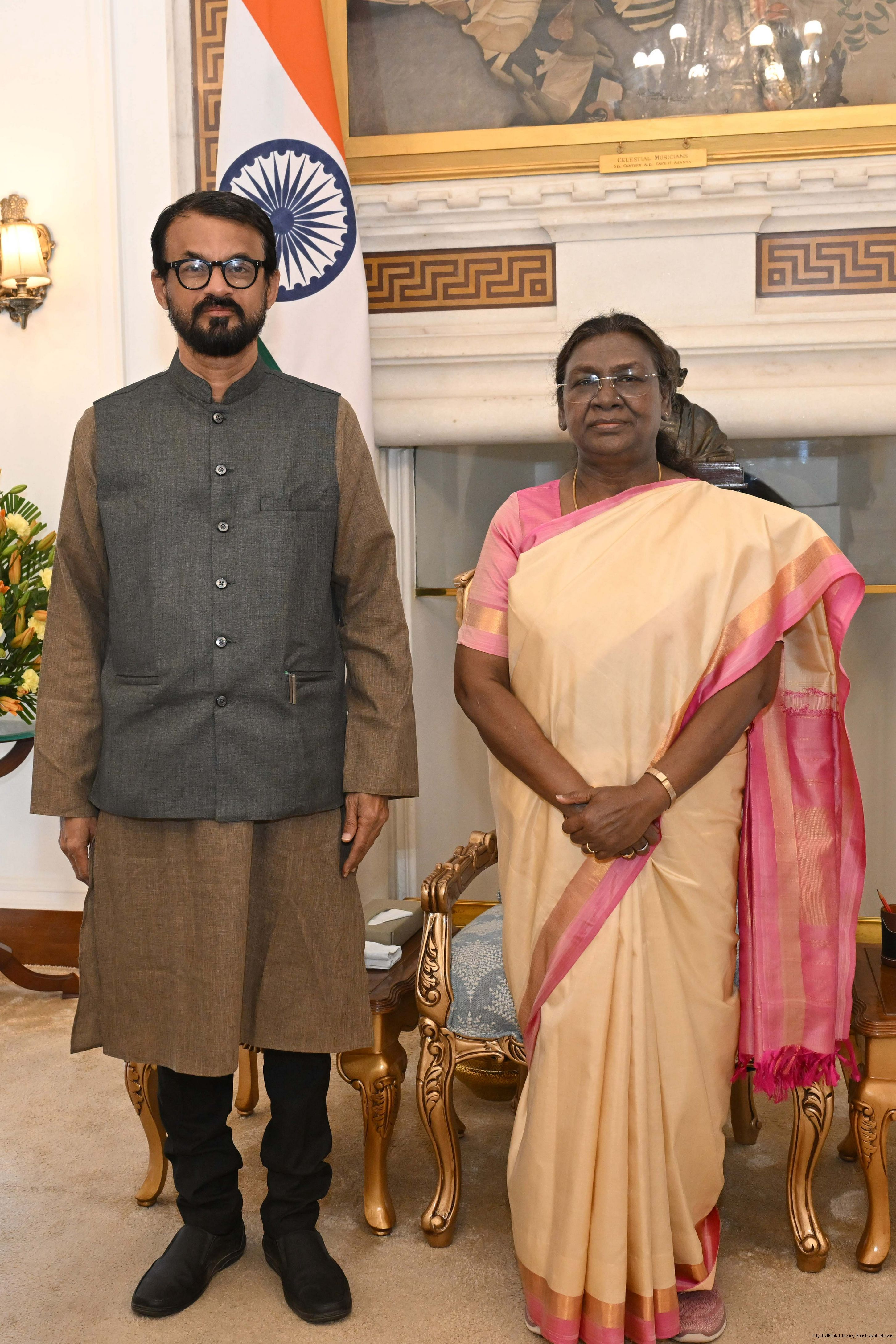 | Caption: | Shri K.K. Gopalakrishnan, Director, South Zone Cultural Centre, Thanjavur, Tamil Nadu meeting with the President of India, Smt. Droupadi Murmu at Rashtrapati Bhavan on March 7, 2025. |