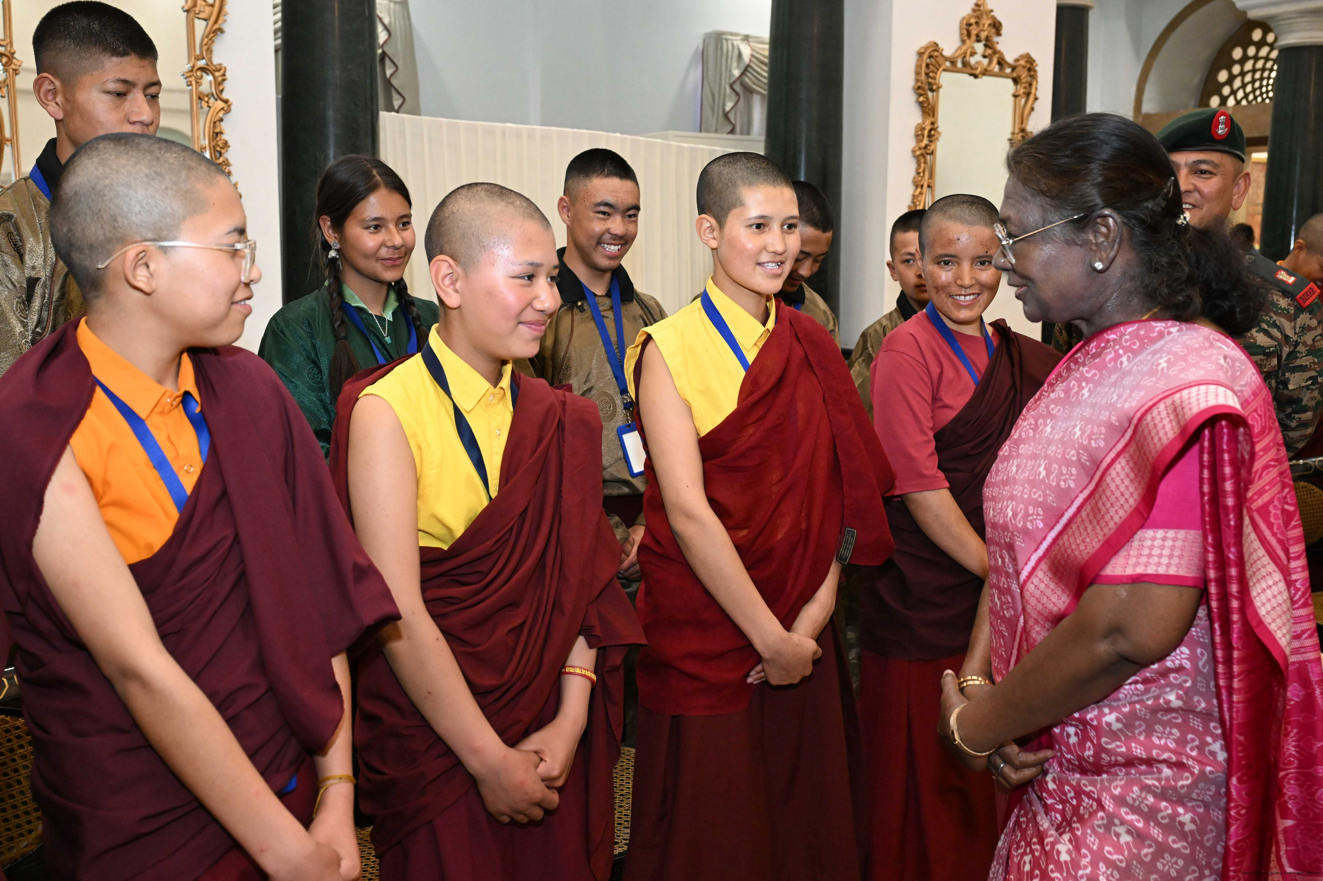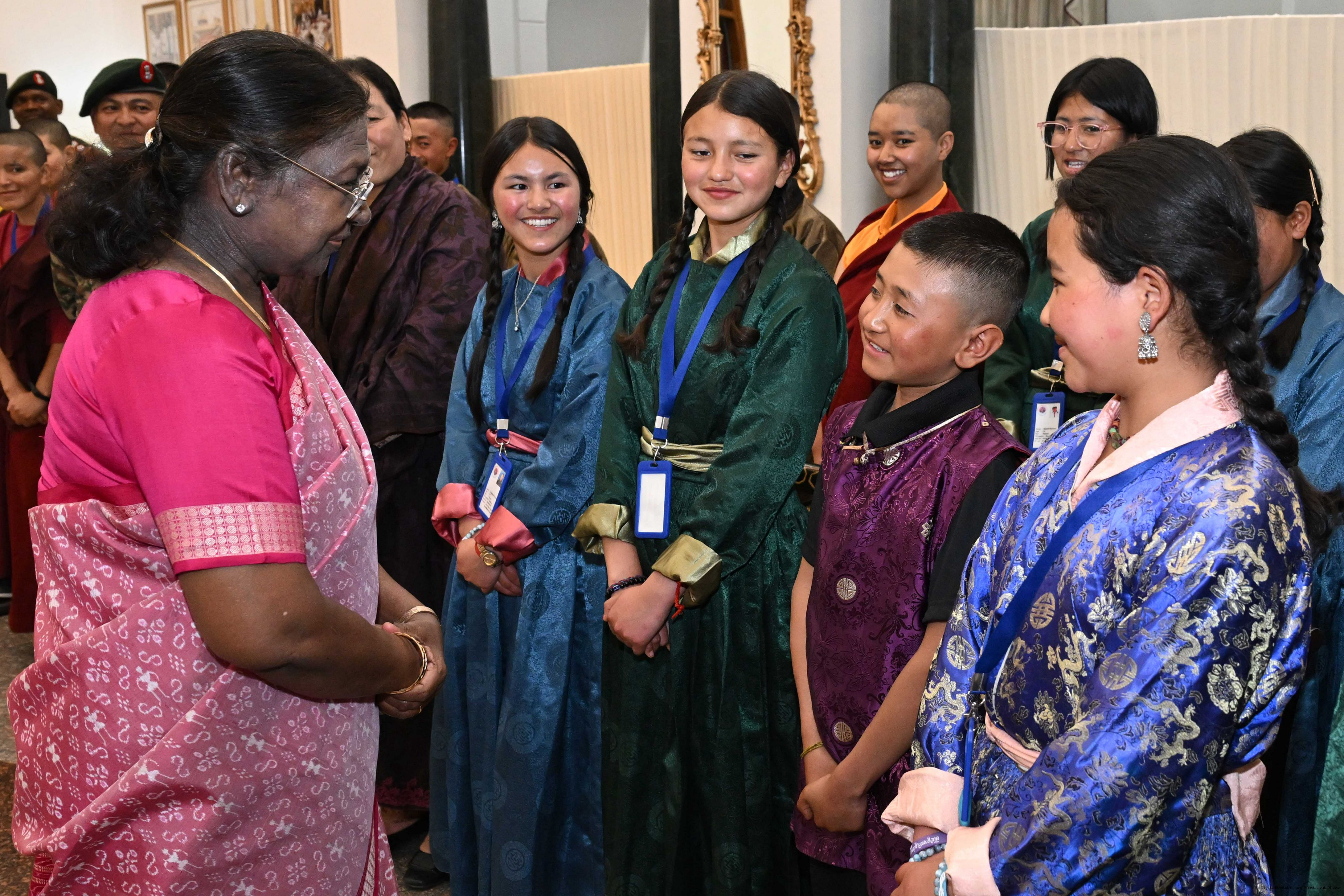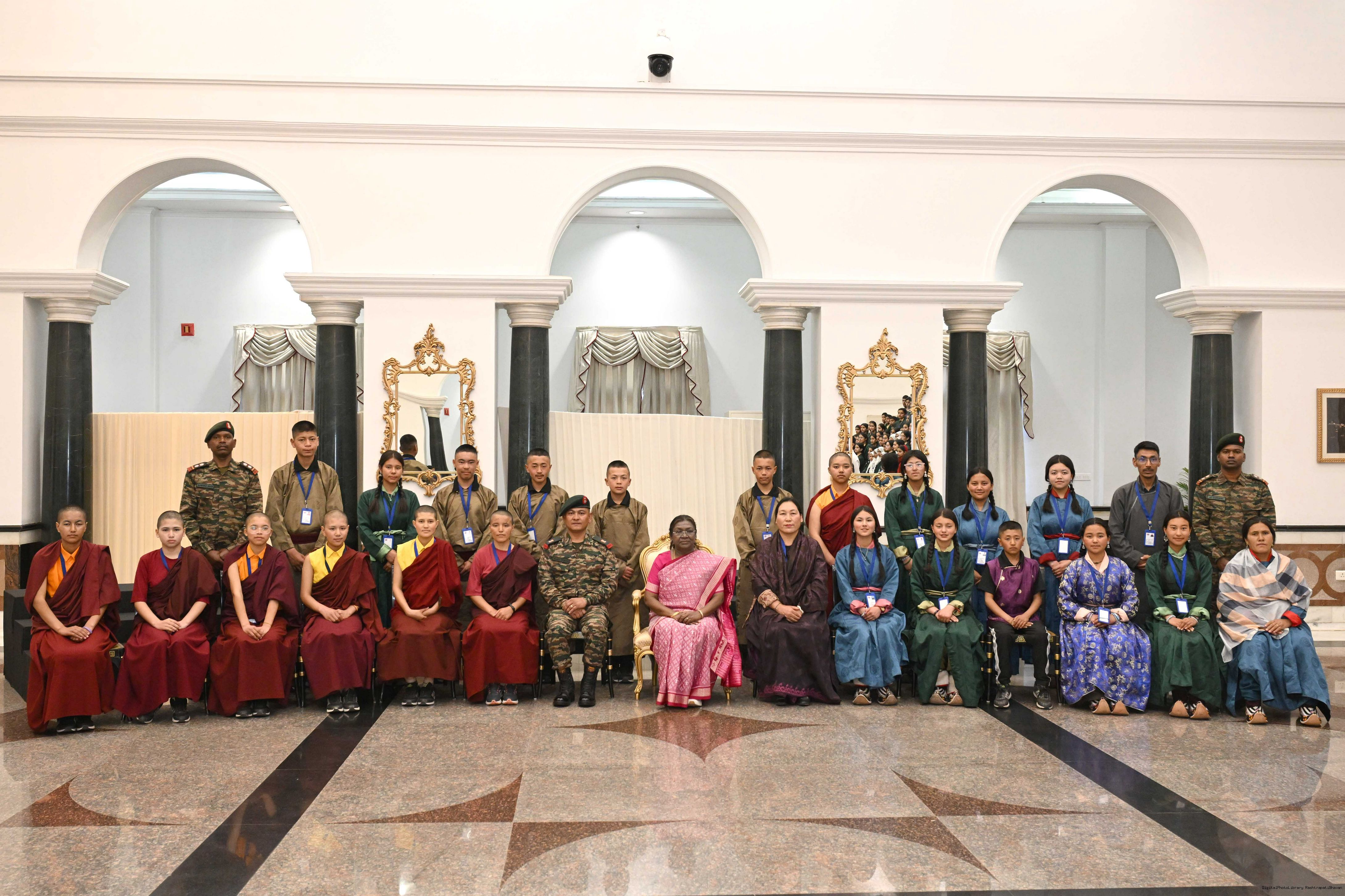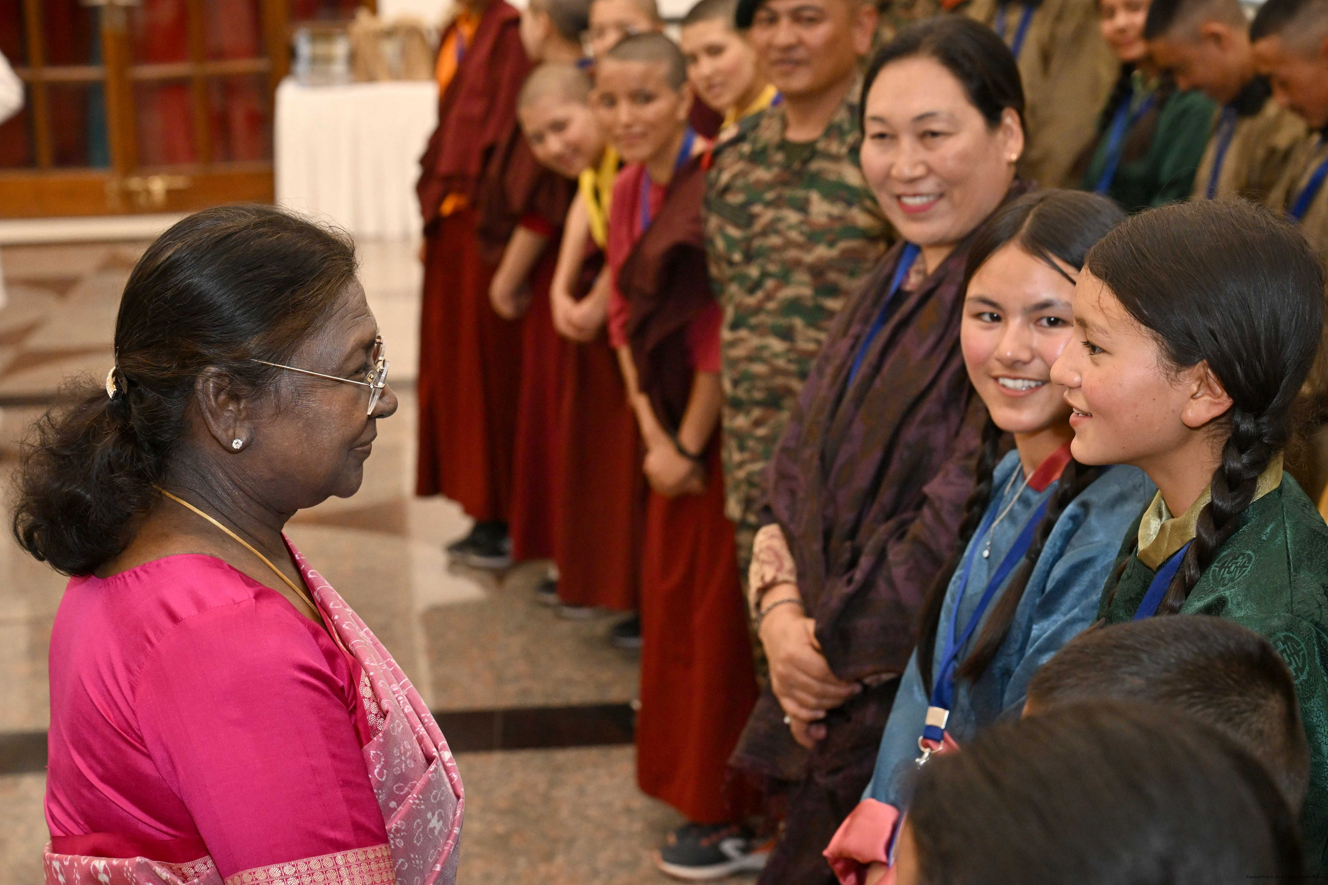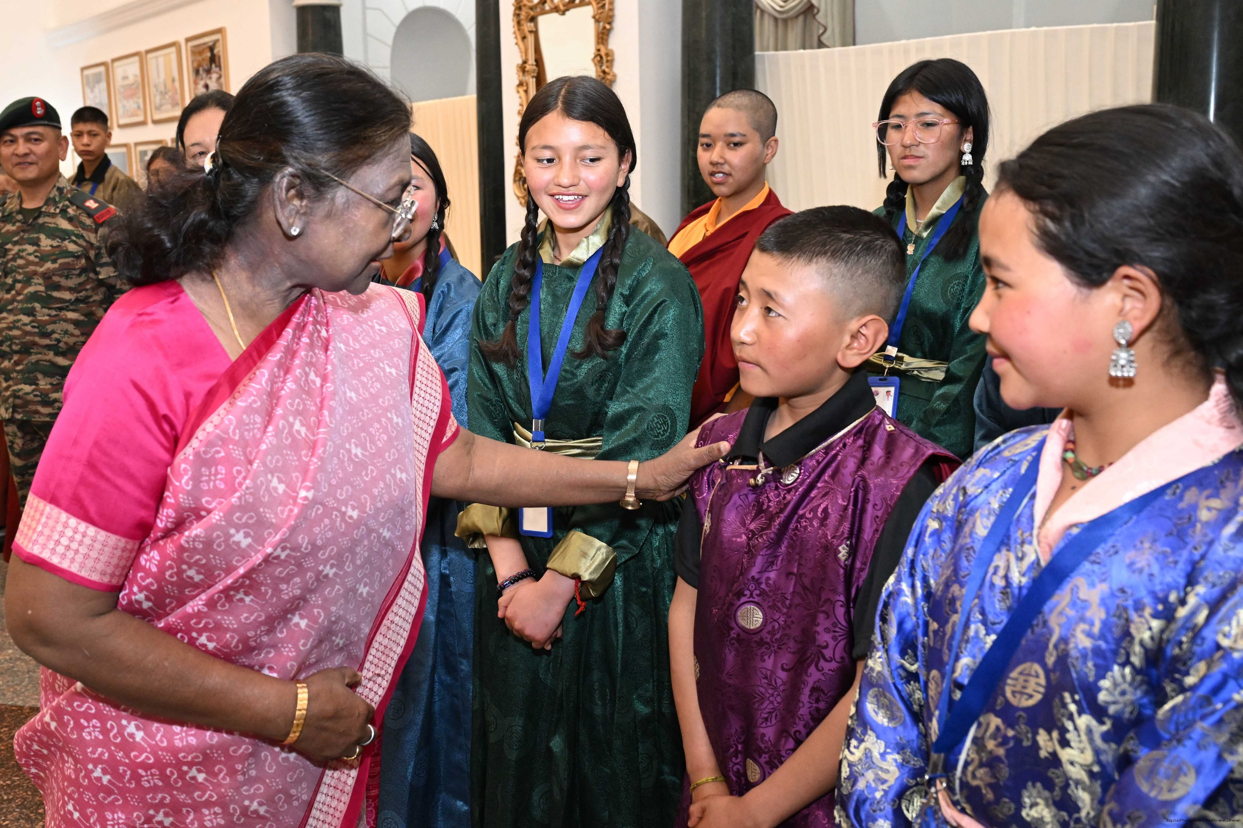 | Caption: | The President of India, Smt. Droupadi Murmu met group of students from Ladakh attending the National Integration Tour and students from various Eklavya Model Residential Schools of Jammu Kashmir at Rashtrapati Bhavan on March 18, 2025. |