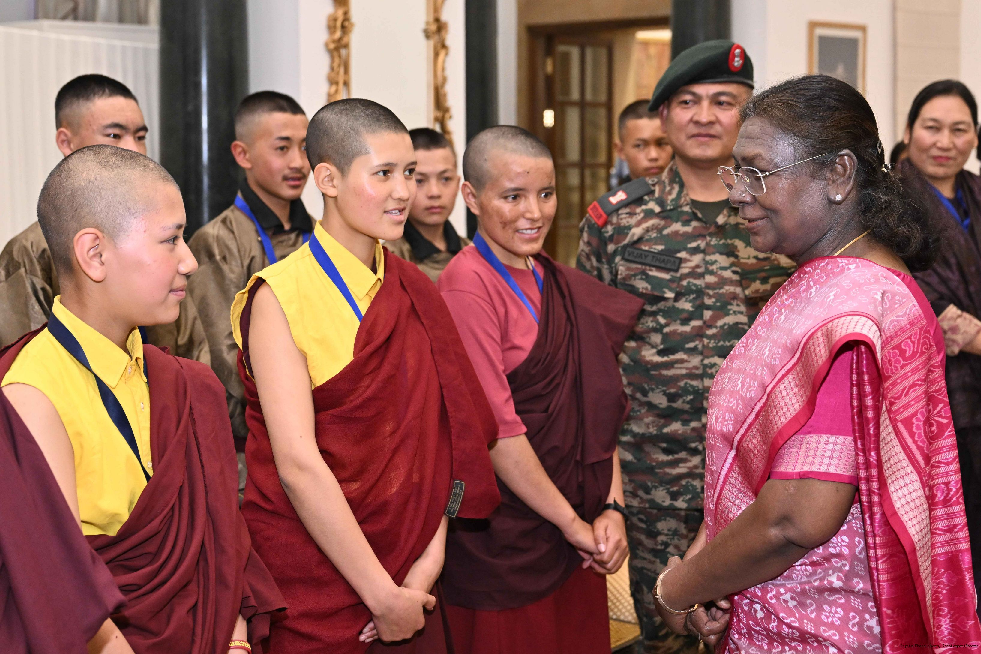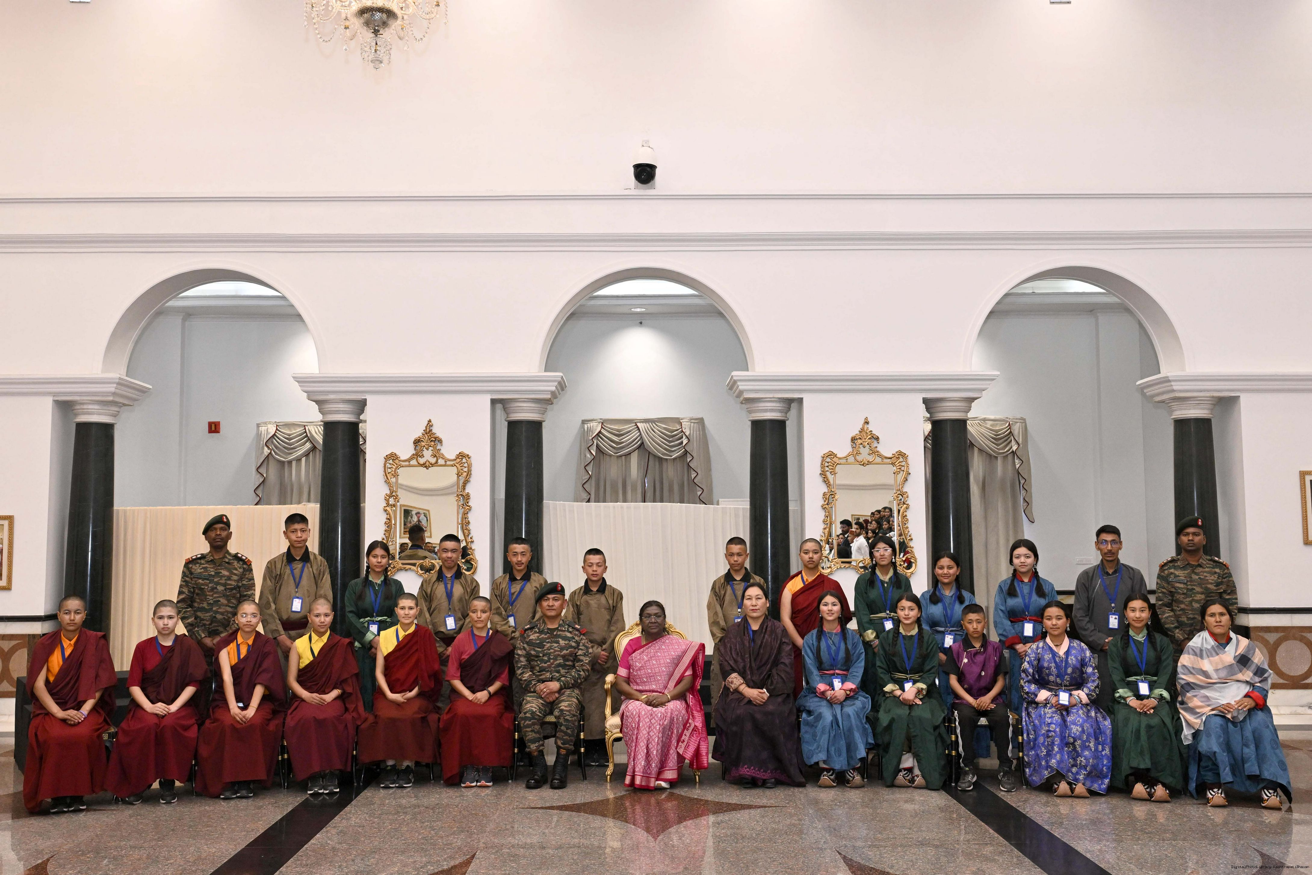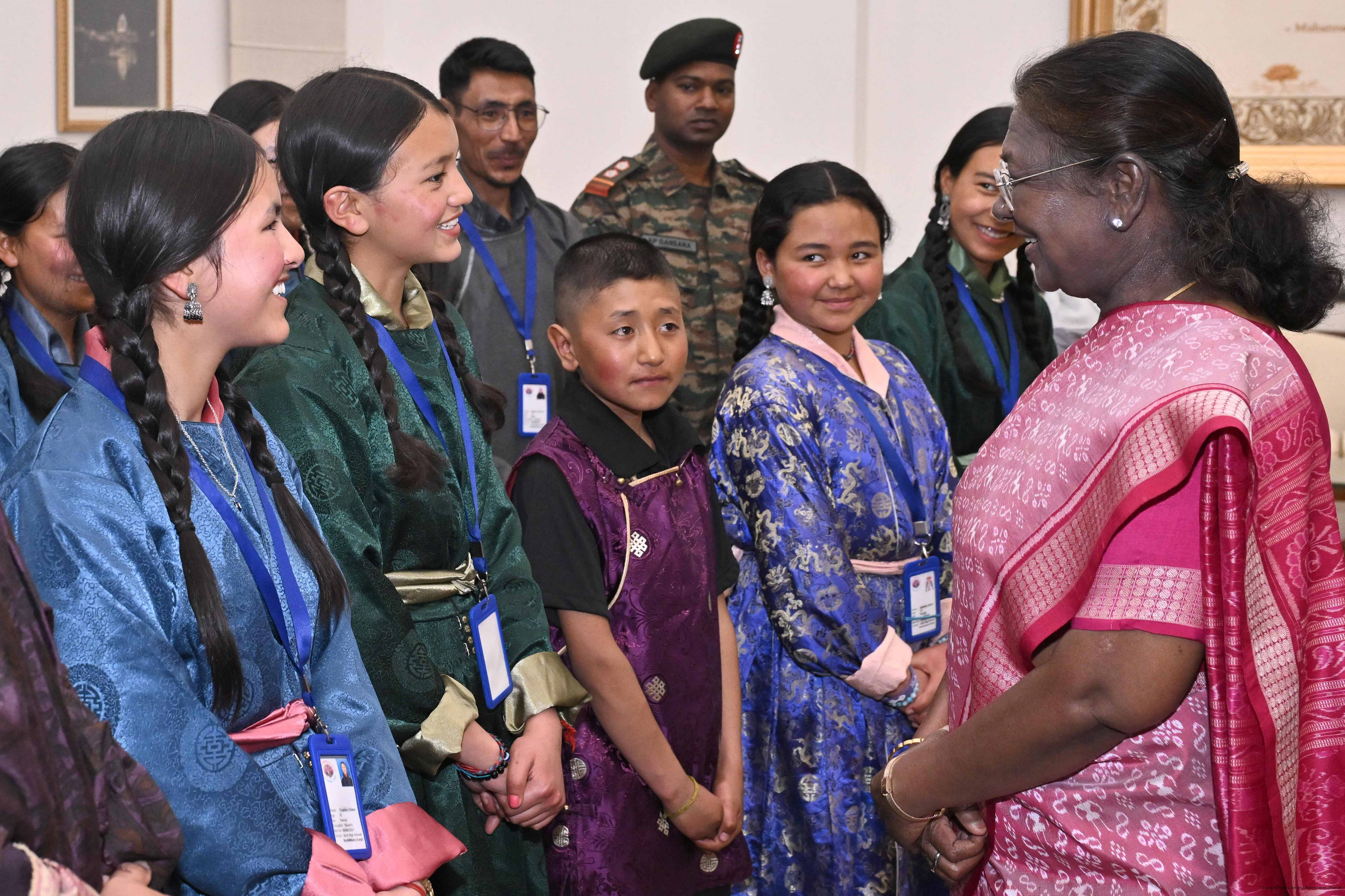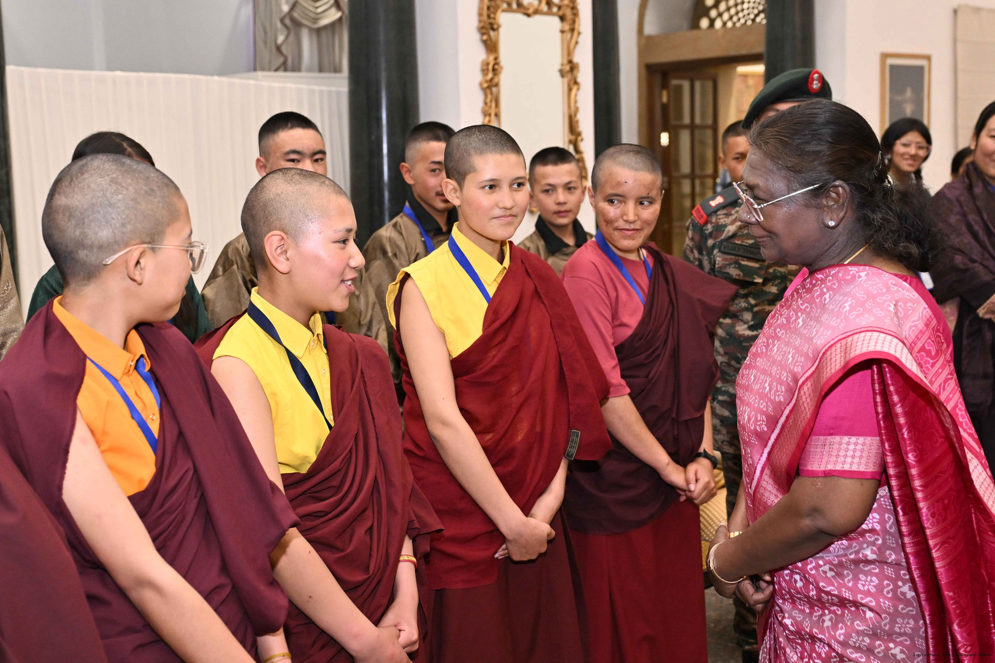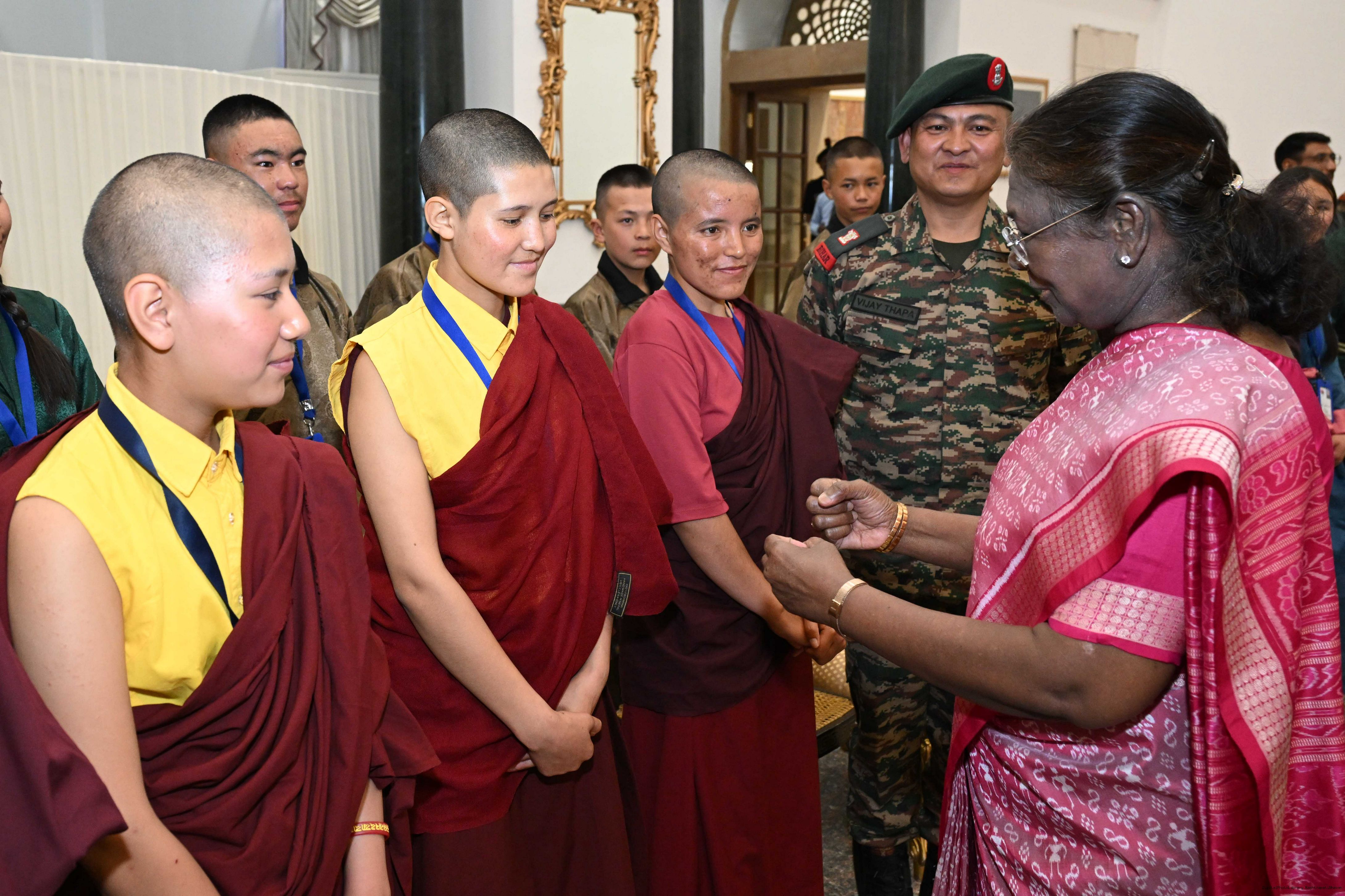 | Caption: | The President of India, Smt. Droupadi Murmu met group of students from Ladakh attending the National Integration Tour and students from various Eklavya Model Residential Schools of Jammu Kashmir at Rashtrapati Bhavan on March 18, 2025. |