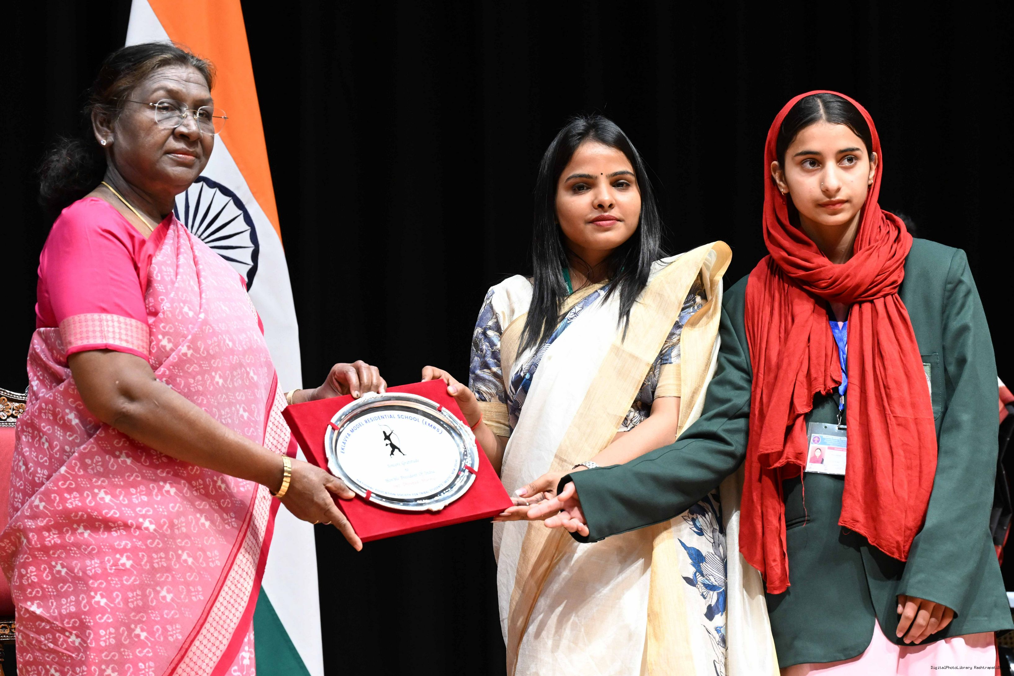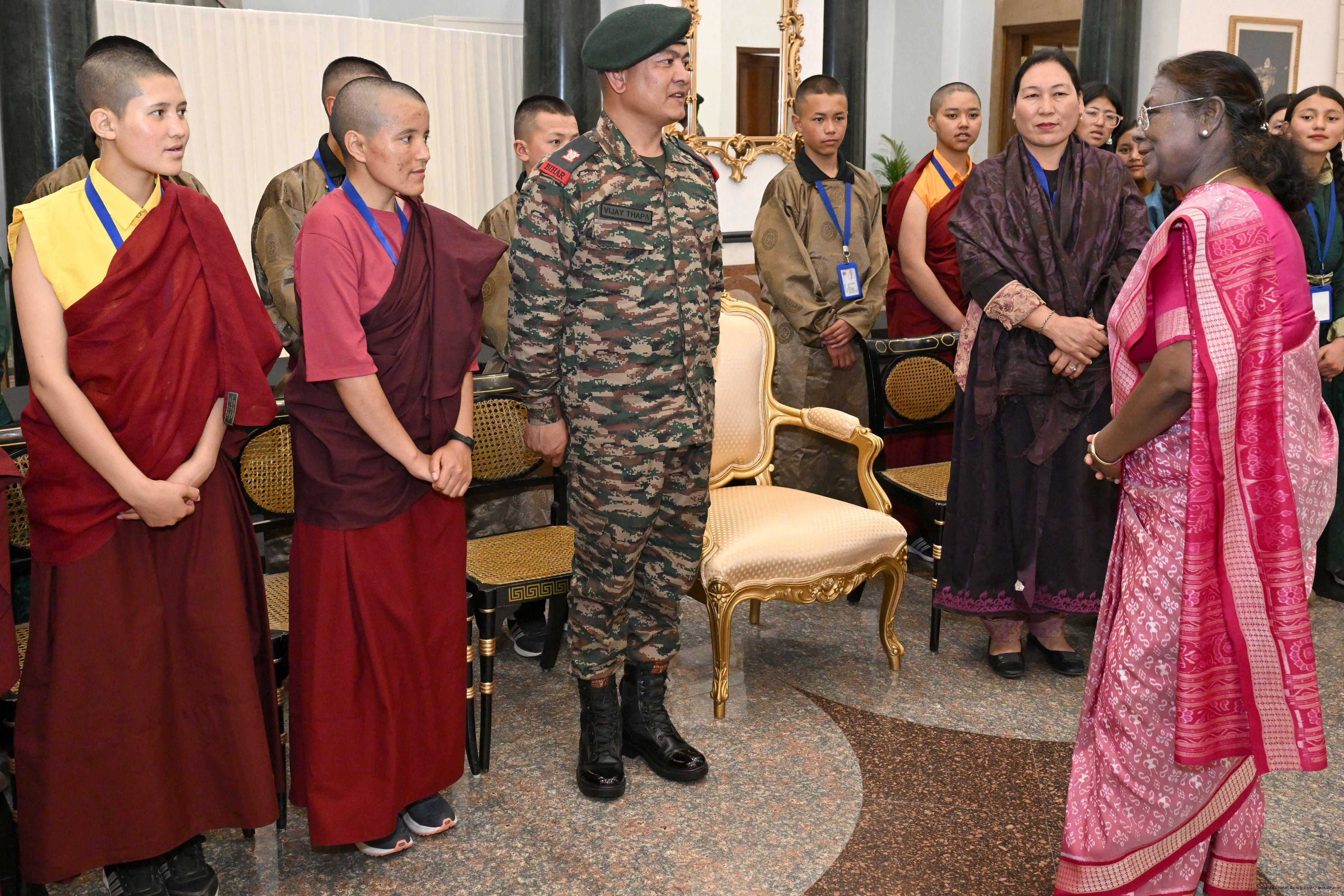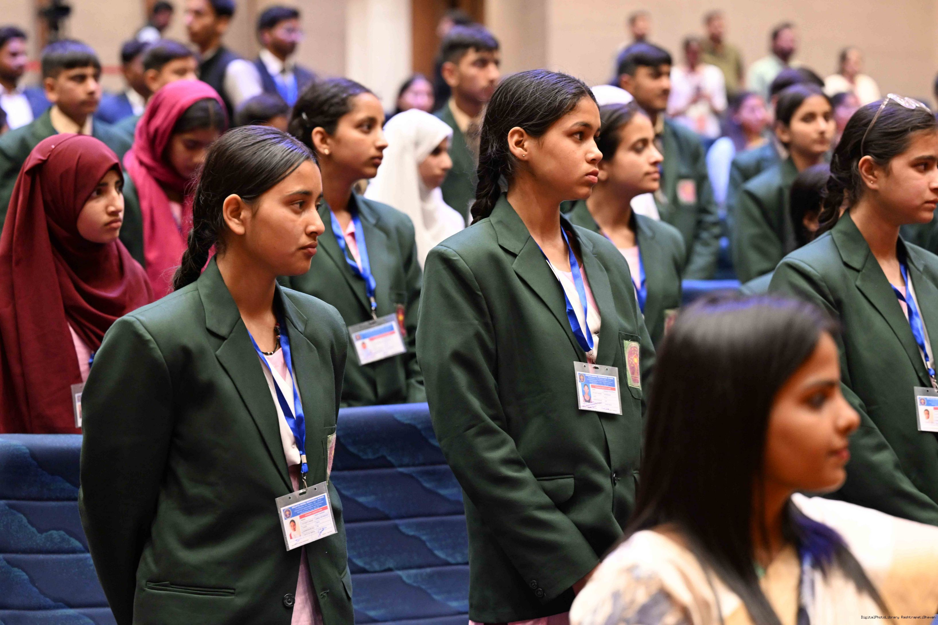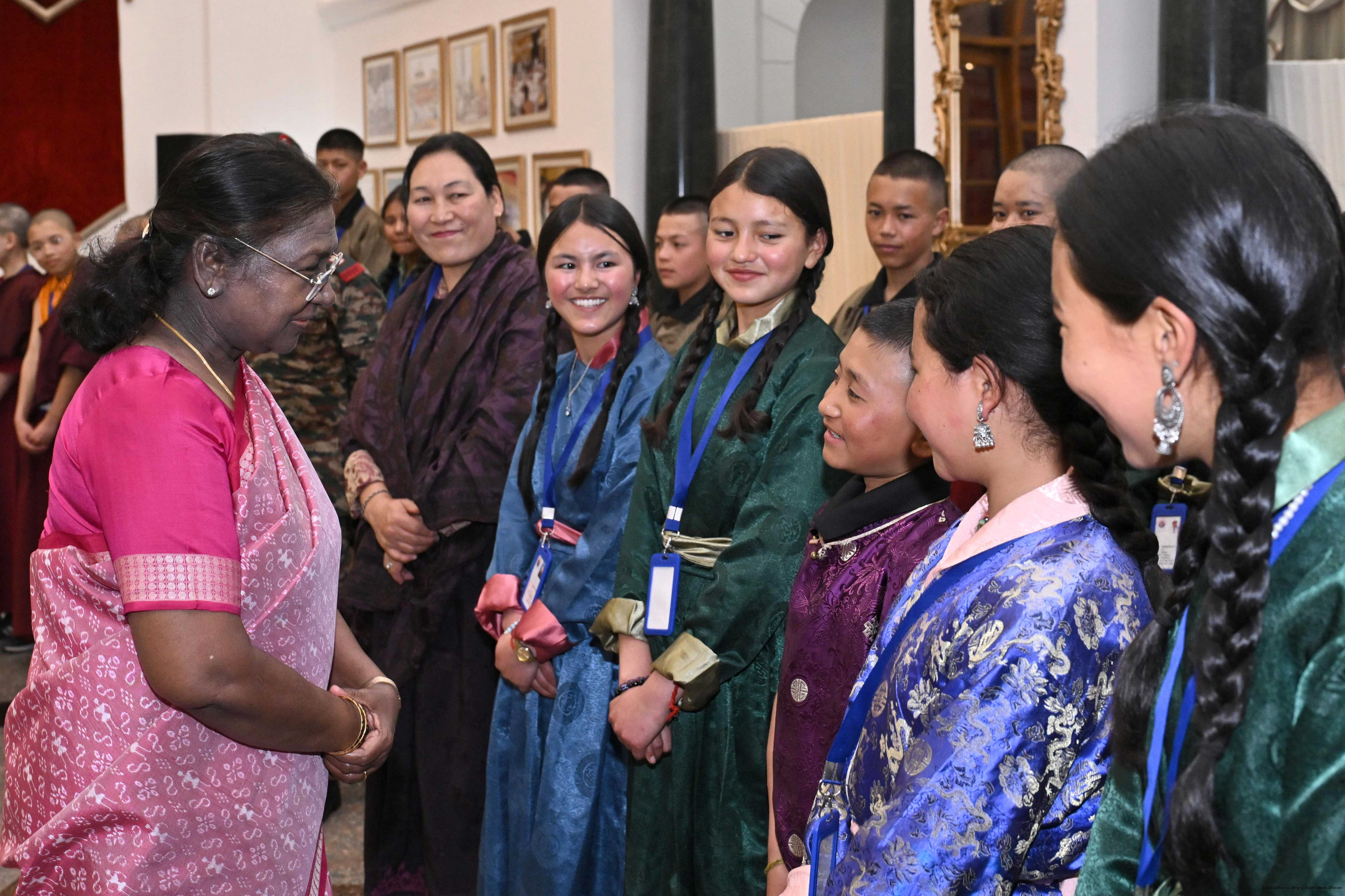| Caption: | The President of India, Smt. Droupadi Murmu met group of students from Ladakh attending the National Integration Tour and students from various Eklavya Model Residential Schools of Jammu Kashmir at Rashtrapati Bhavan on March 18, 2025. |