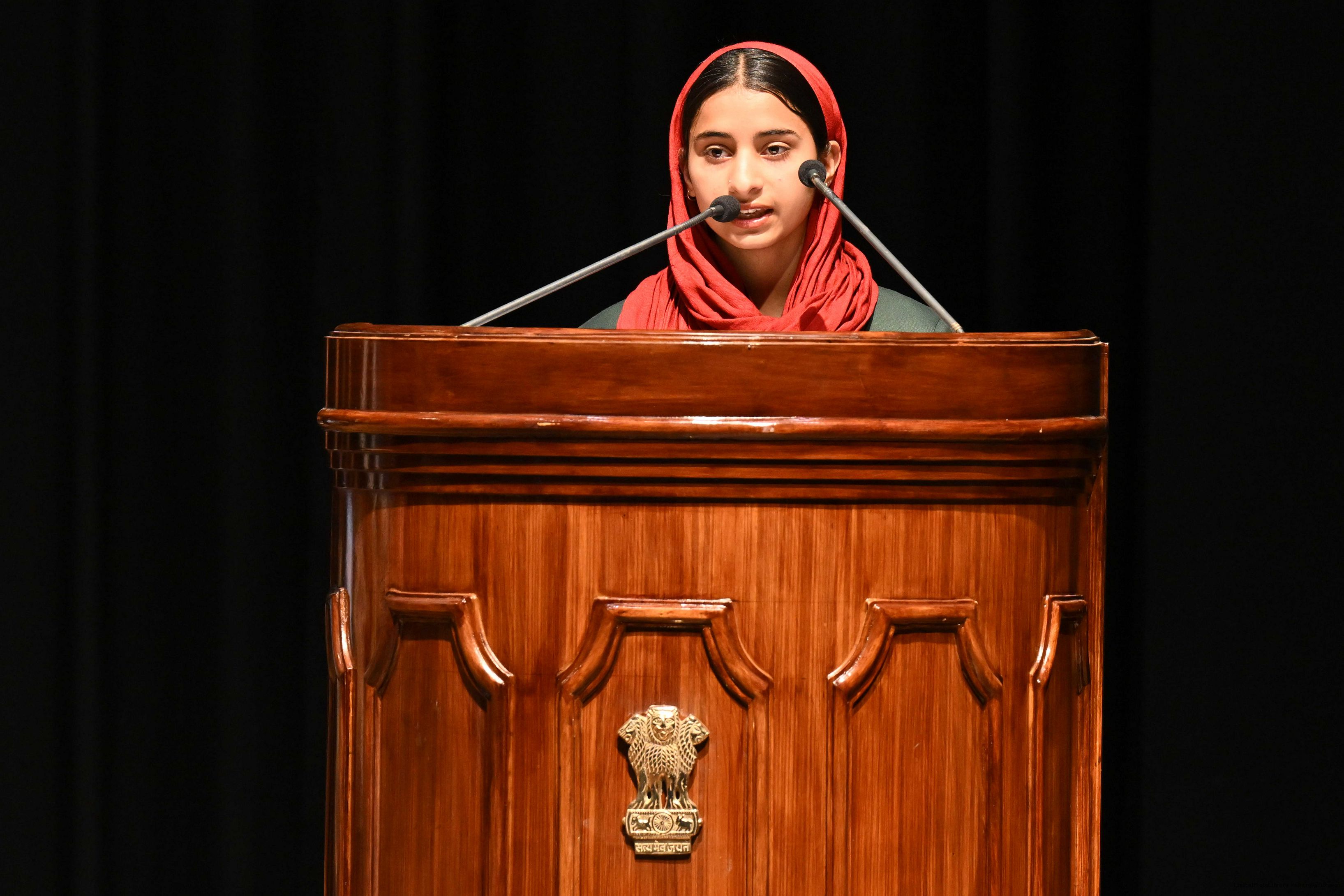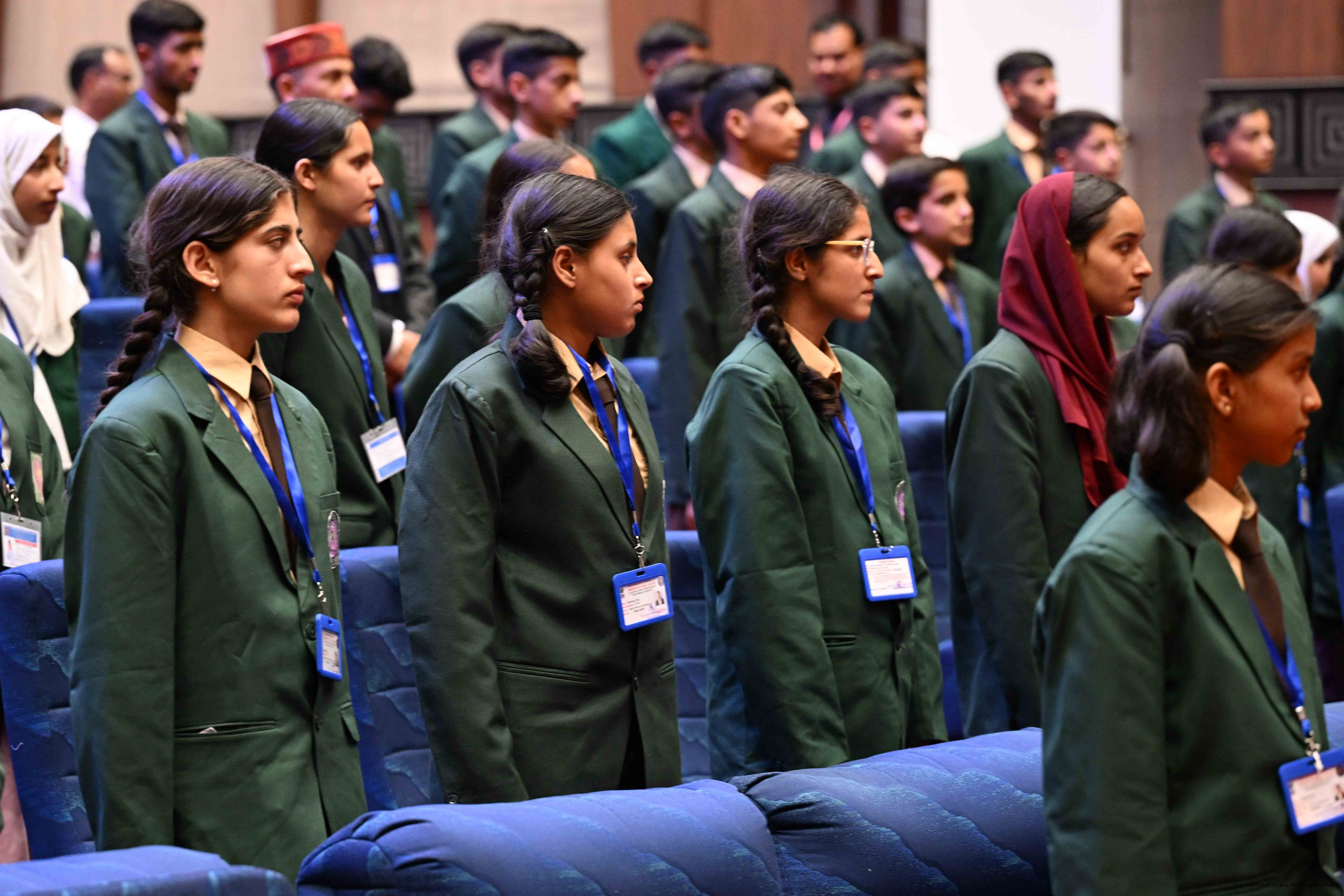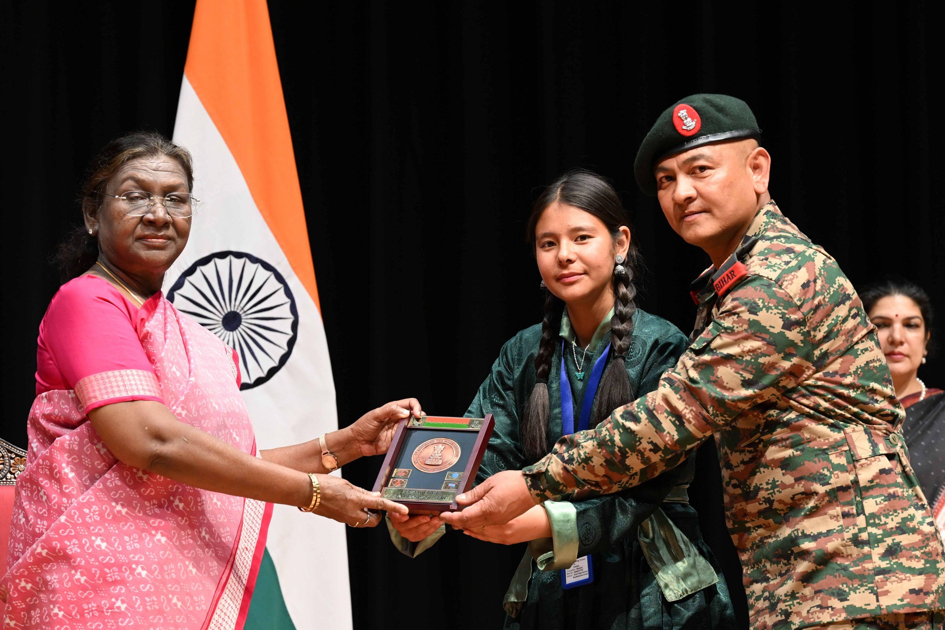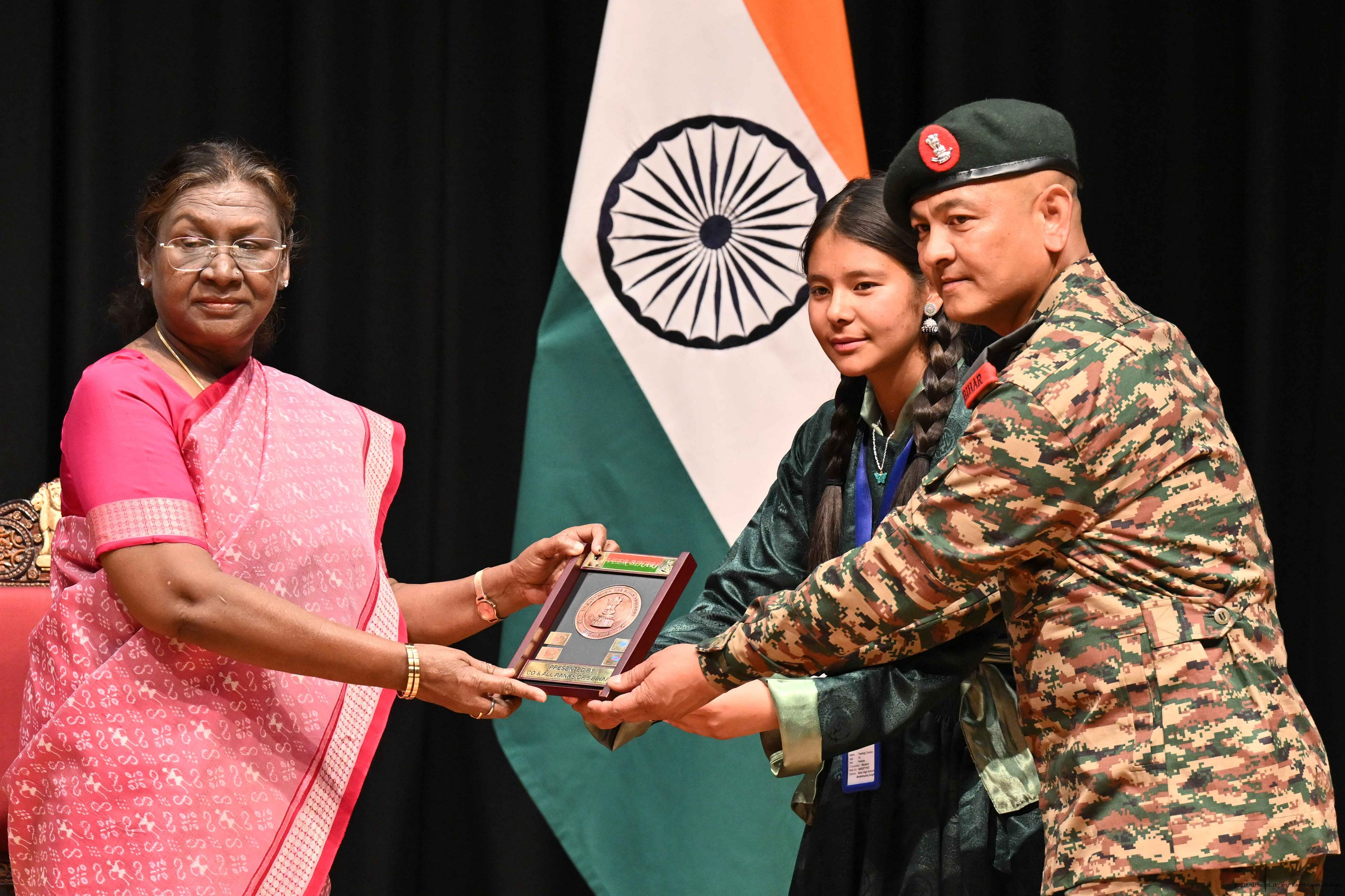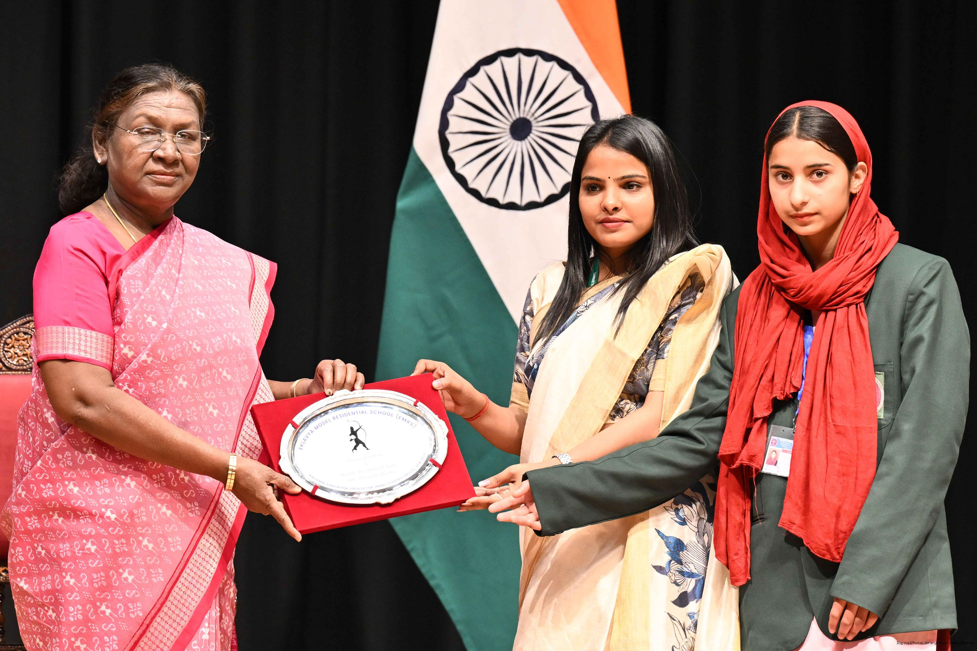 | Caption: | The President of India, Smt. Droupadi Murmu met group of students from Ladakh attending the National Integration Tour and students from various Eklavya Model Residential Schools of Jammu Kashmir at Rashtrapati Bhavan on March 18, 2025. |