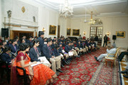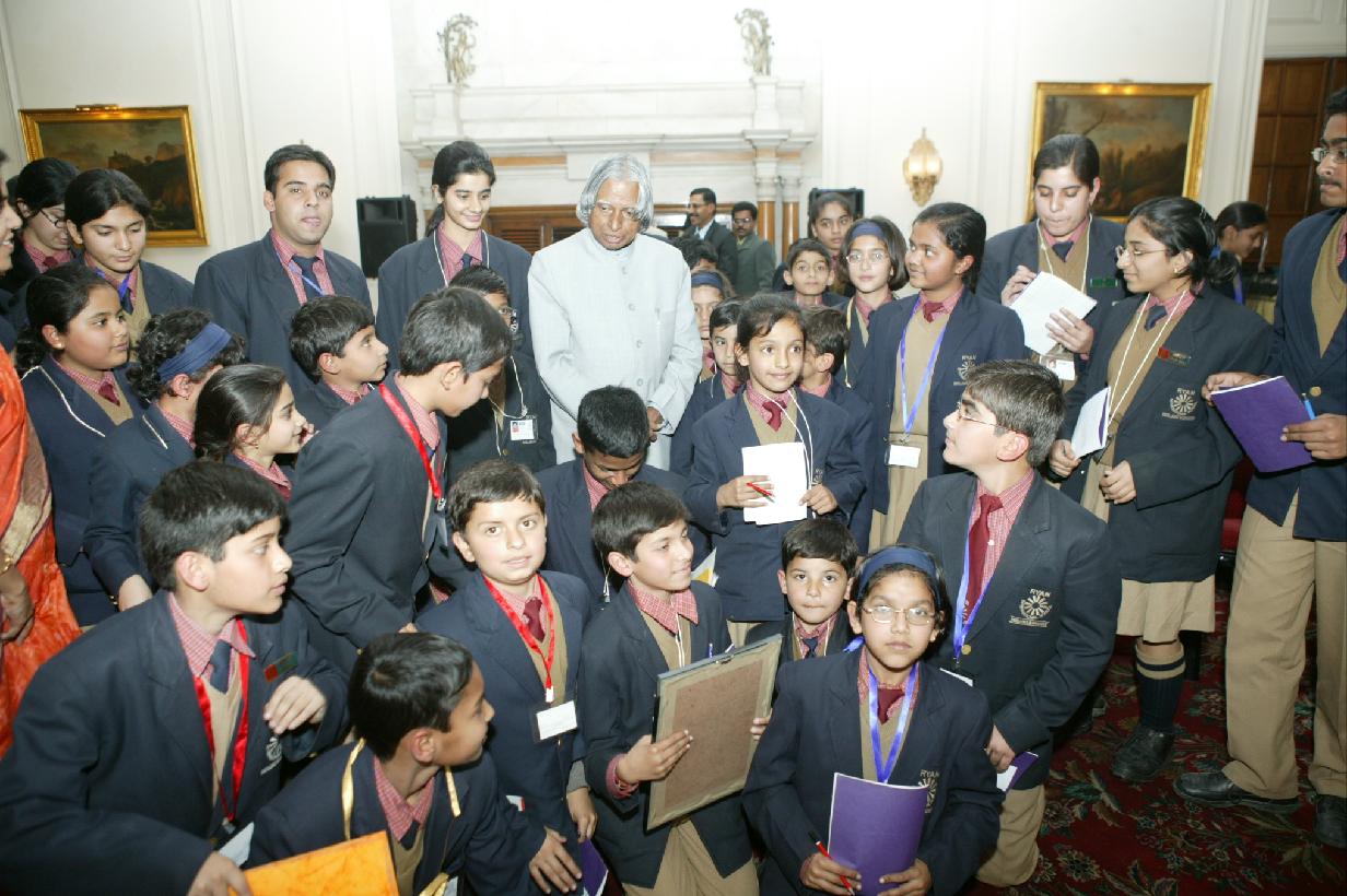 | Caption: | The Students from Ryan International Faridabad calling on the President of India, Dr A P J Abdul Kalam at the Yellow Drawig Room of Rashtrapati Bhavan in New Delhi on Jan 20, 2004 |