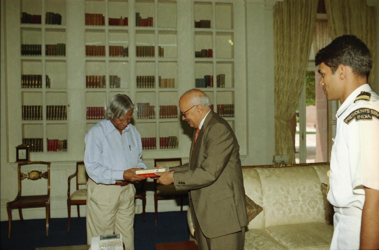 | Caption: | The President of India, Dr A P J Abdul Kalam at a Book Presentation from the Former Home Secretary, Shri B P Singh at Rashtrapati Bhavan in New Delhi on Aug 07, 2002 |