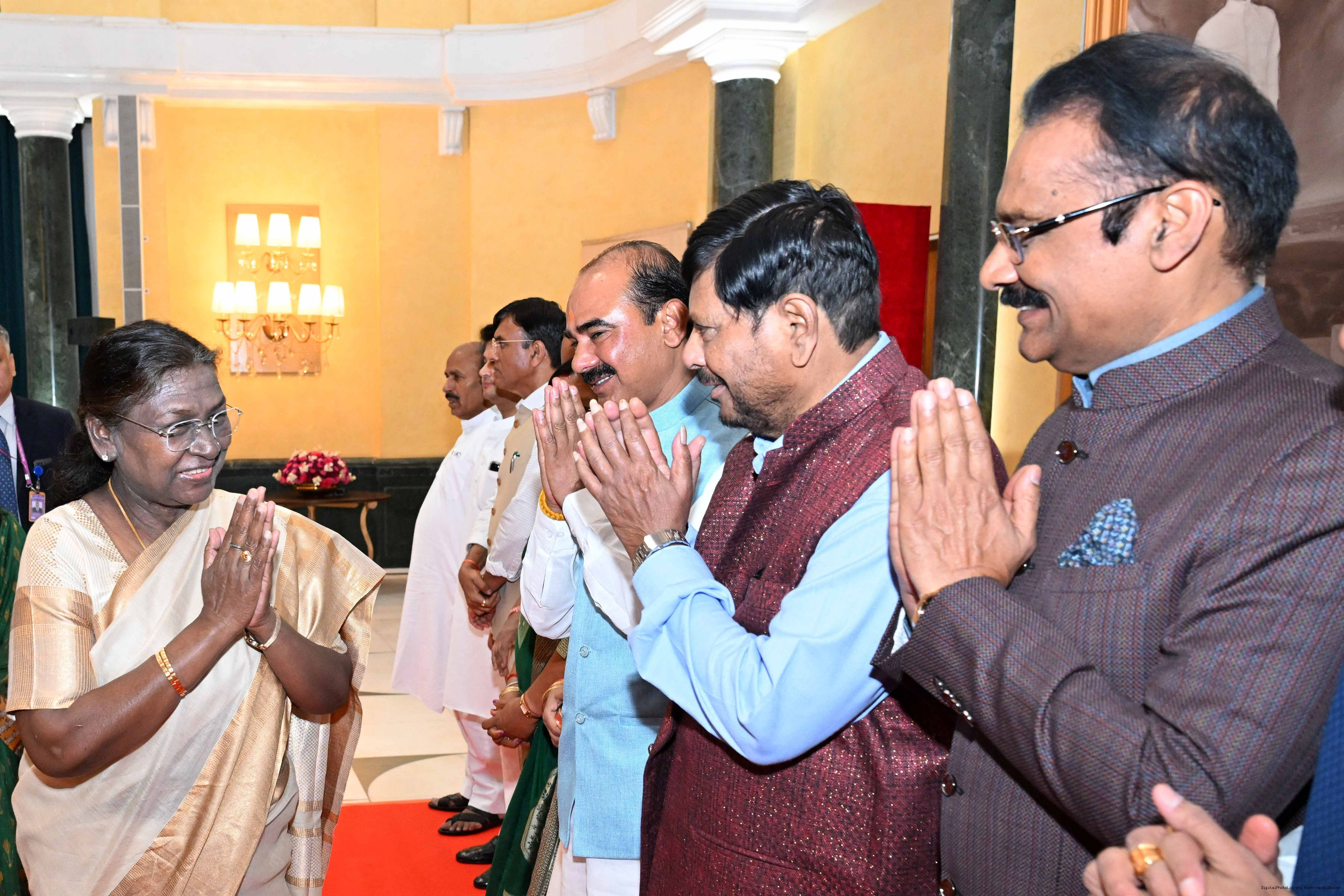 | Caption: | The President of India, Smt. Droupadi Murmu hosted Breakfast of Parliament (Lok Sabha and Rajya Sabha) at Rashtrapati Bhavan in New Delhi on March 19, 2025. |