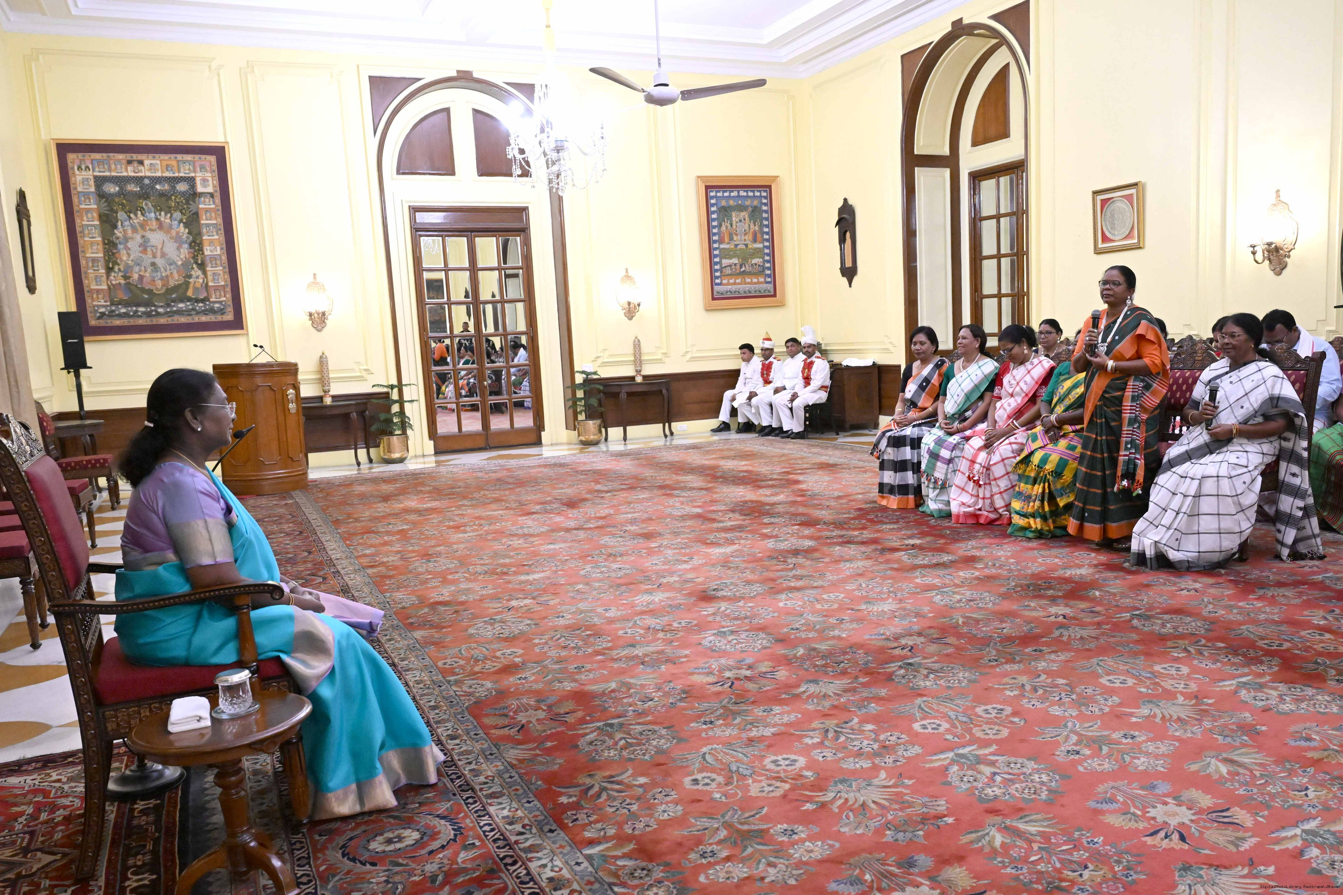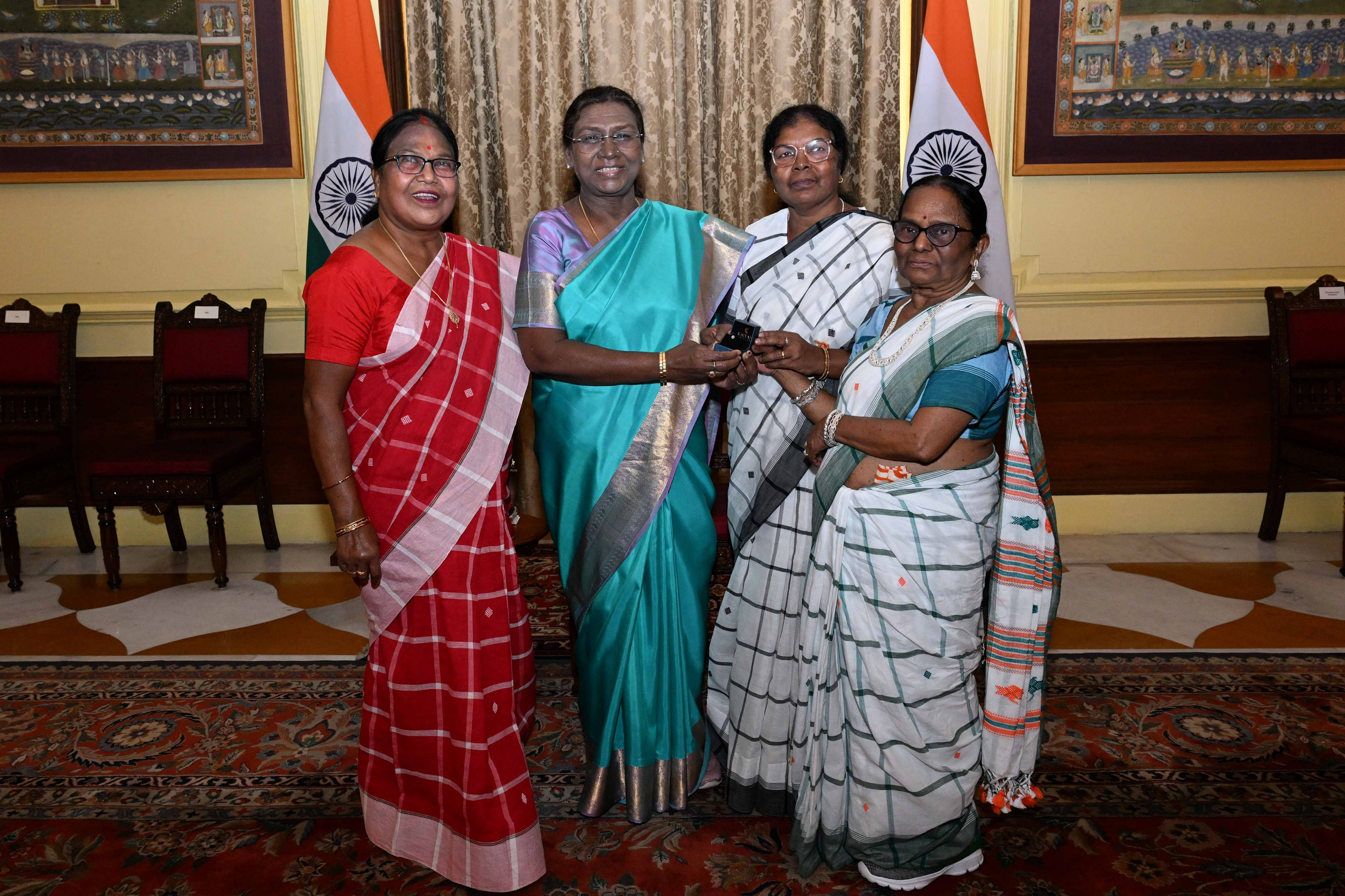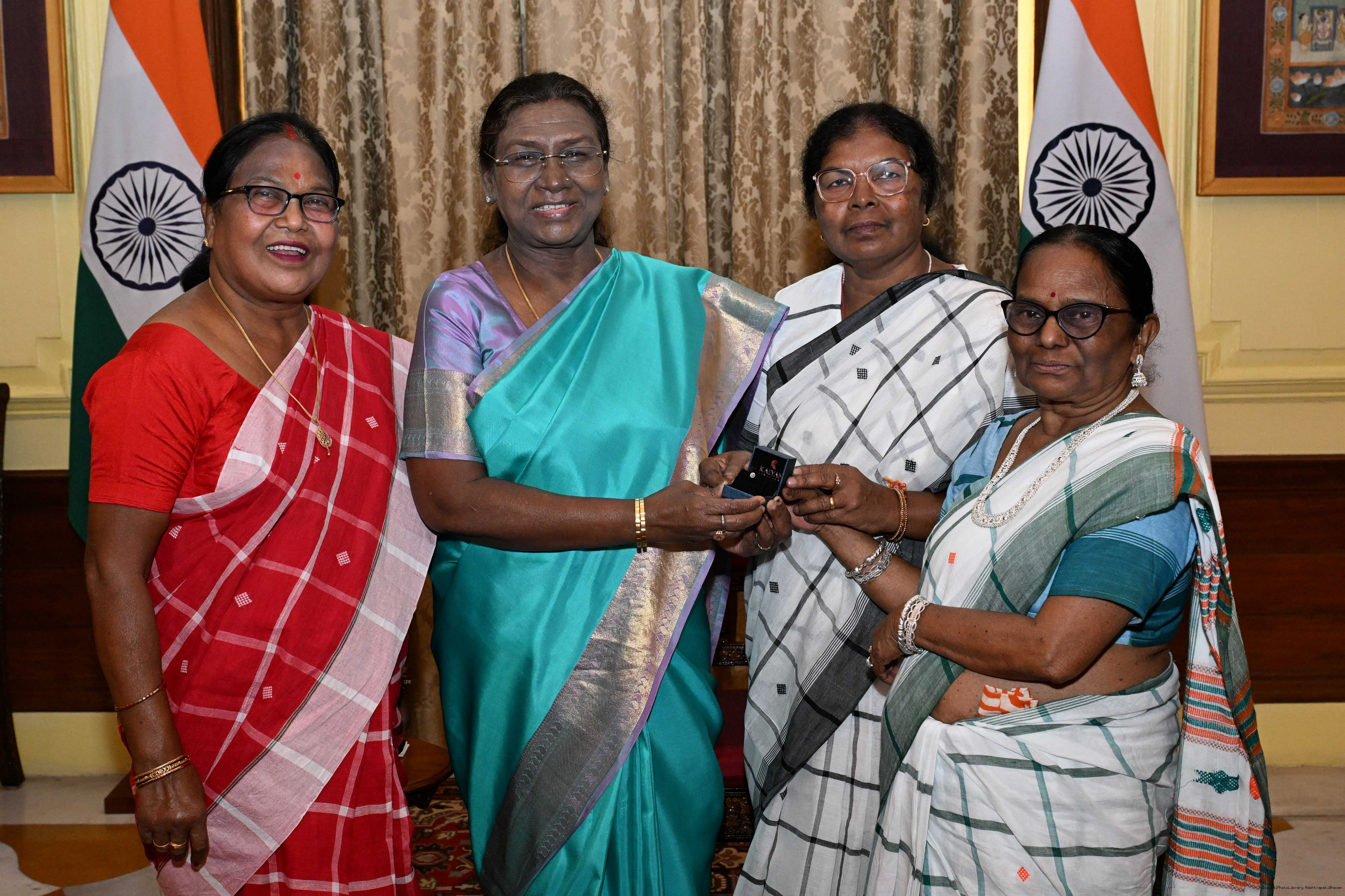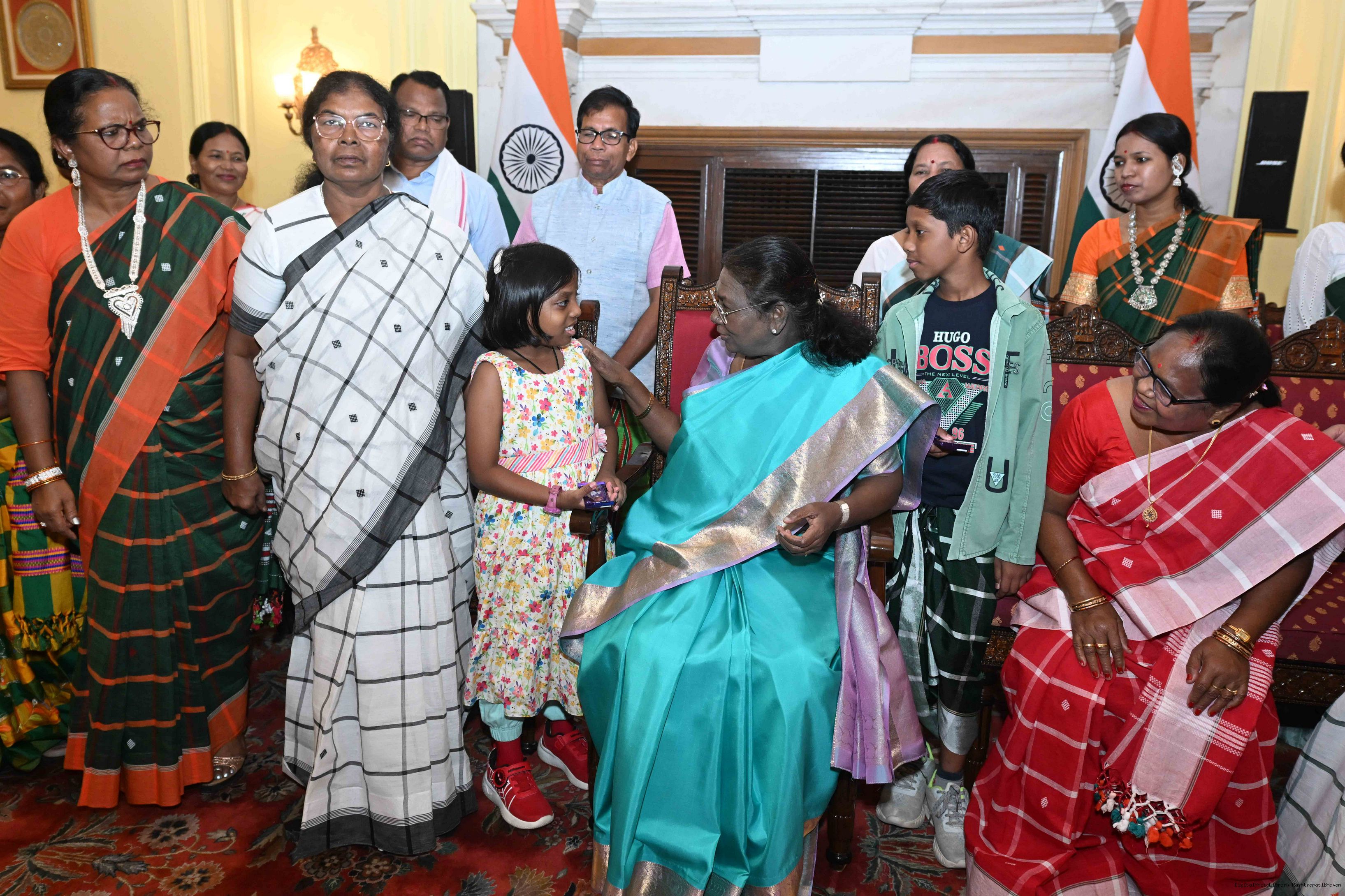 | Caption: | Smt. Dangi Murmu along with others meeting with the President of India, Smt. Droupadi Murmu at Rashtrapati Bhavan on March 20, 2025. |