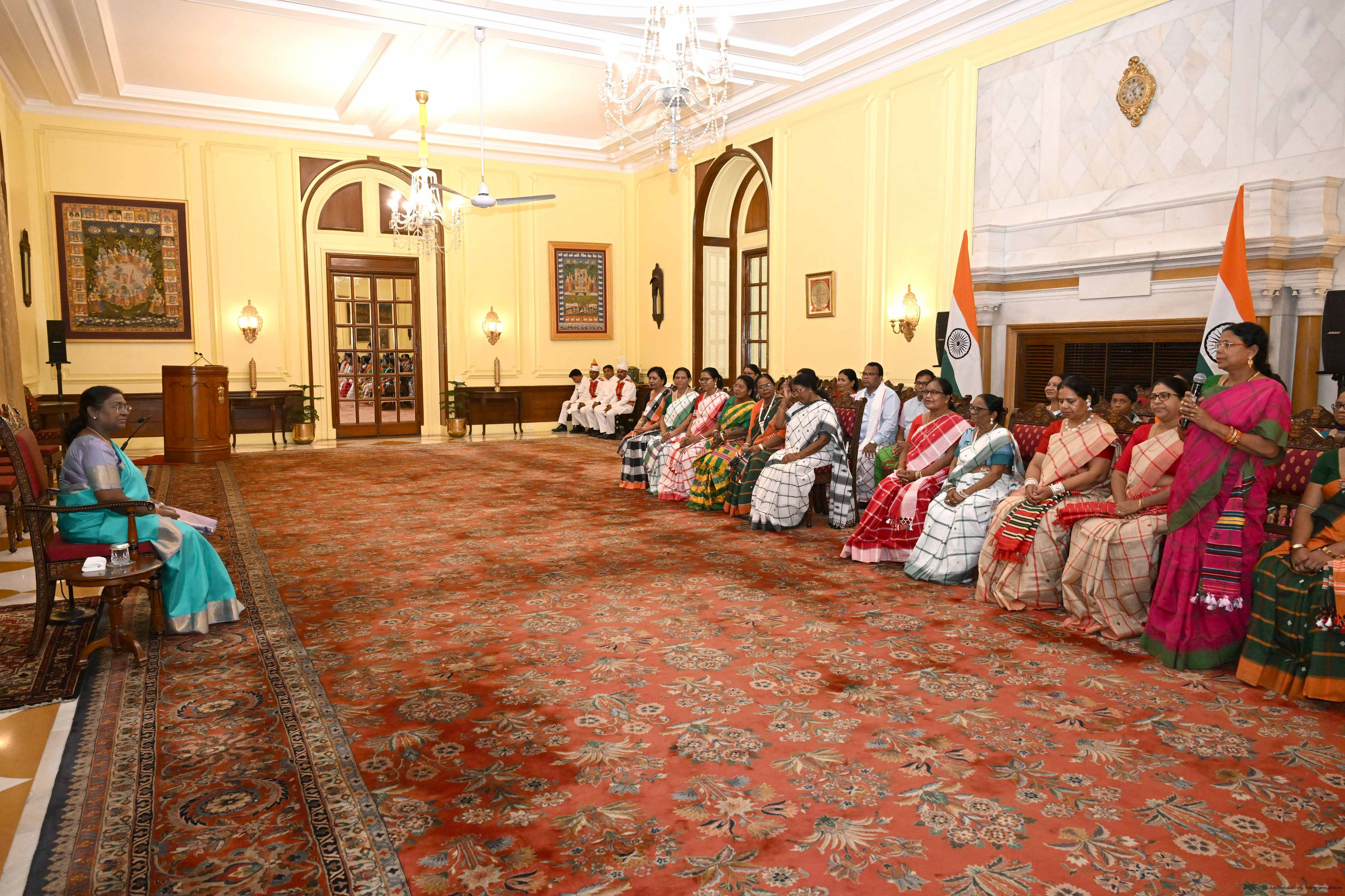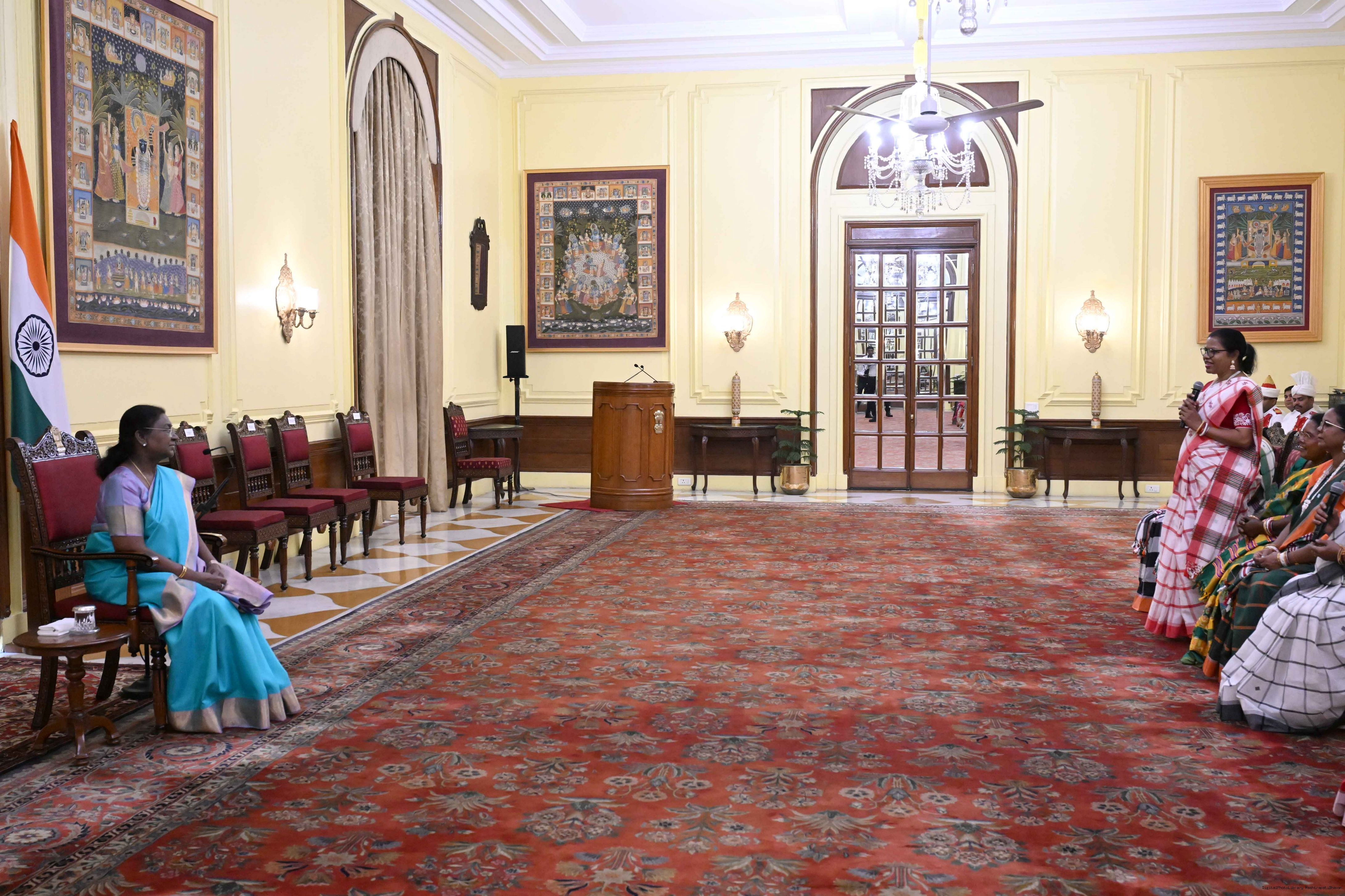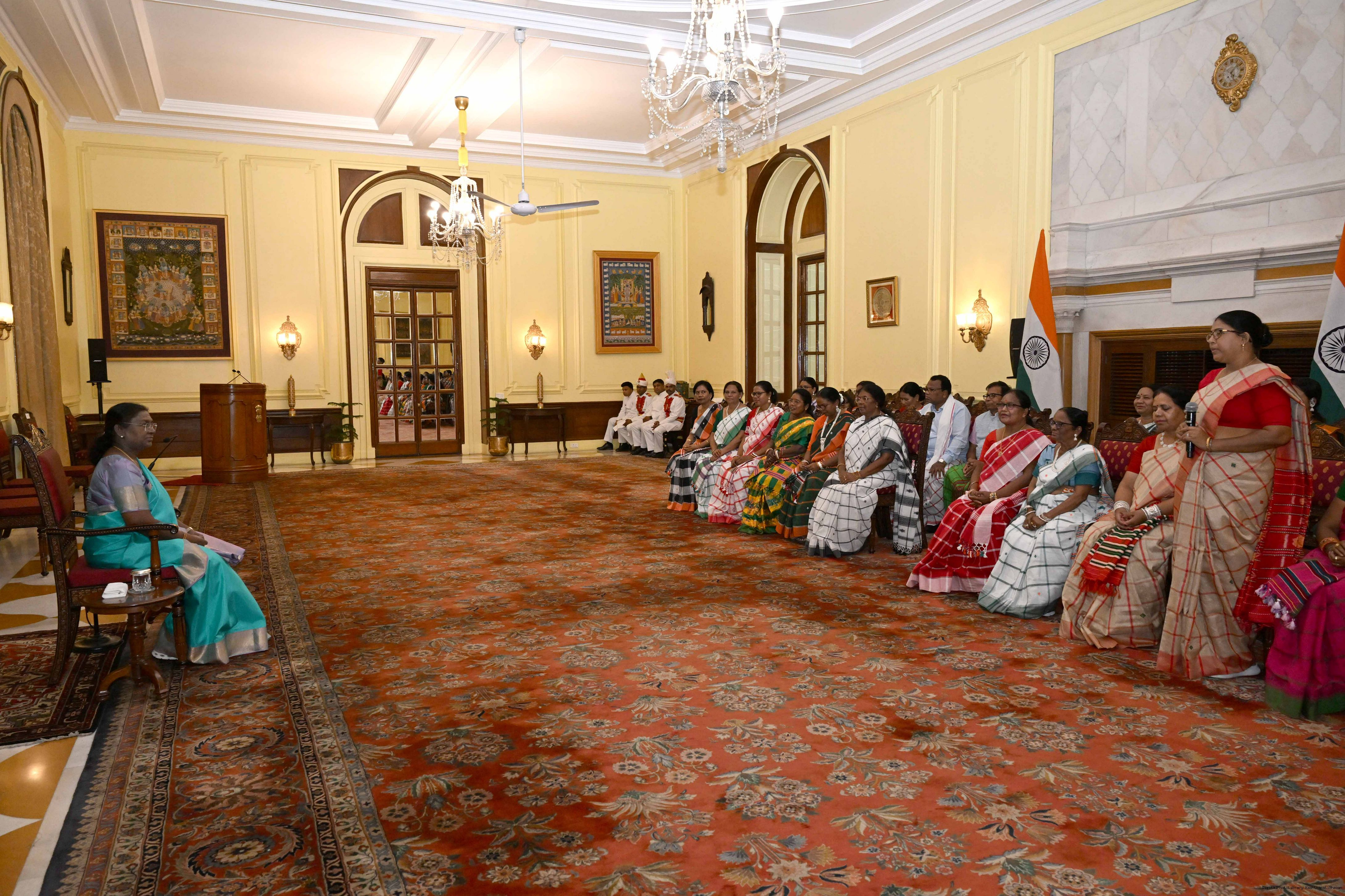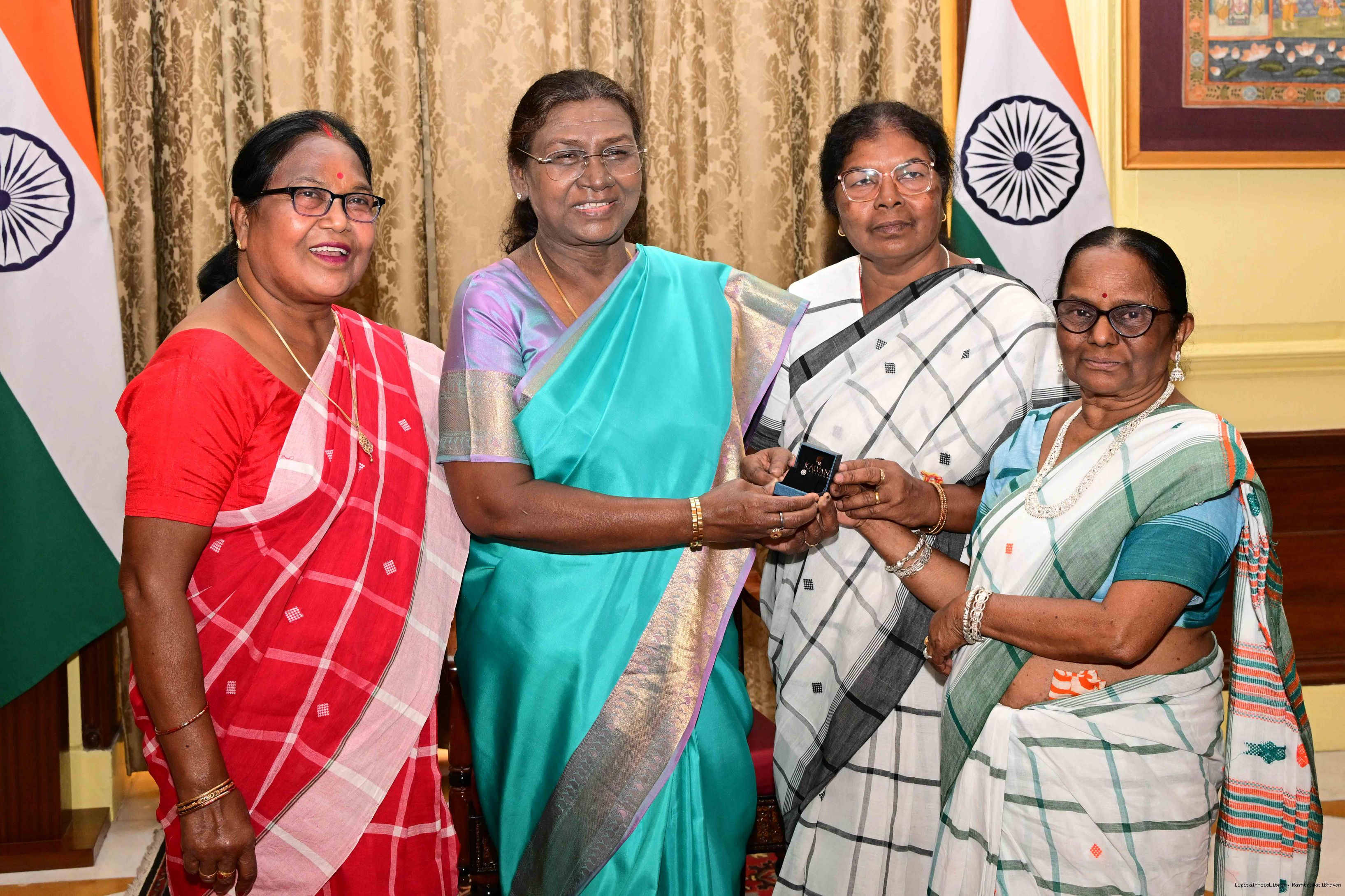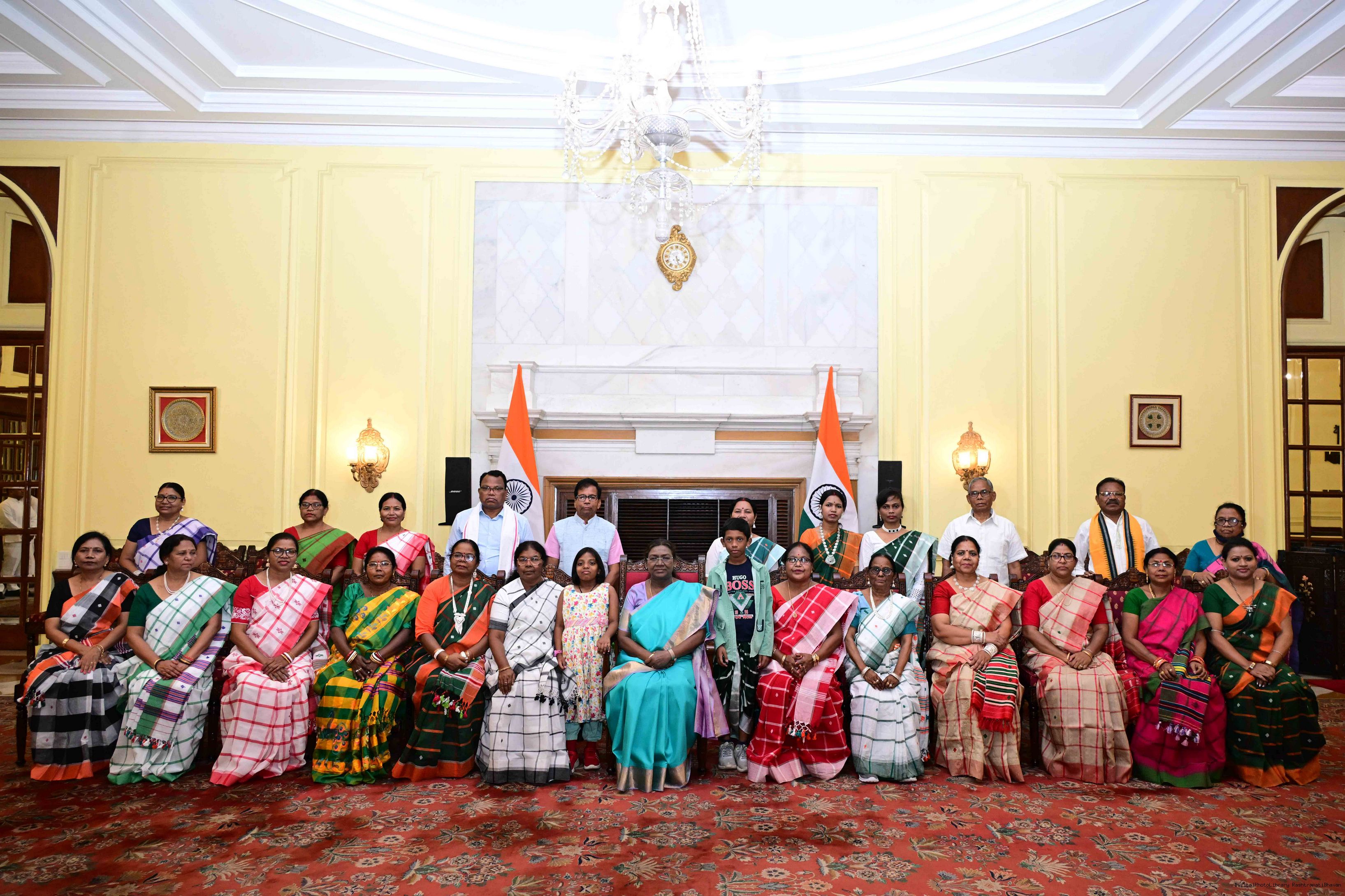 | Caption: | Smt. Dangi Murmu along with others meeting with the President of India, Smt. Droupadi Murmu at Rashtrapati Bhavan on March 20, 2025. |