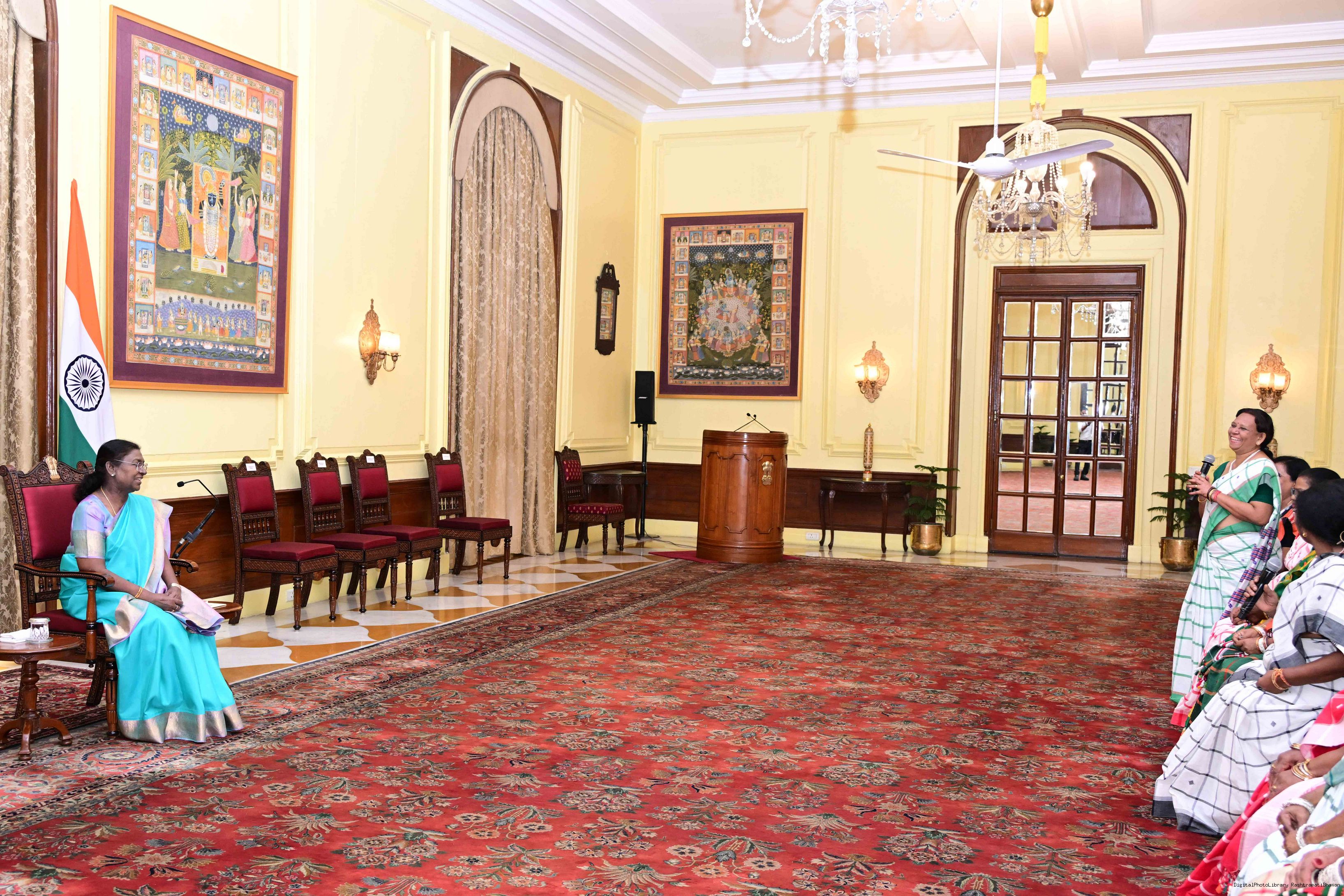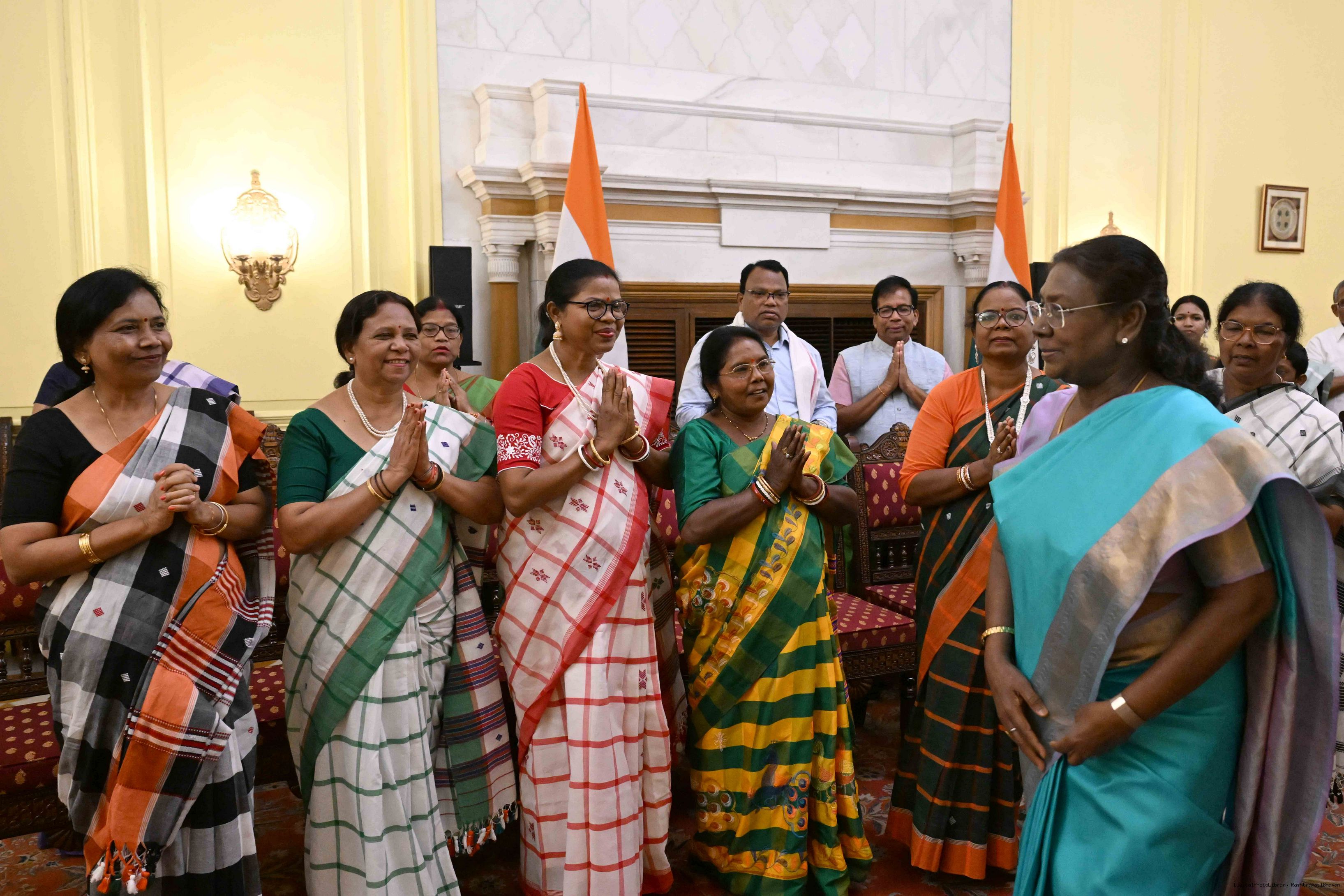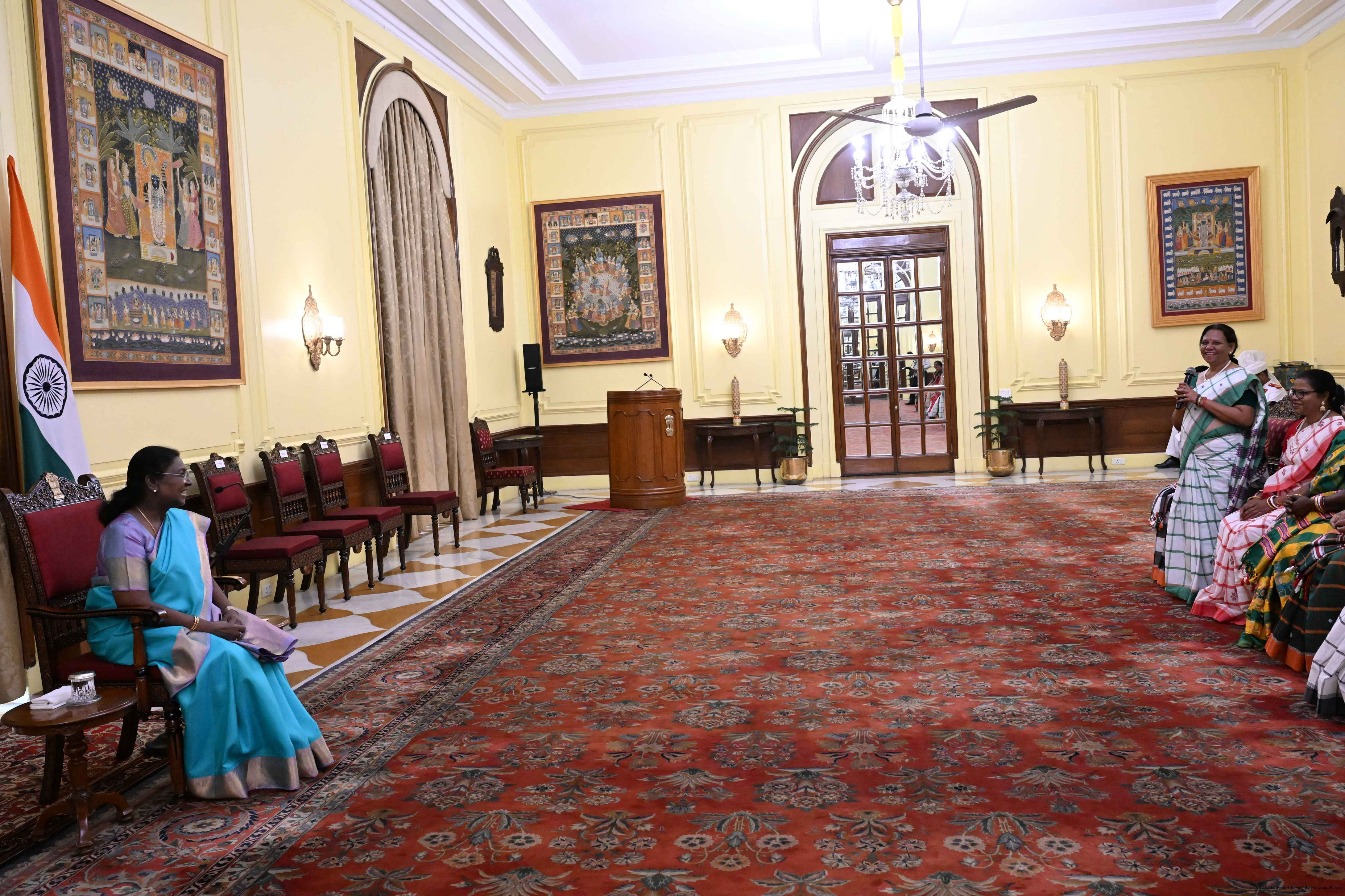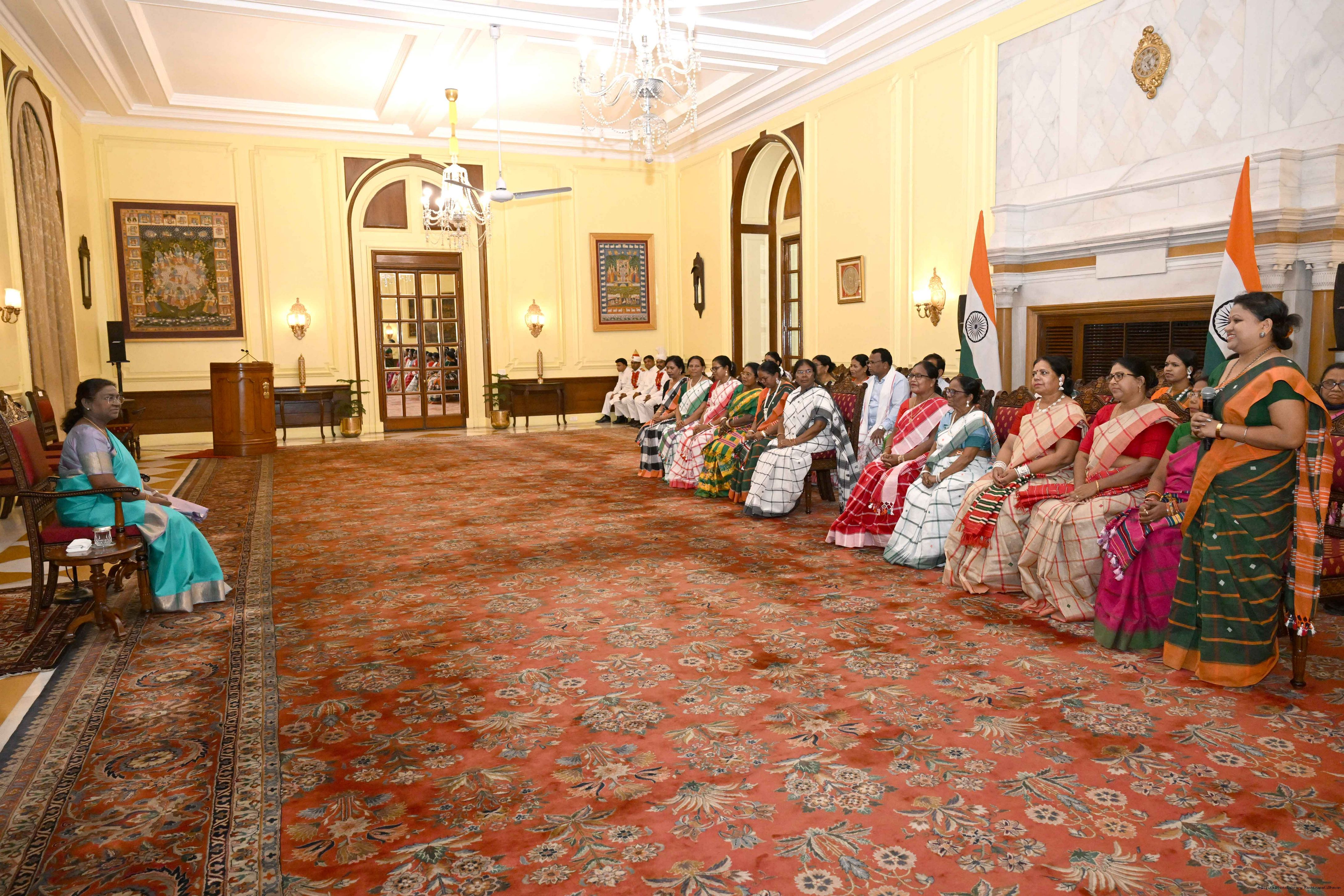 | Caption: | Smt. Dangi Murmu along with others meeting with the President of India, Smt. Droupadi Murmu at Rashtrapati Bhavan on March 20, 2025. |