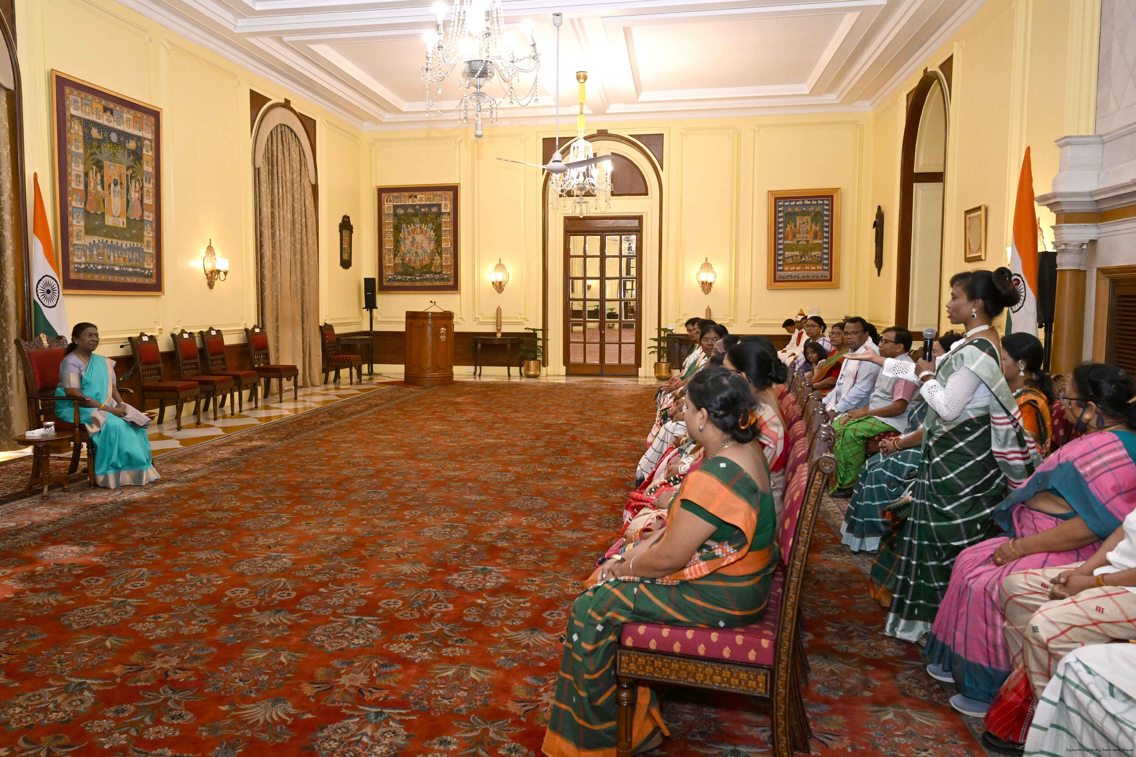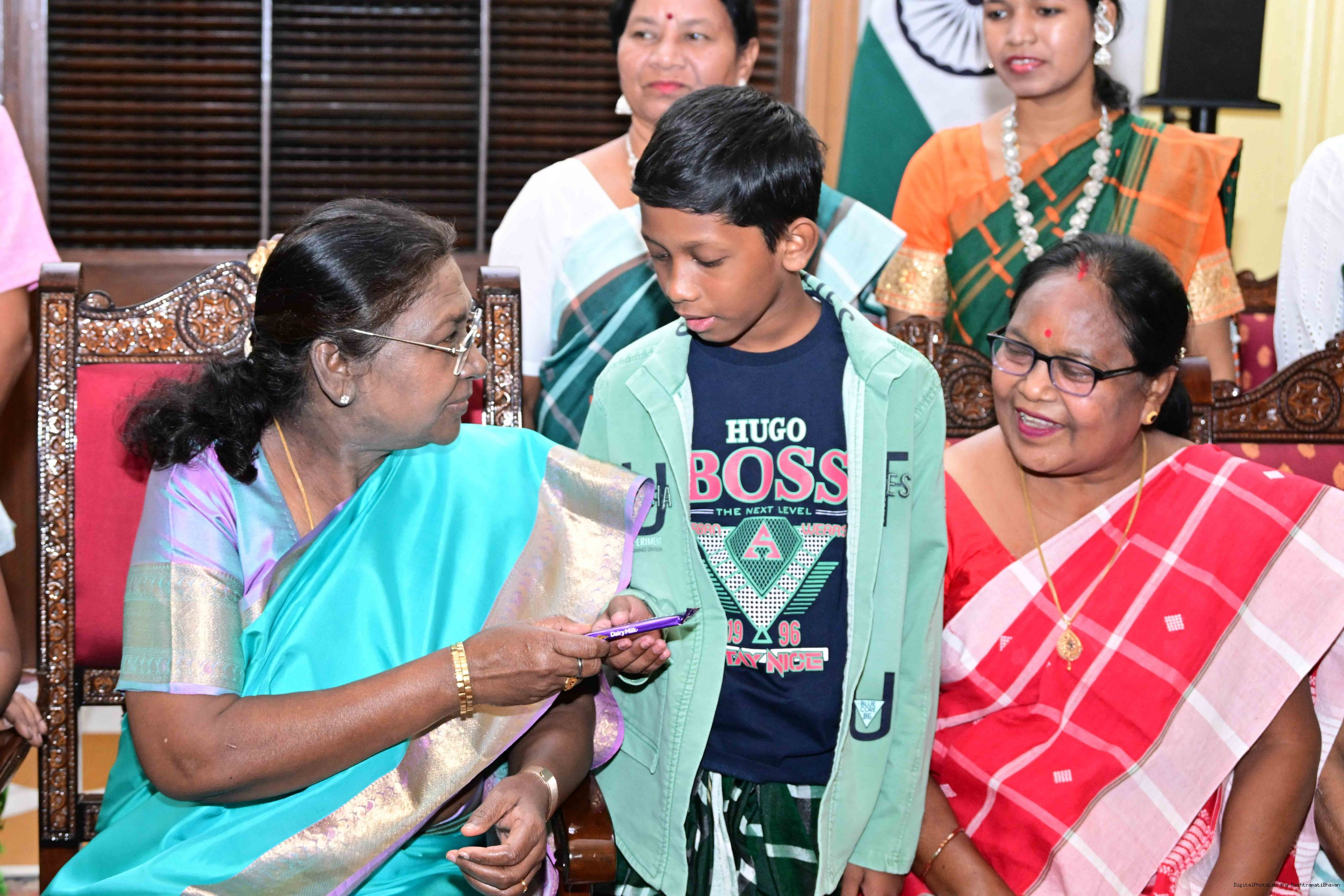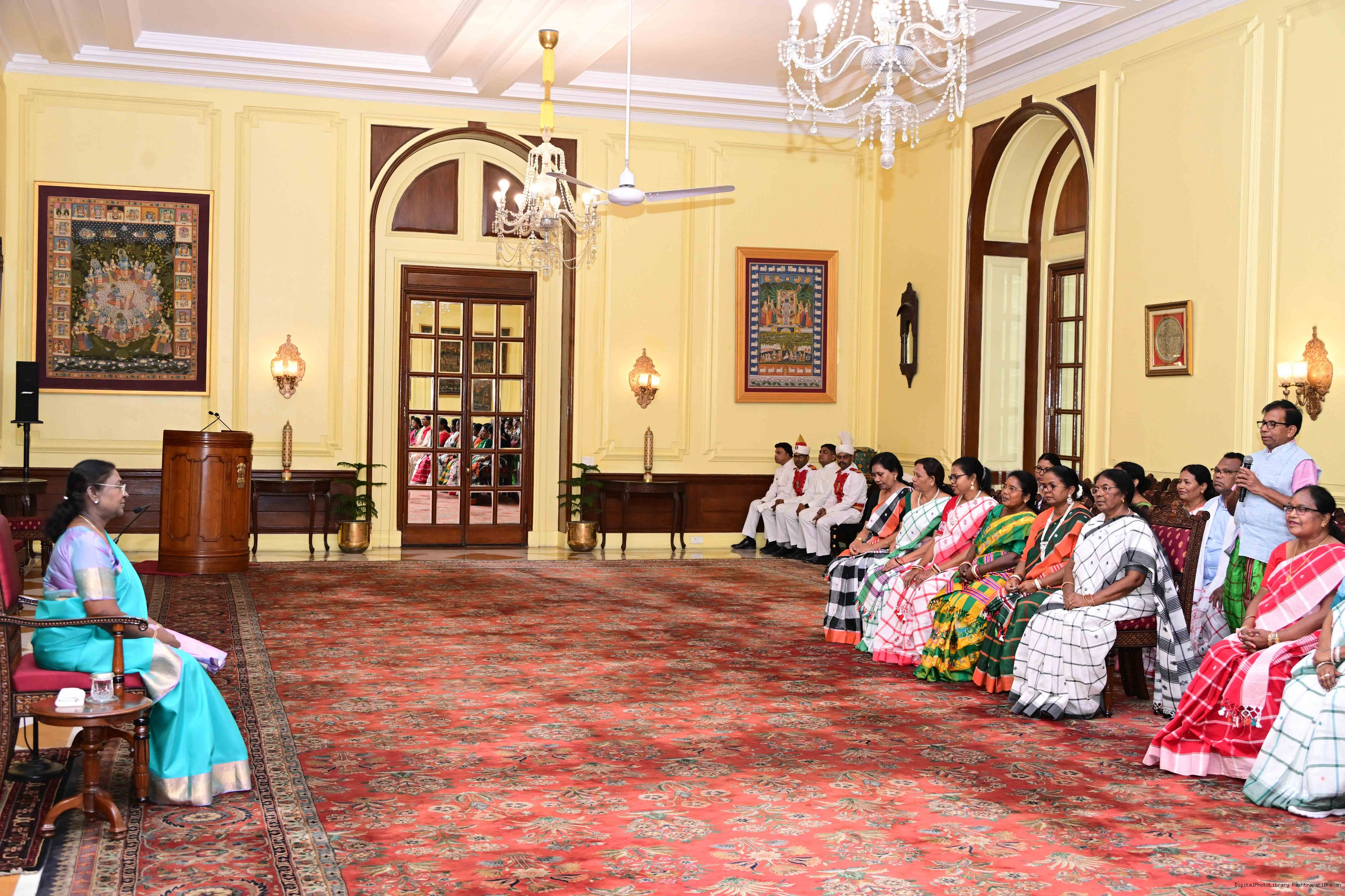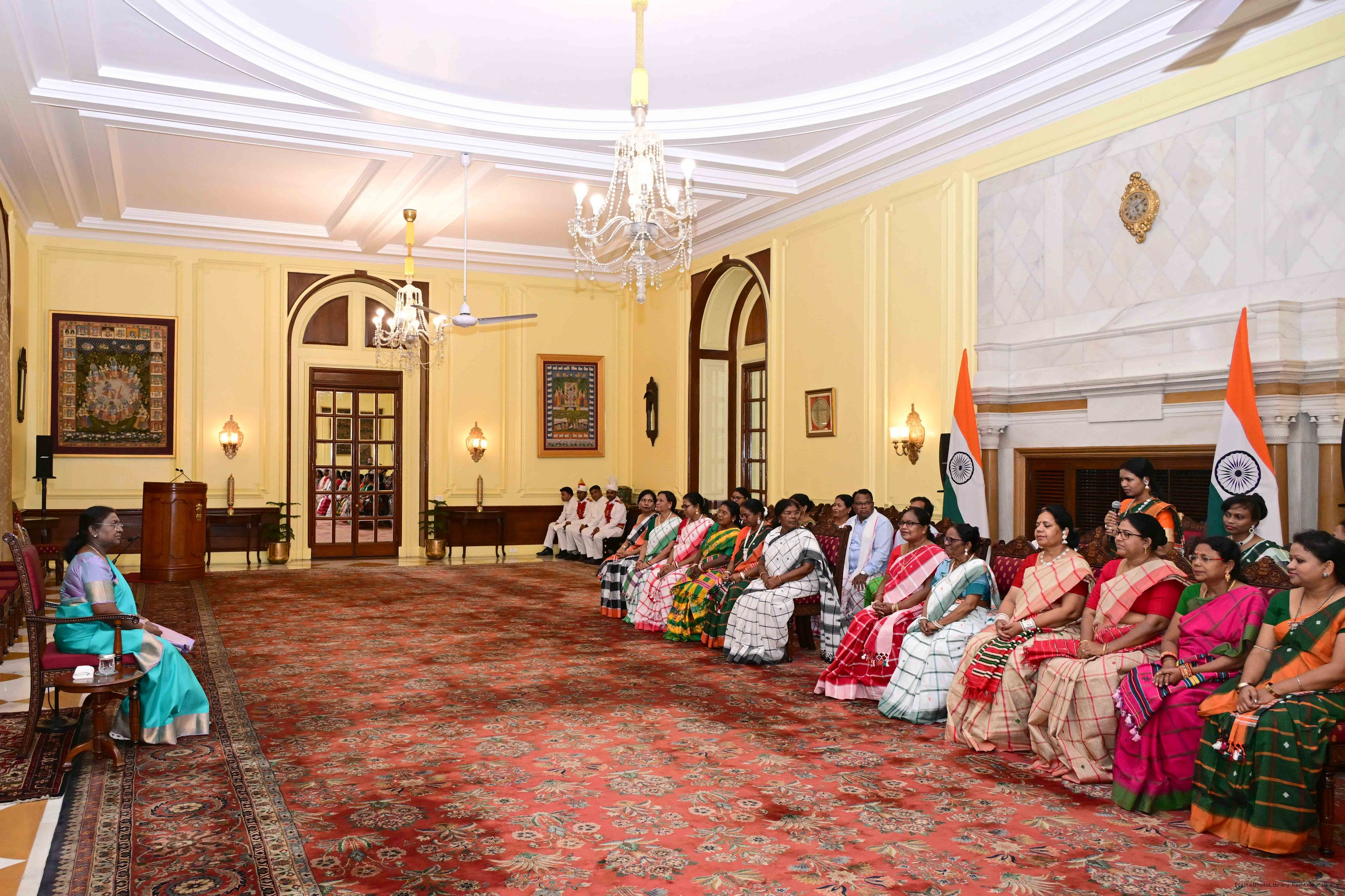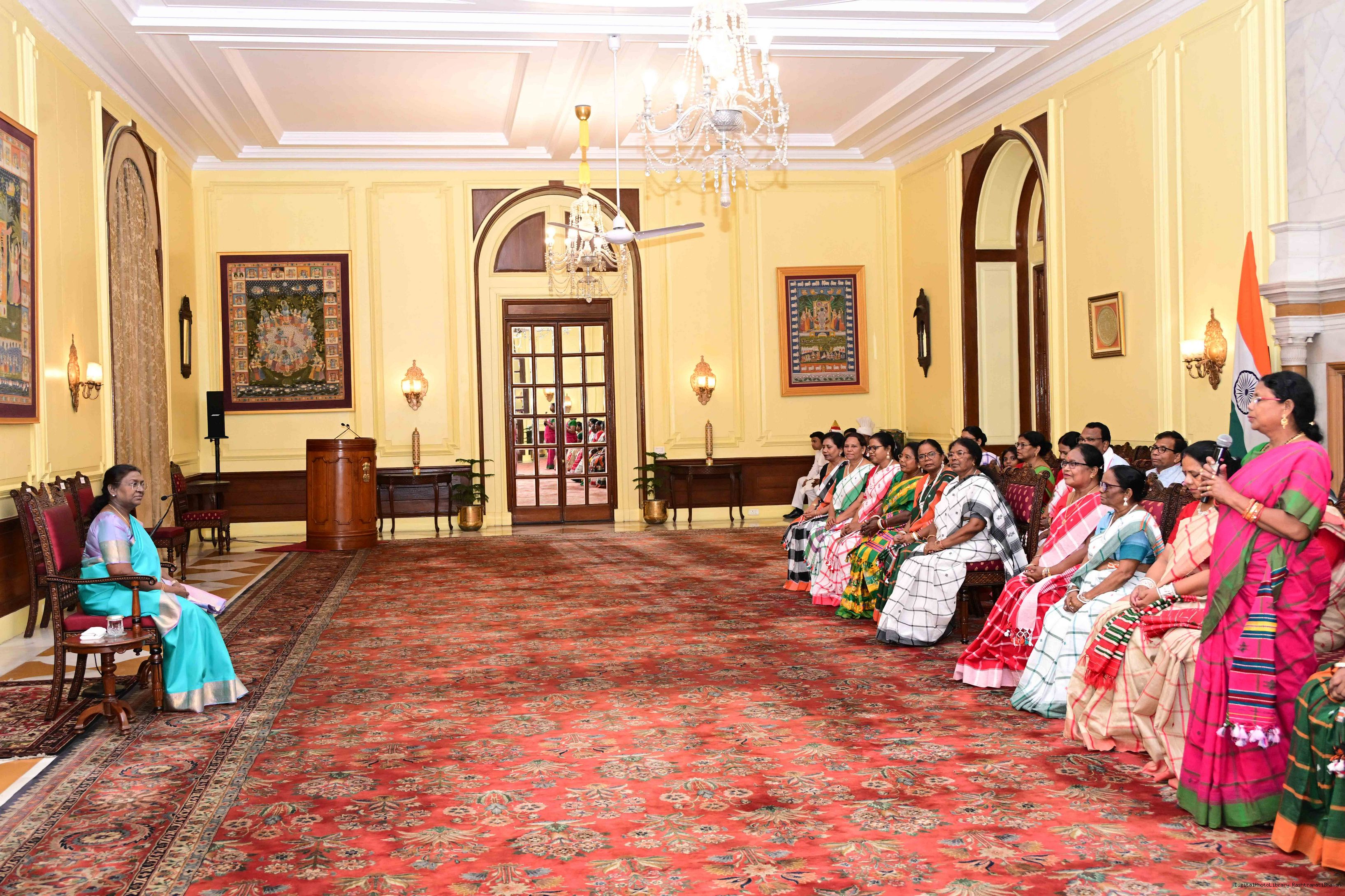 | Caption: | Smt. Dangi Murmu along with others meeting with the President of India, Smt. Droupadi Murmu at Rashtrapati Bhavan on March 20, 2025. |