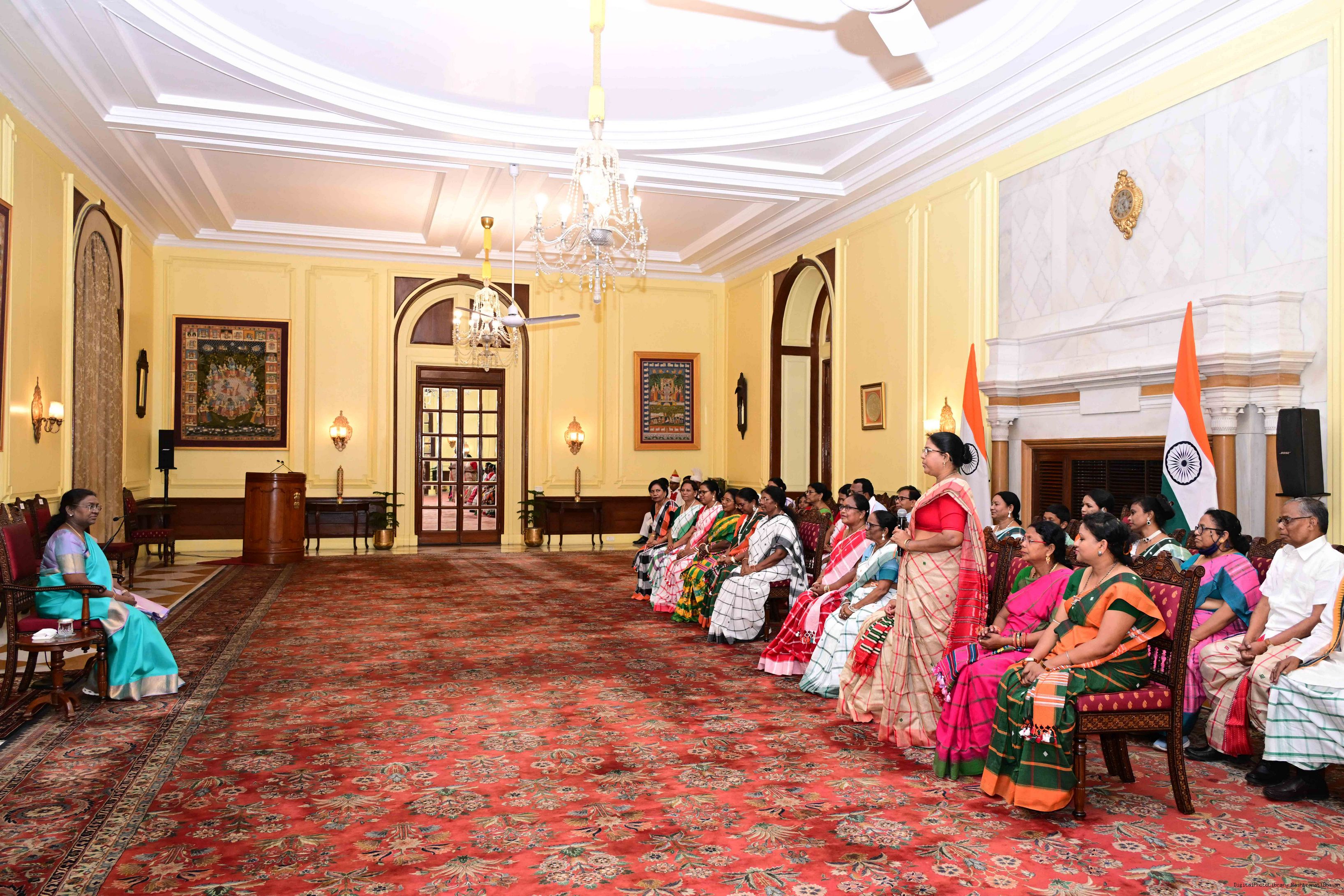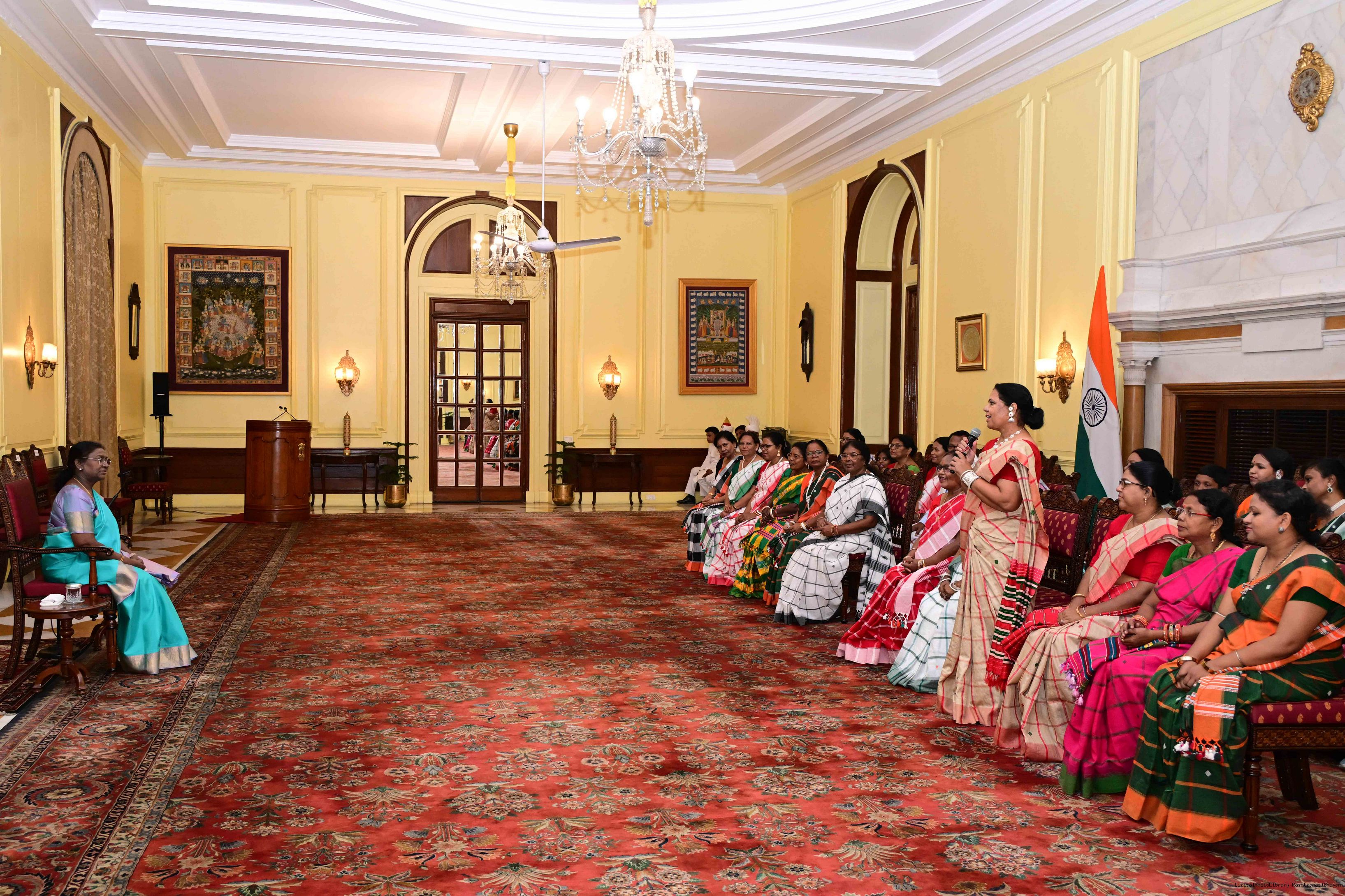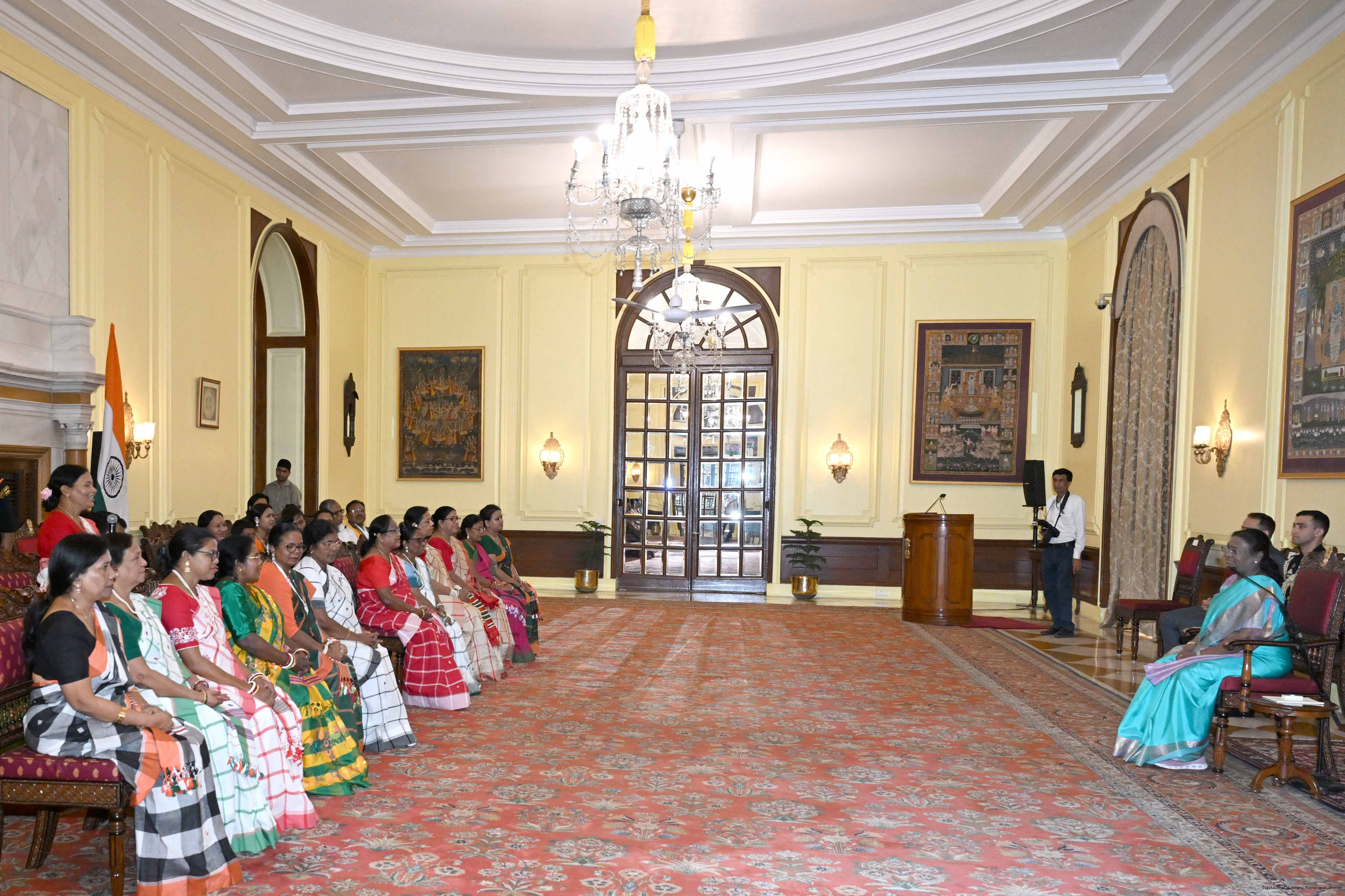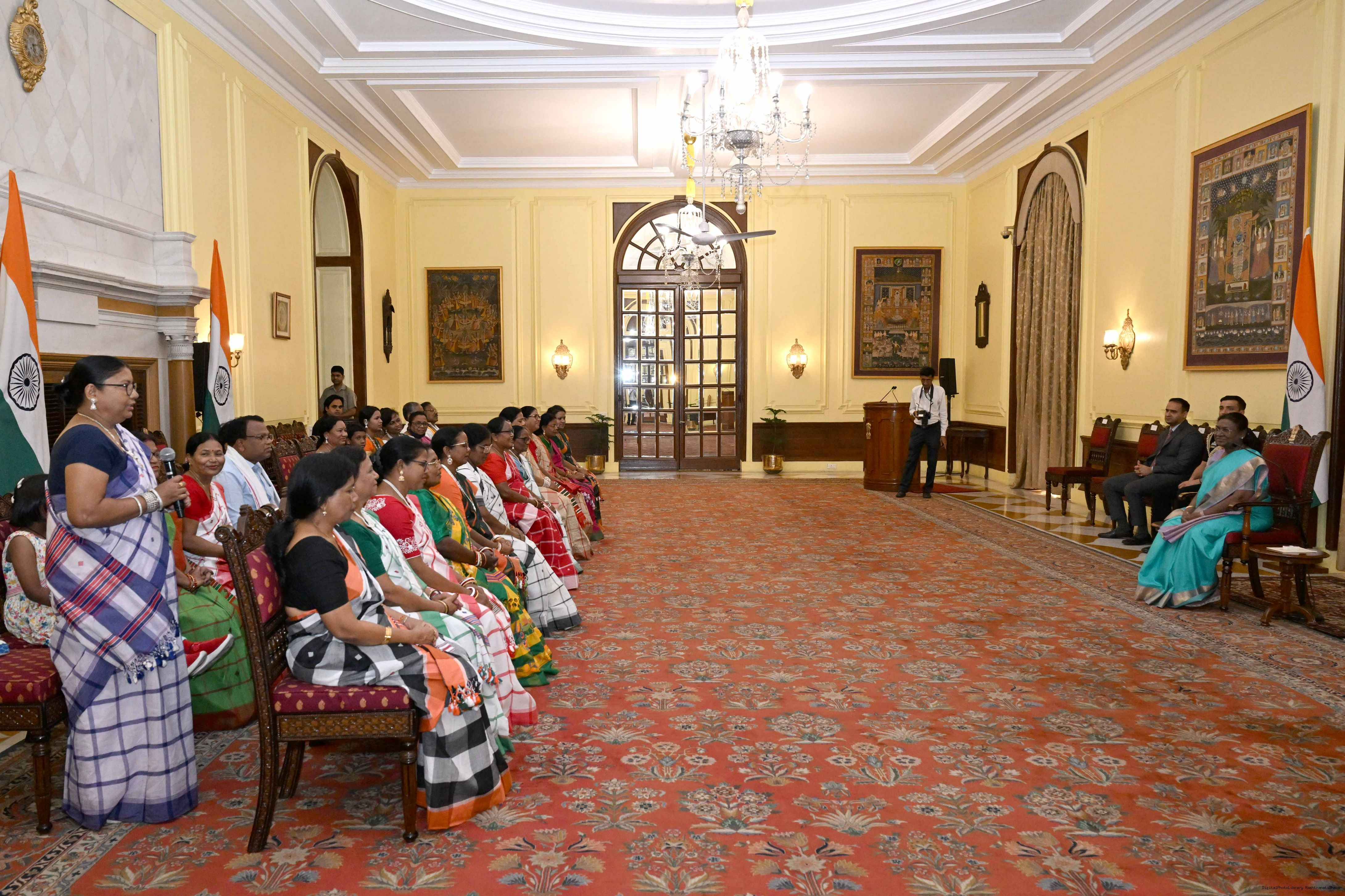 | Caption: | Smt. Dangi Murmu along with others meeting with the President of India, Smt. Droupadi Murmu at Rashtrapati Bhavan on March 20, 2025. |