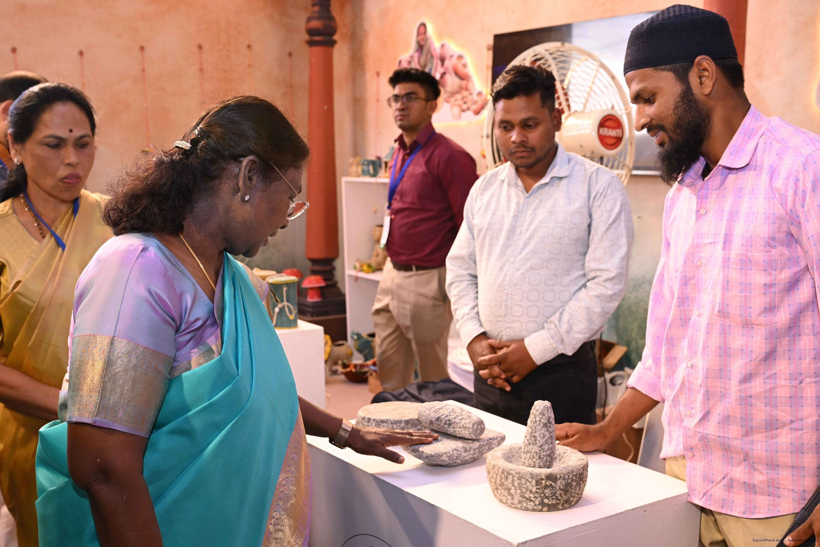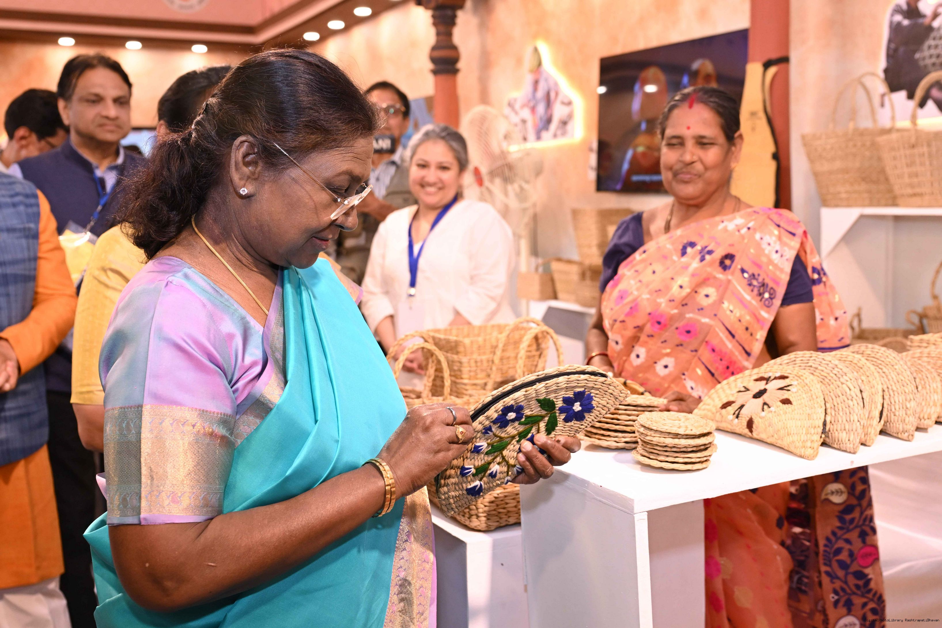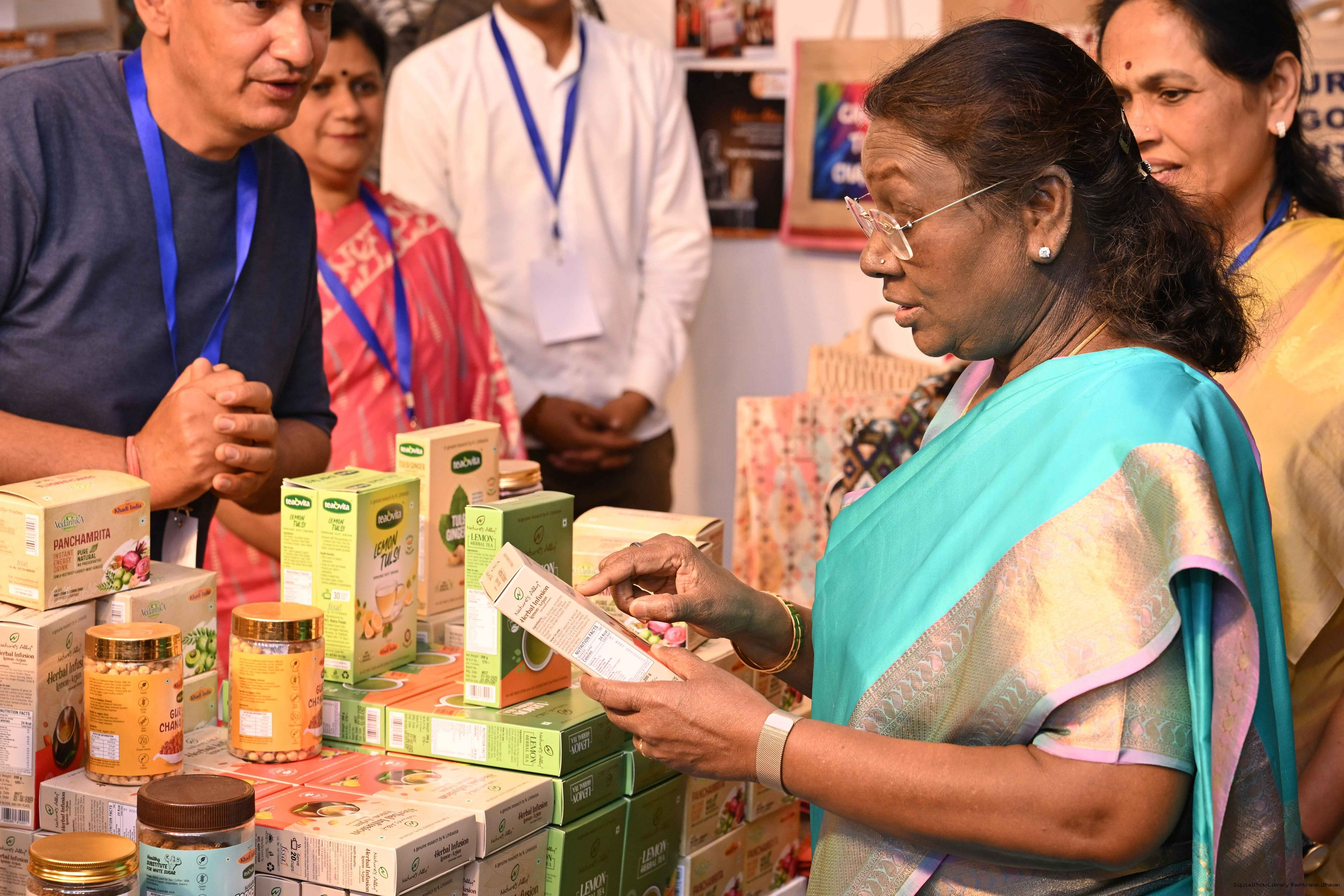 | Caption: | The President of India, Smt. Droupadi Murmu visited the Udyam Utsav in the President’s Estate on March 20, 2025. |