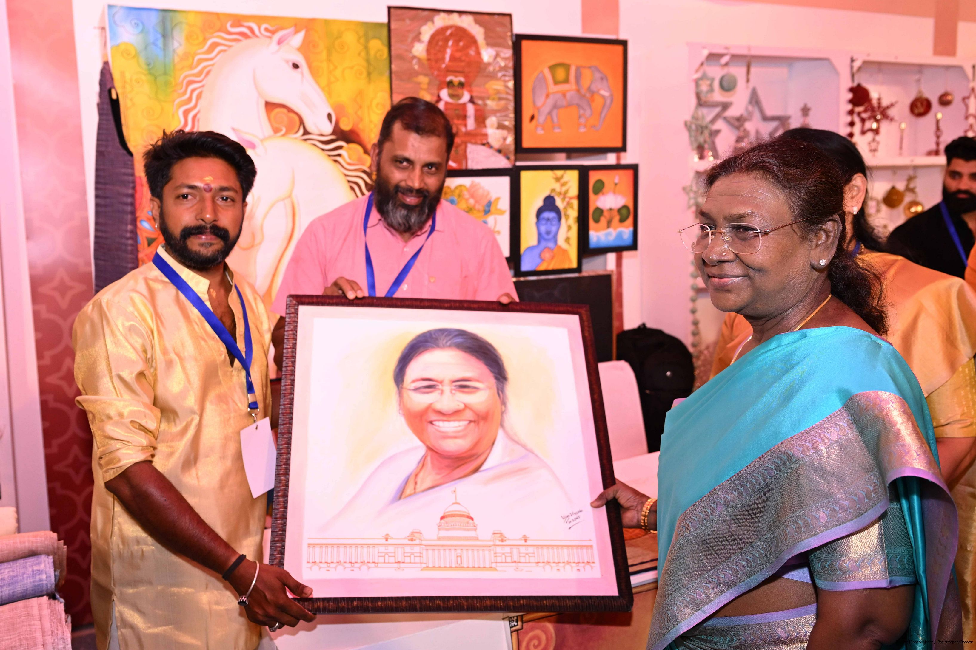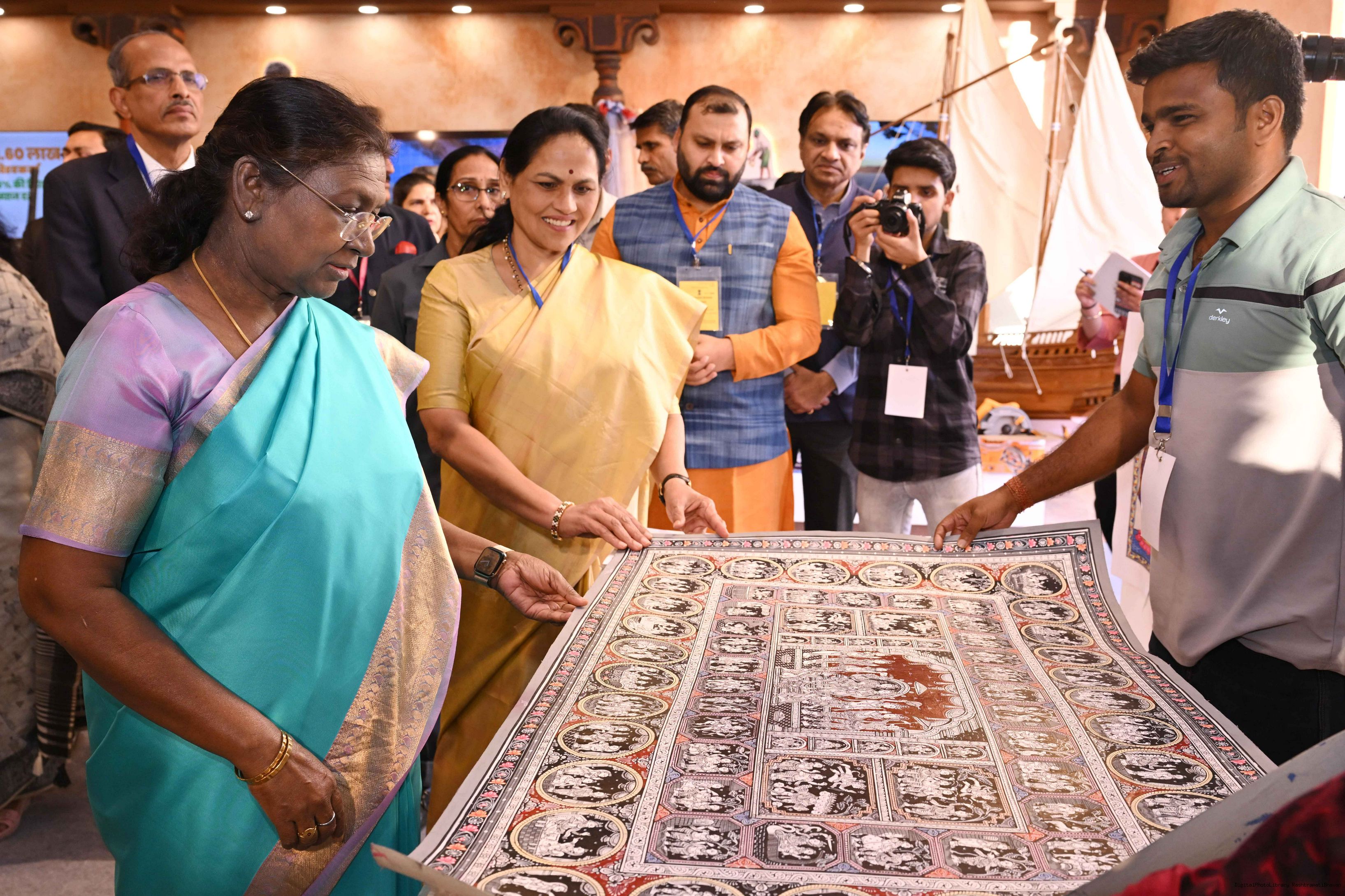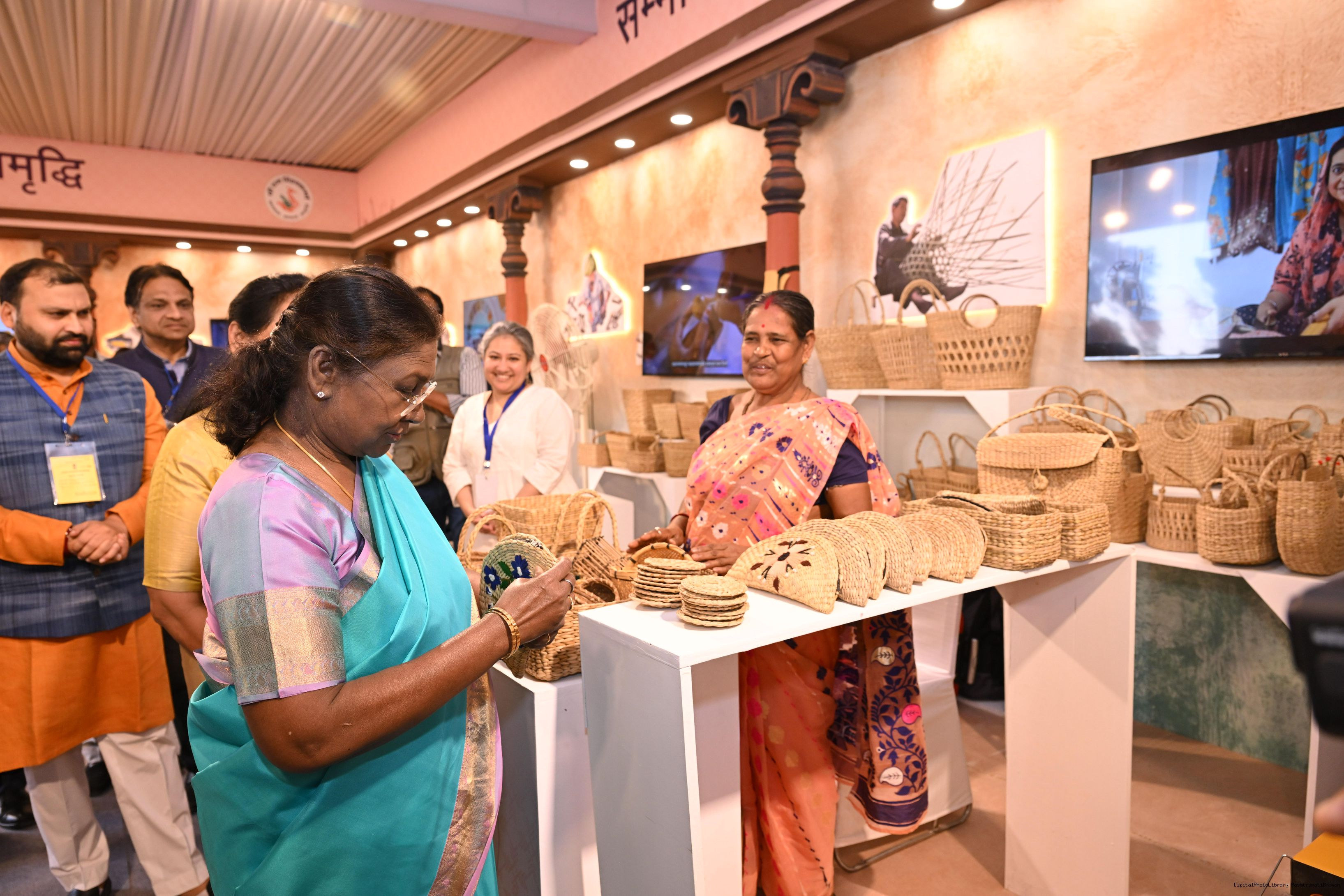 | Caption: | The President of India, Smt. Droupadi Murmu visited the Udyam Utsav in the President’s Estate on March 20, 2025. |