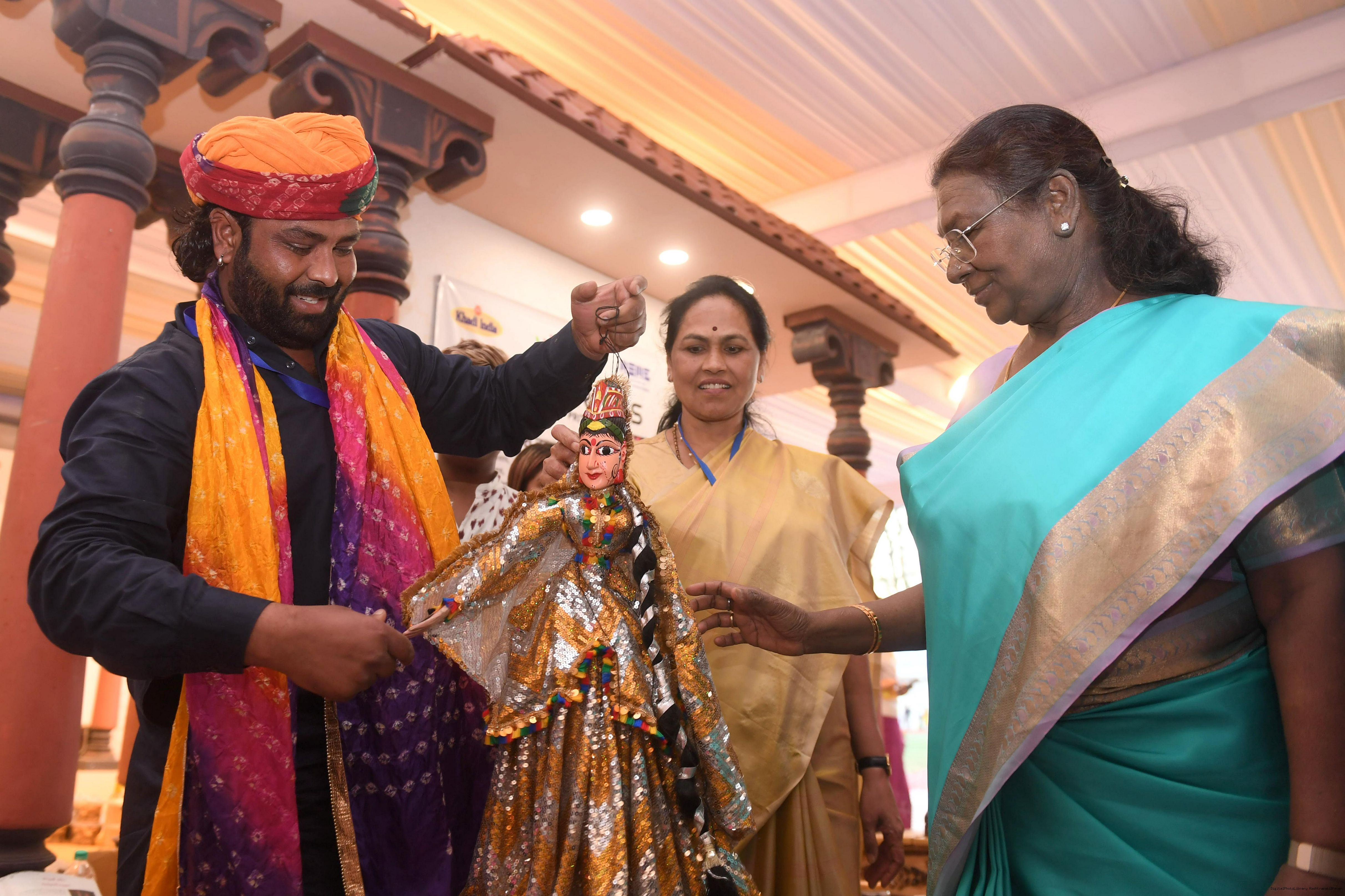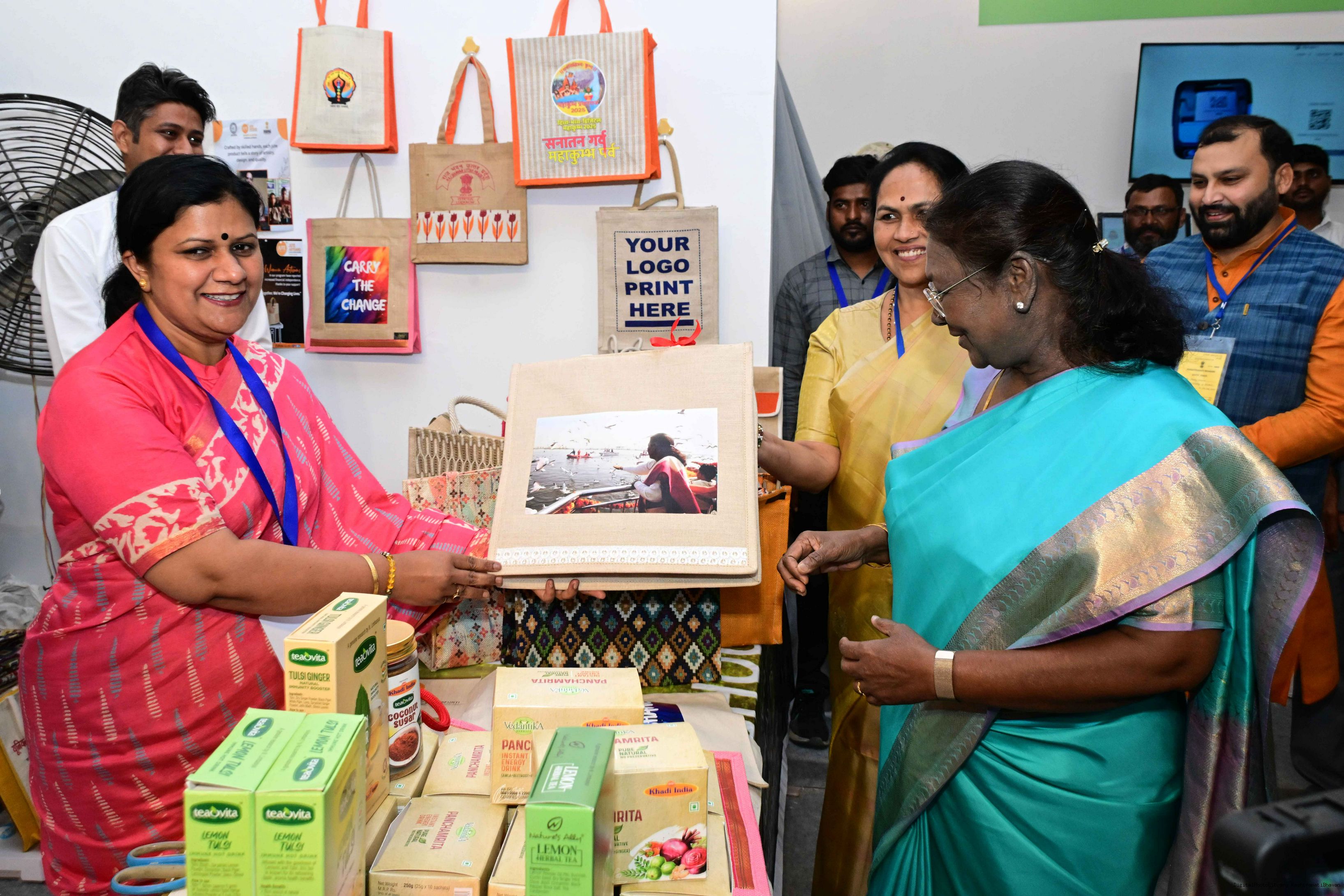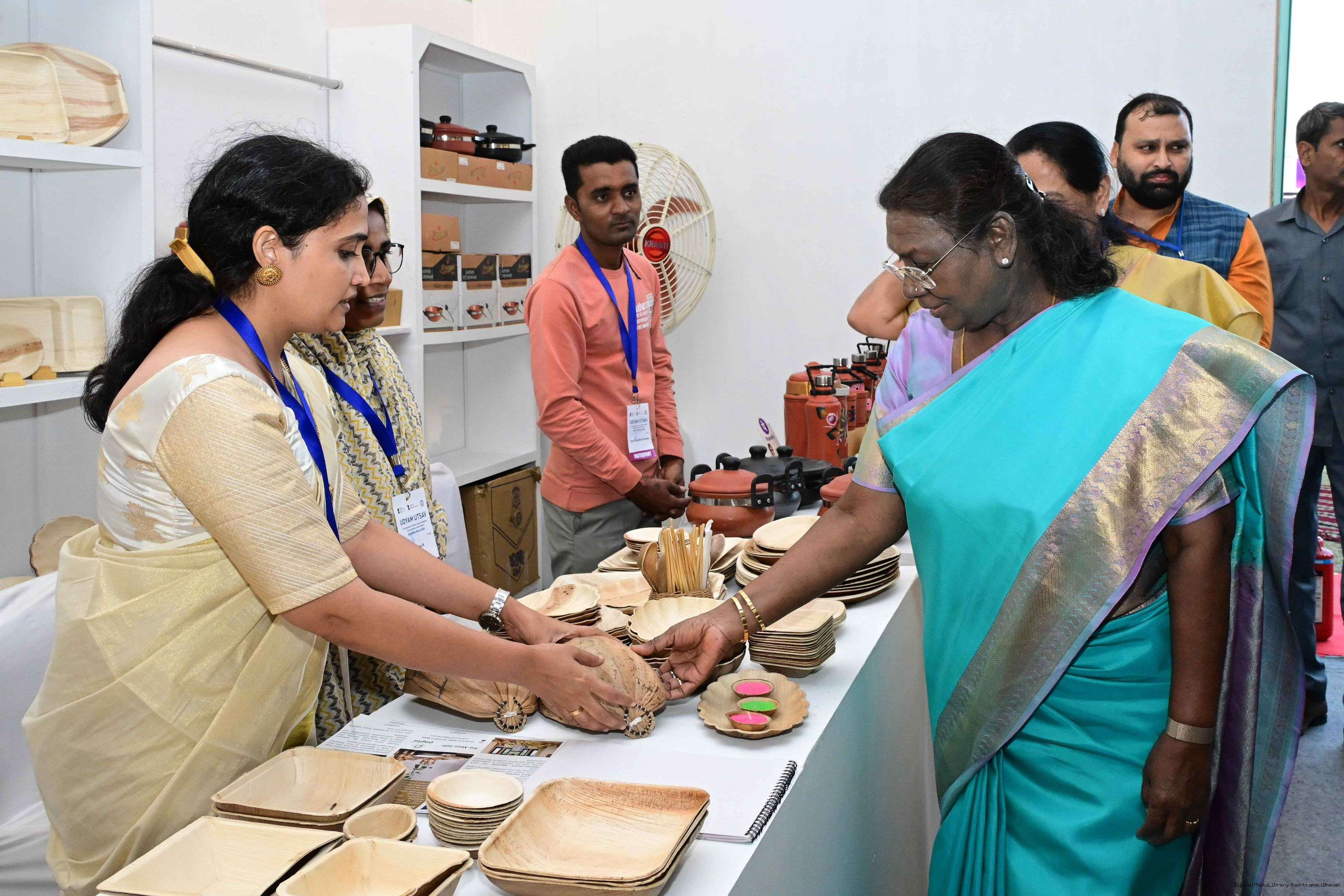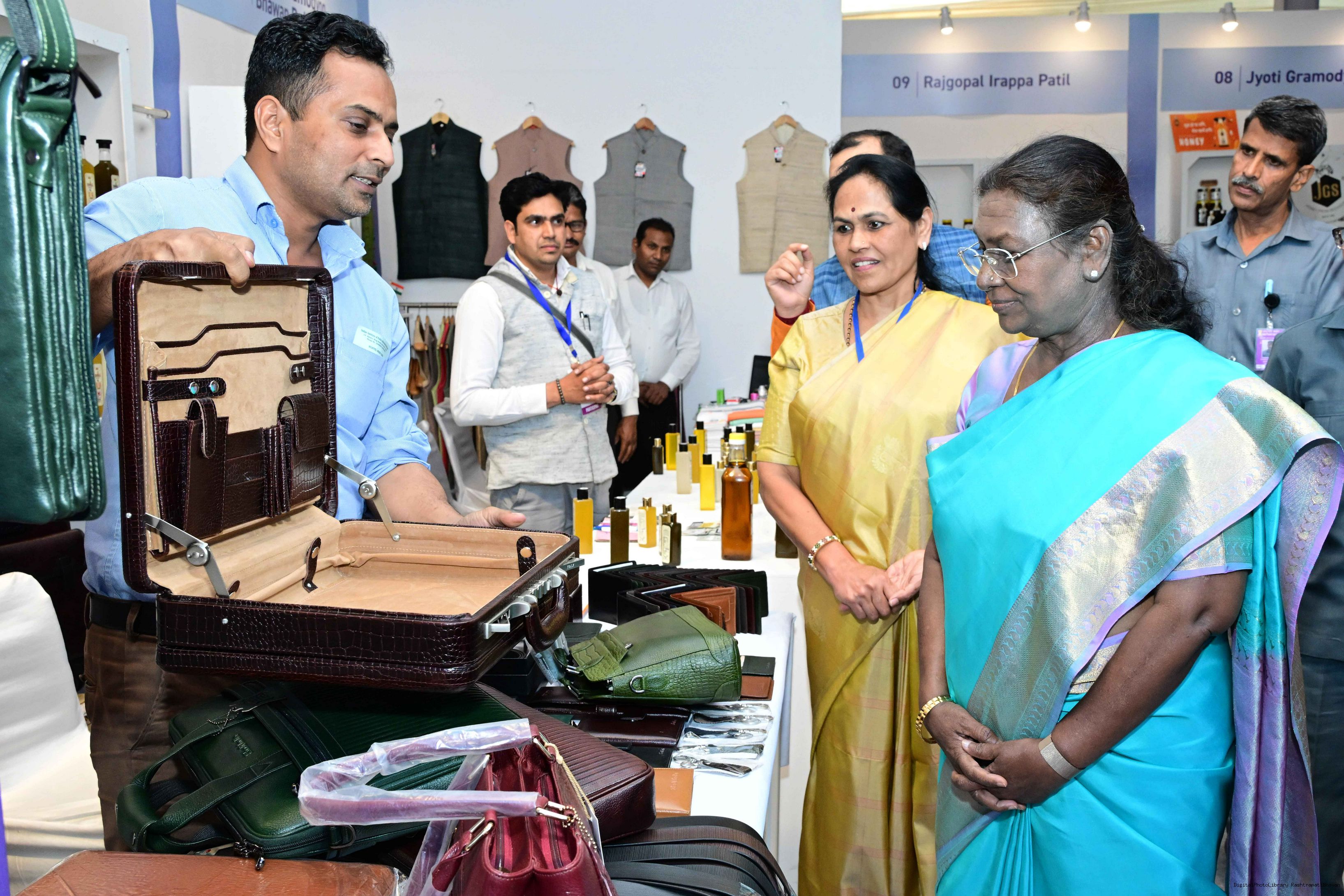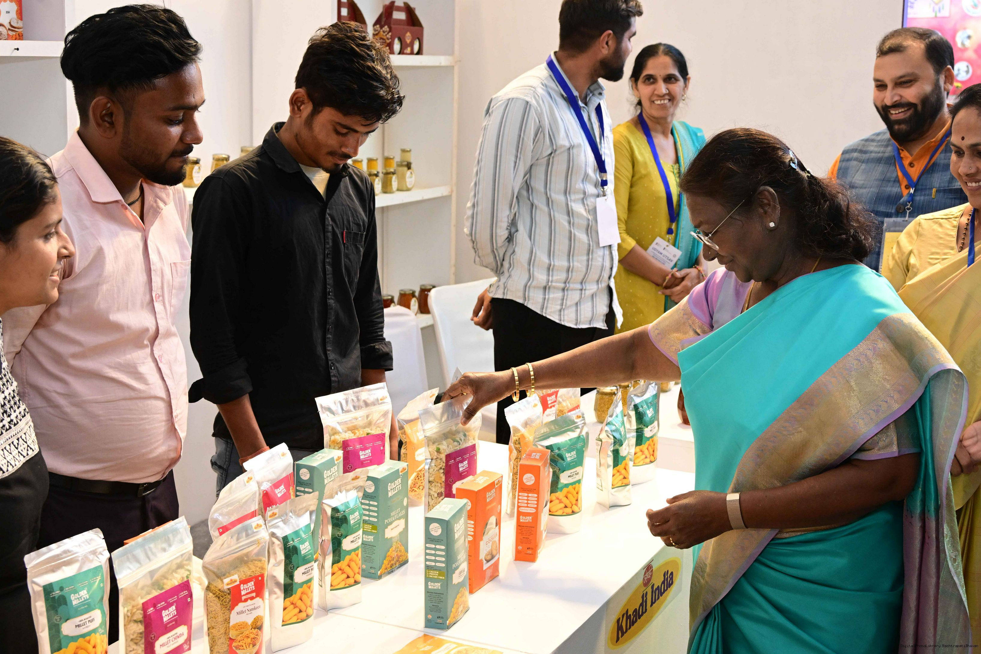 | Caption: | The President of India, Smt. Droupadi Murmu visited the Udyam Utsav in the President’s Estate on March 20, 2025. |