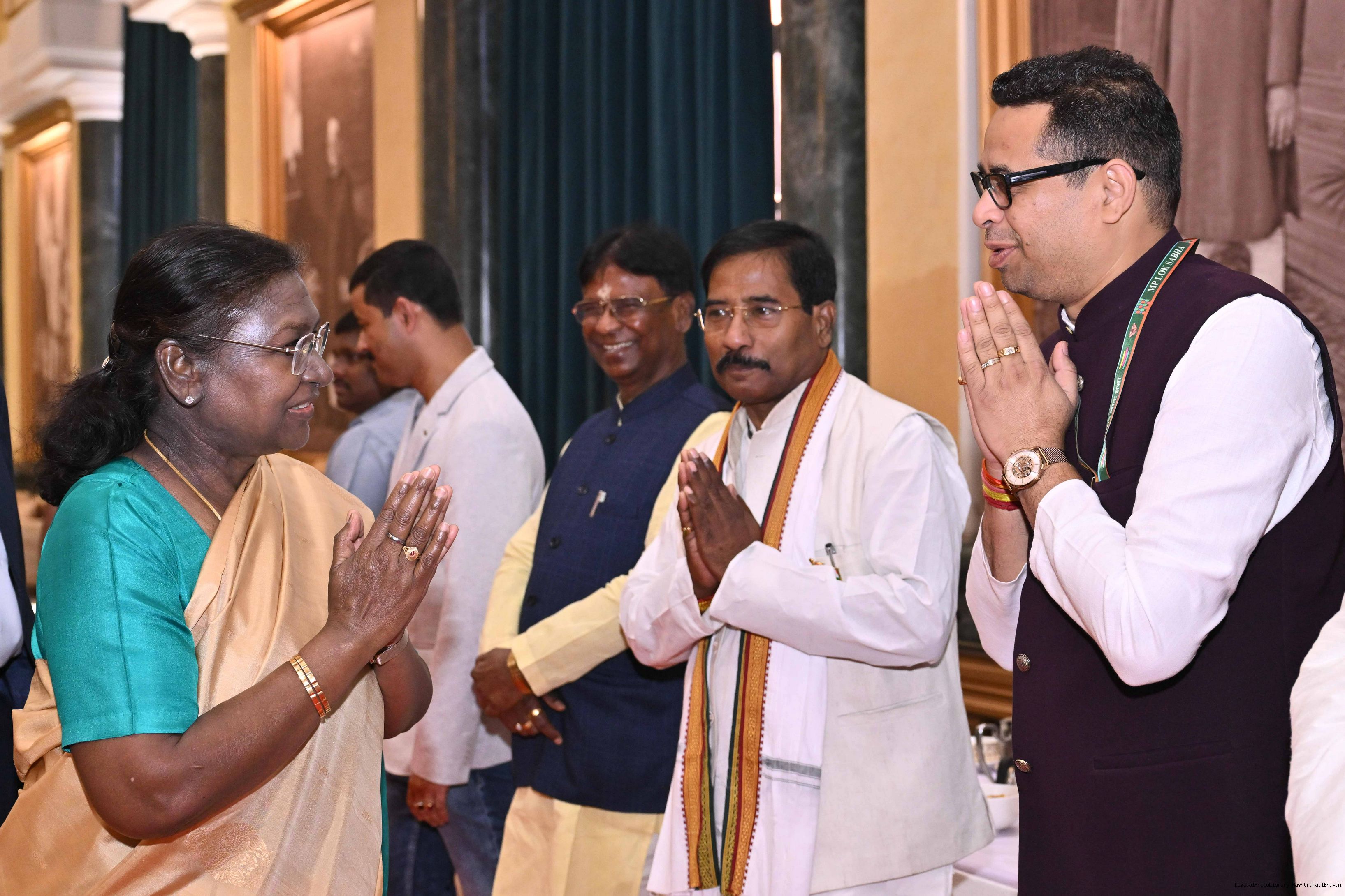 | Caption: | The President of India, Smt. Droupadi Murmu hosted Breakfast of Parliament (Lok Sabha and Rajya Sabha) at Rashtrapati Bhavan in New Delhi on March 21, 2025. |