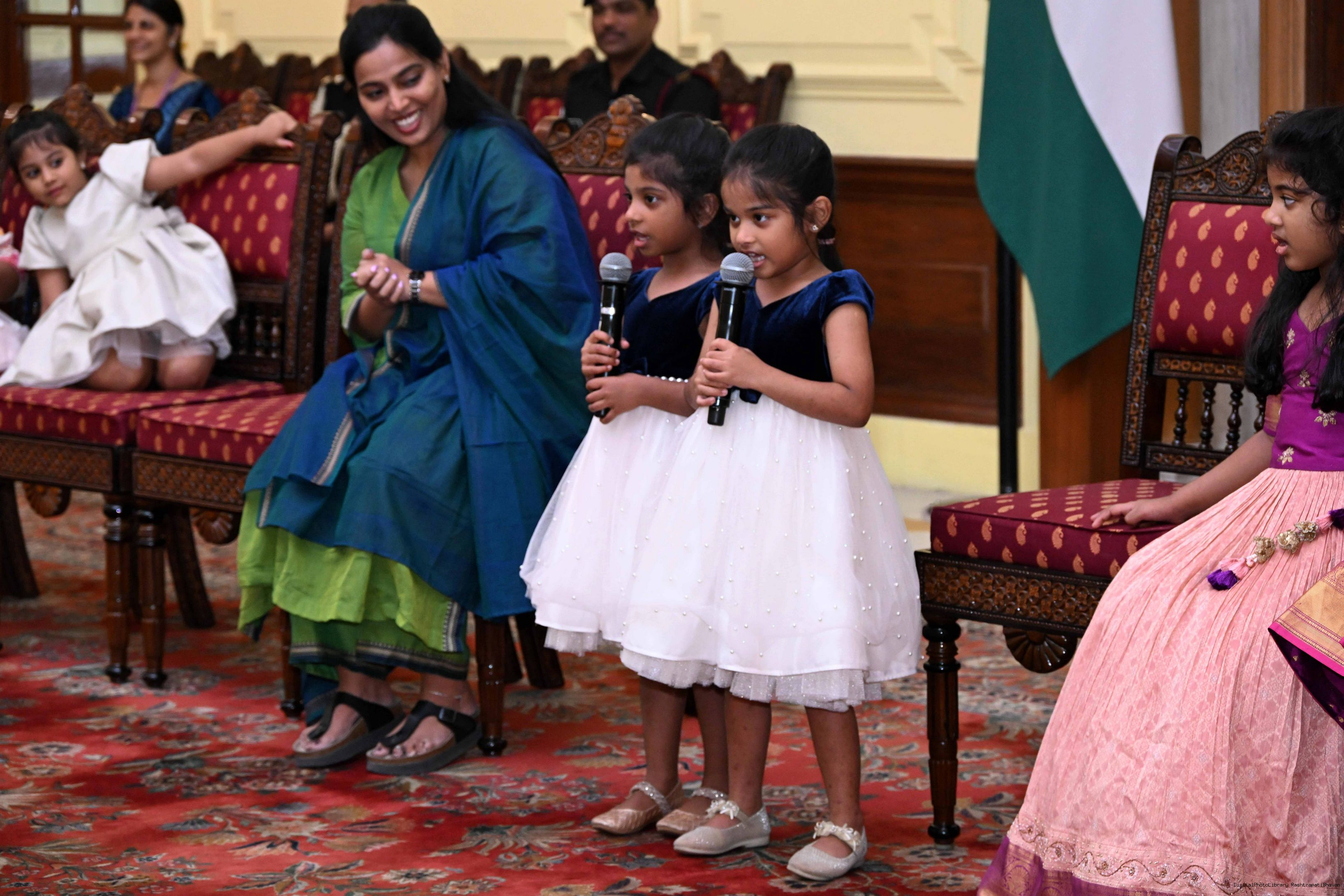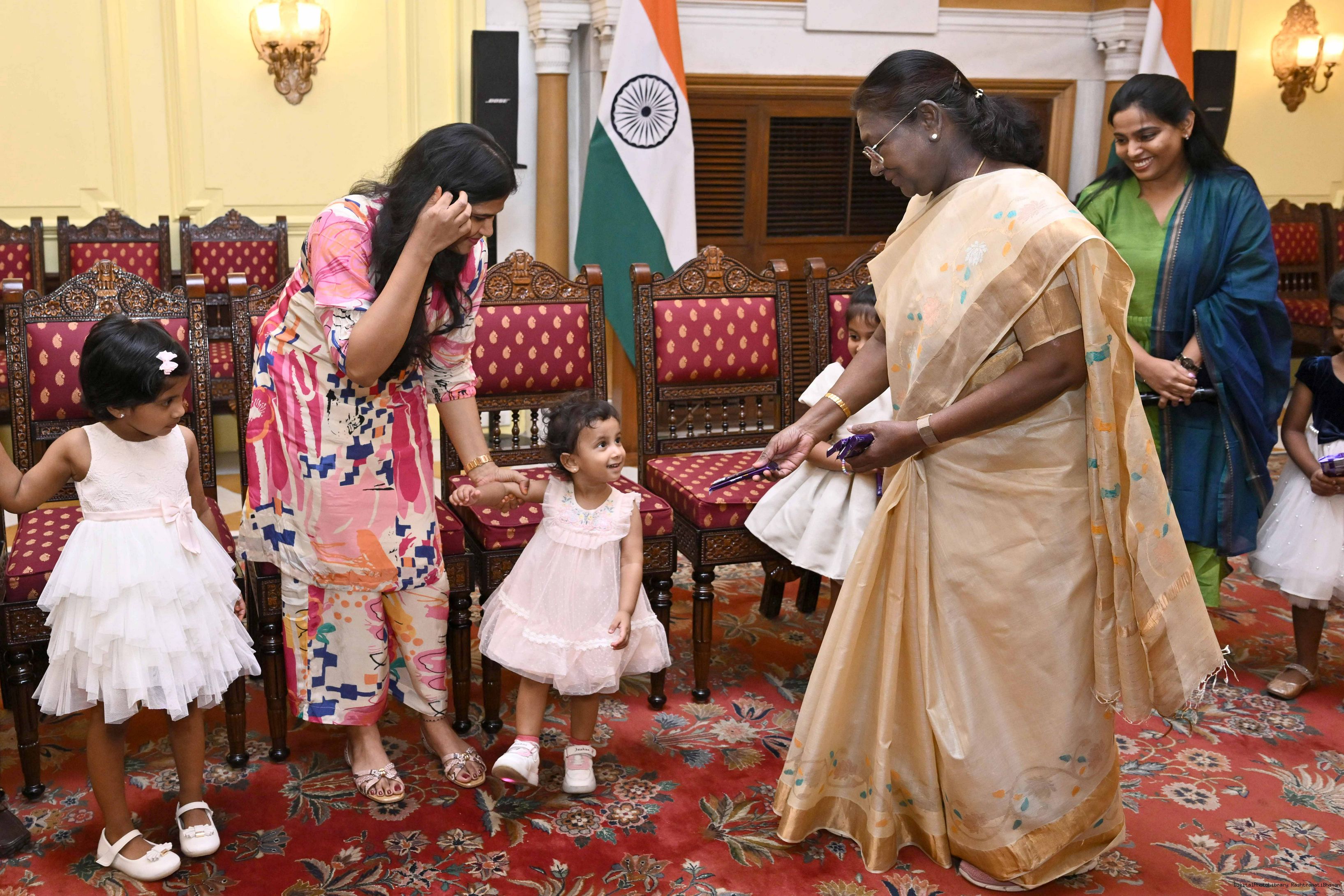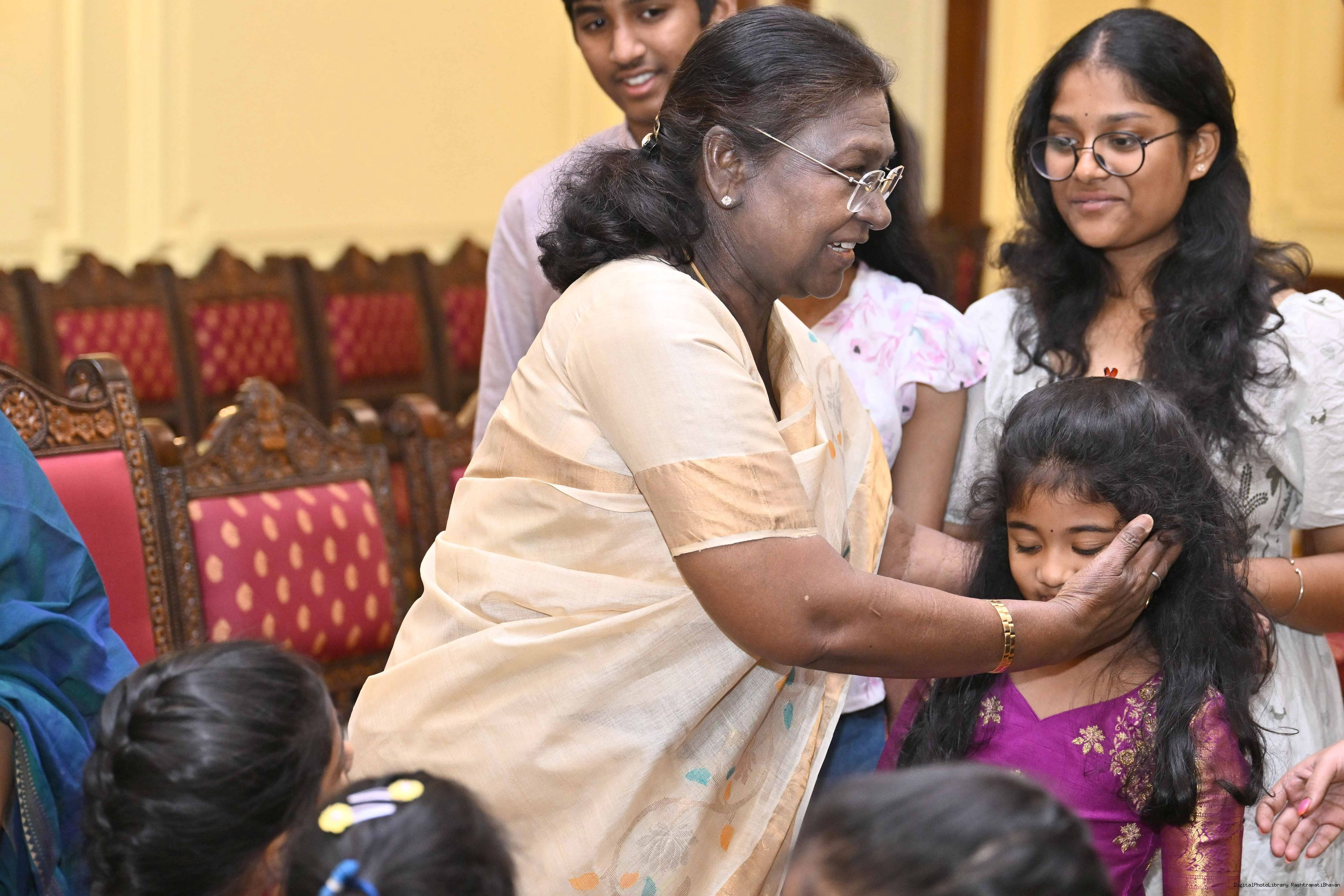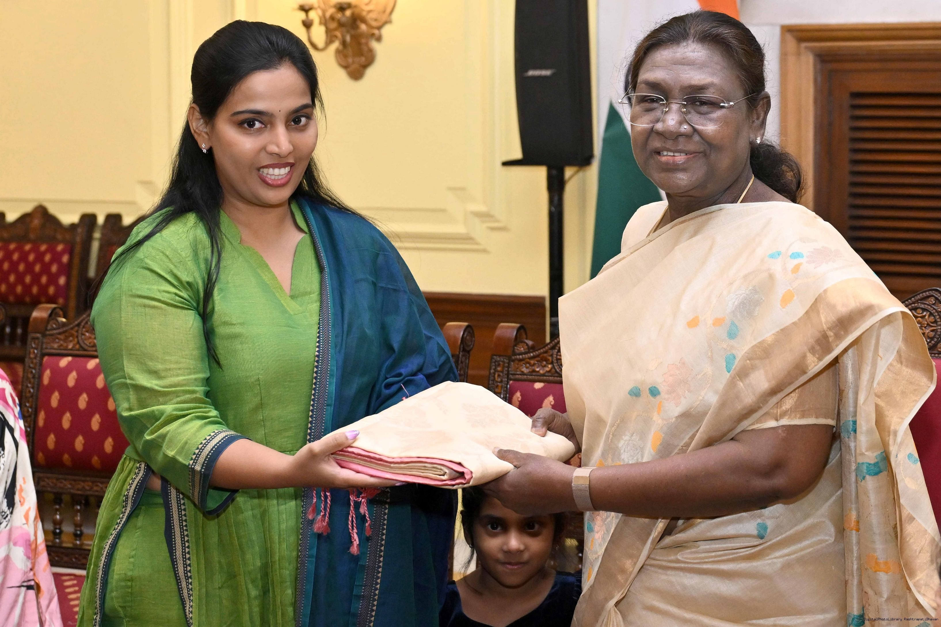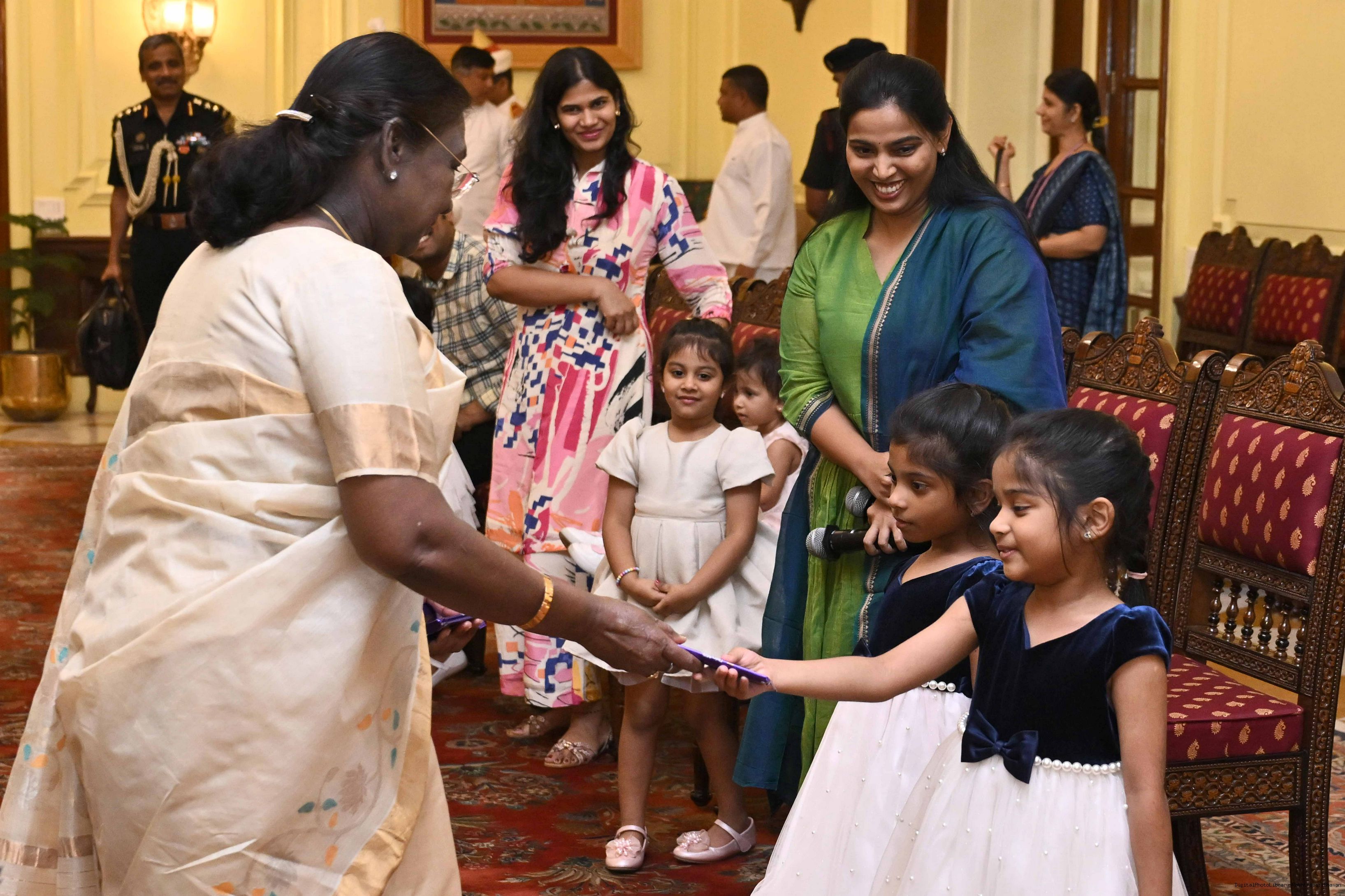 | Caption: | Smt. Bandaru Vijaya Laxmi along with 16 Family Members meeting with the President of India, Smt. Droupadi Murmu at Rashtrapati Bhavan on March 21, 2025. |