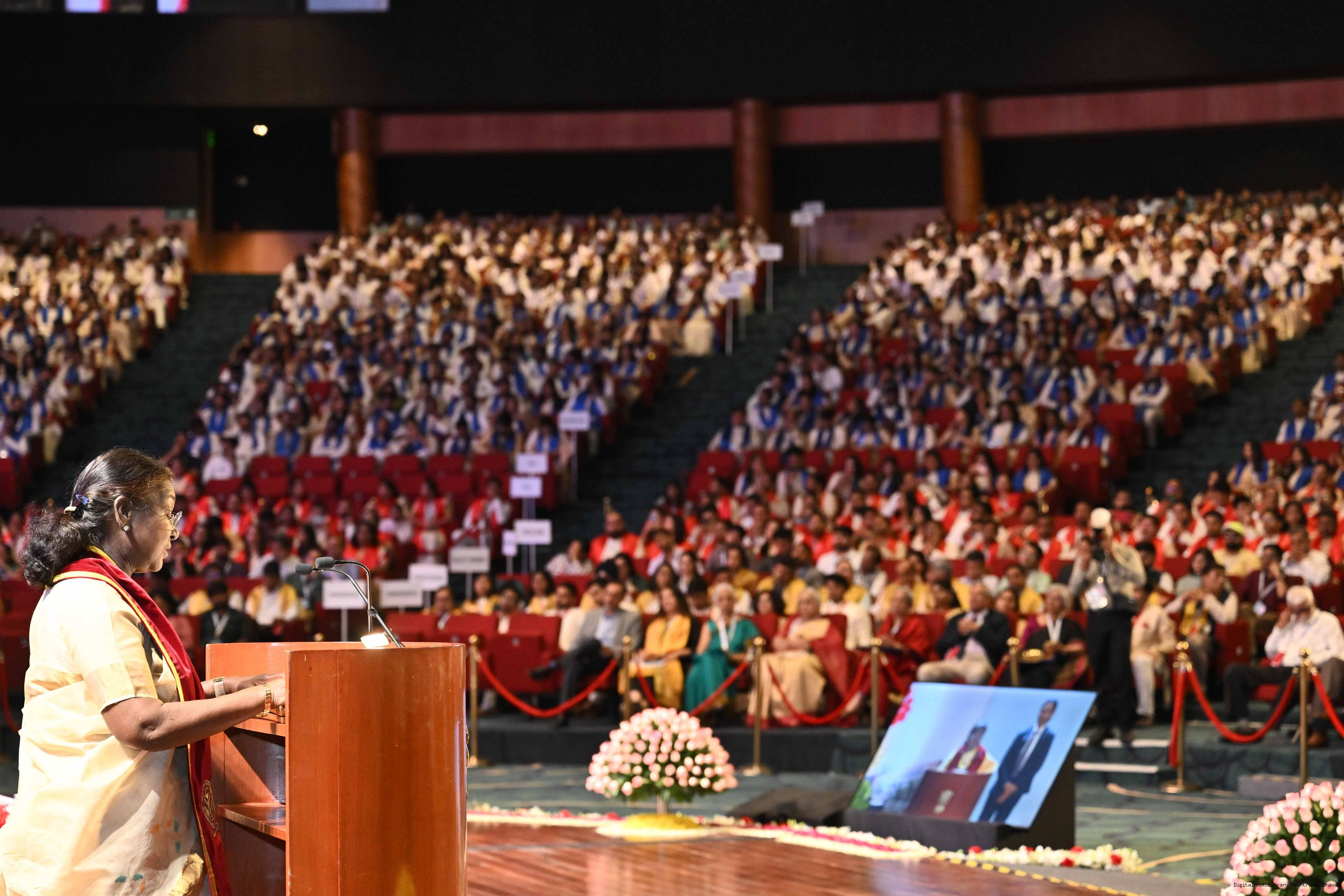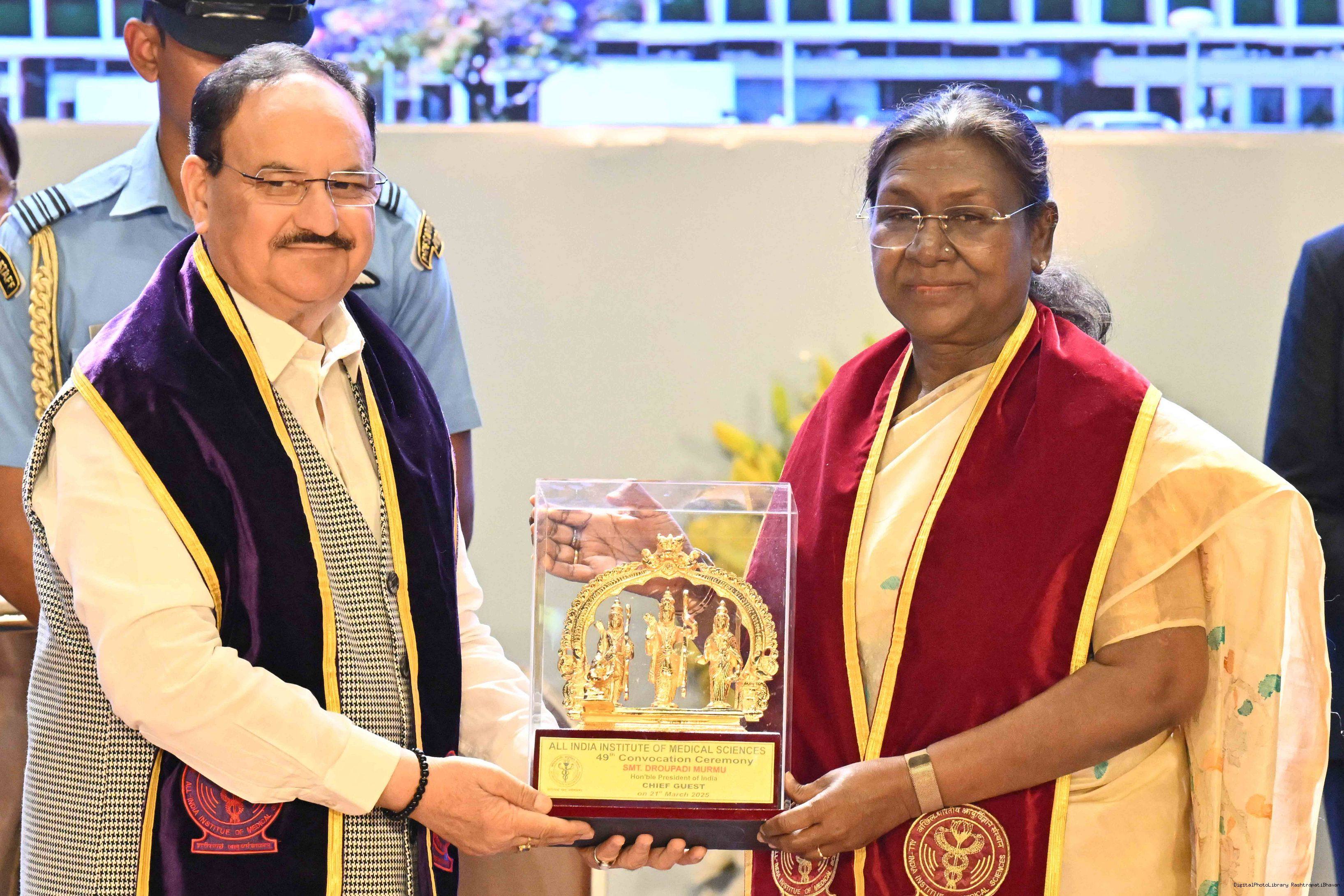 | Caption: | The President of India, Smt Droupadi Murmu graced the convocation ceremony of the All India Institute of Medical Sciences, New Delhi on March 21, 2025. |