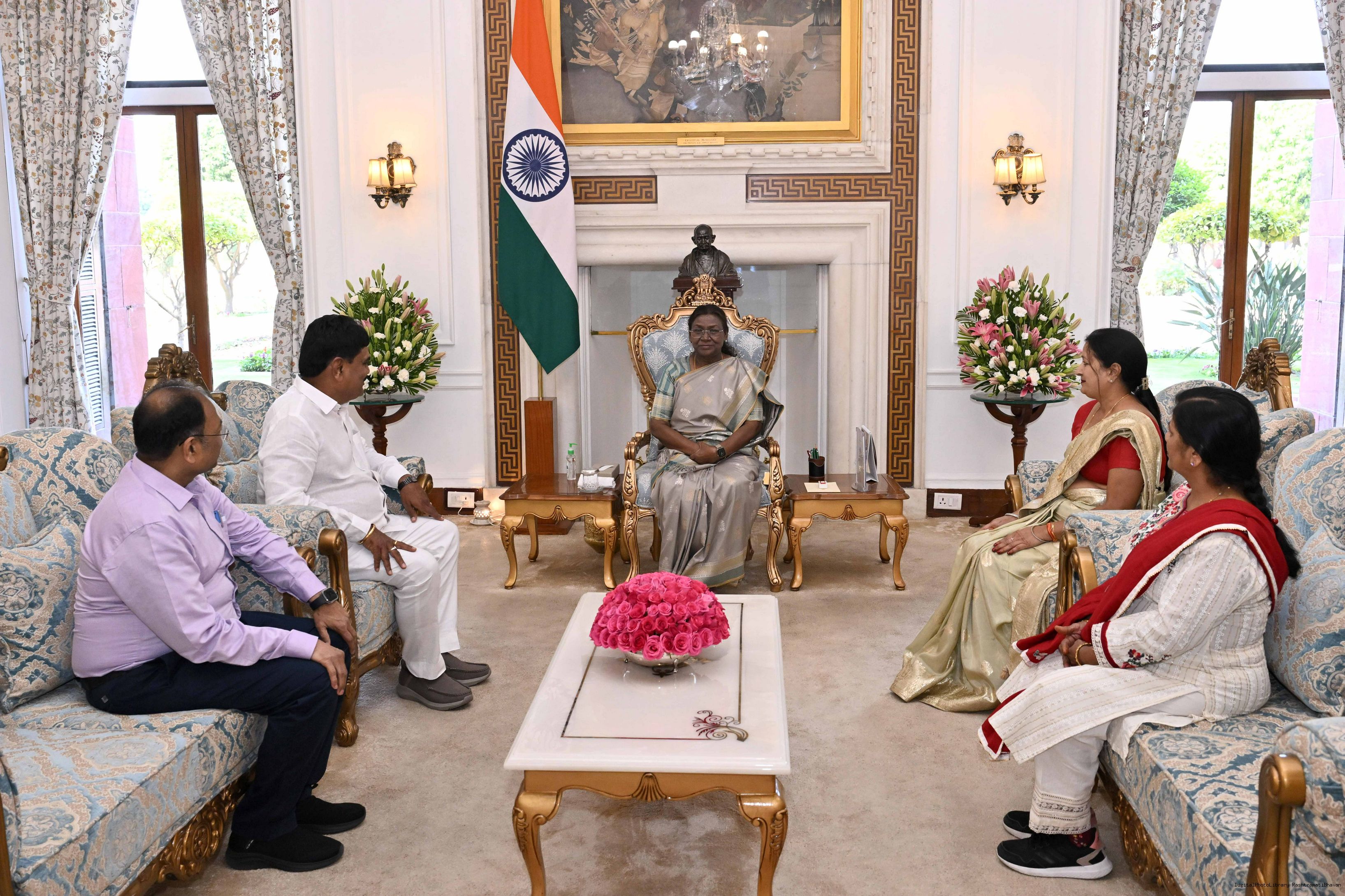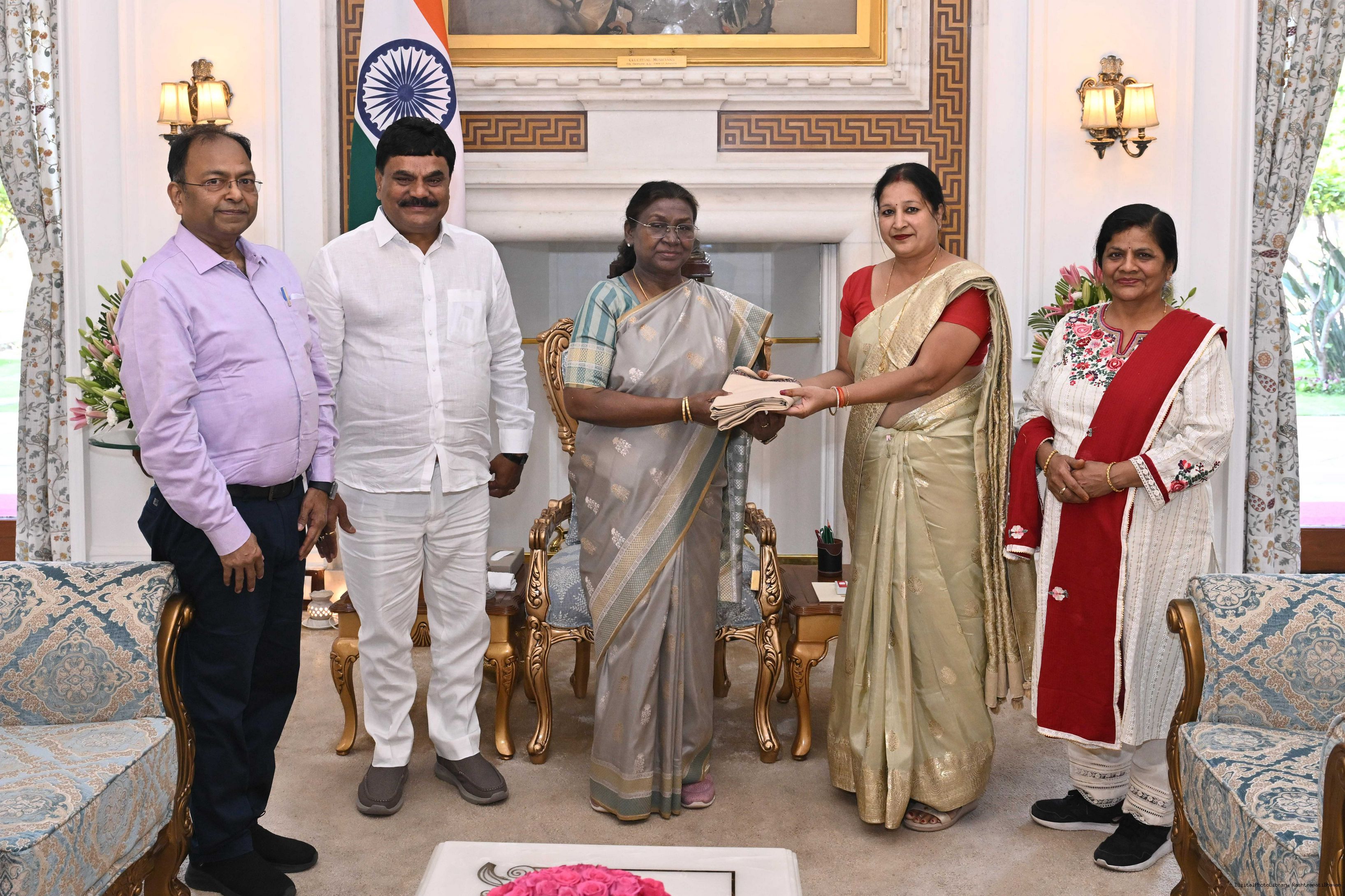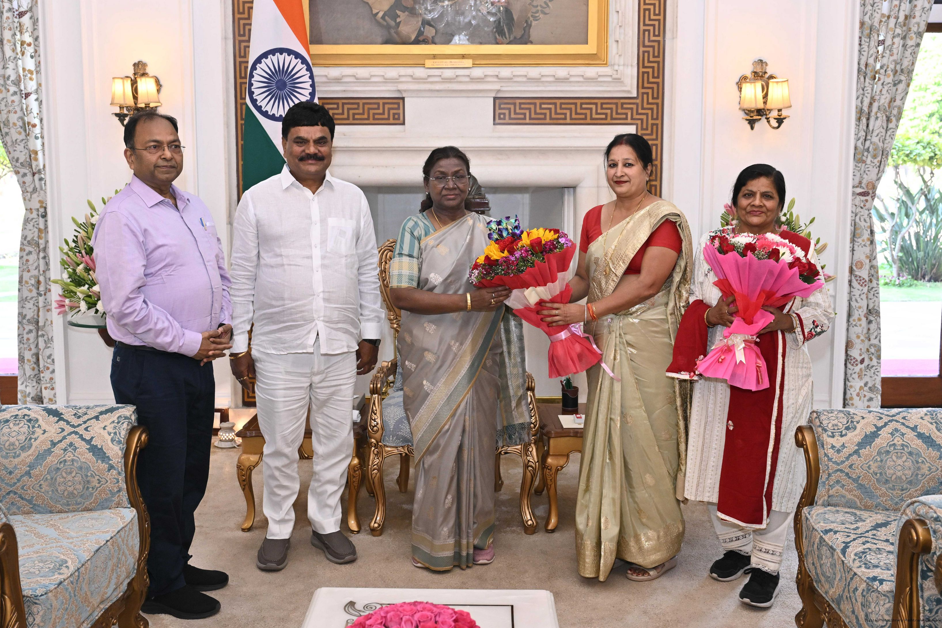 | Caption: | Shri Sambu Dayal Agarwalla from Rairangpur along with others meeting with the President of India, Smt. Droupadi Murmu at Rashtrapati Bhavan on March 26, 2025. |