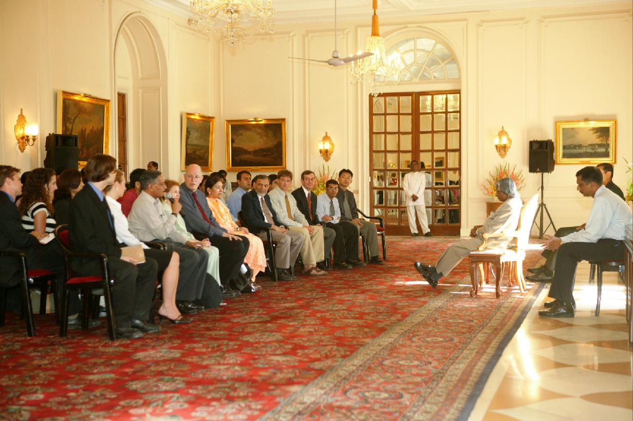 | Caption: | The Students from Bauer College of Business University of Houston USA calling on the President of India, Dr A P J Abdul Kalam at the Yellow Drawing Room of Rashtrapati Bhavan in New Delhi on June 14, 2004 |