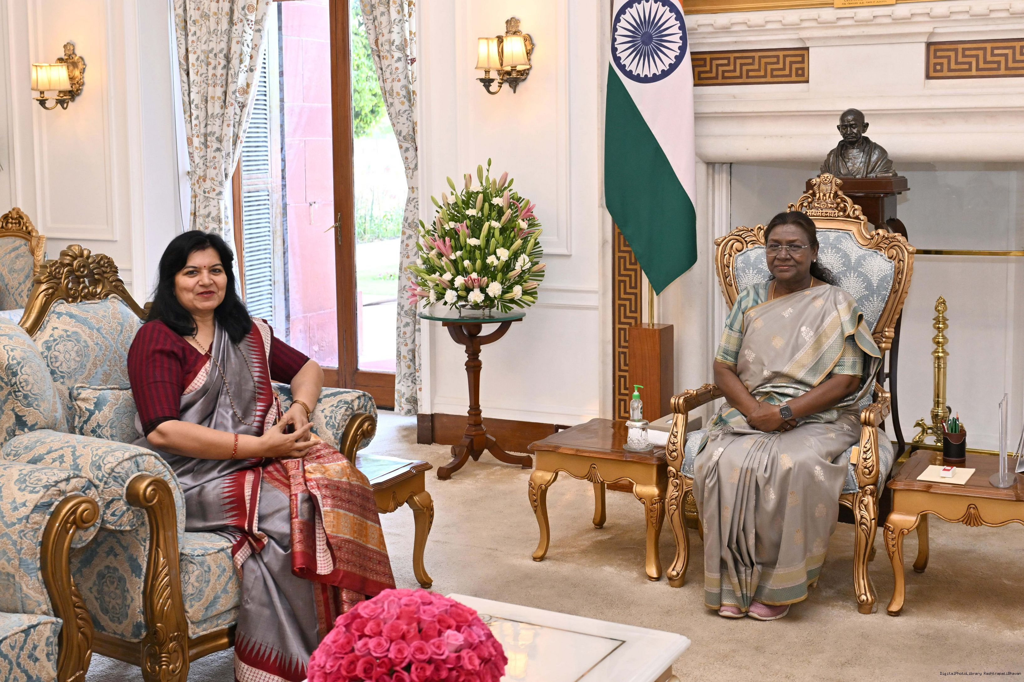 | Caption: | Smt Aparajita Sarangi, MP (Lok Sabha) meeting with the President of India, Smt. Droupadi Murmu at Rashtrapati Bhavan on March 26, 2025. |