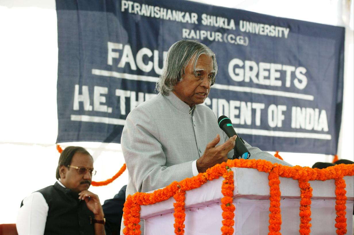 | Caption: | The President of India, Dr A P J Abdul Kalam interacting with the Faculty of Pt Ravishankar Shukla University during its 10th Convocation at Raipur in Chhattisgarh on Jan 28, 2004 |
