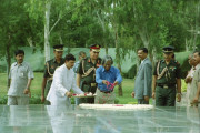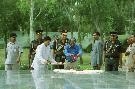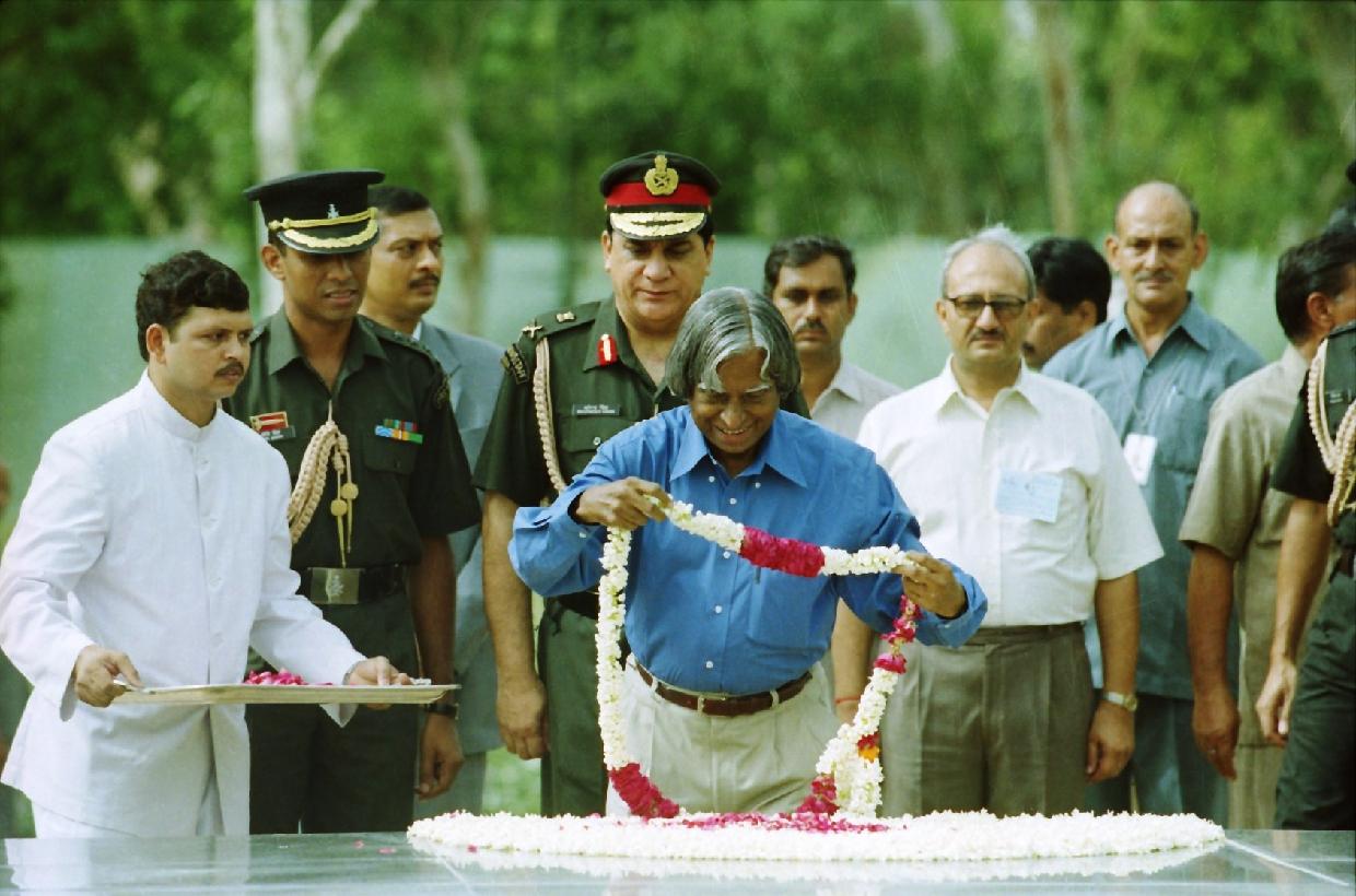 | Caption: | The President of India, Dr A P J Abdul Kalam paying homage to the President of India, Late Shri Giani Zail Singh at Ekta Sthal in New Delhi on July 26, 2002 |