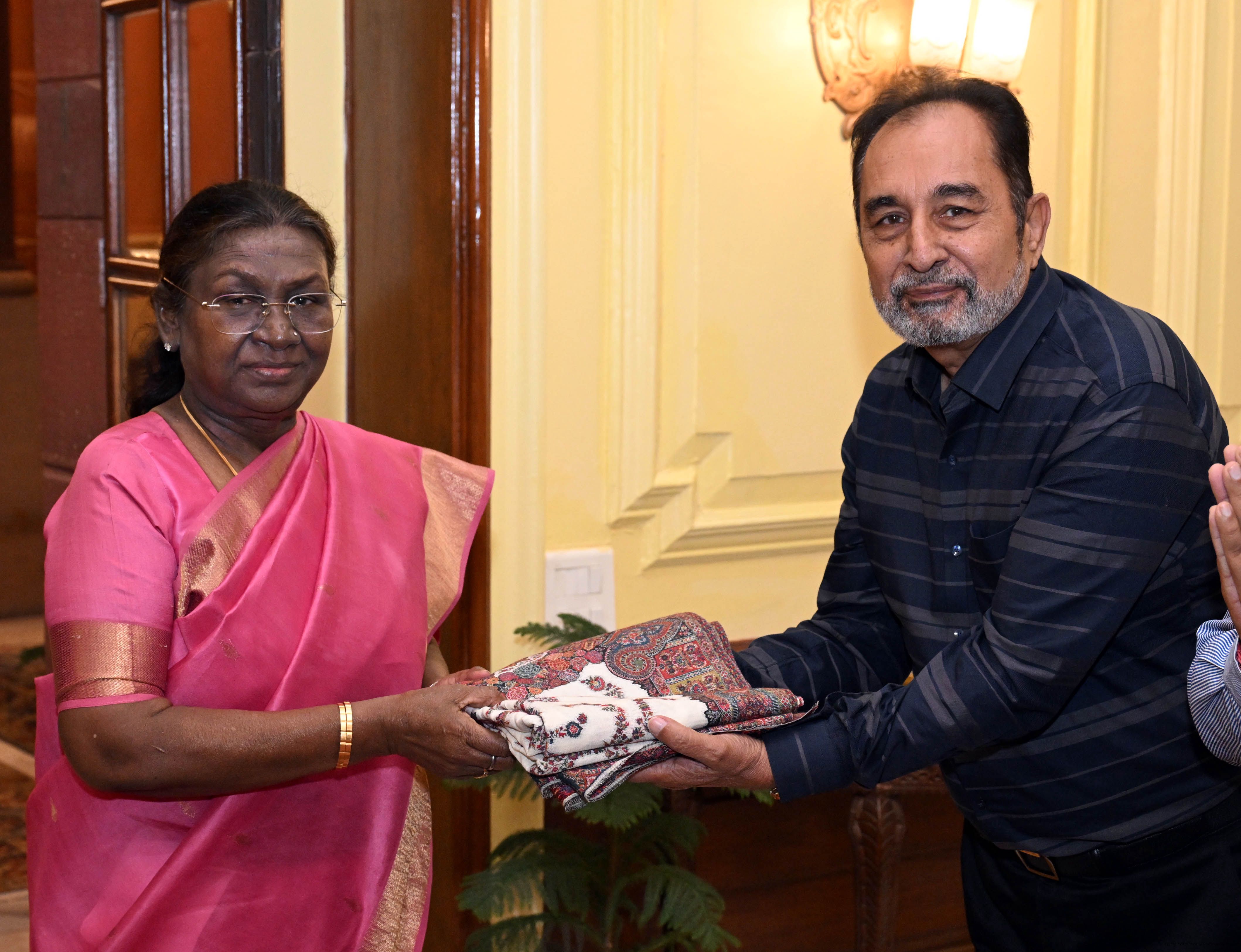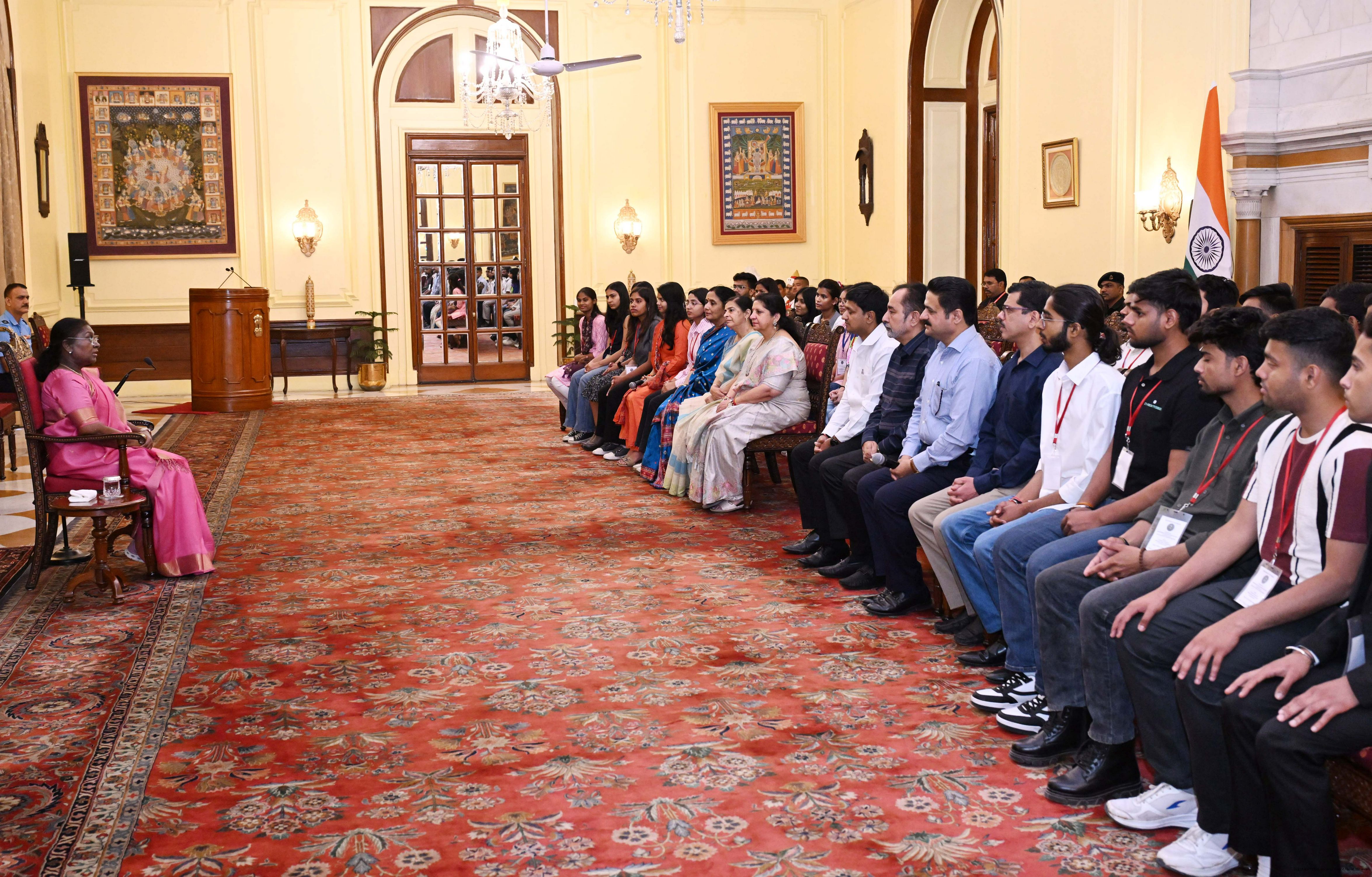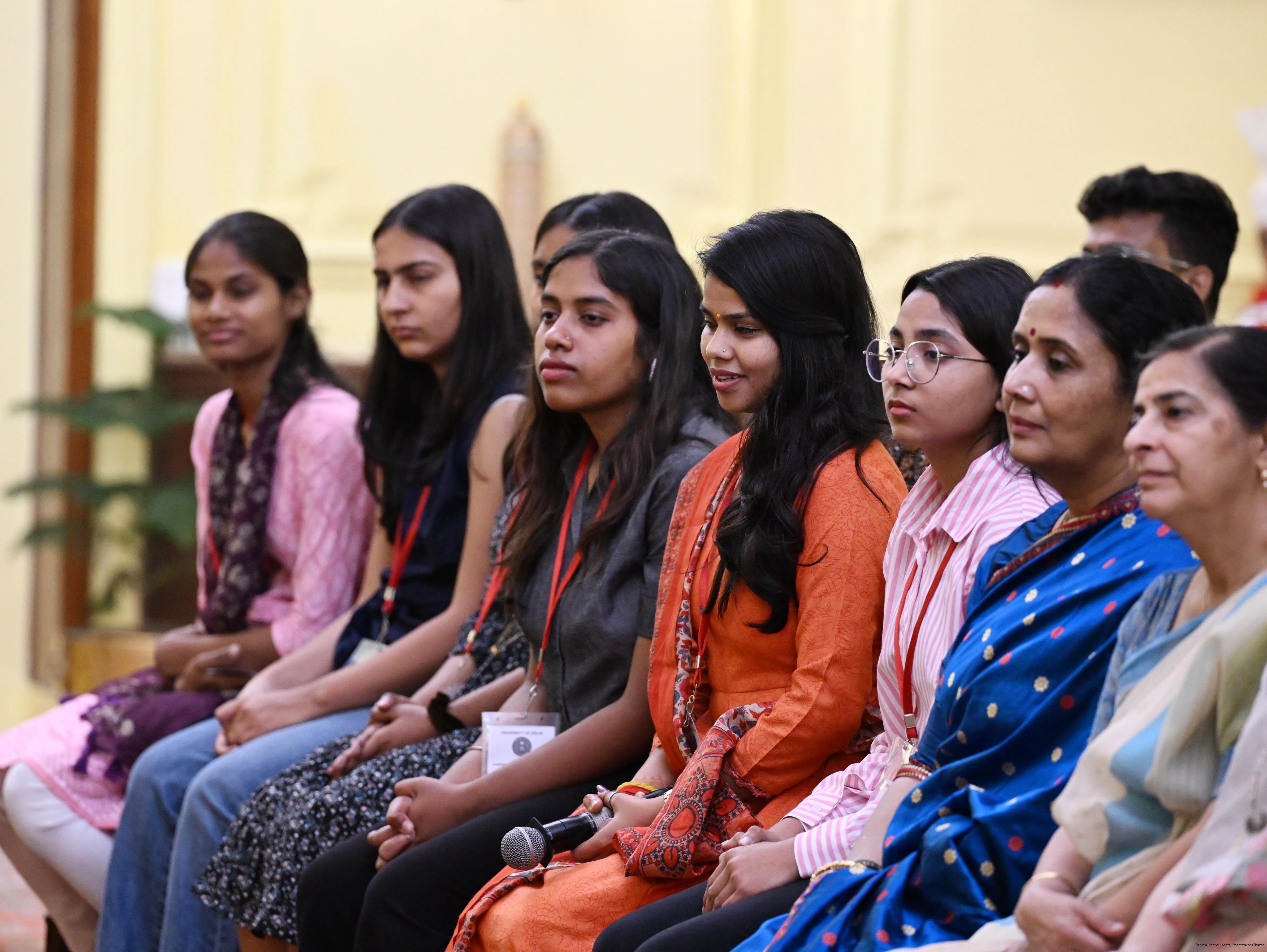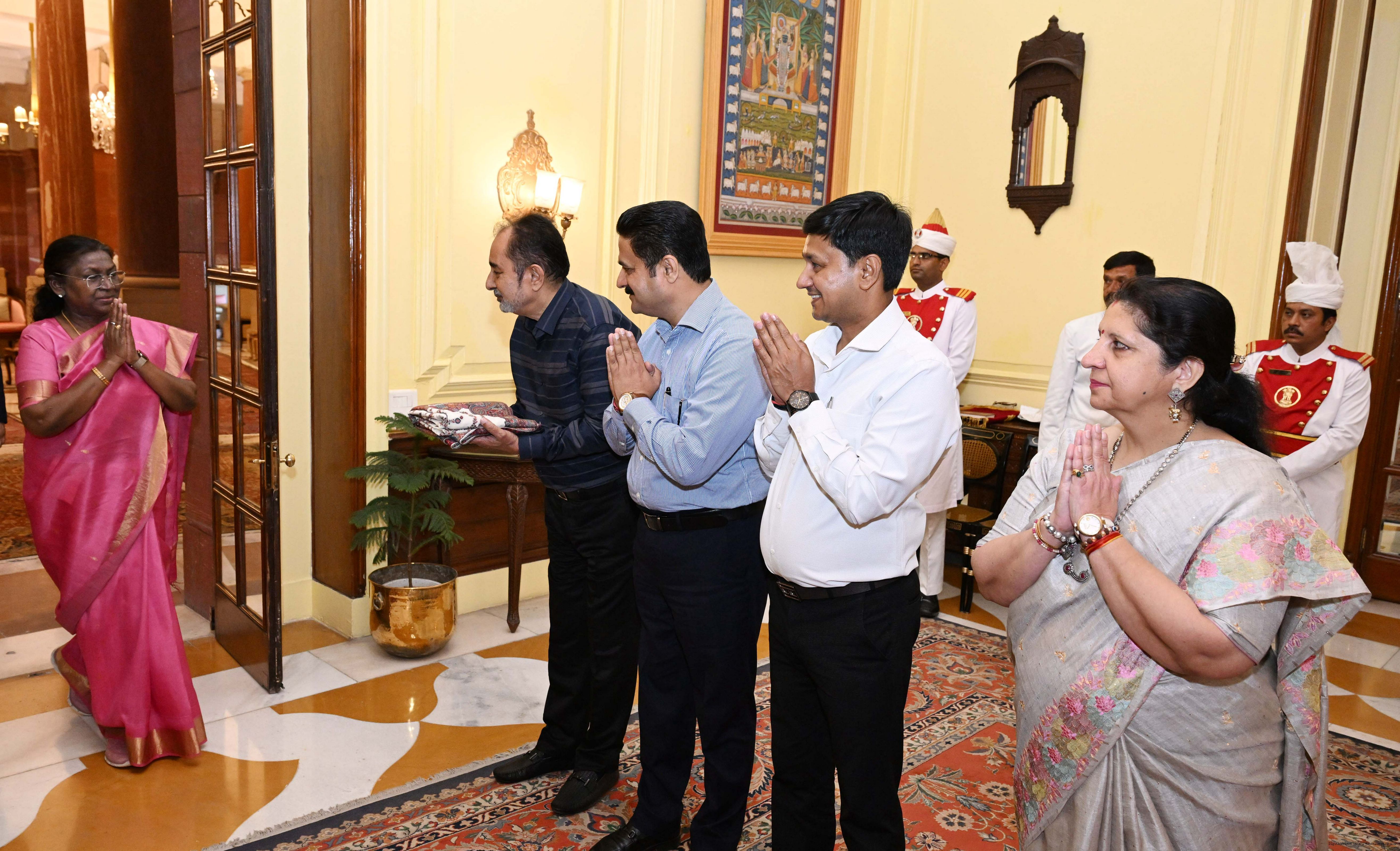 | Caption: | Prof. Ravinder Kumar, Director, Centre for Independence and Partition Studies, University of Delhi along with others meeting with the President of India, Smt. Droupadi Murmu at Rashtrapati Bhavan on March 28, 2025. |